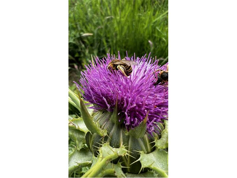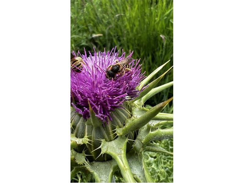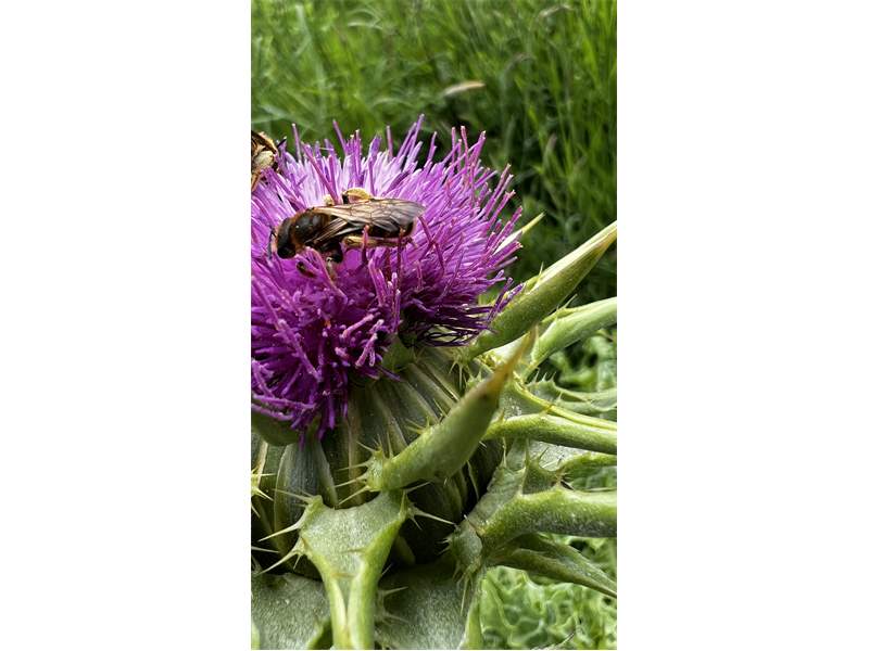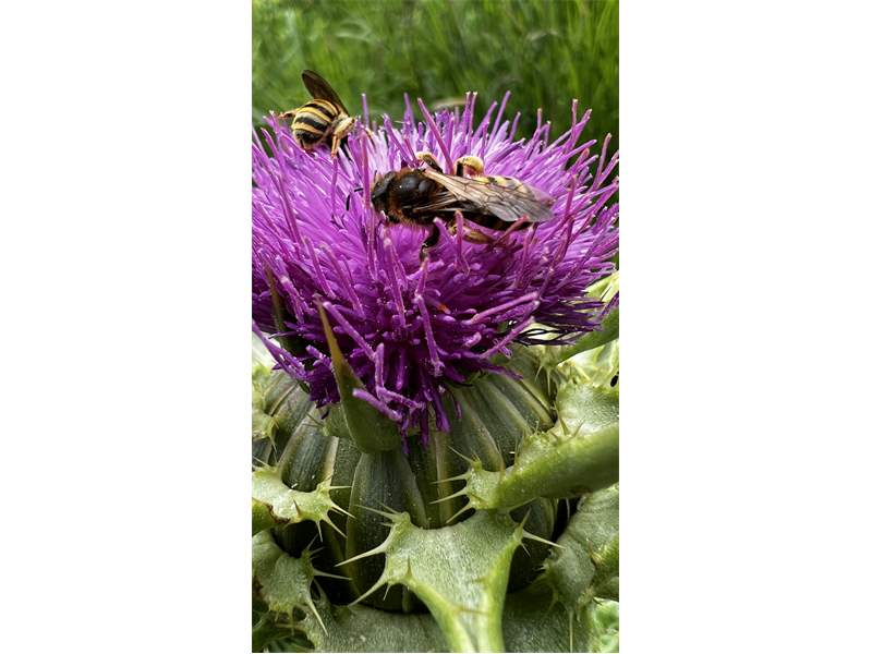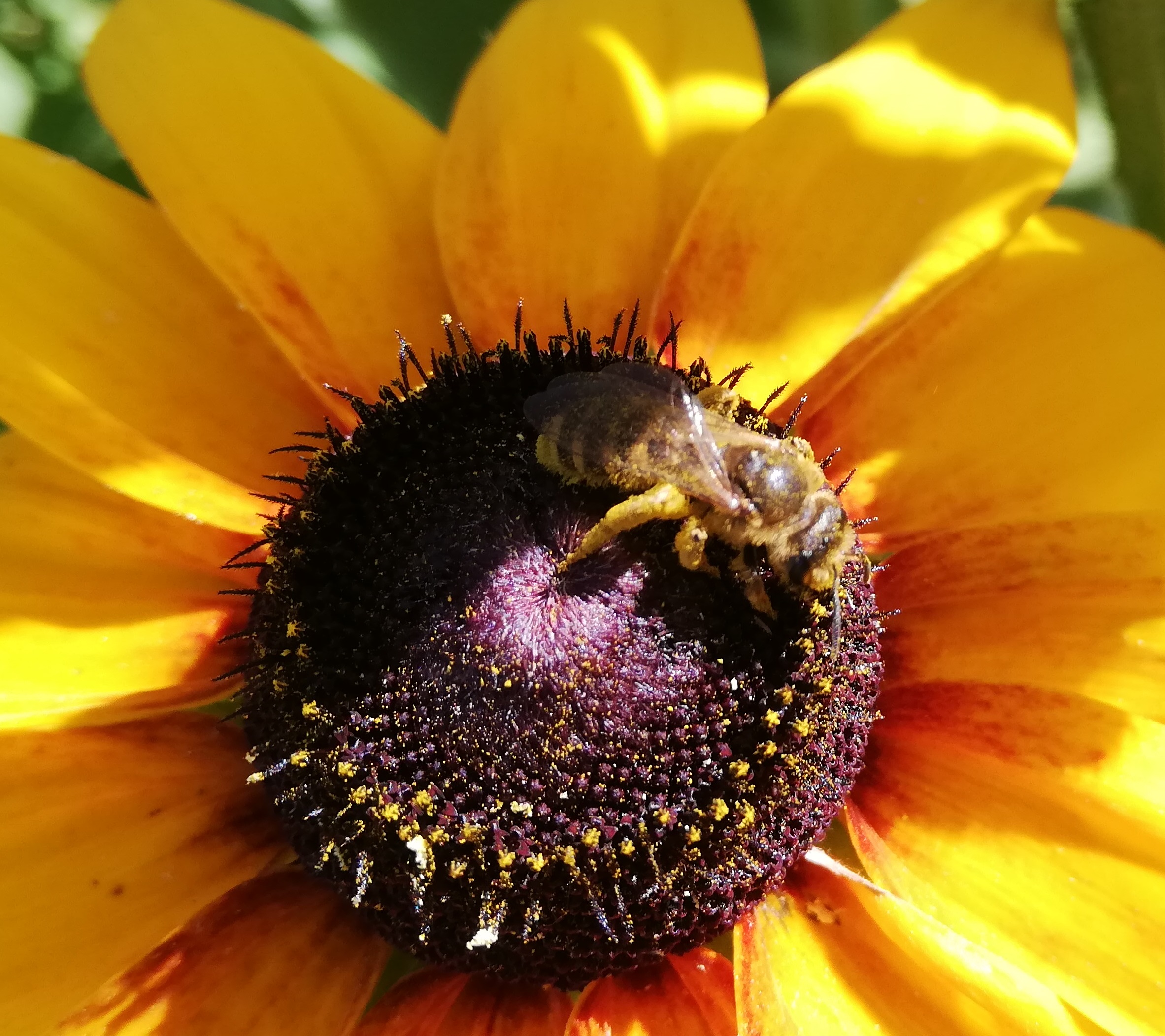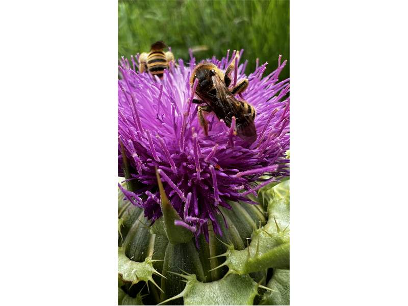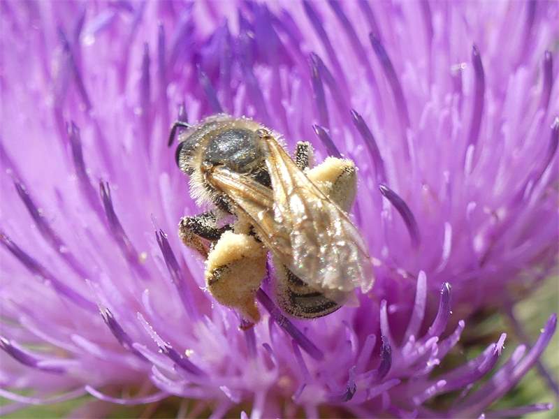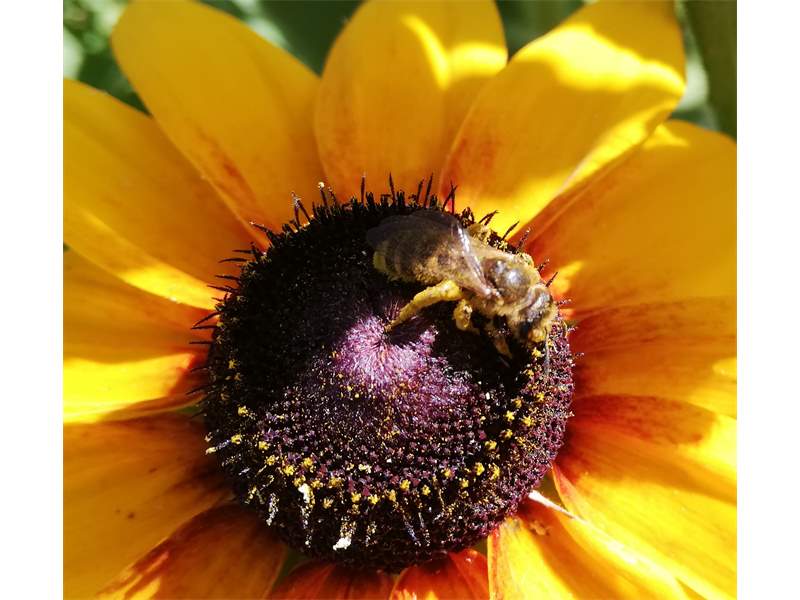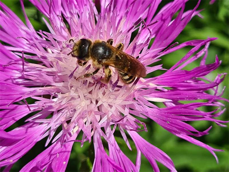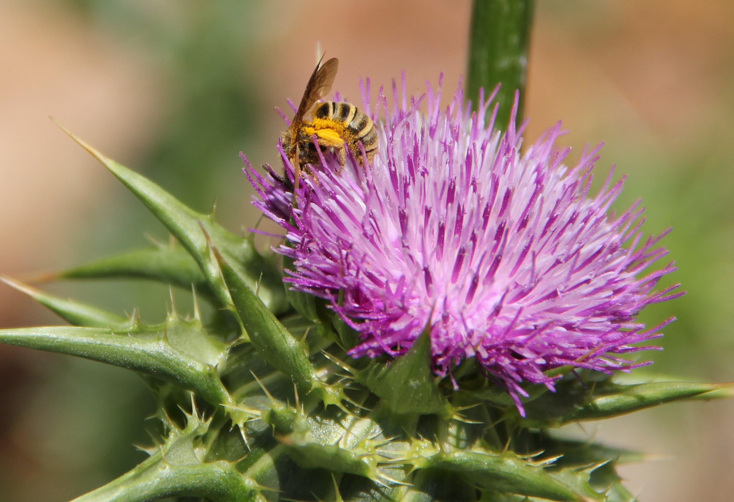 Gelbbindige Furchenbiene (Halictus scabiosae (Rossi, 1790)),Freital/Wurgwitz,Hammerteich,Wegrand auf Kratzdistel,Sep. 2019 (© Manfred Wonka)( Bild vergrößern)