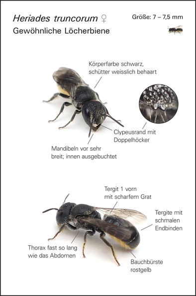 Weibchen: Clypeusrand in der Mitte mit kleinem Doppelhöcker.