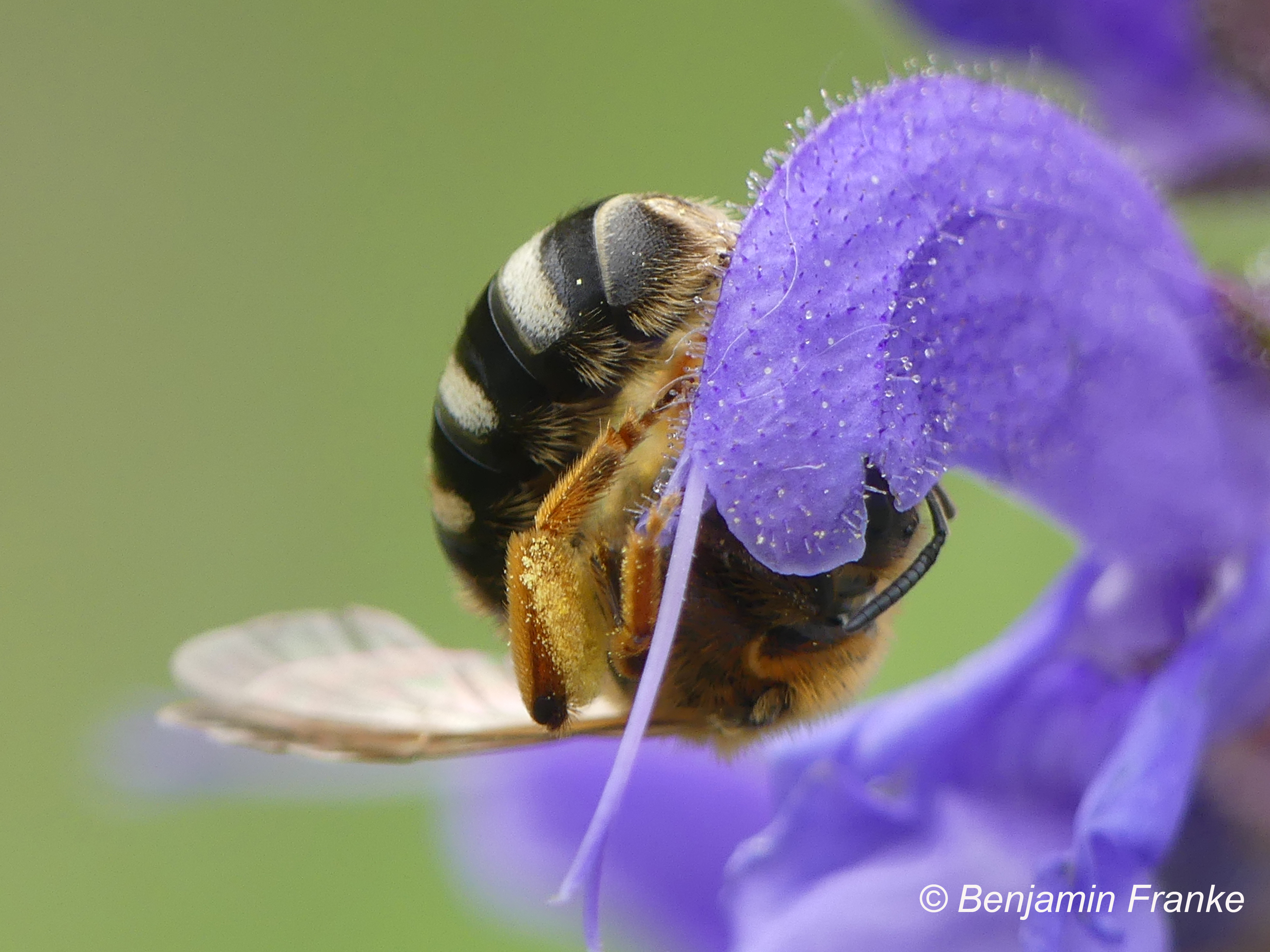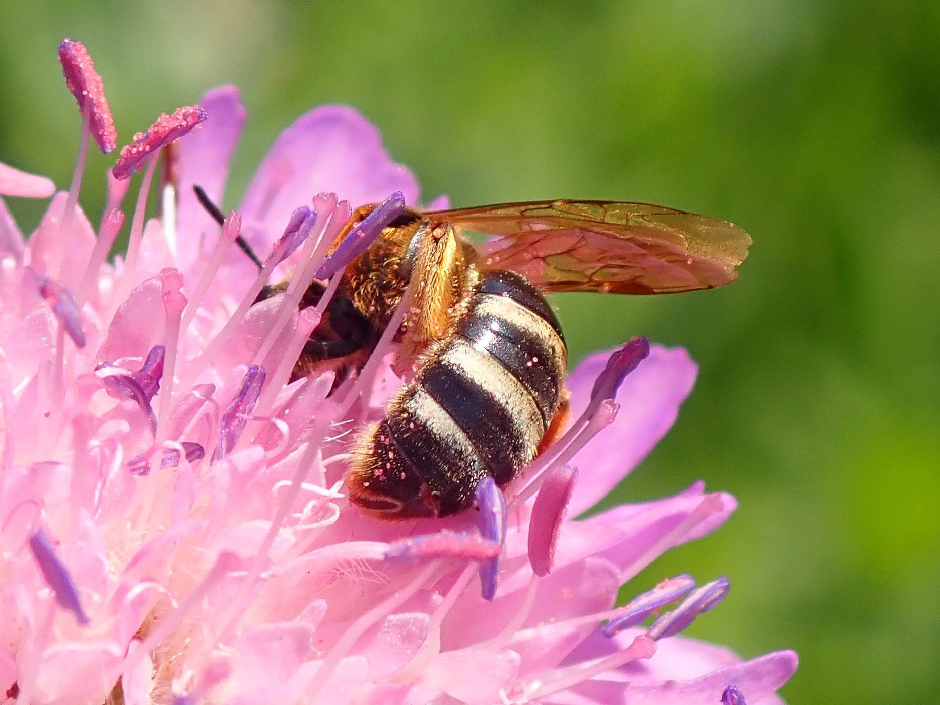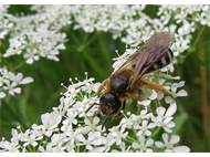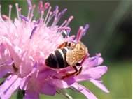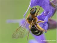 Gelbbein-Furchenbiene (Lasioglossum xanthopus (Kirby, 1802)), Weibchen auf Knautia arvensis, bei Lommatzsch, Ende Mai 2018 (© Andreas Hurtig)( Bild vergrößern)