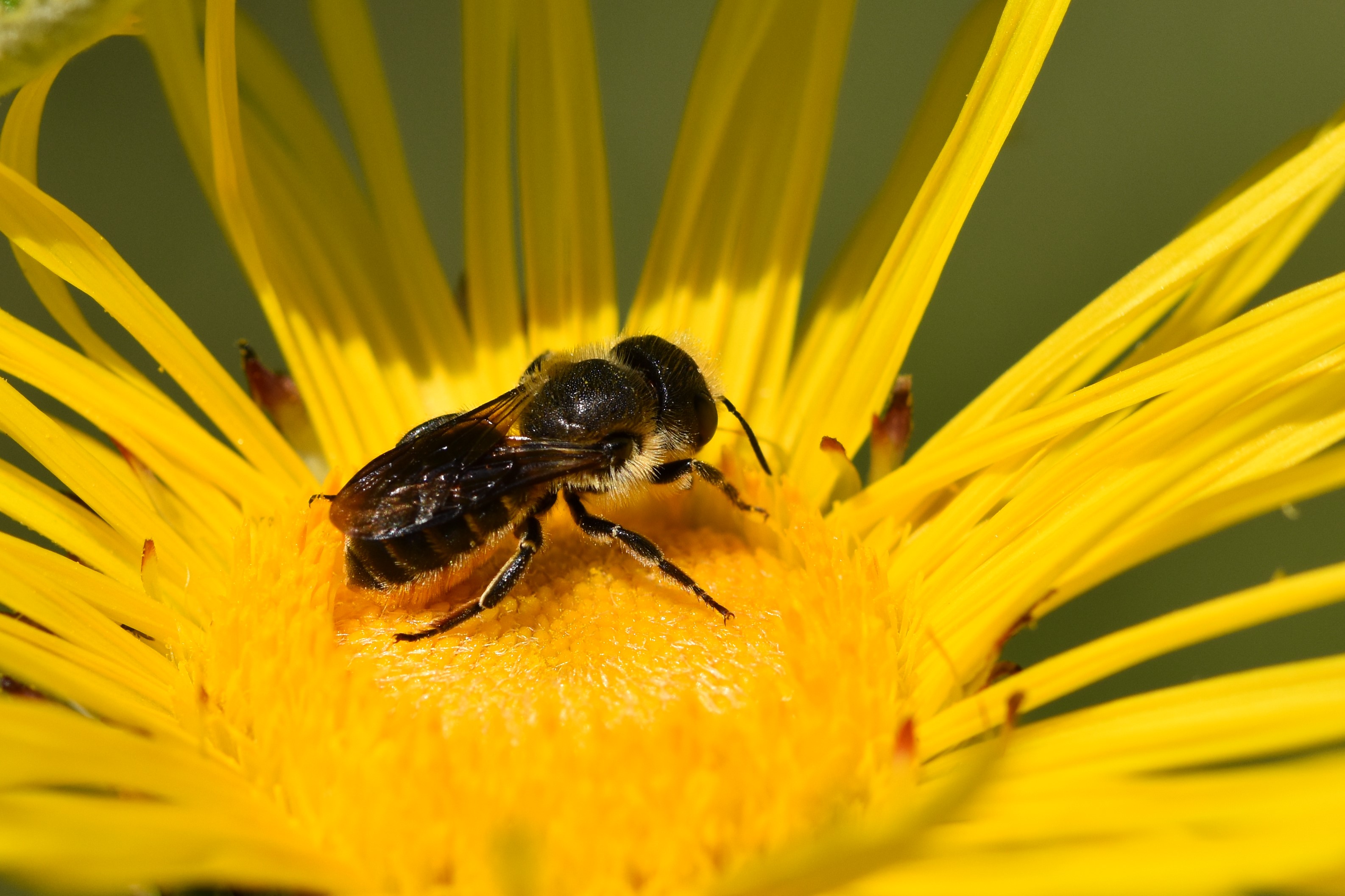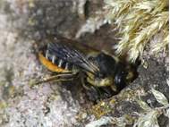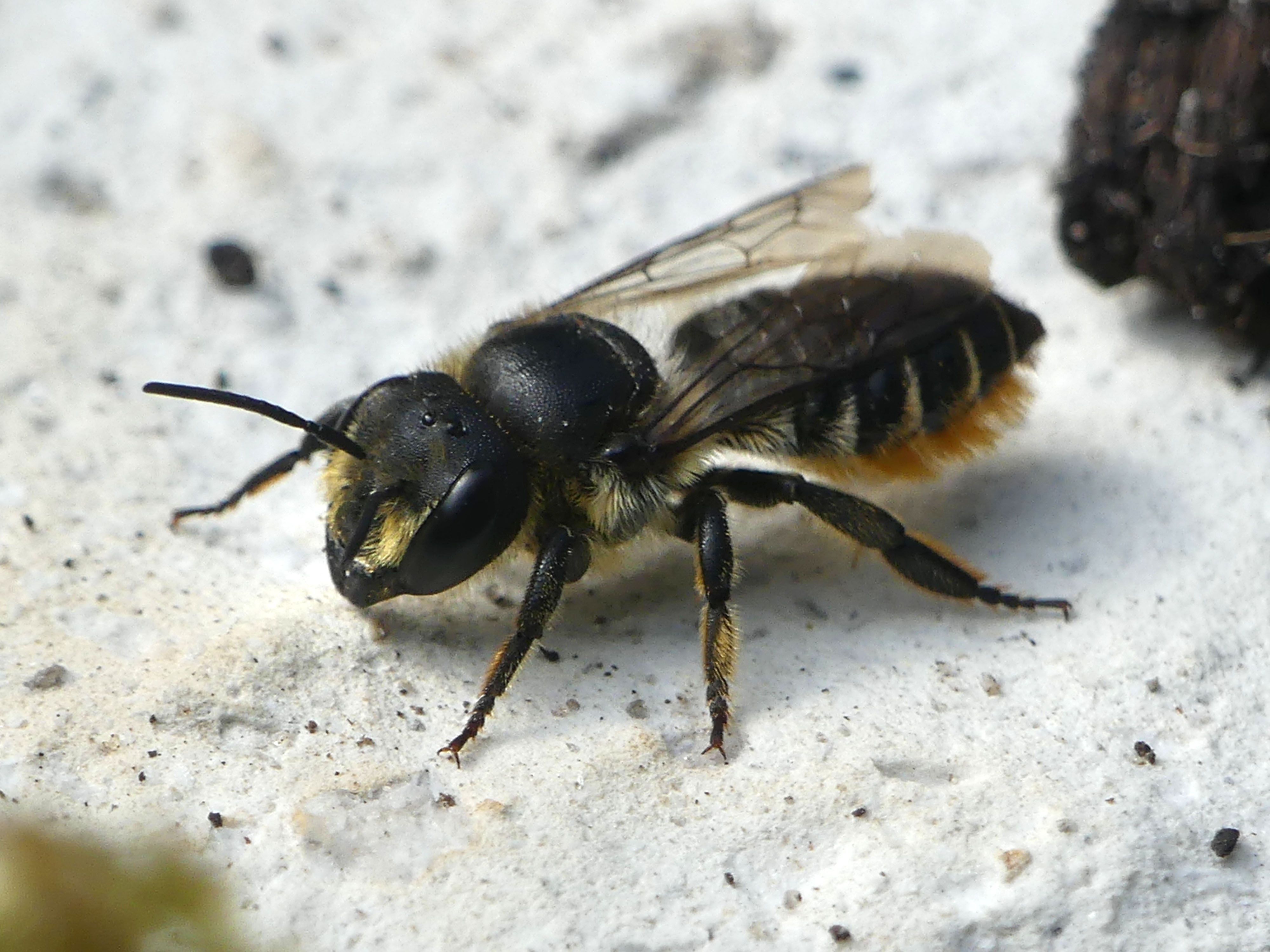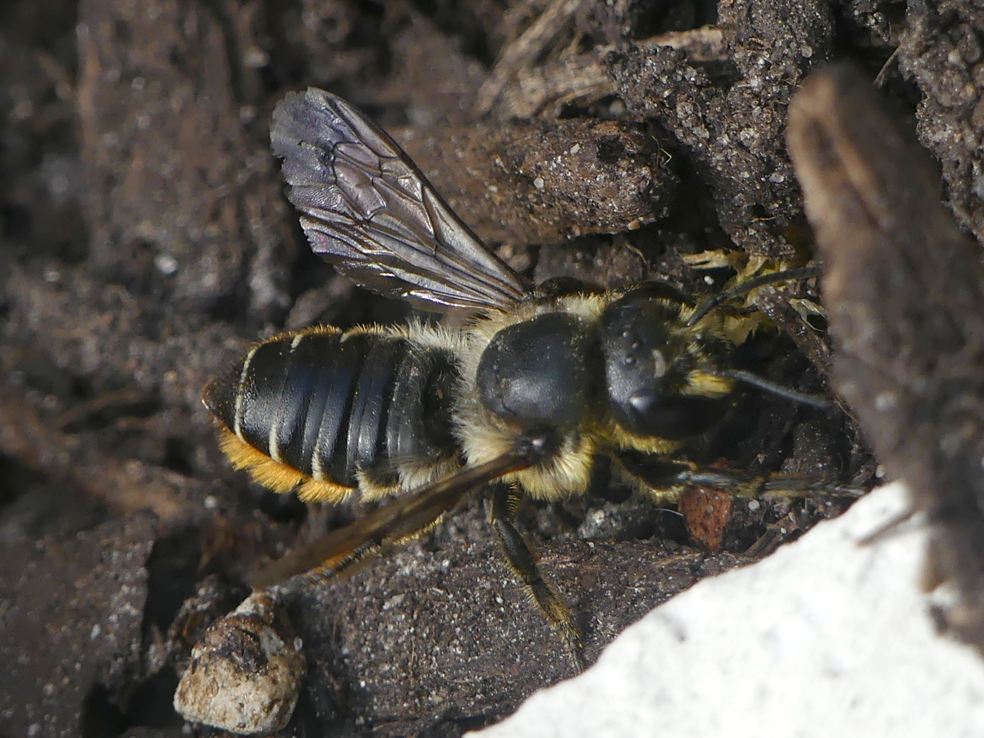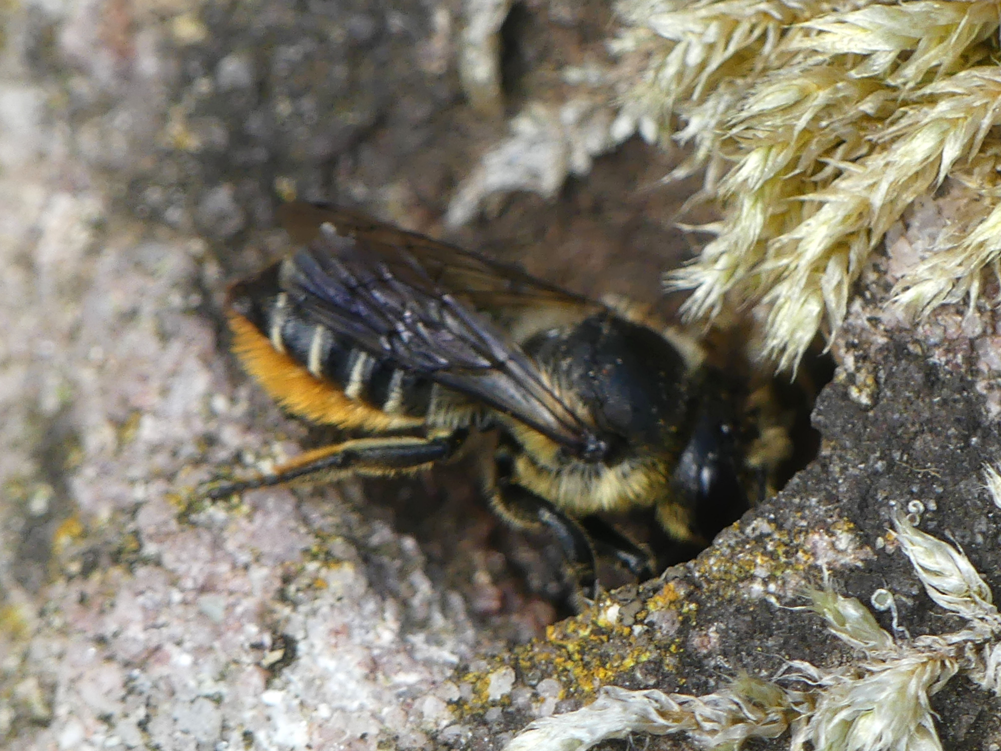 Weibchen von Megachile centuncularis mit Nestmaterial. Aus Friese 1923, Die europäischen Bienen, Berlin & Leipzig, Tafel 13.
