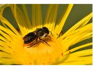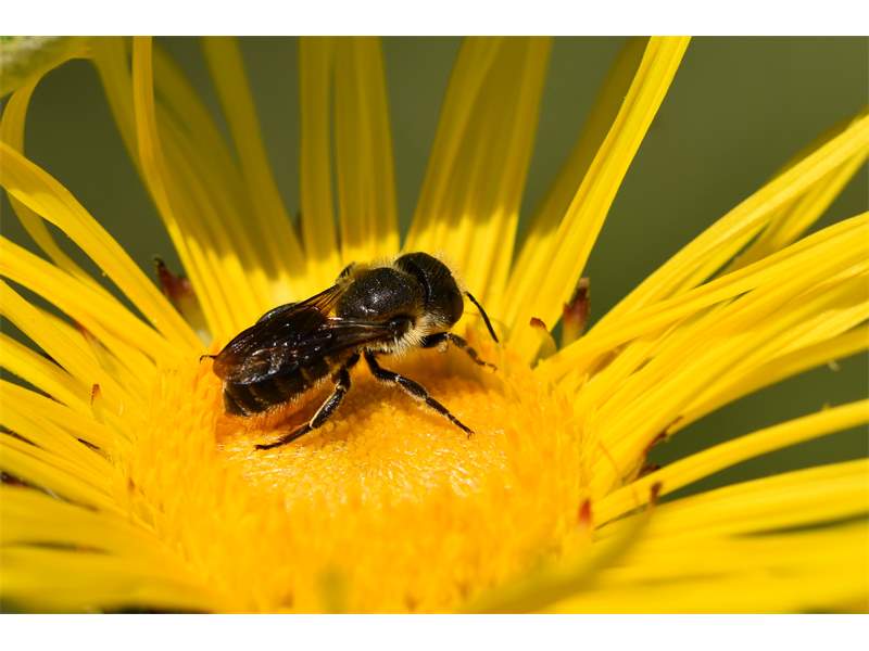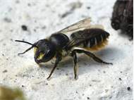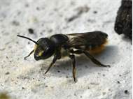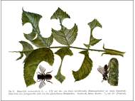 Weibchen von Megachile centuncularis mit Nestmaterial. Aus Friese 1923, Die europäischen Bienen, Berlin & Leipzig, Tafel 13. ( Bild vergrößern)