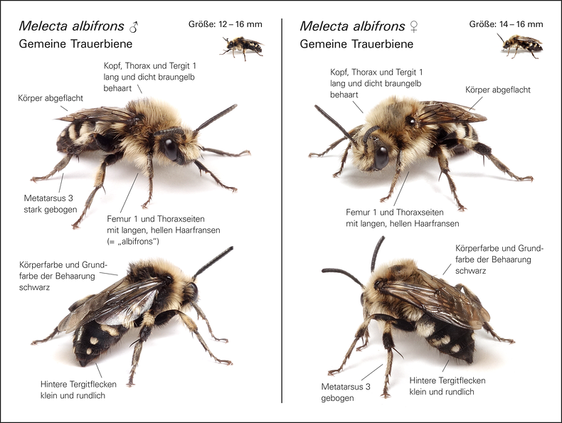 Diagnostische Merkmale von Melecta albifrons (Gemeine Trauerbiene) (© Mandy & Michael Fritzsche)( Bild vergrößern)
