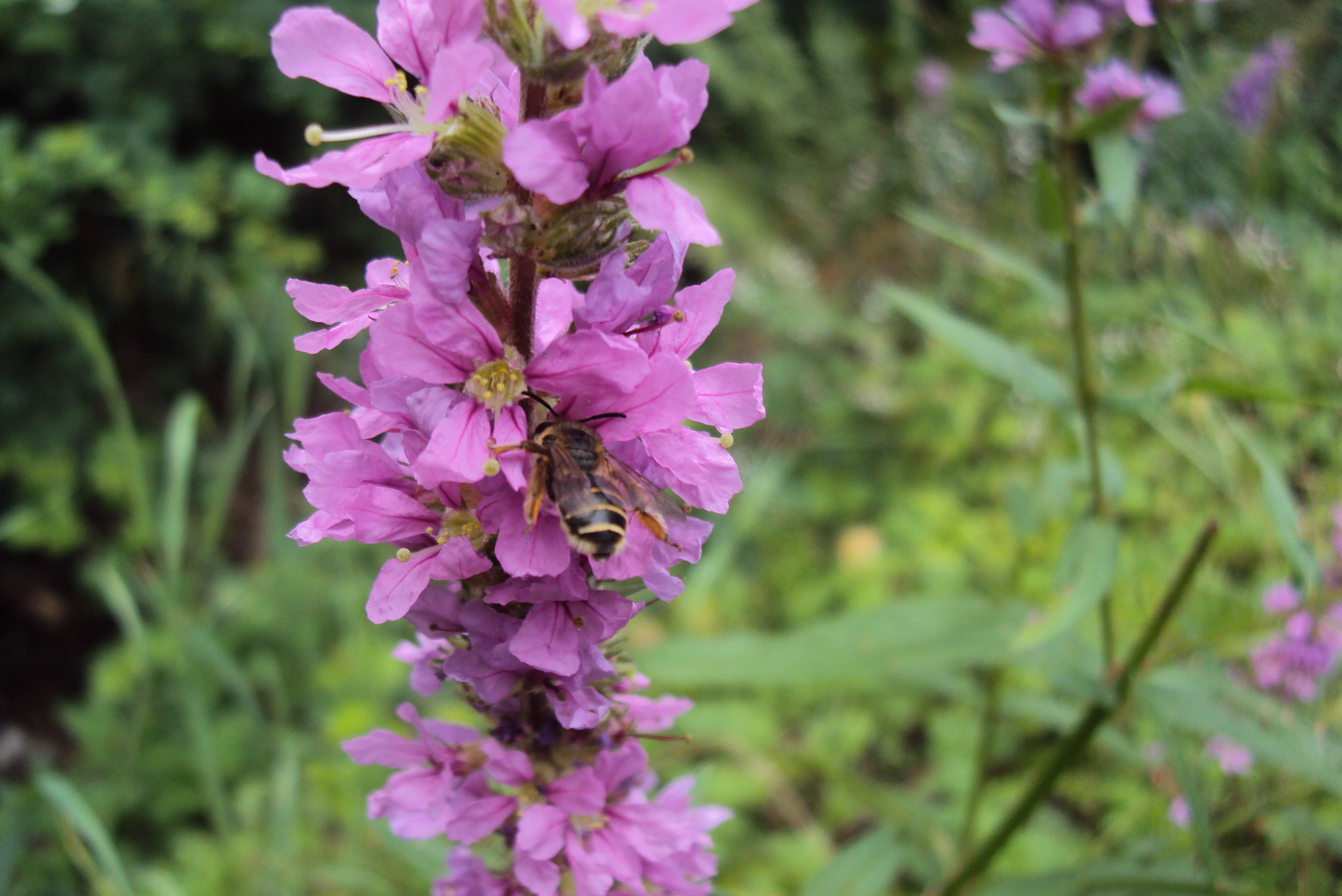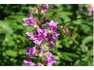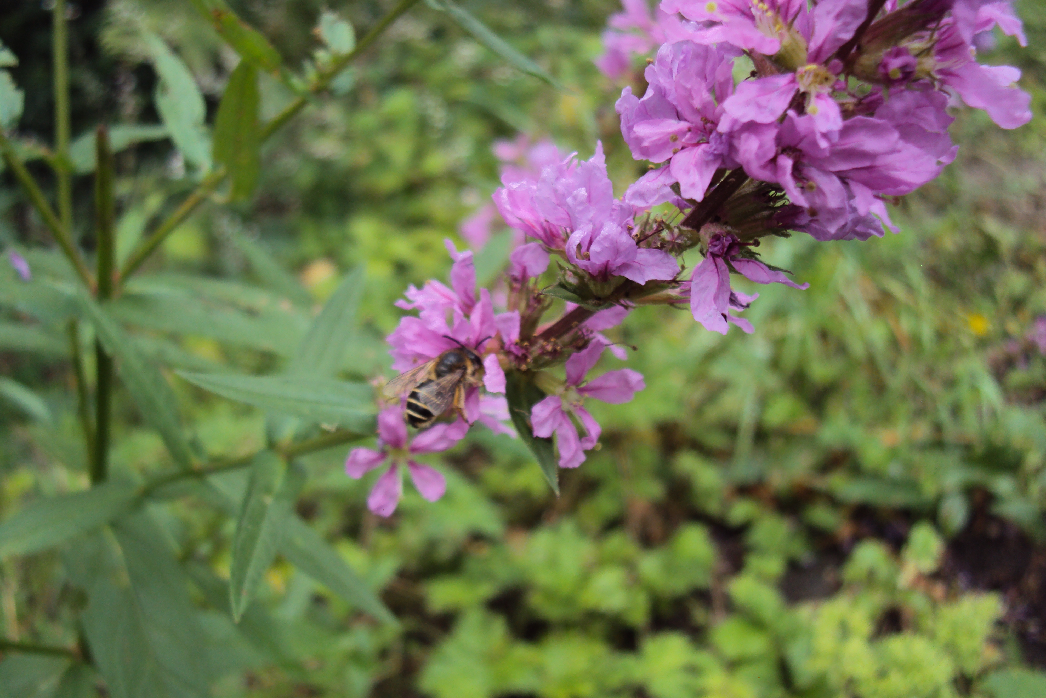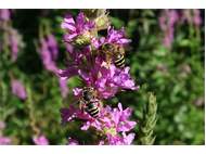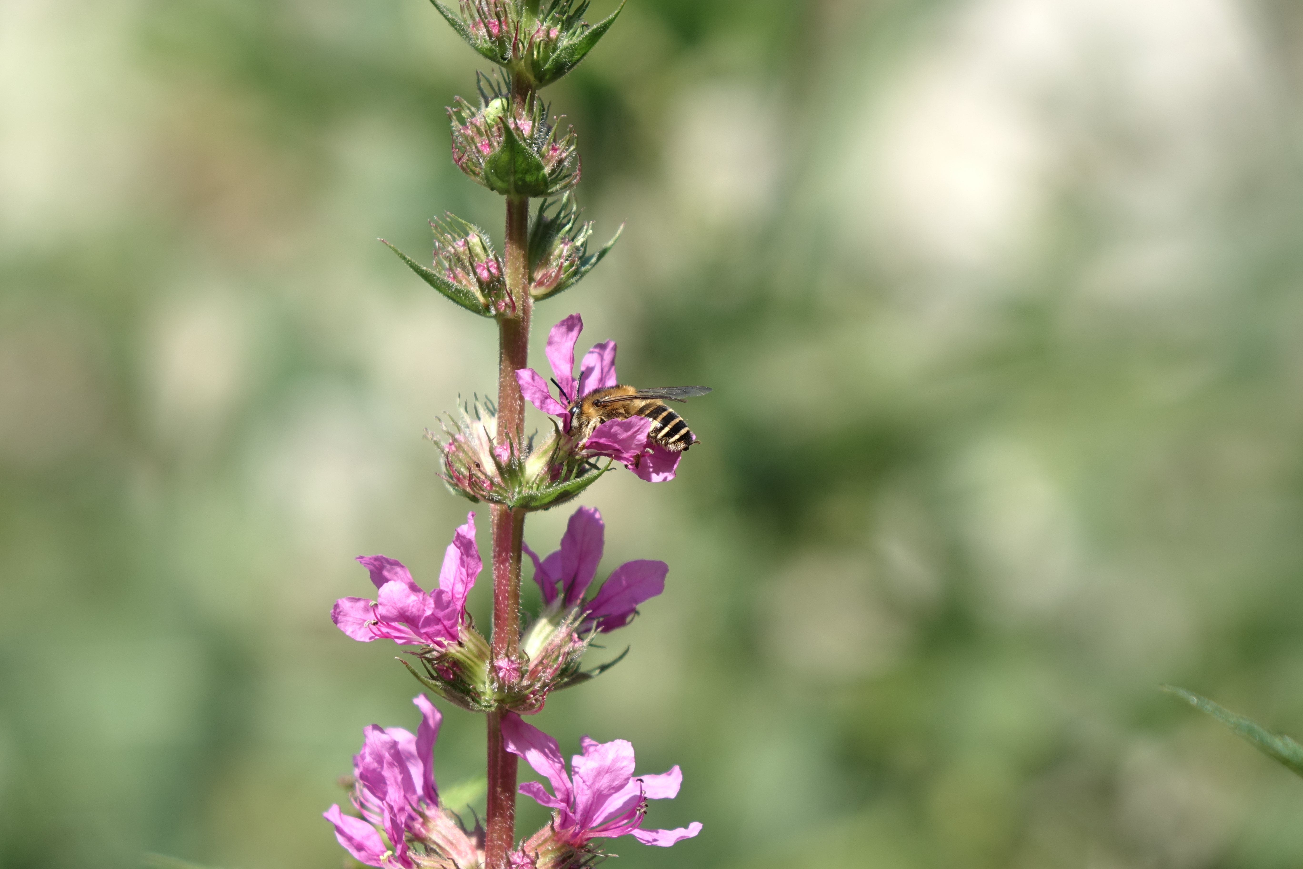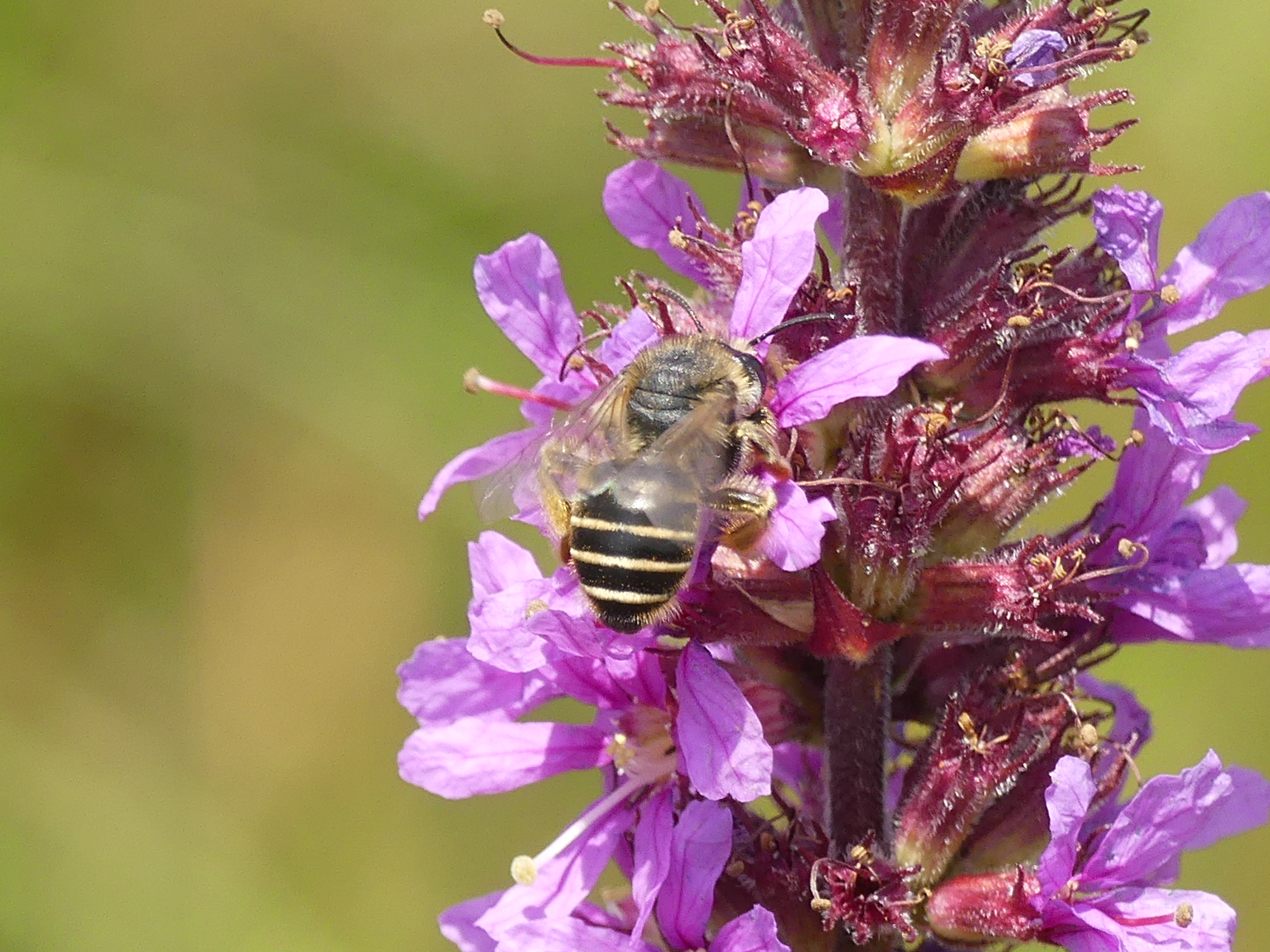 Männchen der Blutweiderich-Sägehornbiene (Melitta nigricans) an Lythrum salicaria, Pückler Park Bad Muskau, Juli 2016