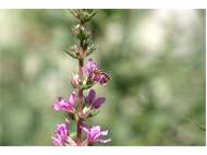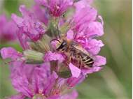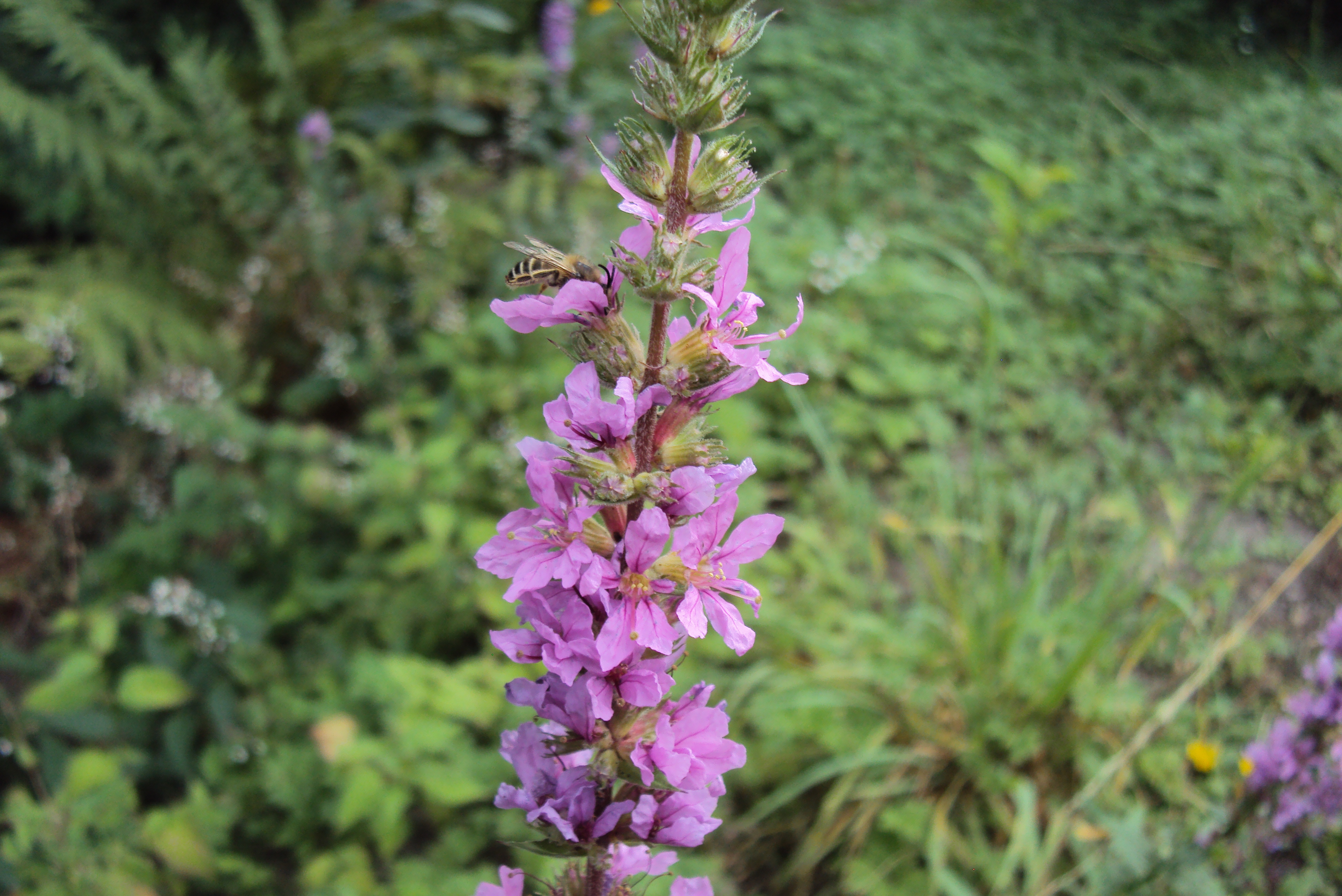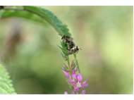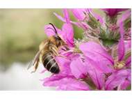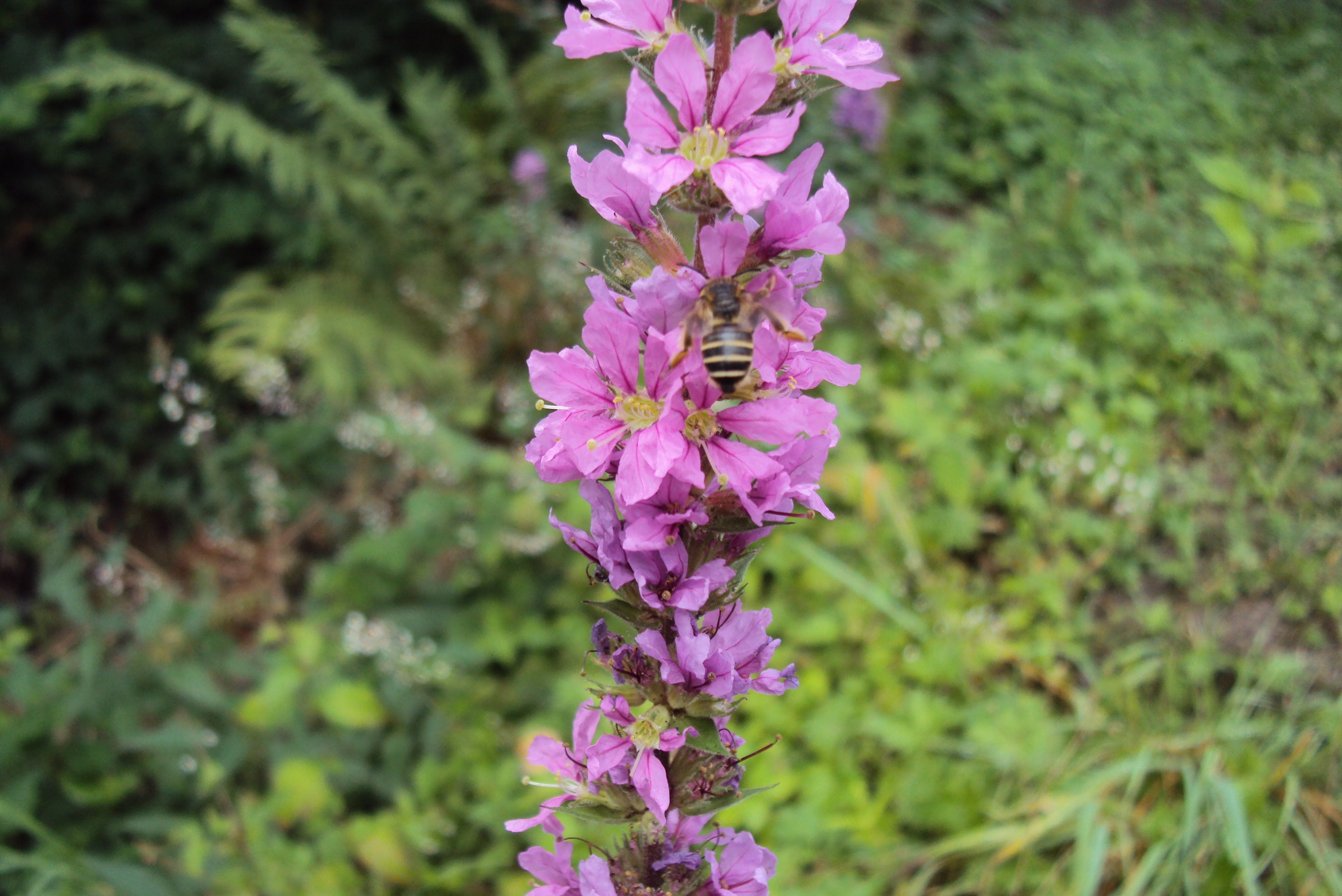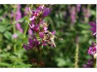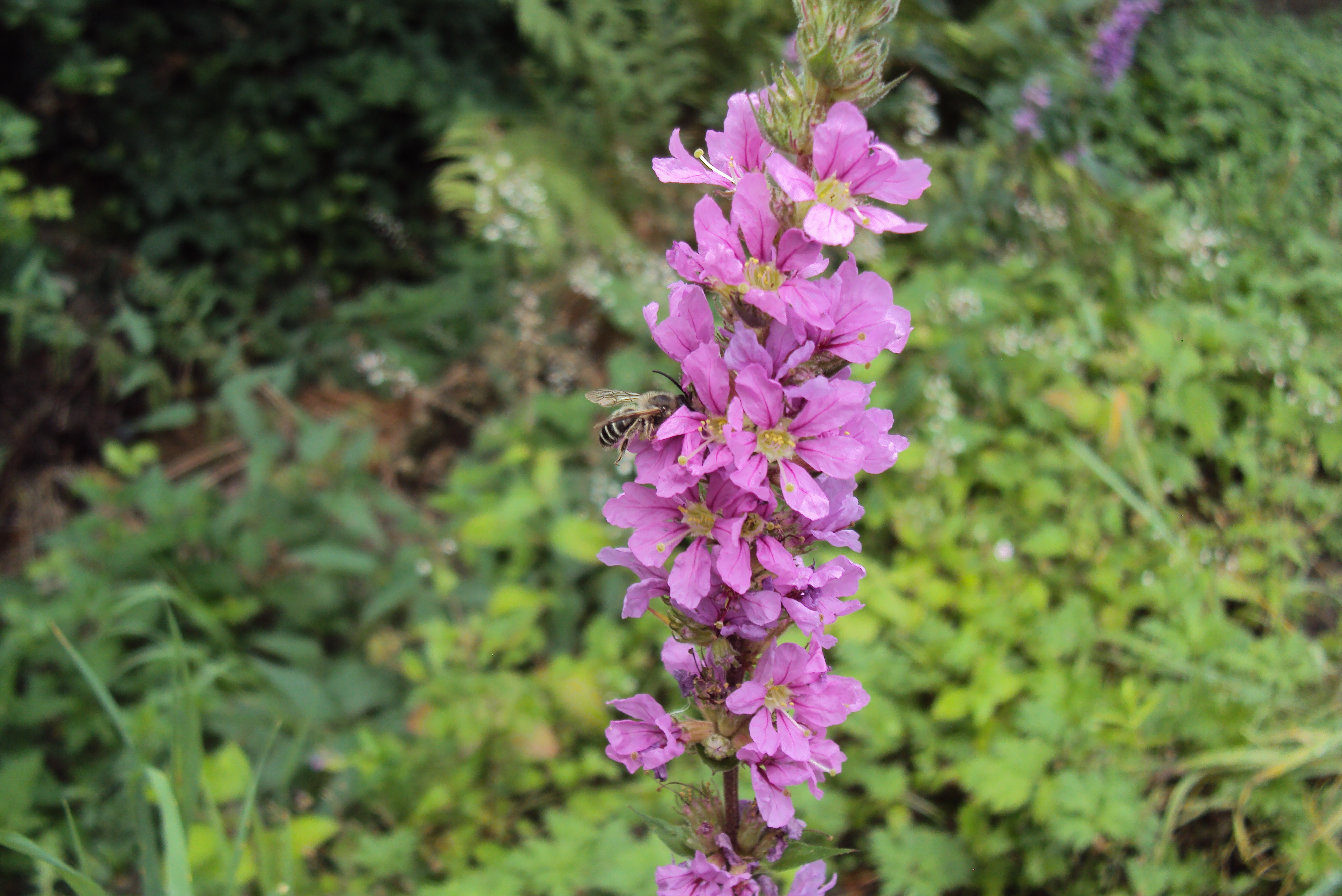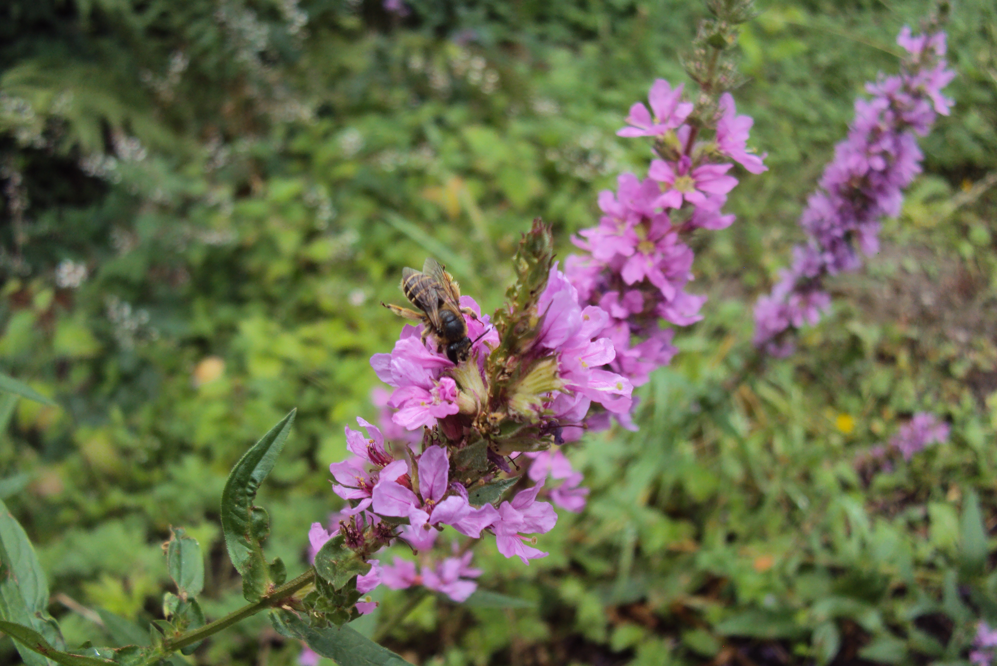 Männchen der Blutweiderich-Sägehornbiene (Melitta nigricans) an Lythrum salicaria, Pückler Park Bad Muskau, Juli 2016