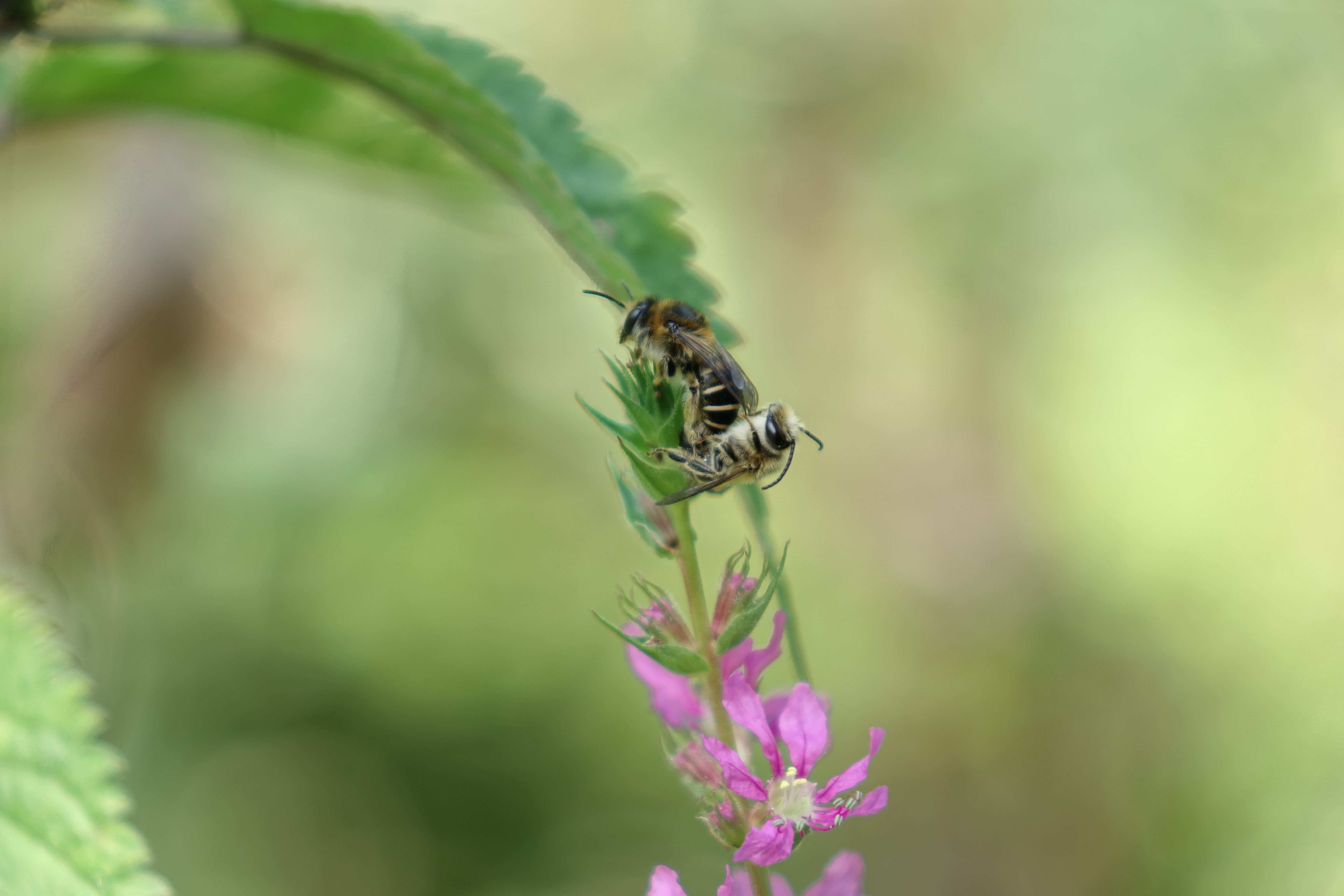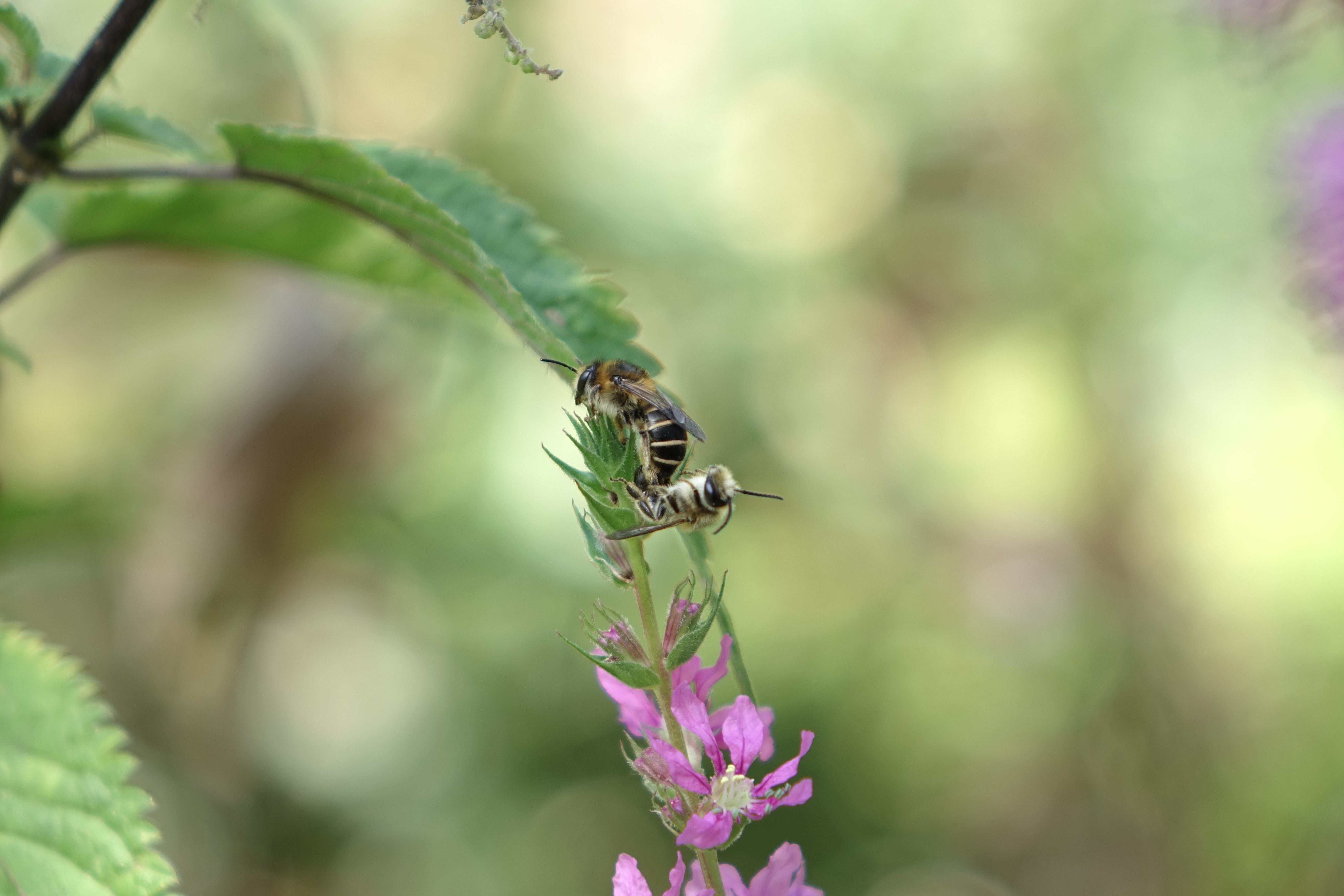 Melitta nicricans, Männchen und Weibchen an Lythrum salicaria in Dresden, Juli 2015
