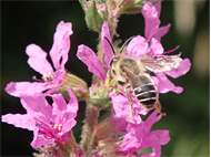 Weibchen der Blutweiderich-Sägehornbiene (Melitta nigricans) an Lythrum salicaria, Pückler Park Bad Muskau, Juli 2016