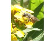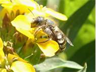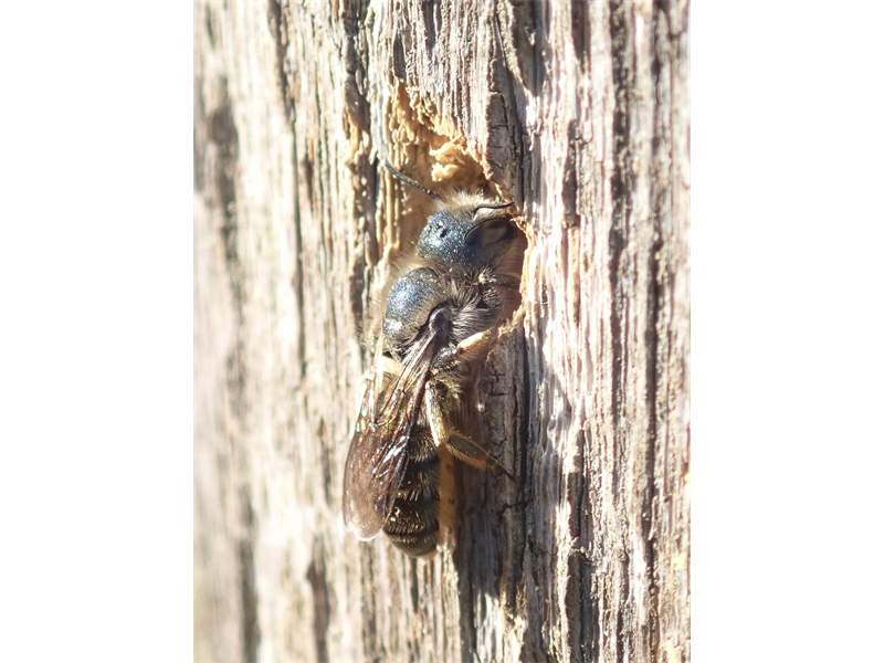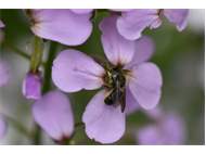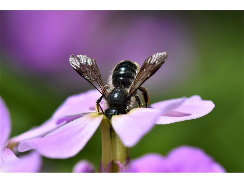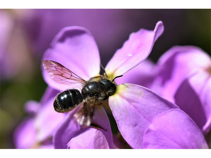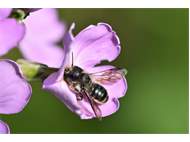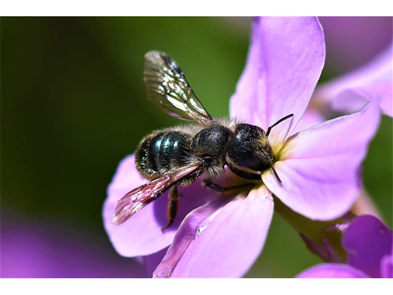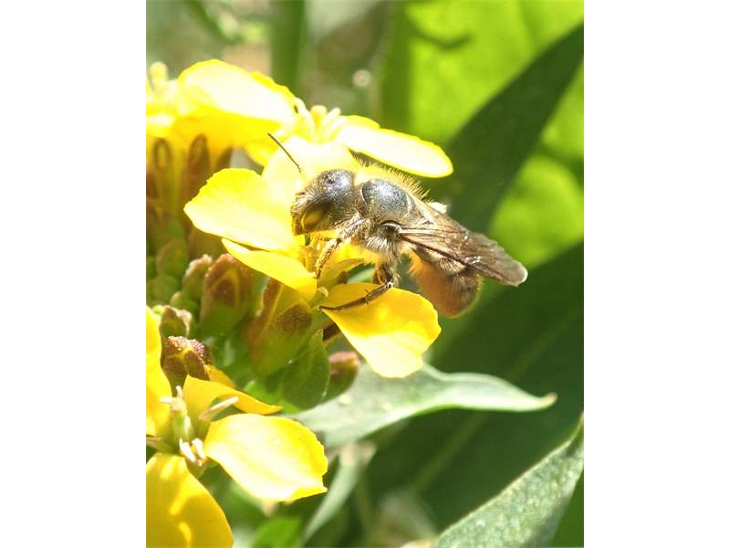 Osmia brevicornis (Fabricius, 1798), Weibchen an Goldlack (Cheiranthus cheiri), Gleisberg, Mai 2018 (© Andreas Hurtig)( Bild vergrößern)