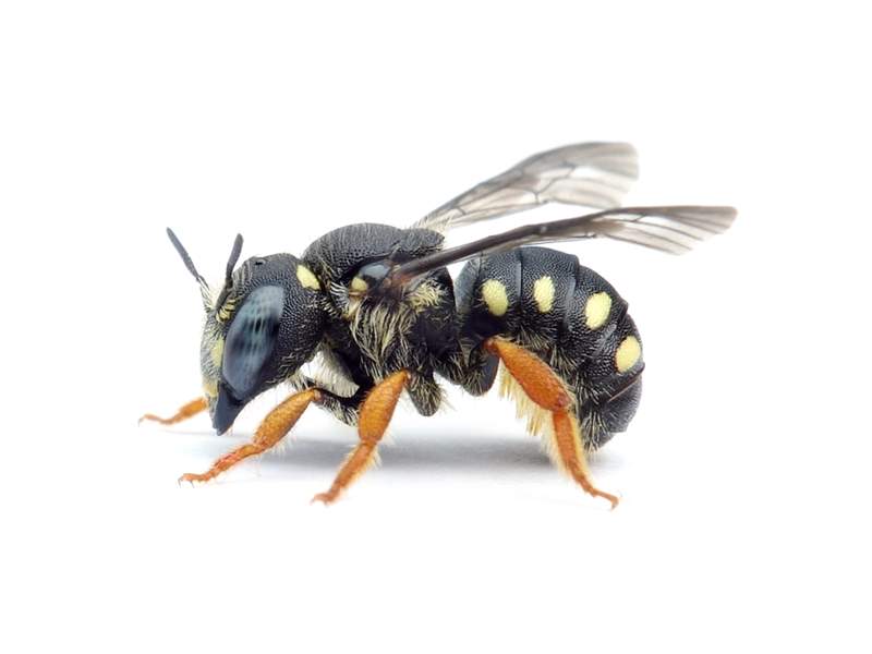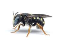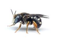 Pseudoanthidium nanum, gelb gezeichnetes Weibchen, Dresden, April 2024 (© Michael & Mandy Fritzsche)( Bild vergrößern)