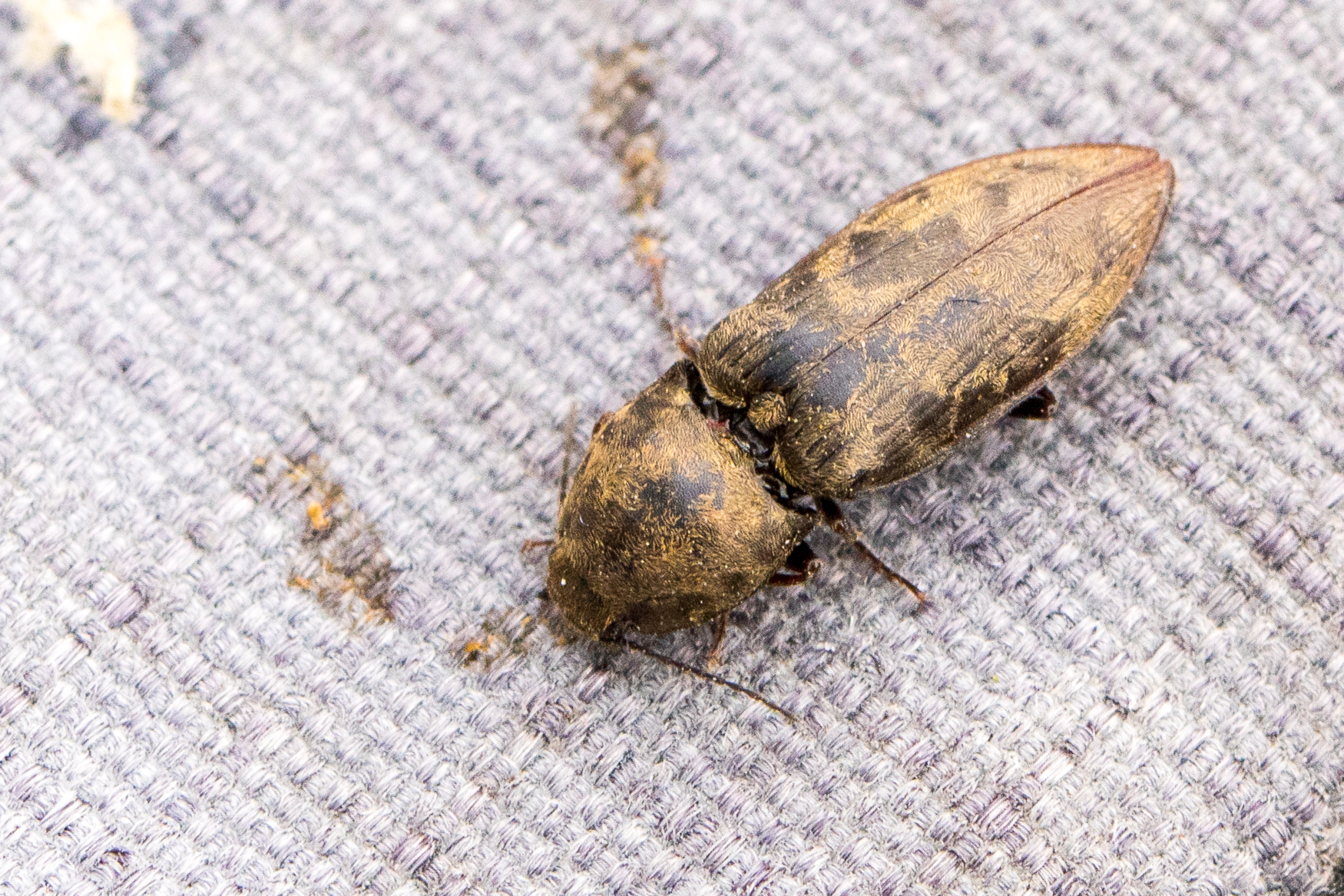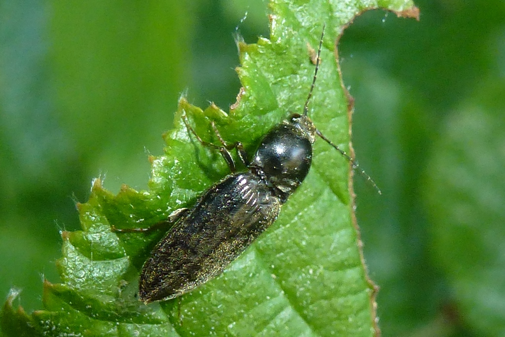 Seidenhaariger Schnellkäfer am 16.07.2016 im Tharandter Wald am Wiesenweg. Die seidige Haarstruktur ist bei diesem Exemplar nur noch in Ansätzen zu erkennen