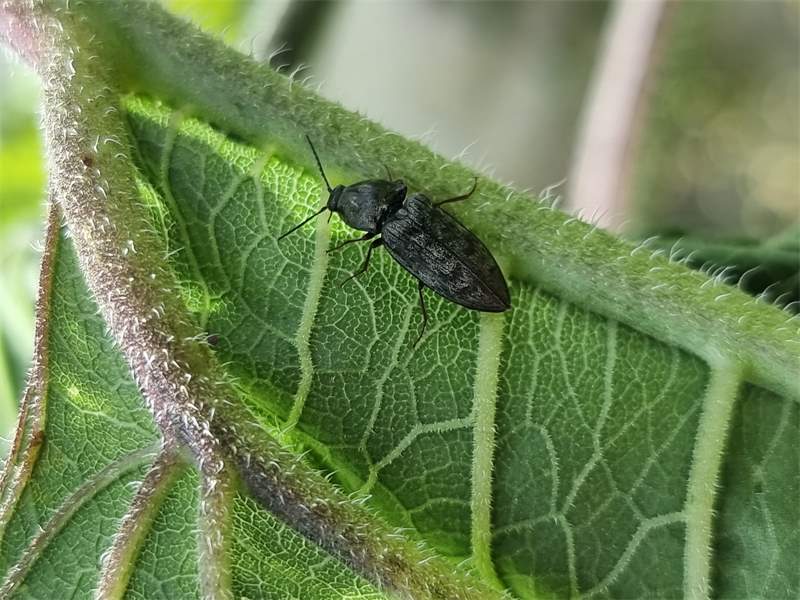 Seidenhaariger Schnellkäfer auf Streuobstwiese neben Mischwald, Juli 2017