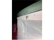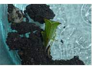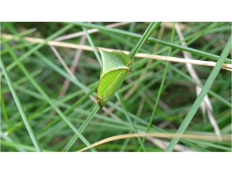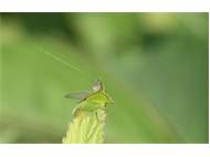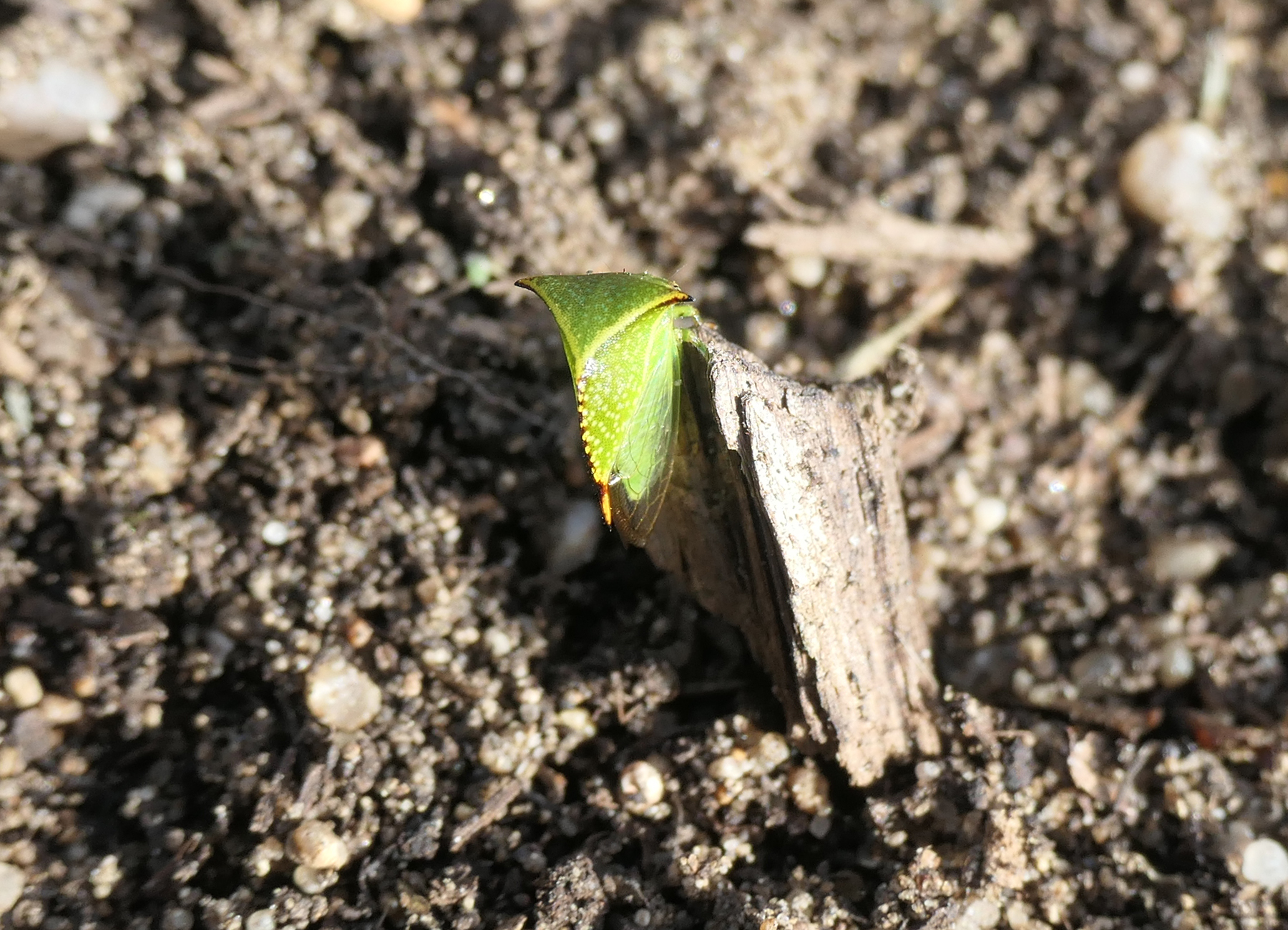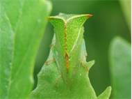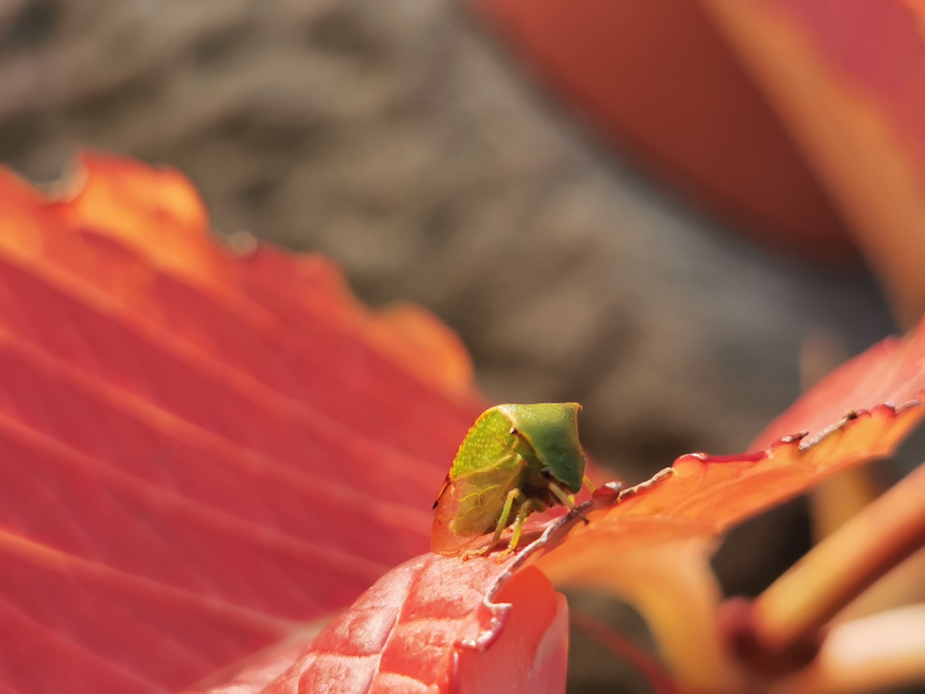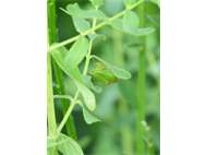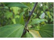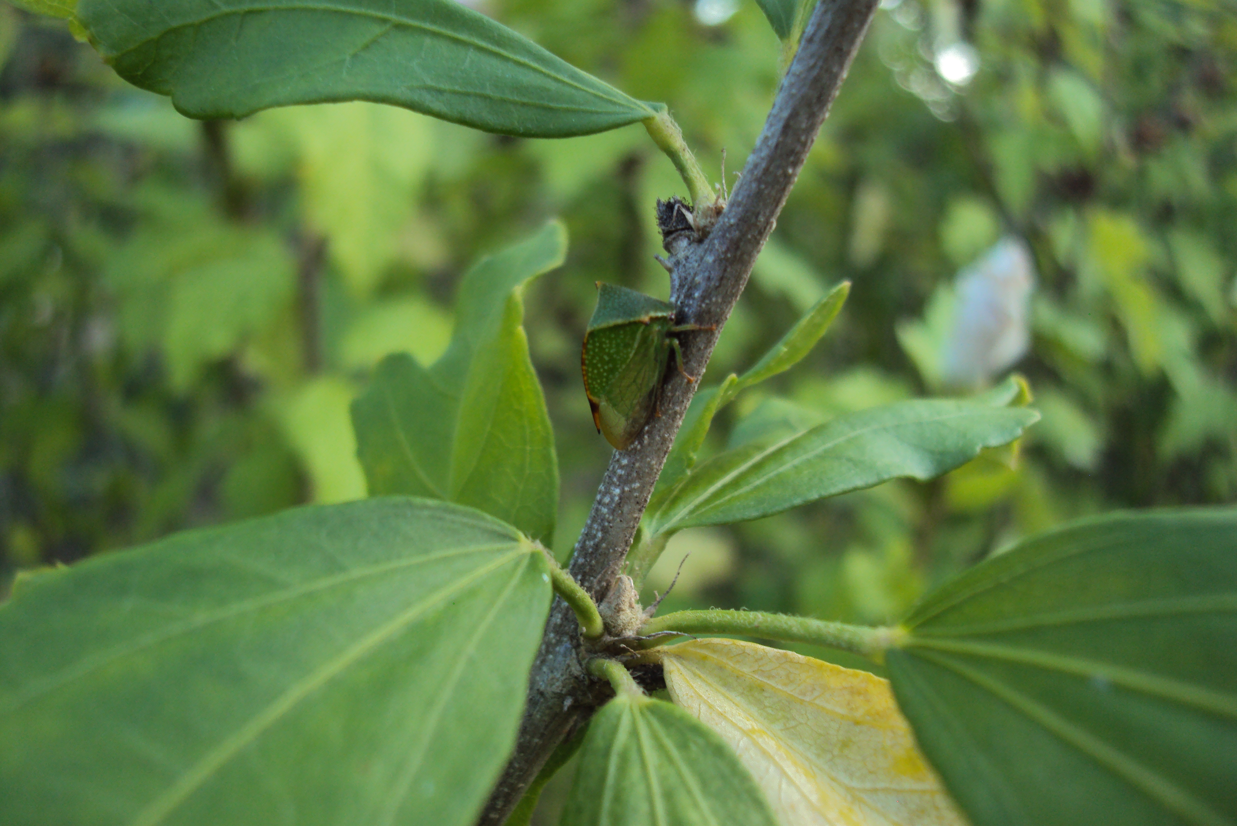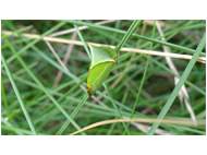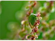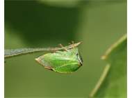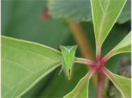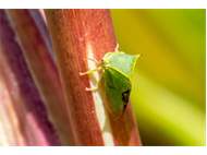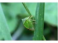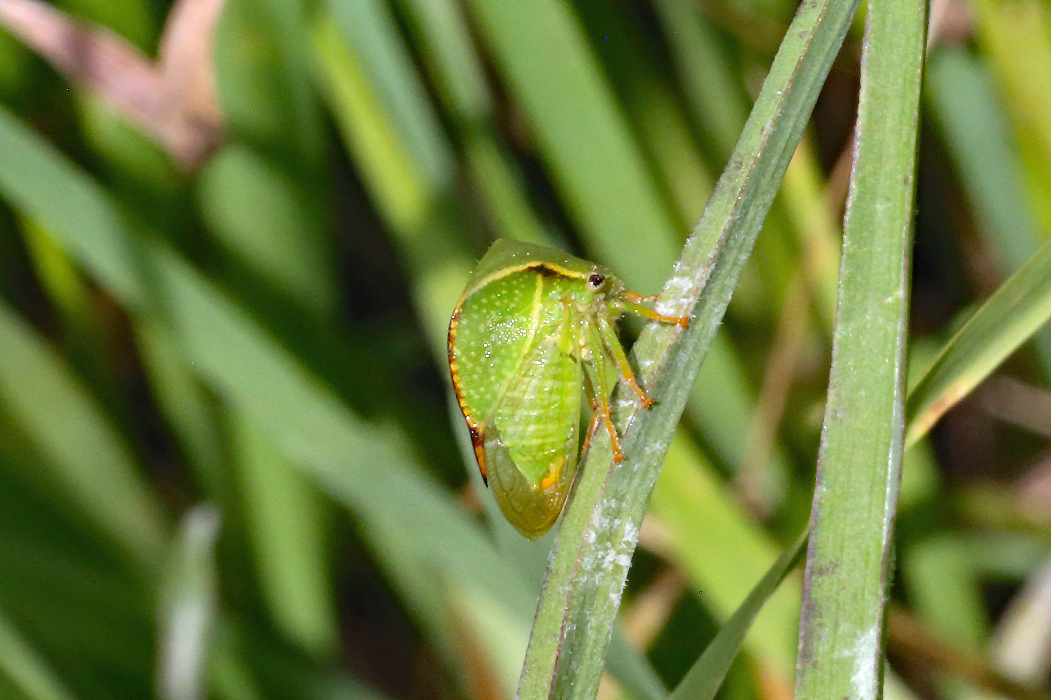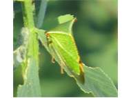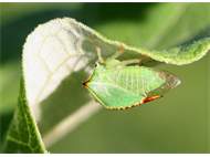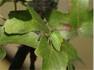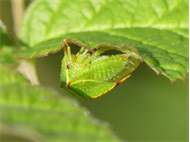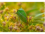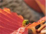 Büffelzikade, Stictocephala bisonia, als Beute einer Spinne auf einem Himbeerstrauch, Leipzig, Ortsteil Thekla, Sep. 2012 (© Victor Weiler)( Bild vergrößern)