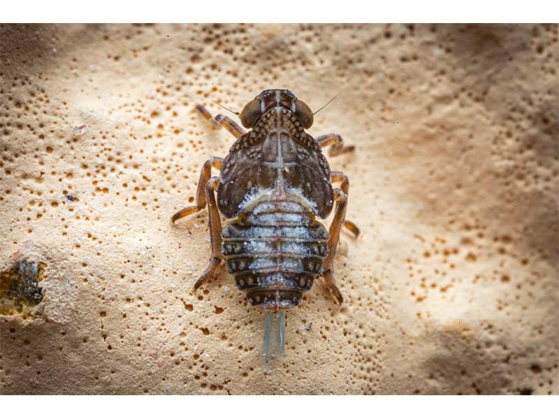 Issus coleoptratus: nur die äußerste Tarsenspitze ist dunkel gefärbt
