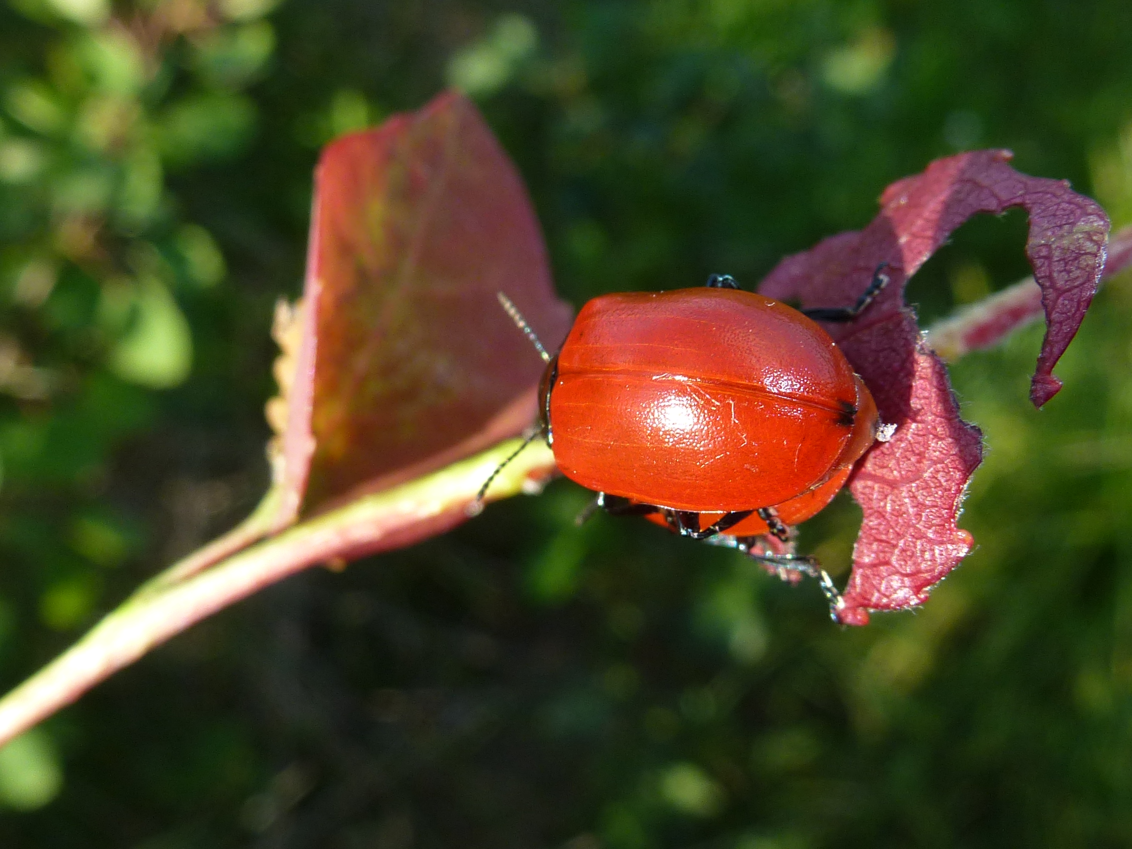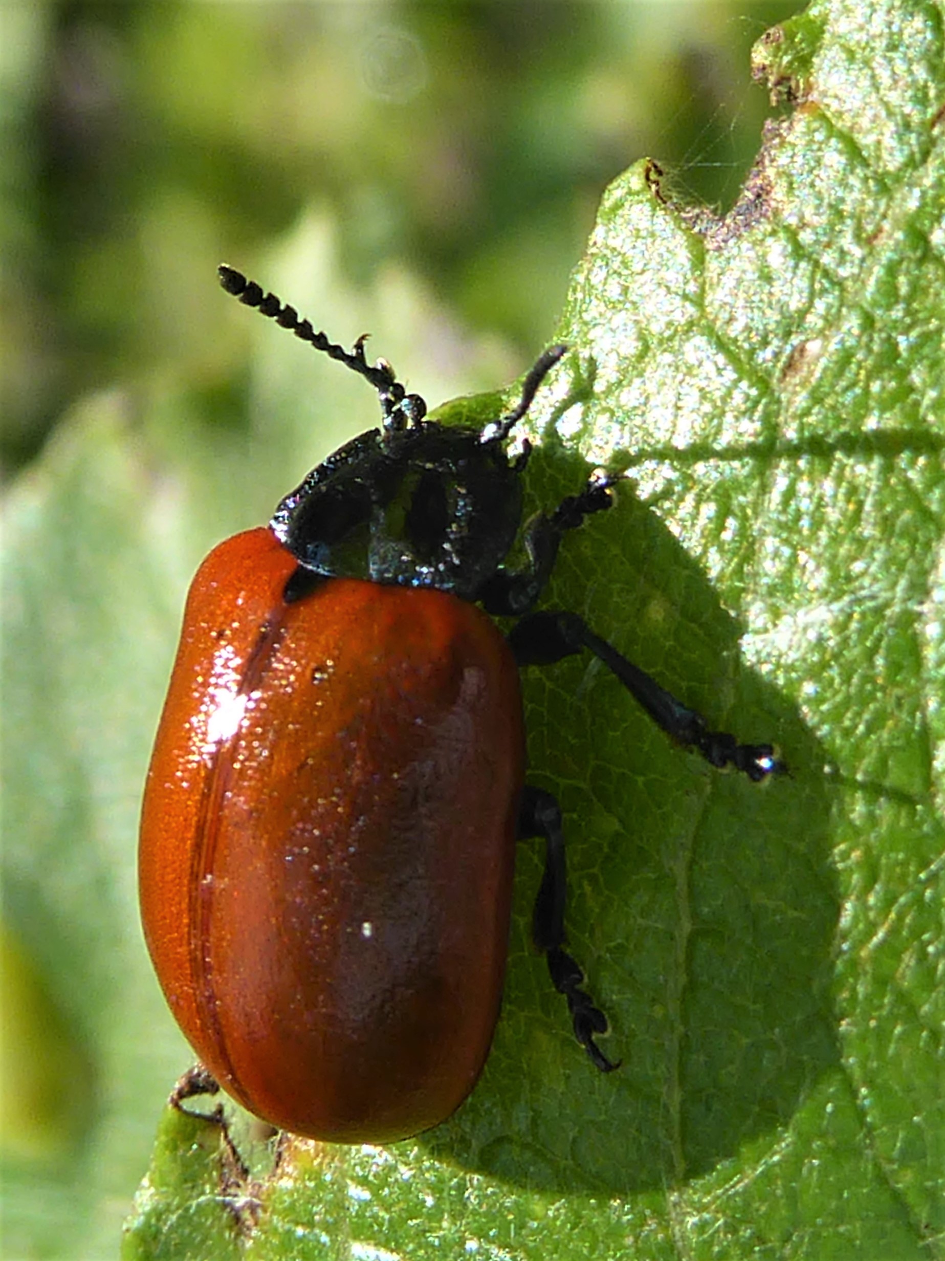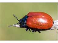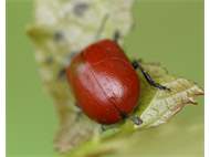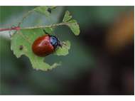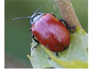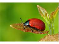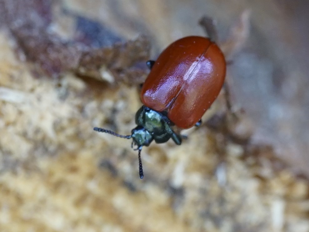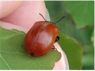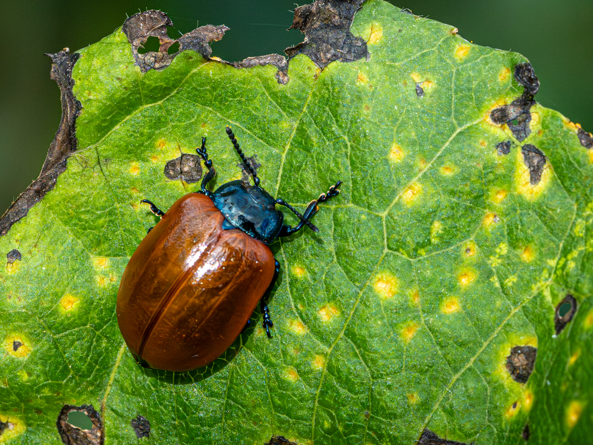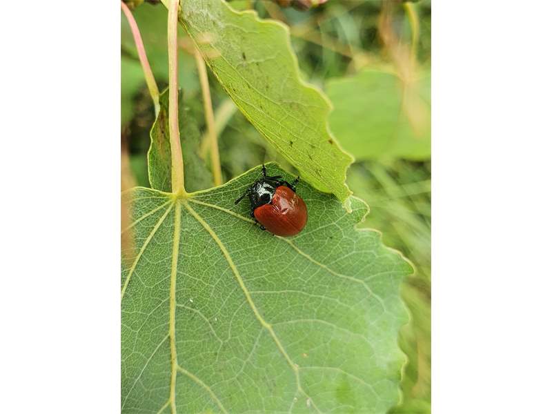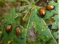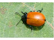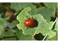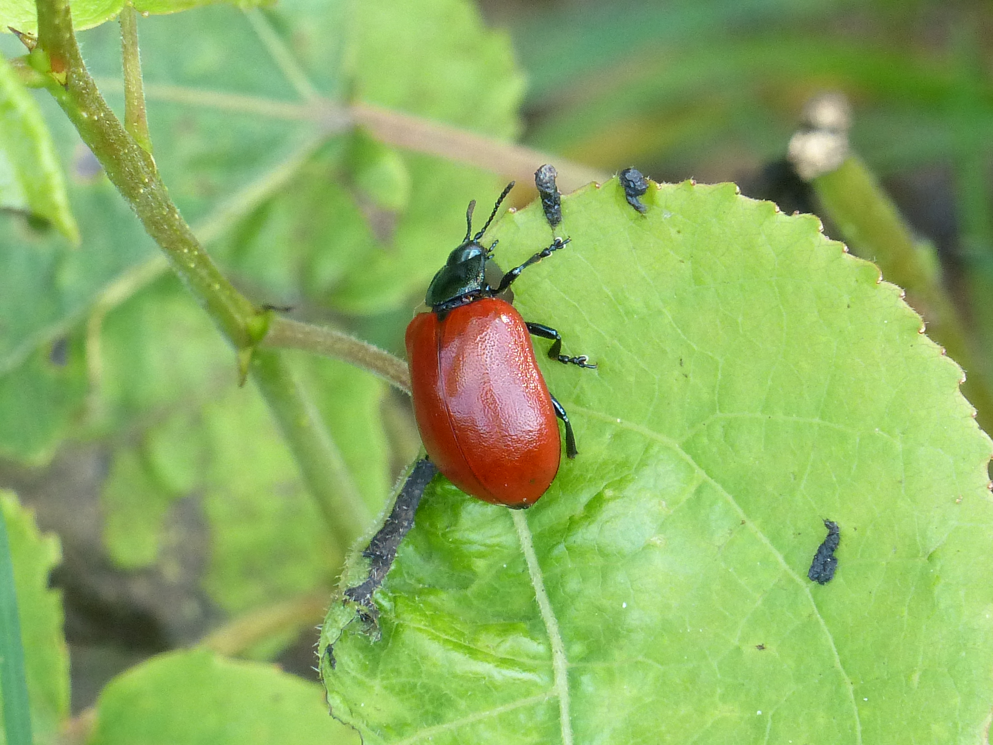 Pappelblattkäfer (Chrysomela populi) in der Gemarkung Hohenprießnitz, Sportplatz, nördlicher Waldrand, auf einer Espe (Populus tremula), April 2014 (© Michael Happ)( Bild vergrößern)