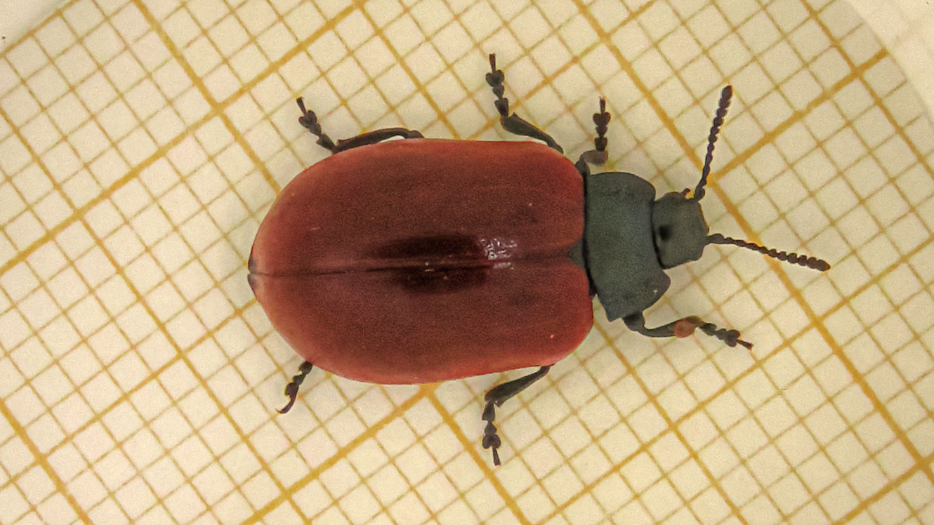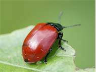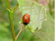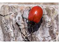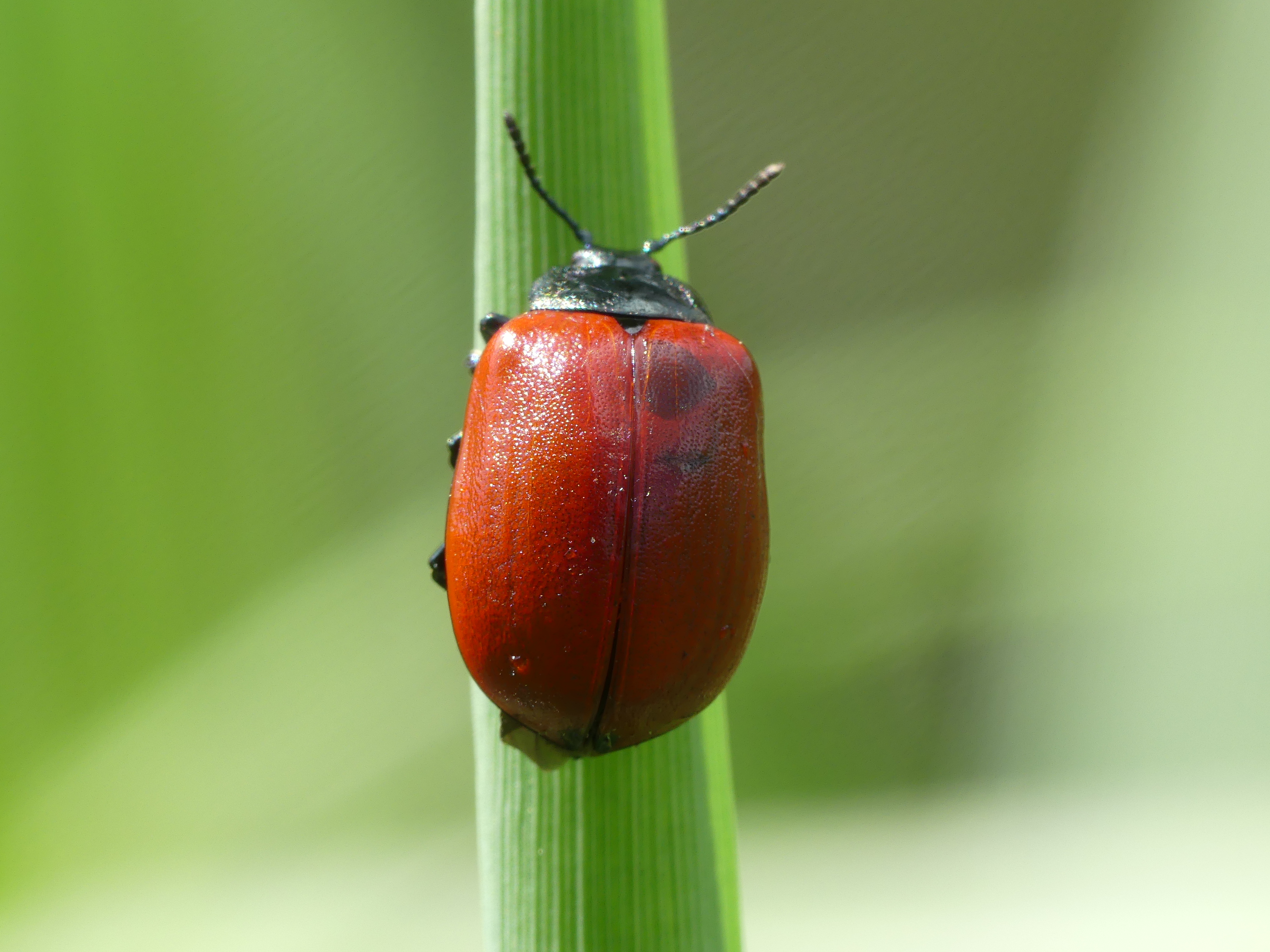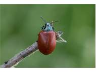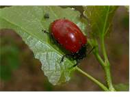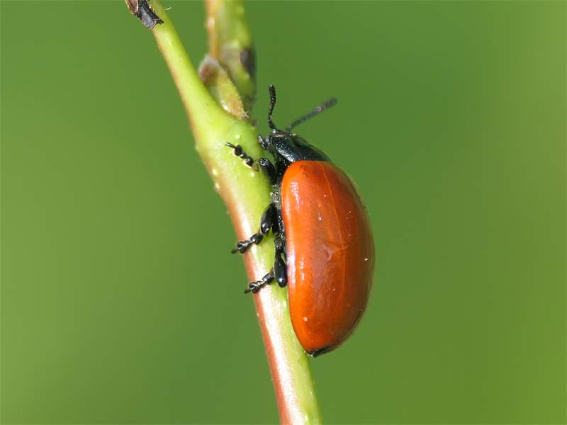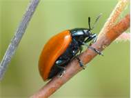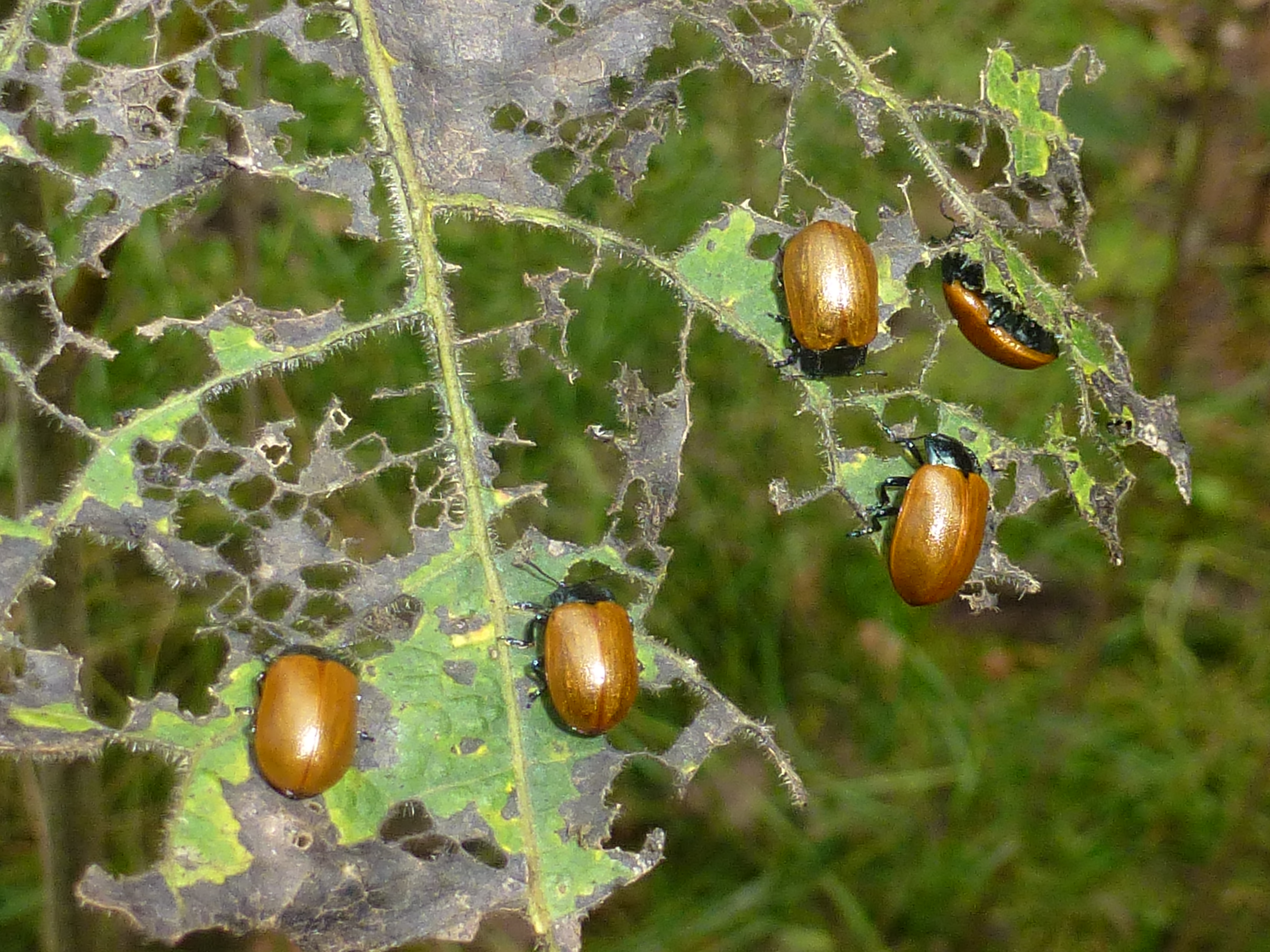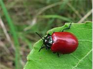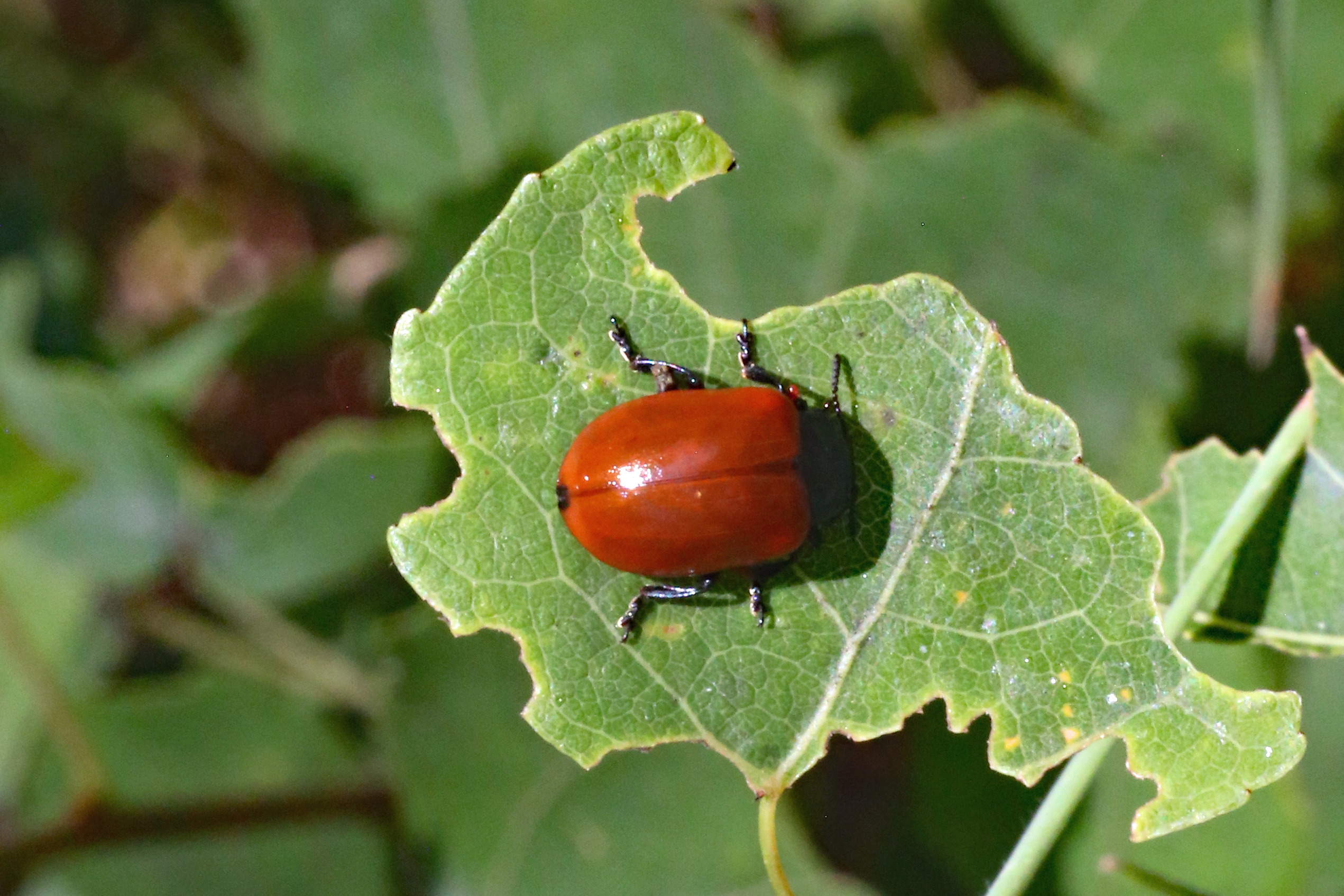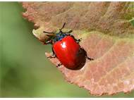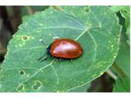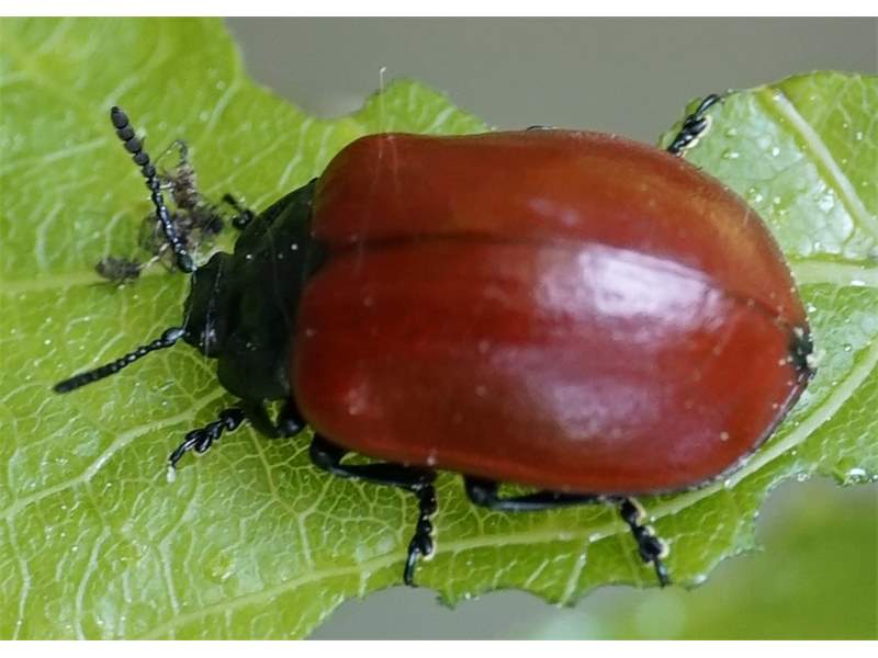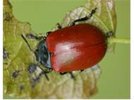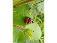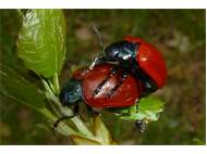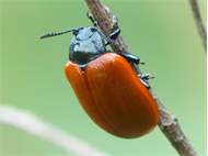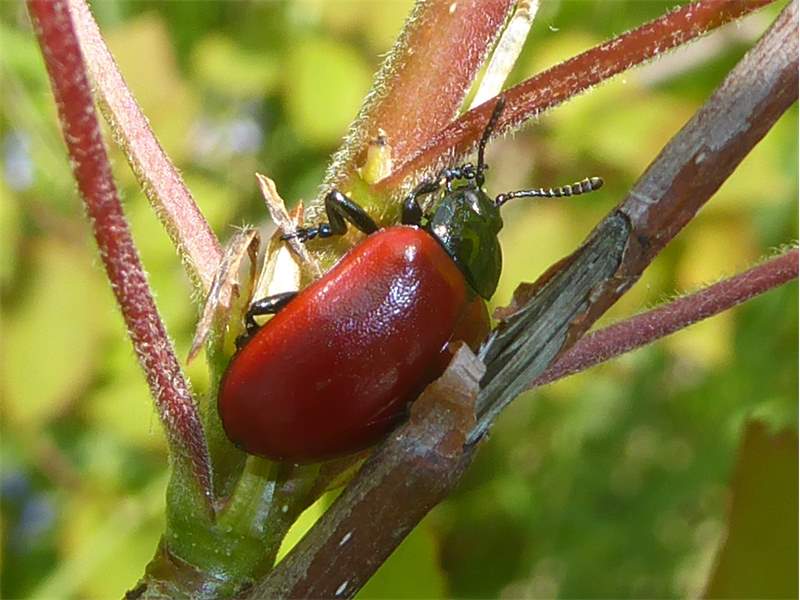 Pappelblattkäfer (Chrysomela populi) in der Gemarkung Hohenprießnitz, Sportplatz, nördlicher Waldrand, auf einer Espe (Populus tremula), April 2014 (© Michael Happ)( Bild vergrößern)