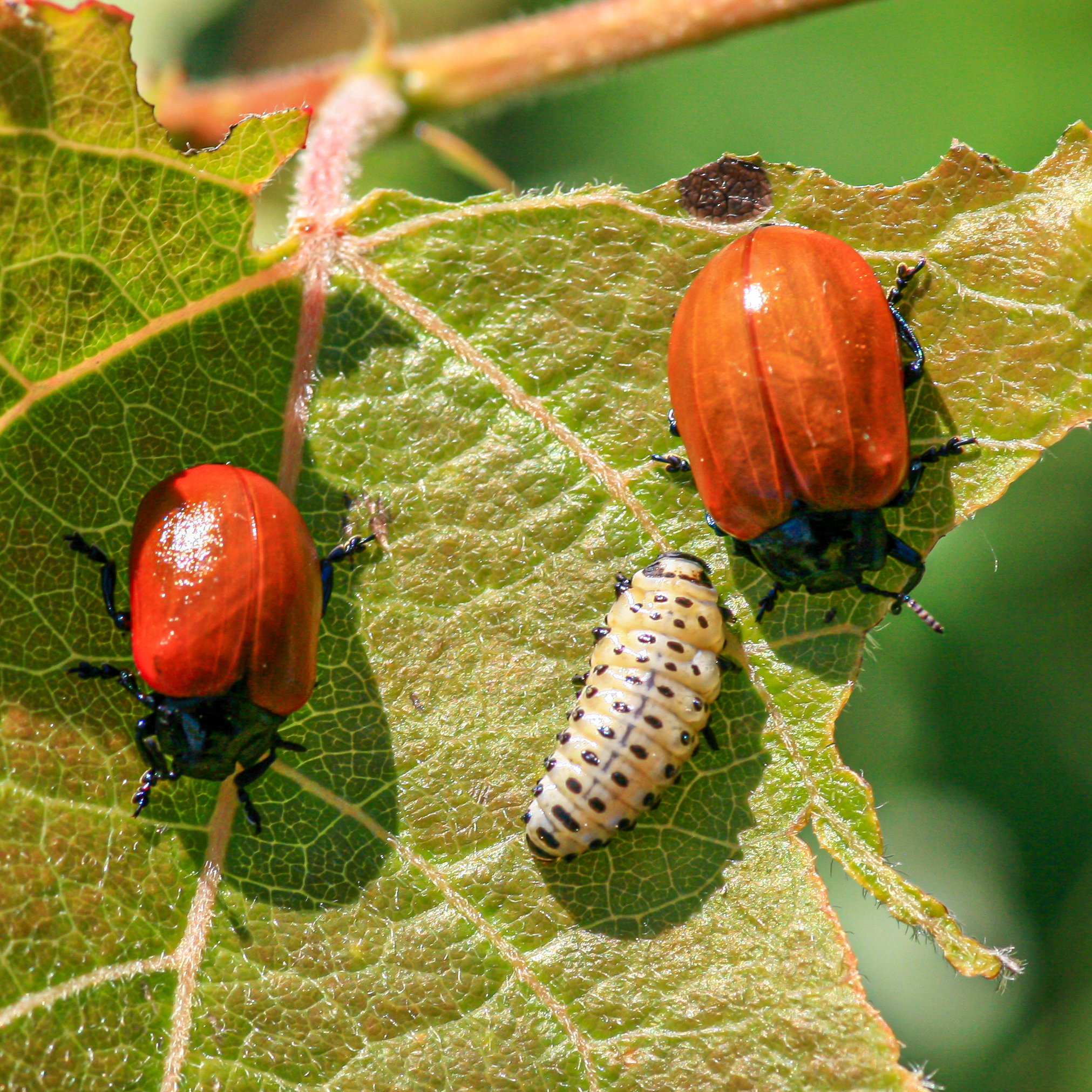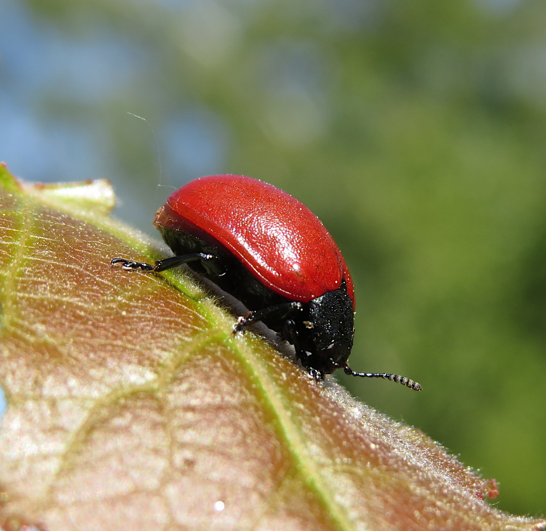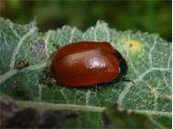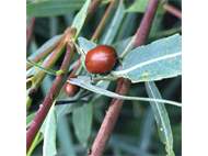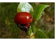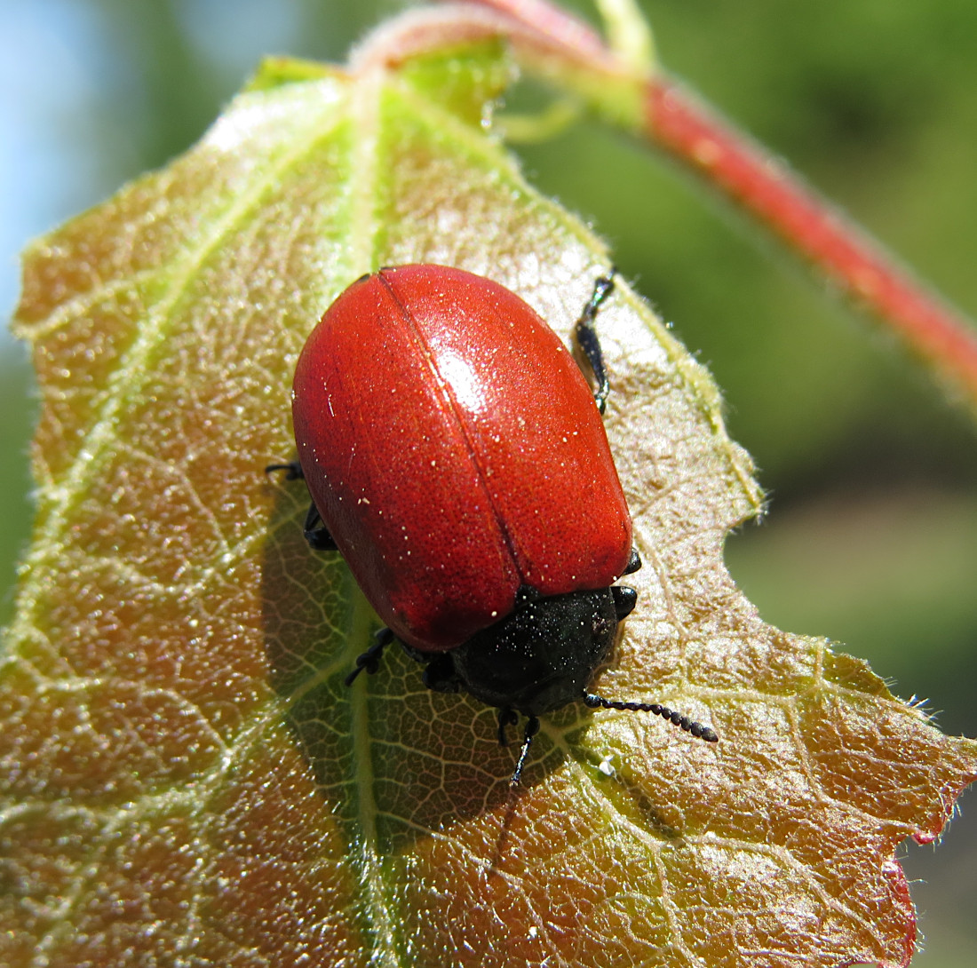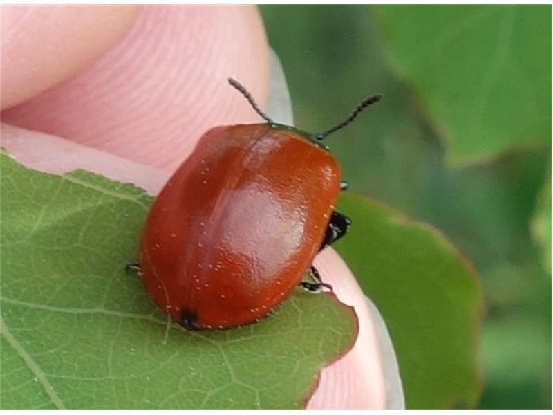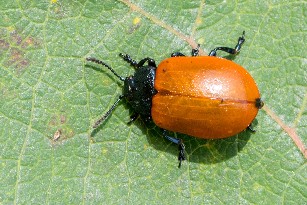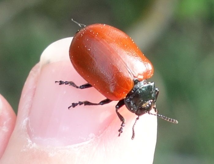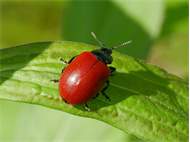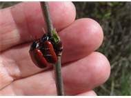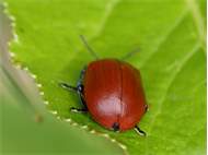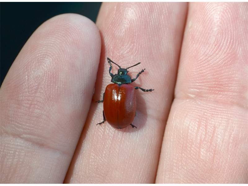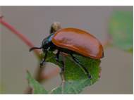 Pappelblattkäfer (Chrysomela populi) in der Gemarkung Hohenprießnitz, Sportplatz, nördlicher Waldrand, auf einer Espe (Populus tremula), April 2014 (© Michael Happ)( Bild vergrößern)