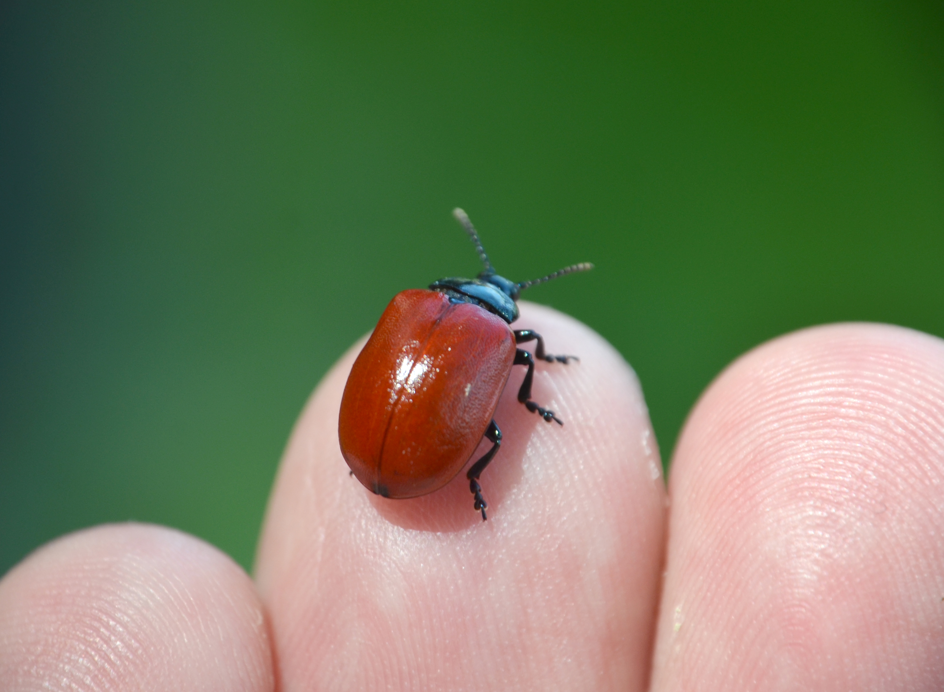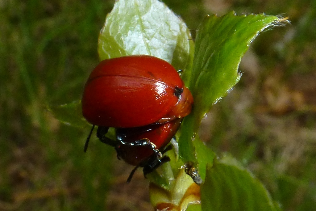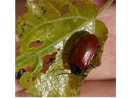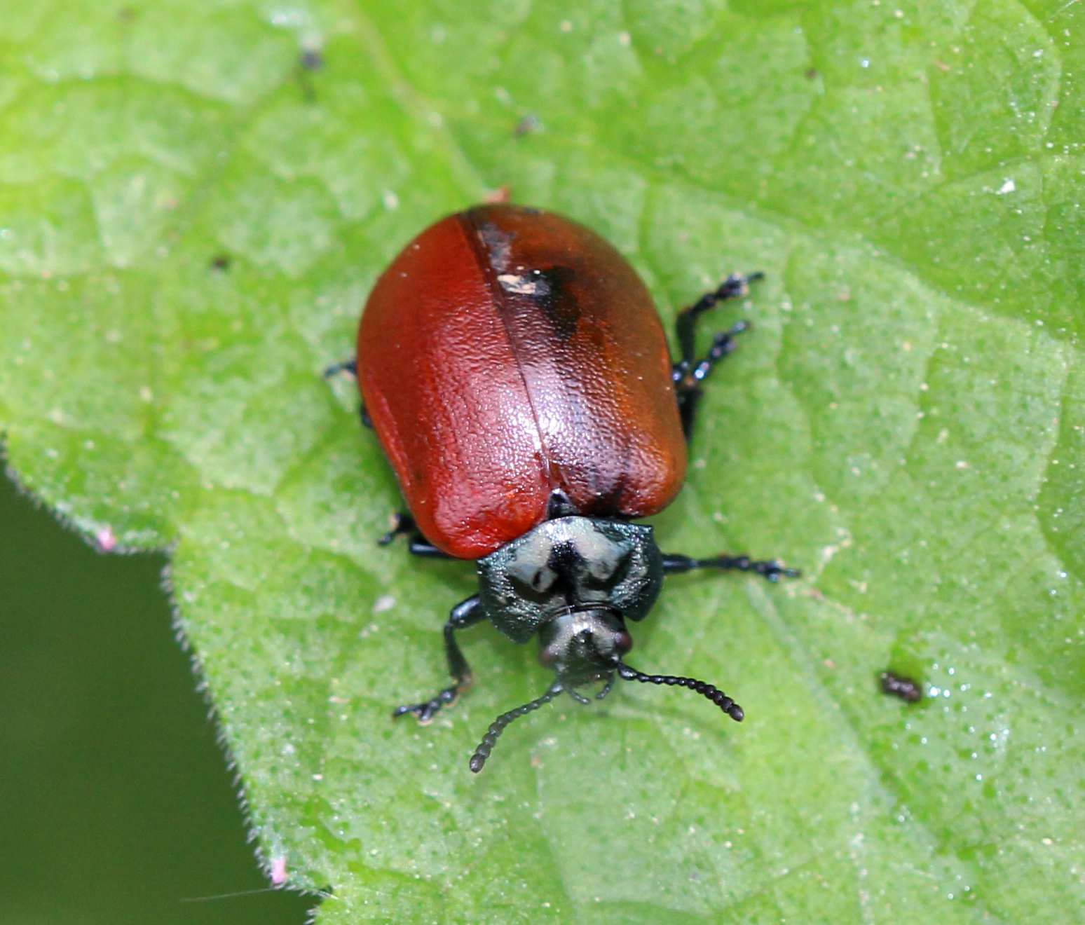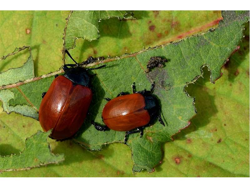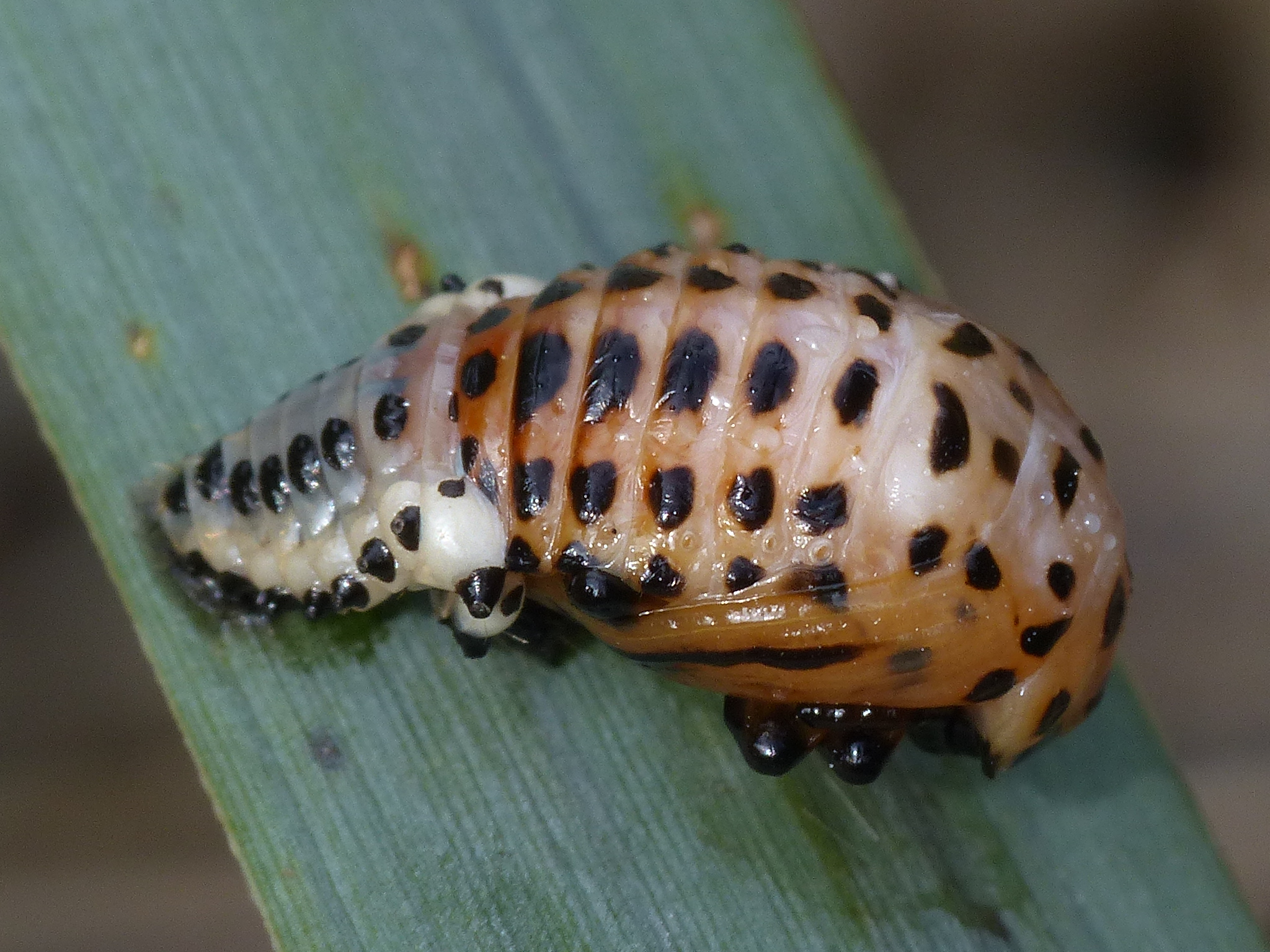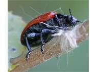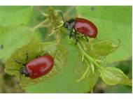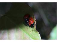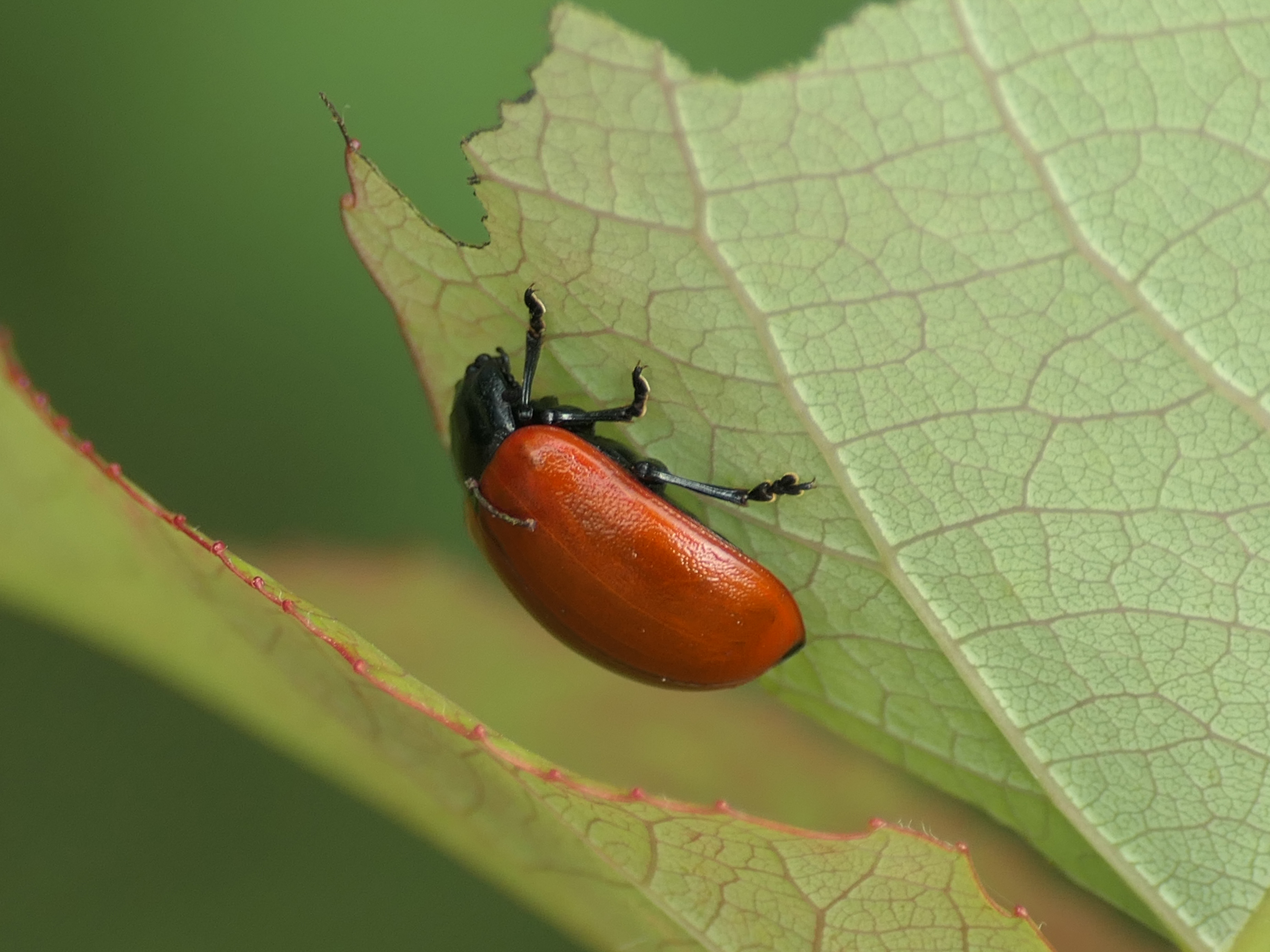 Pappelblattkäfer (Chrysomela populi) in der Gemarkung Hohenprießnitz, Sportplatz, nördlicher Waldrand, auf einer Espe (Populus tremula), April 2014 (© Michael Happ)( Bild vergrößern)