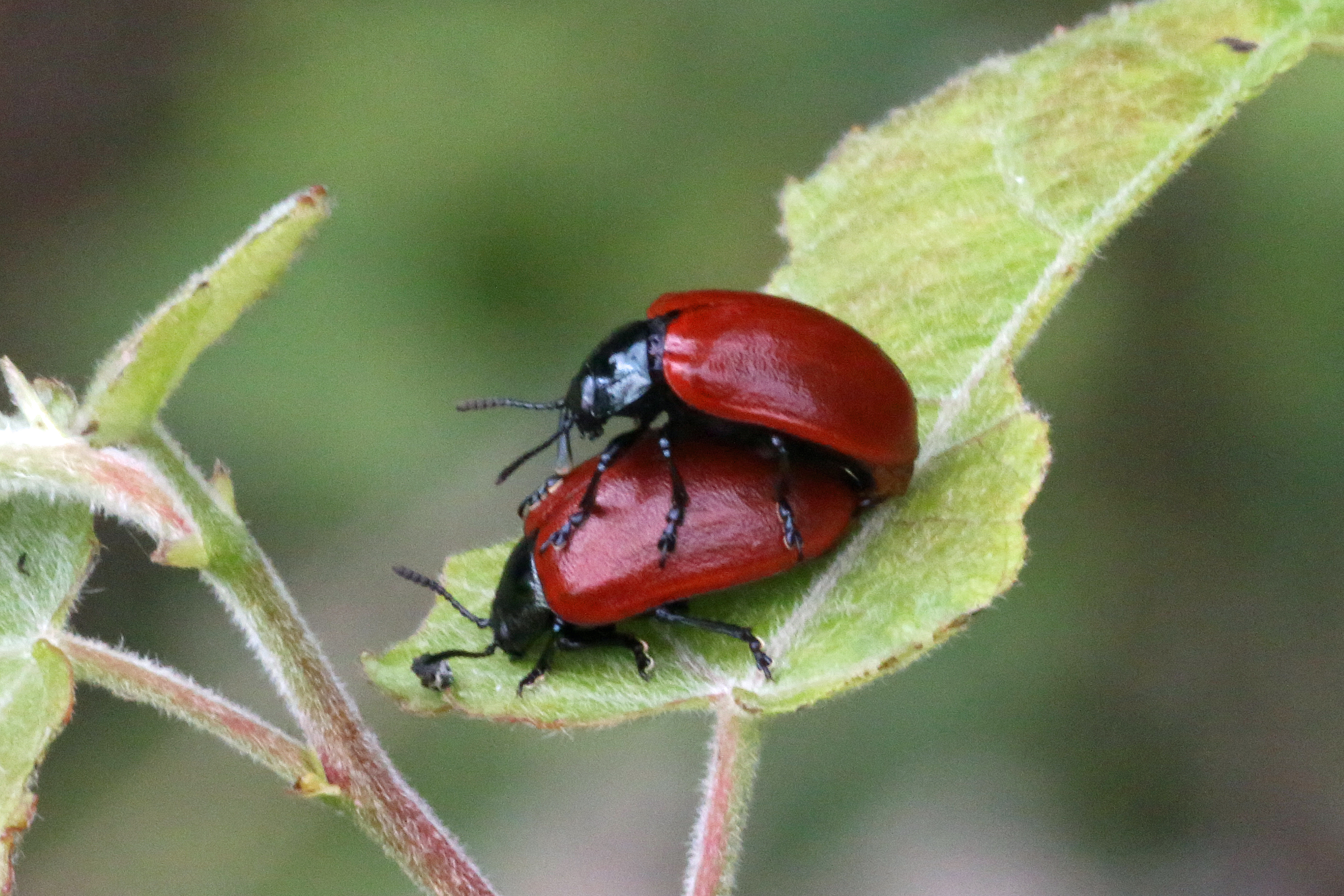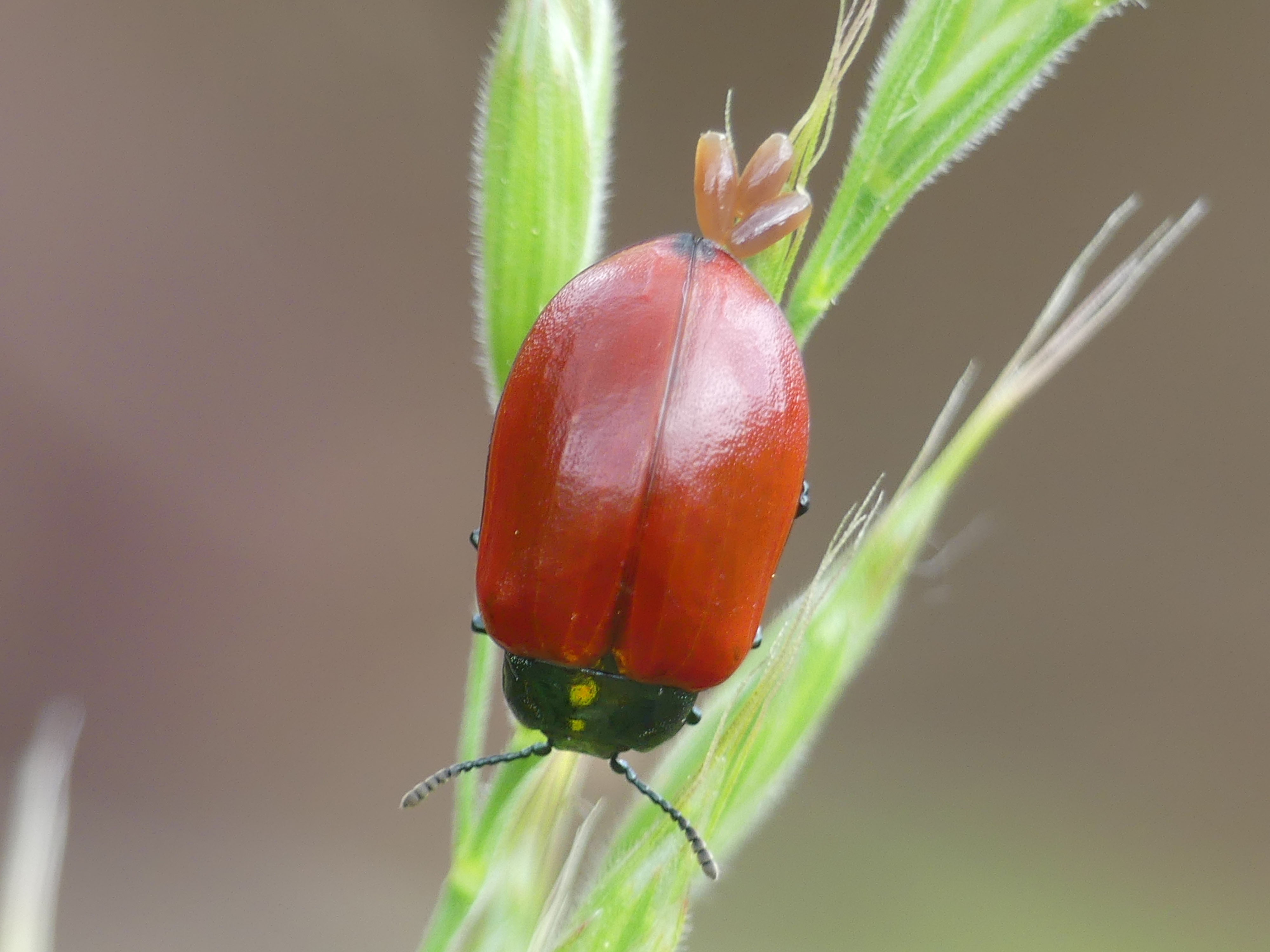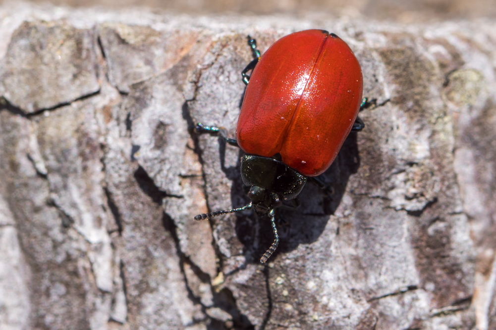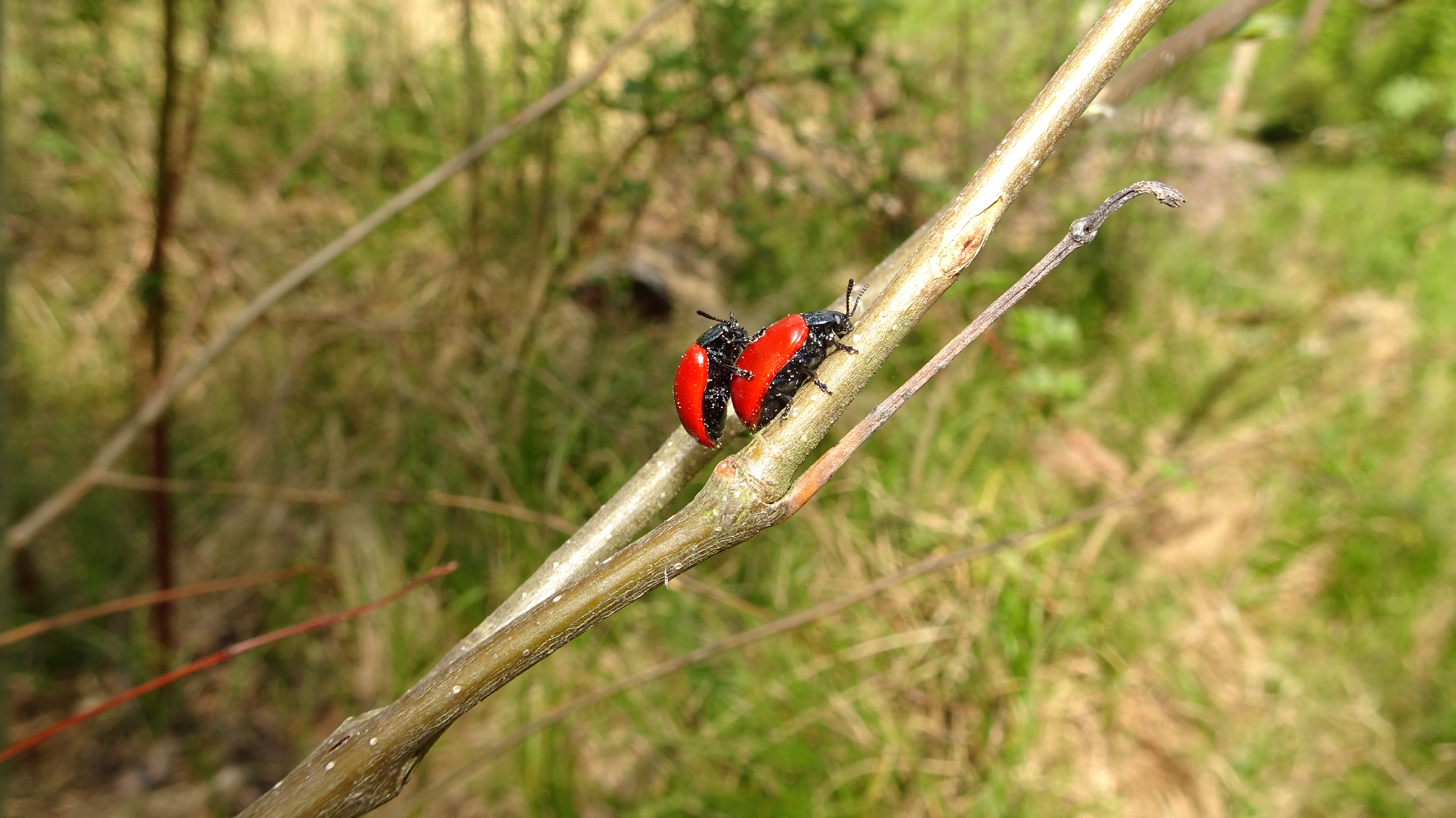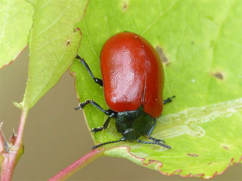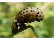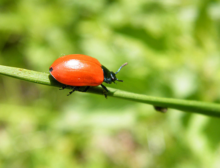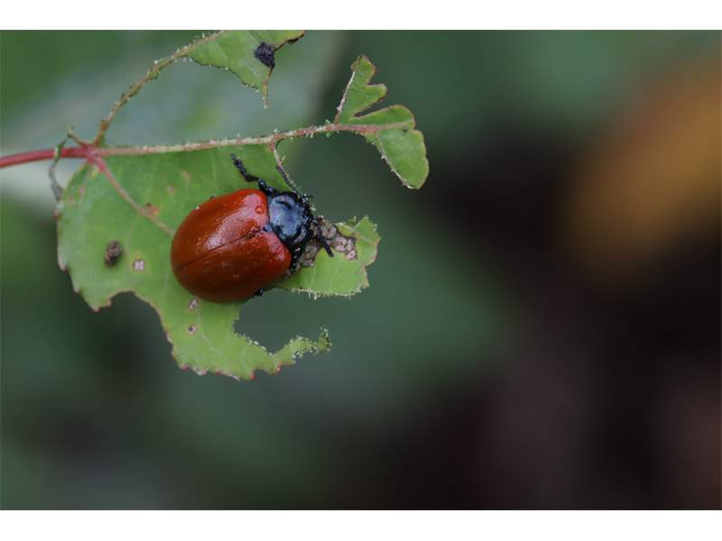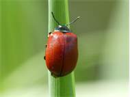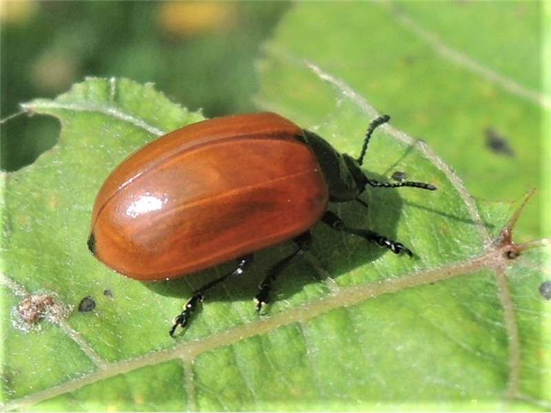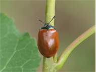 Pappelblattkäfer (Chrysomela populi) in der Gemarkung Hohenprießnitz, Sportplatz, nördlicher Waldrand, auf einer Espe (Populus tremula), April 2014 (© Michael Happ)( Bild vergrößern)