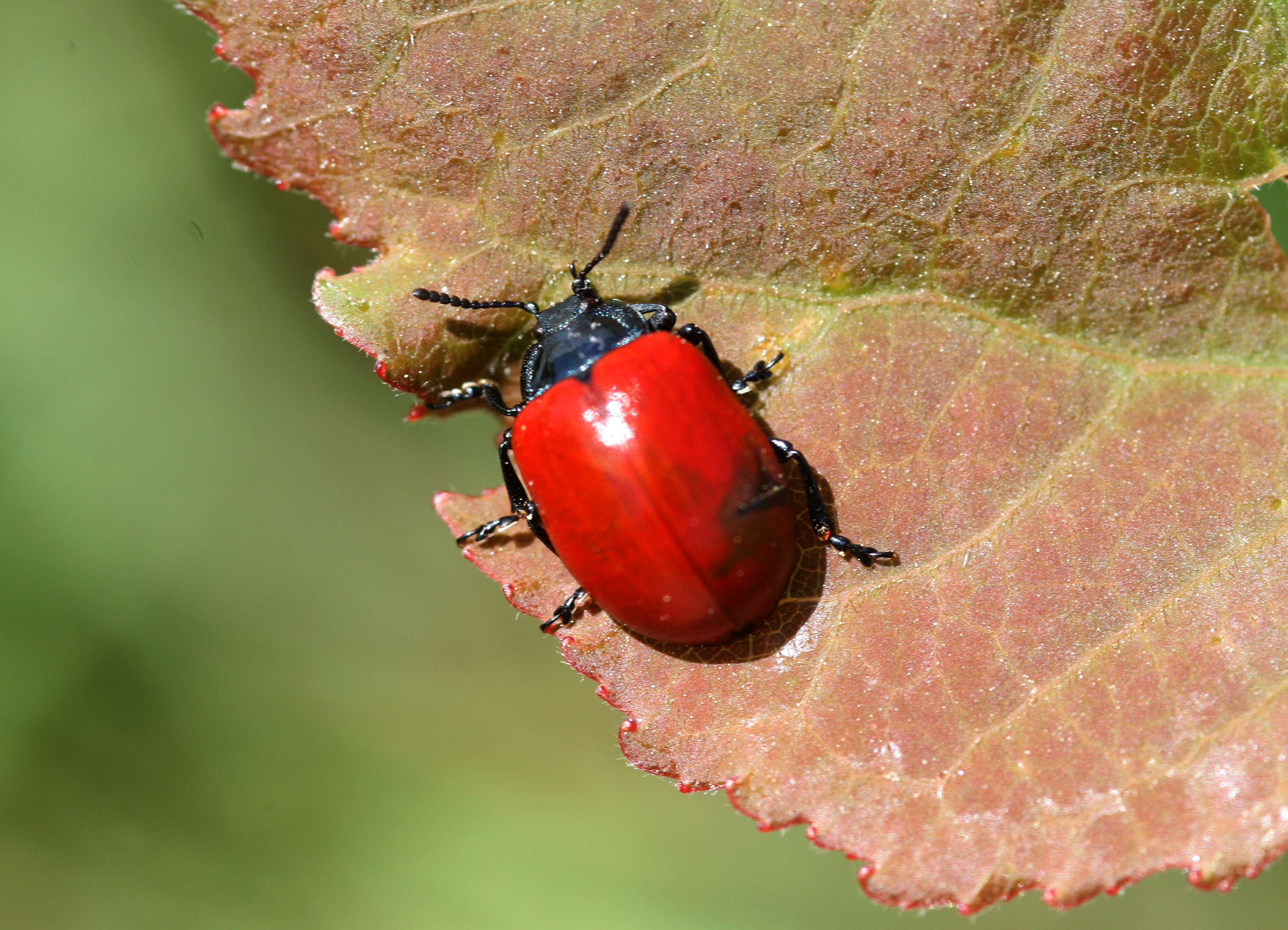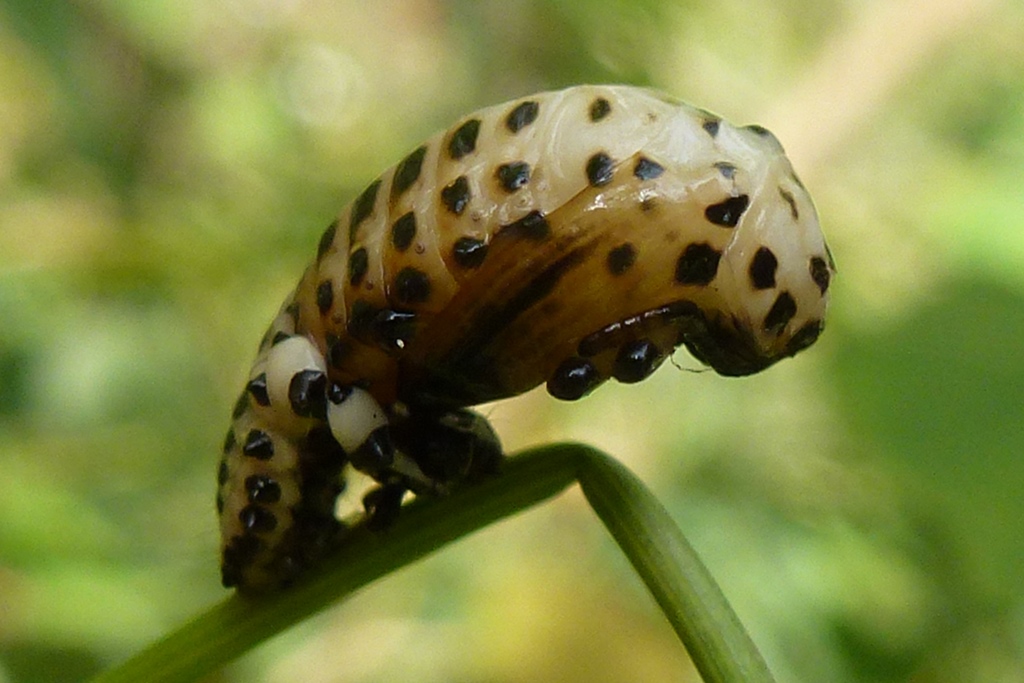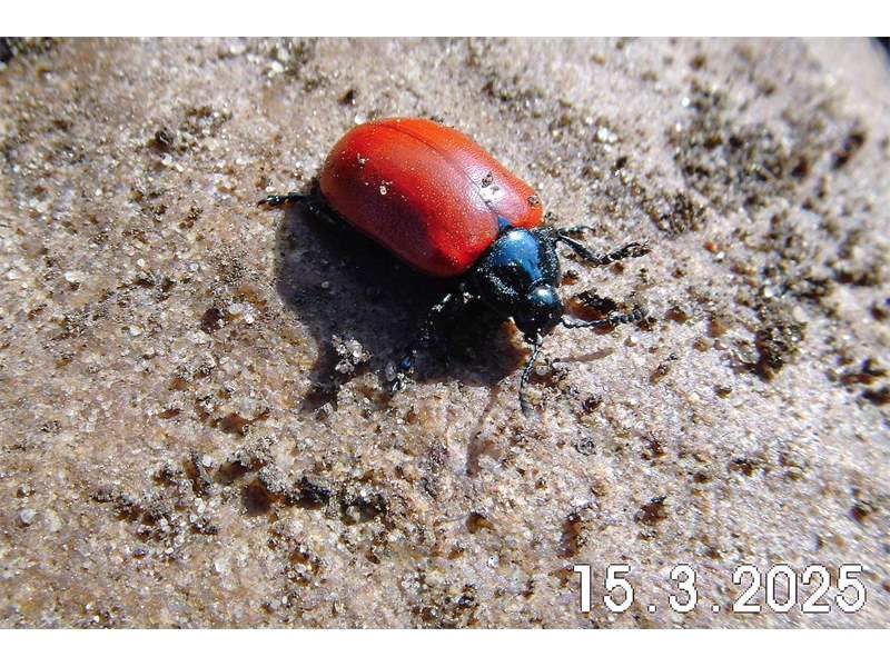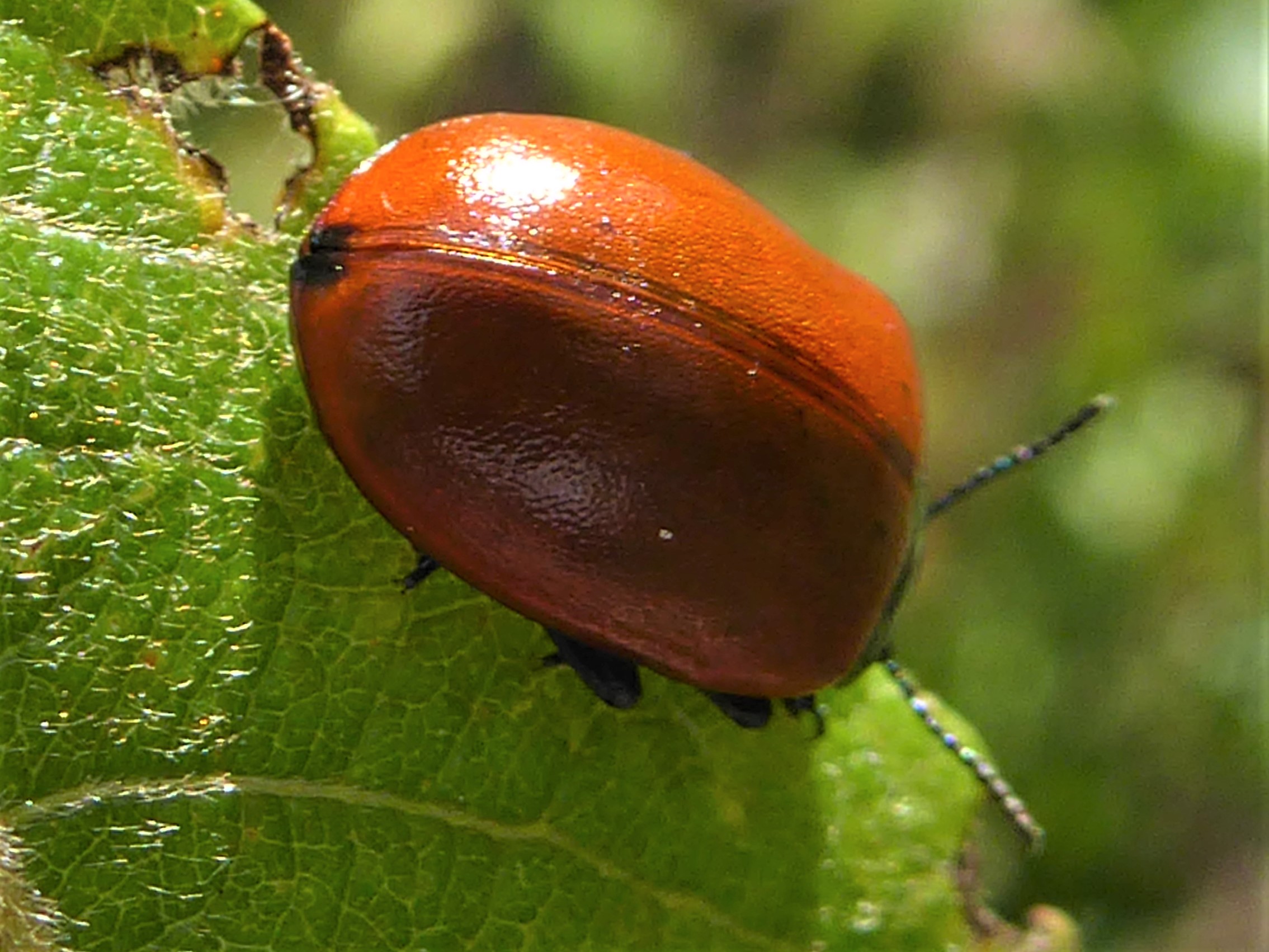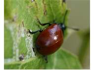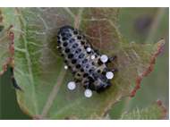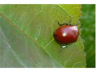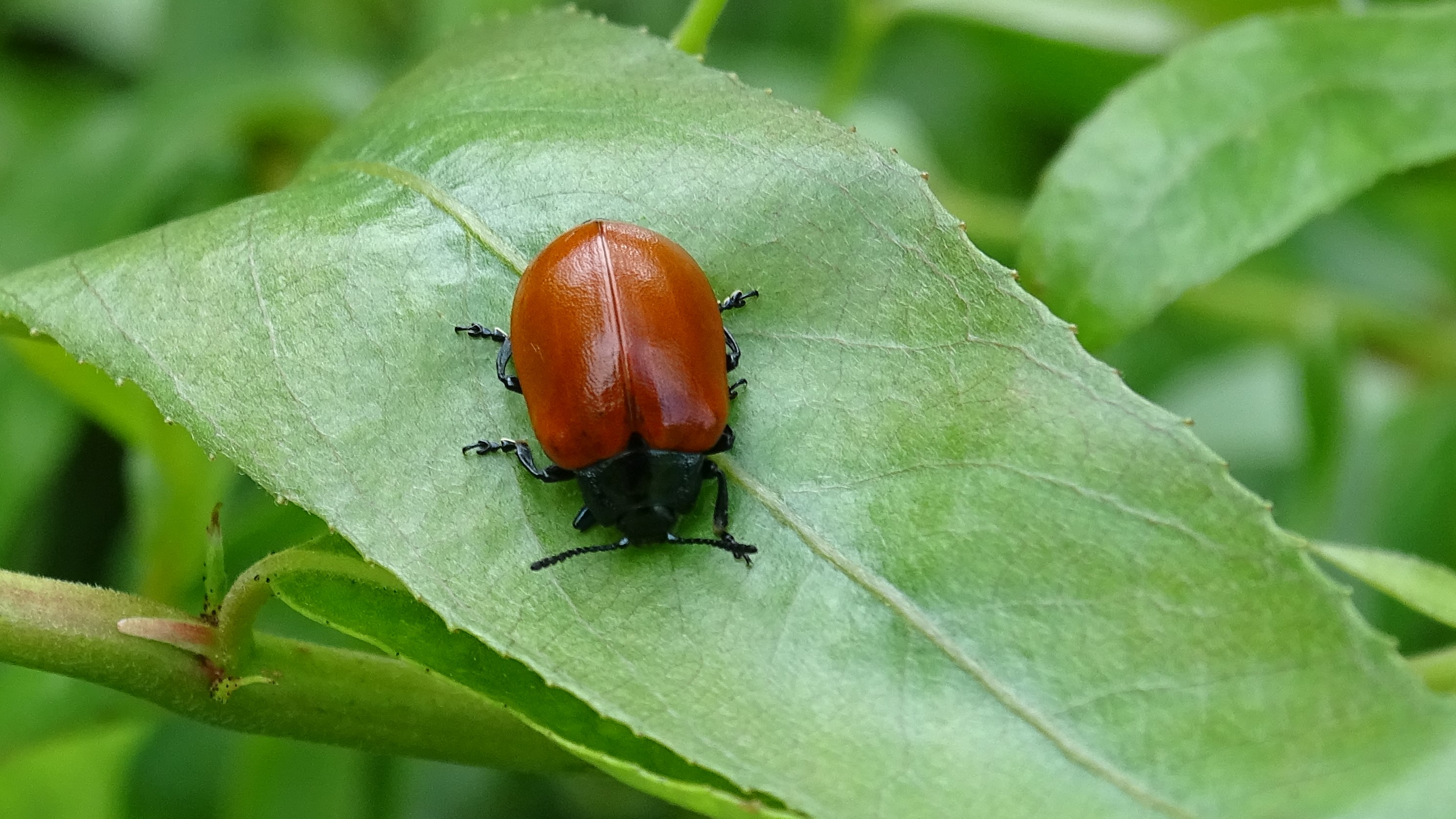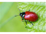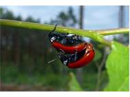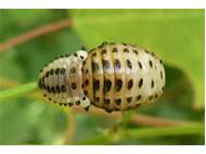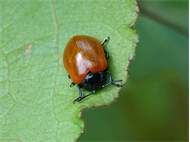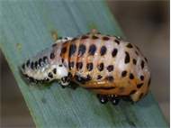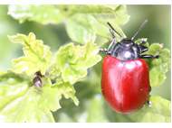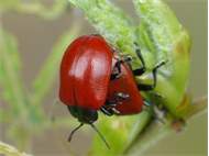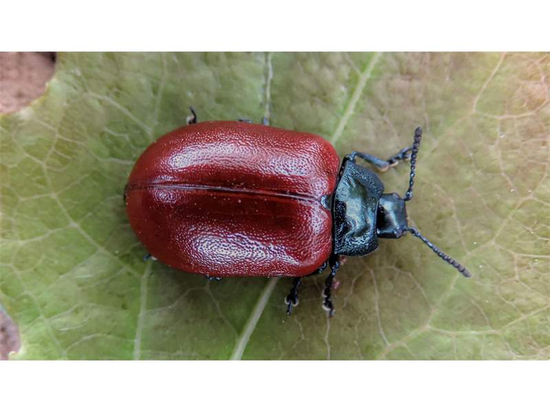 Pappelblattkäfer (Chrysomela populi) in der Gemarkung Hohenprießnitz, Sportplatz, nördlicher Waldrand, auf einer Espe (Populus tremula), April 2014 (© Michael Happ)( Bild vergrößern)