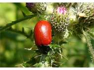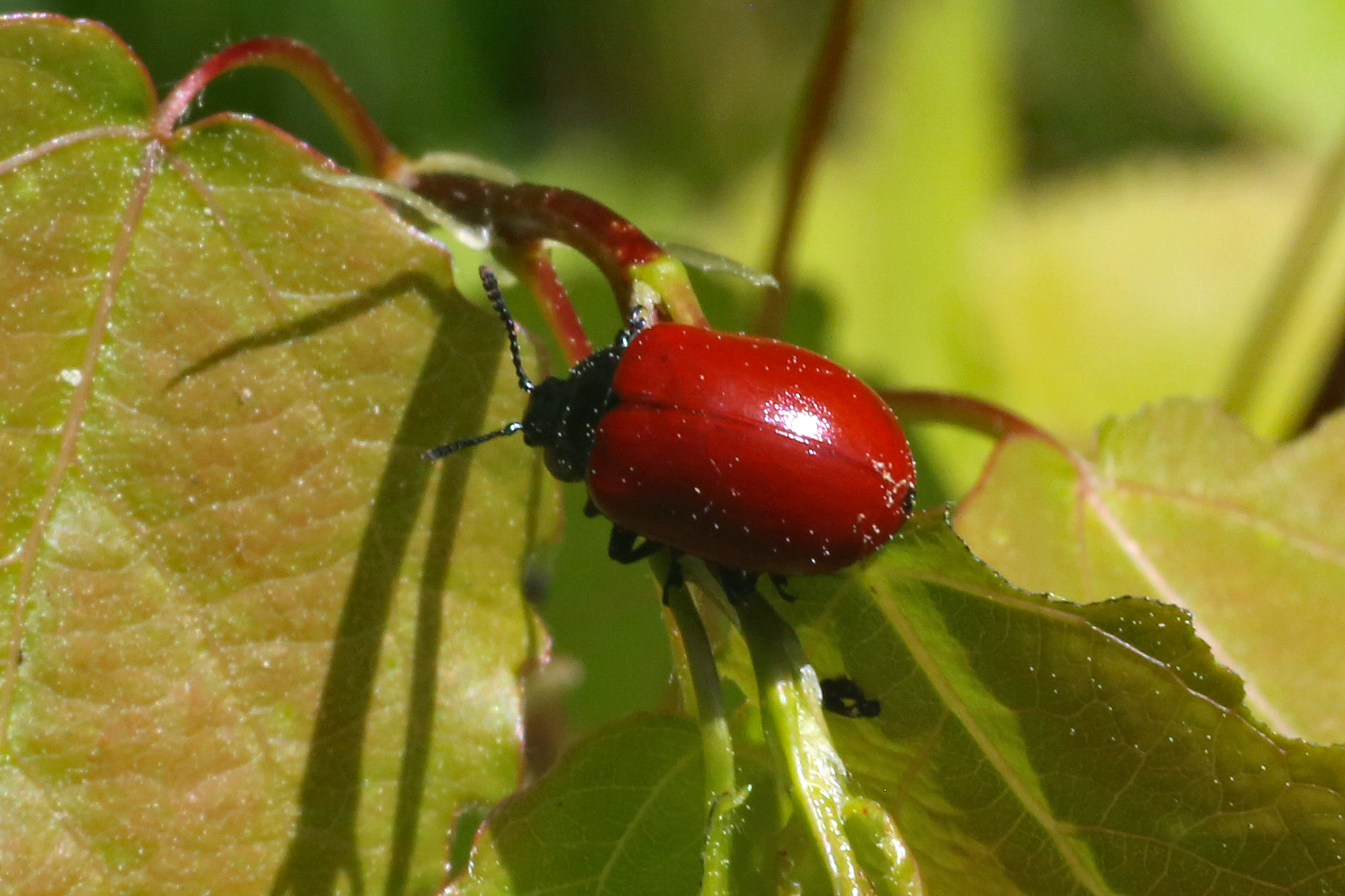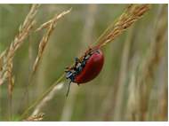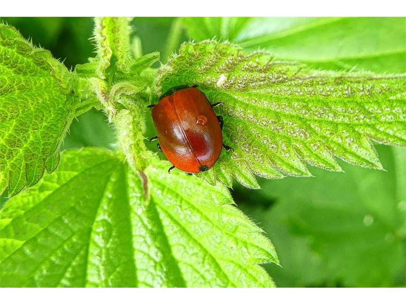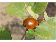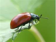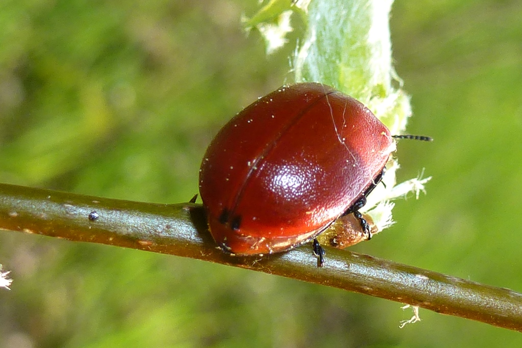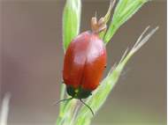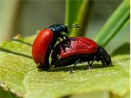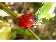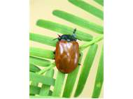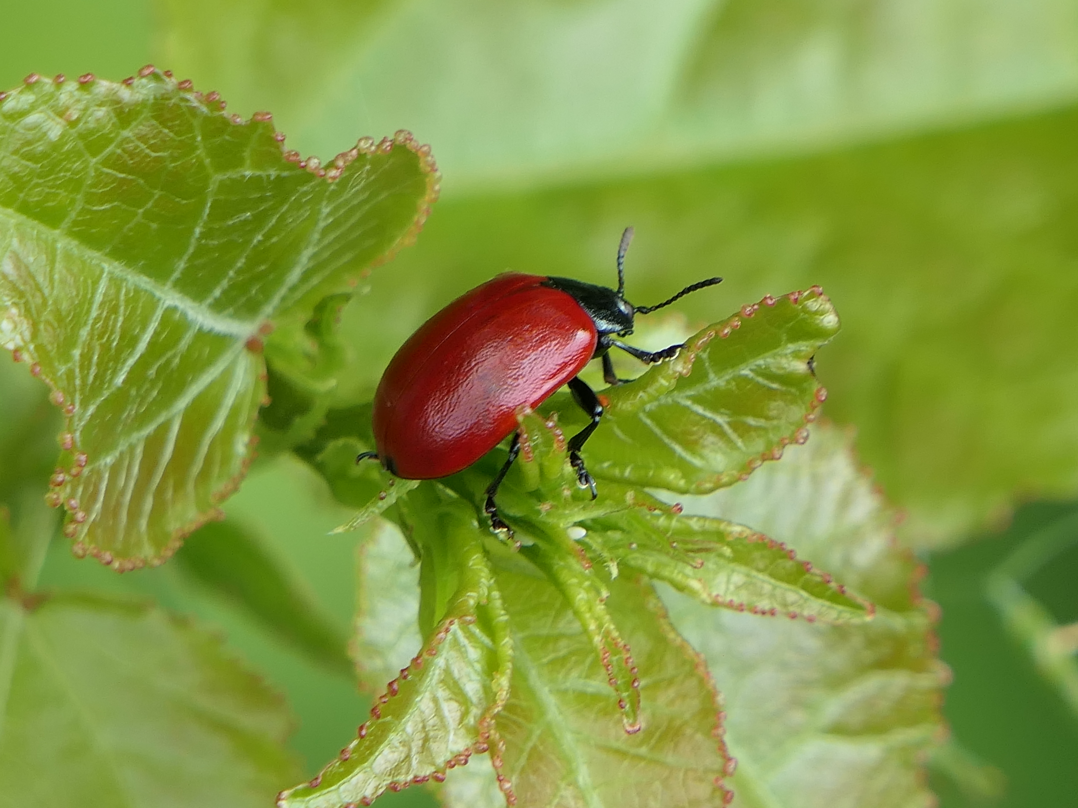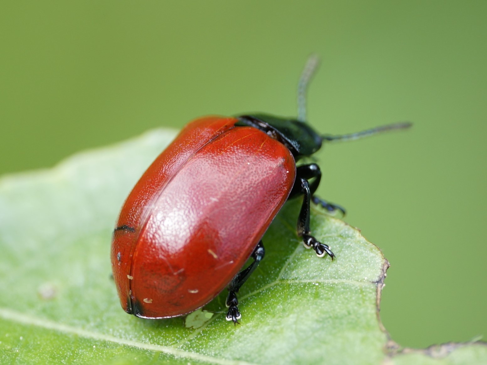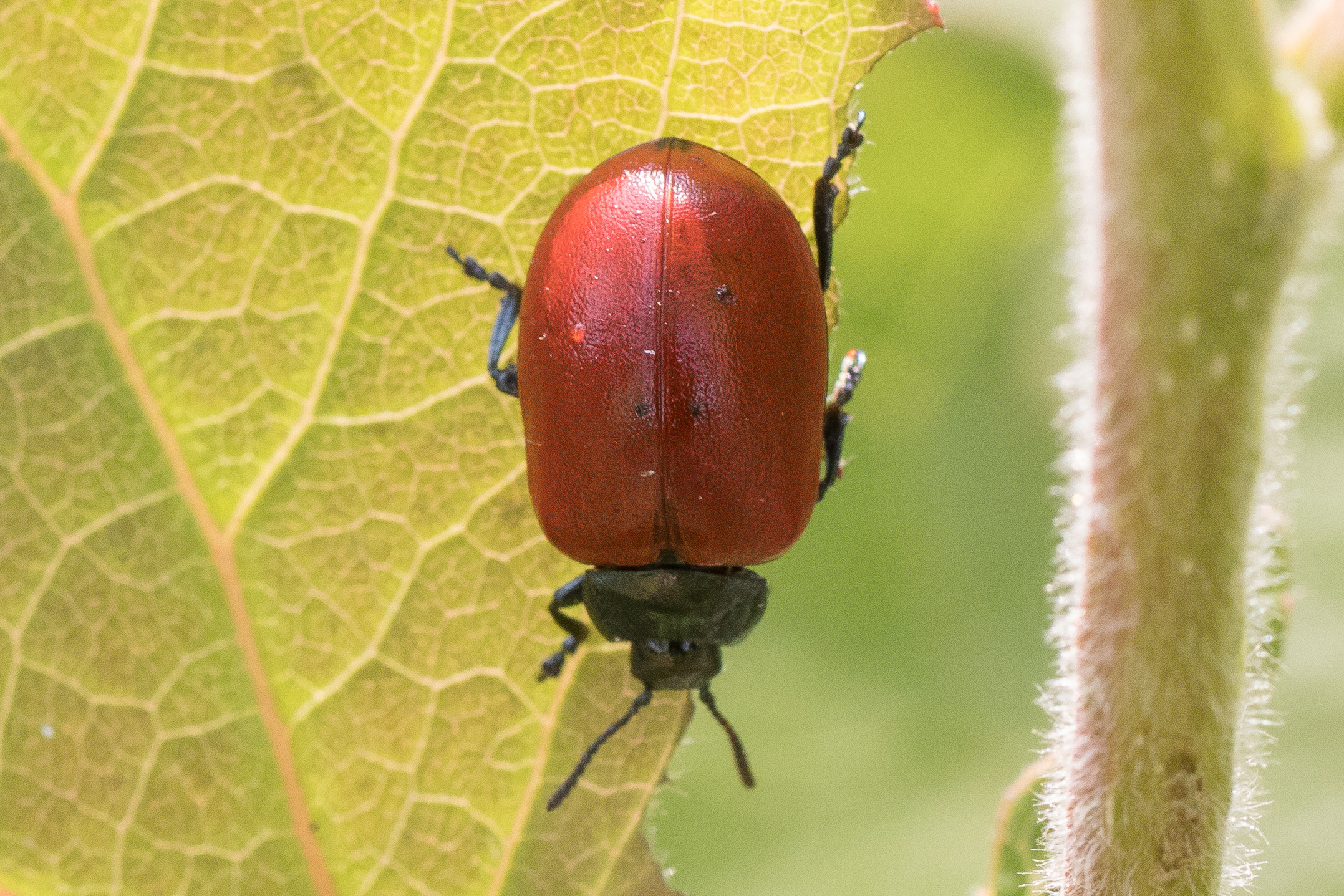 Pappelblattkäfer (Chrysomela populi) in der Gemarkung Hohenprießnitz, Sportplatz, nördlicher Waldrand, auf einer Espe (Populus tremula), April 2014 (© Michael Happ)( Bild vergrößern)
