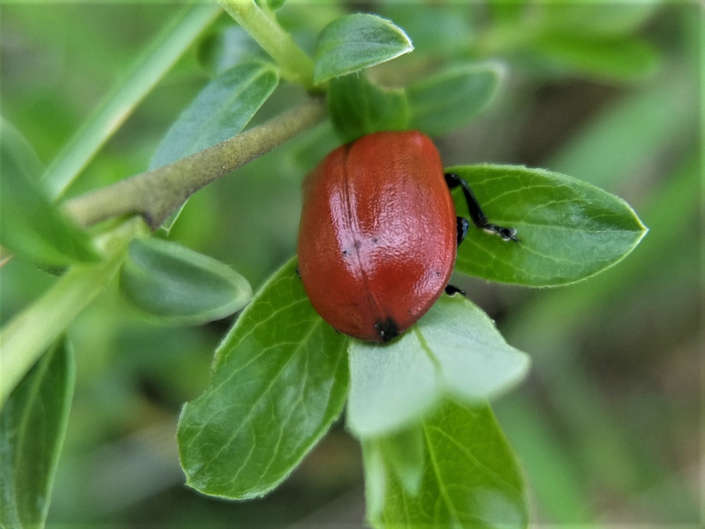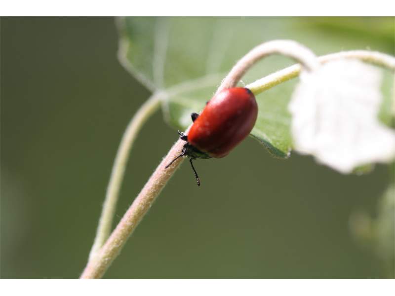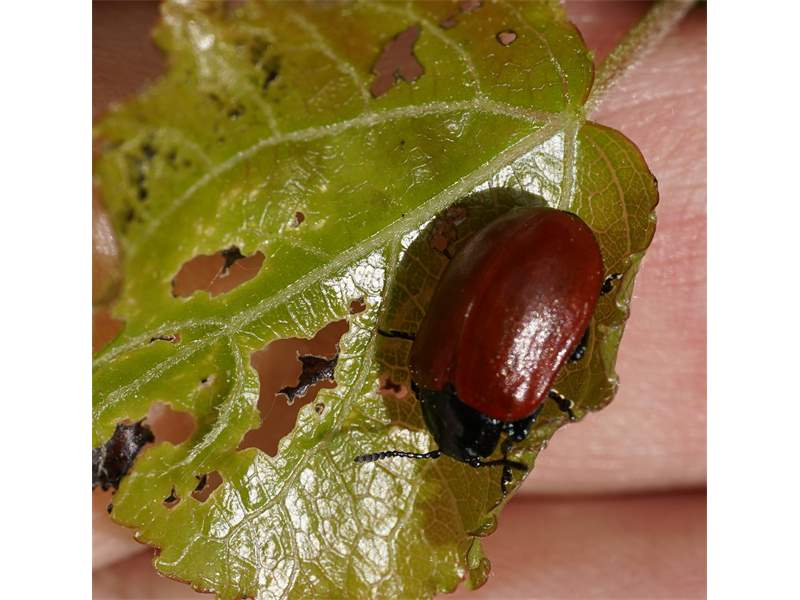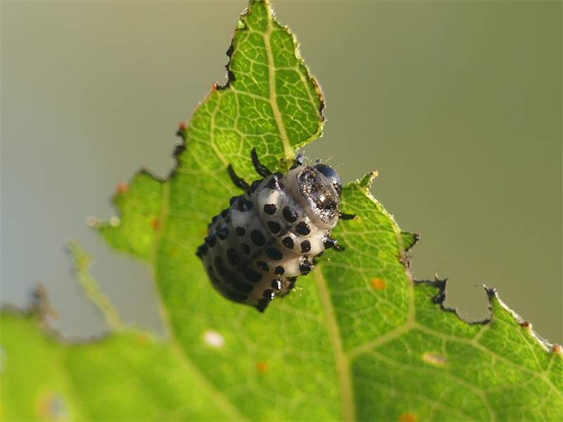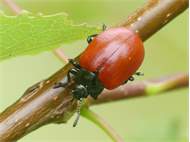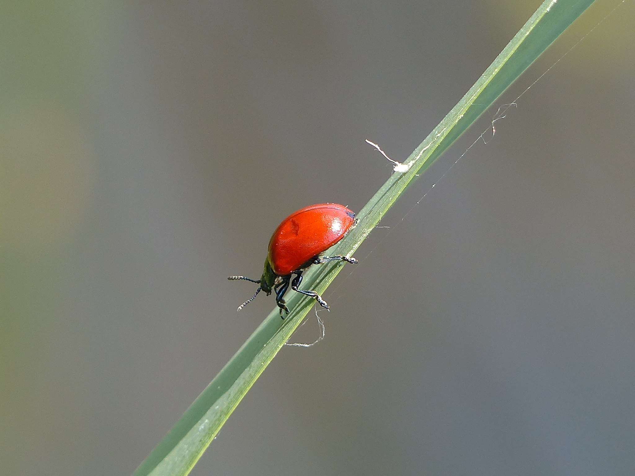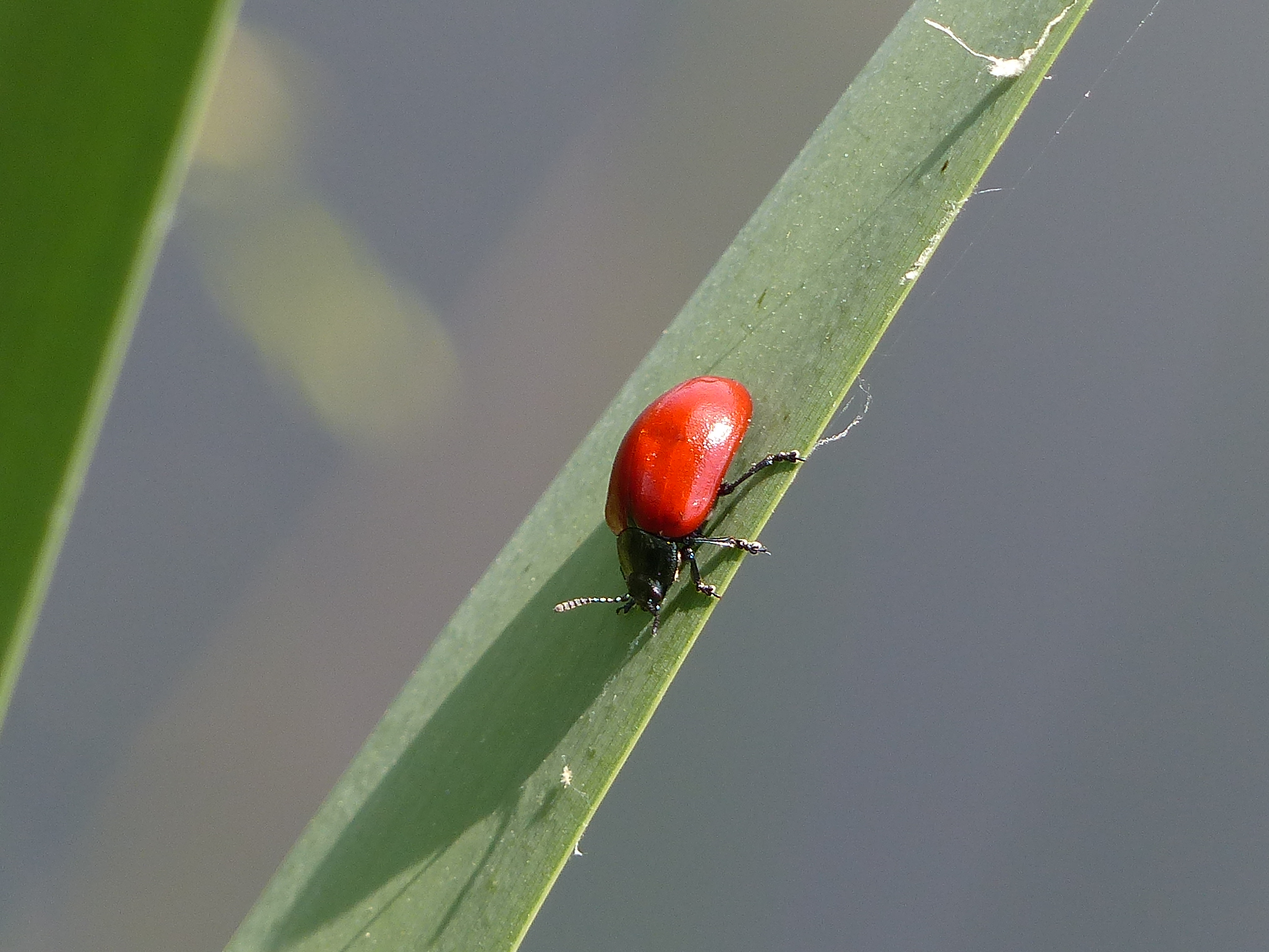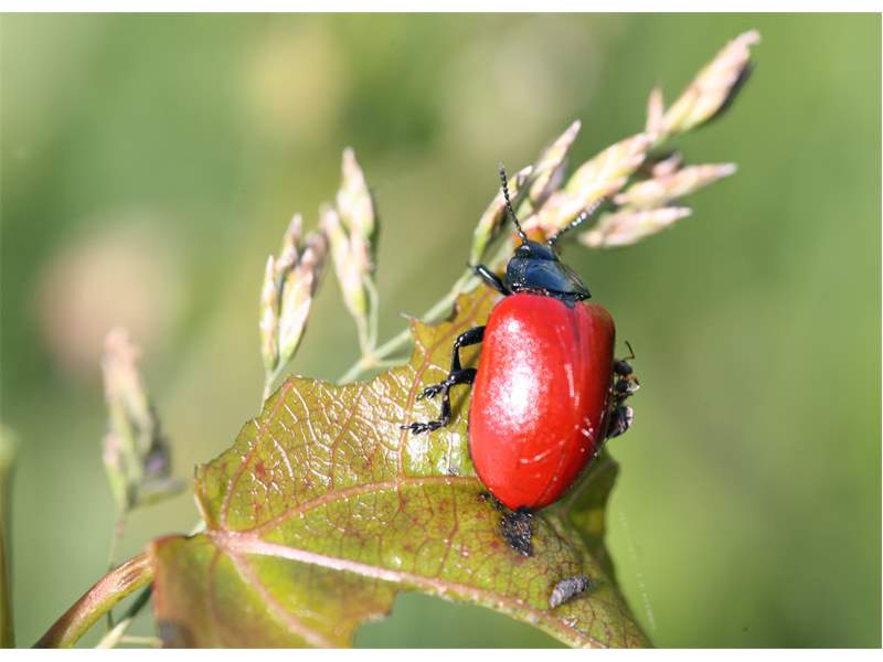 Pappelblattkäfer (Chrysomela populi) in der Gemarkung Hohenprießnitz, Sportplatz, nördlicher Waldrand, auf einer Espe (Populus tremula), April 2014 (© Michael Happ)( Bild vergrößern)