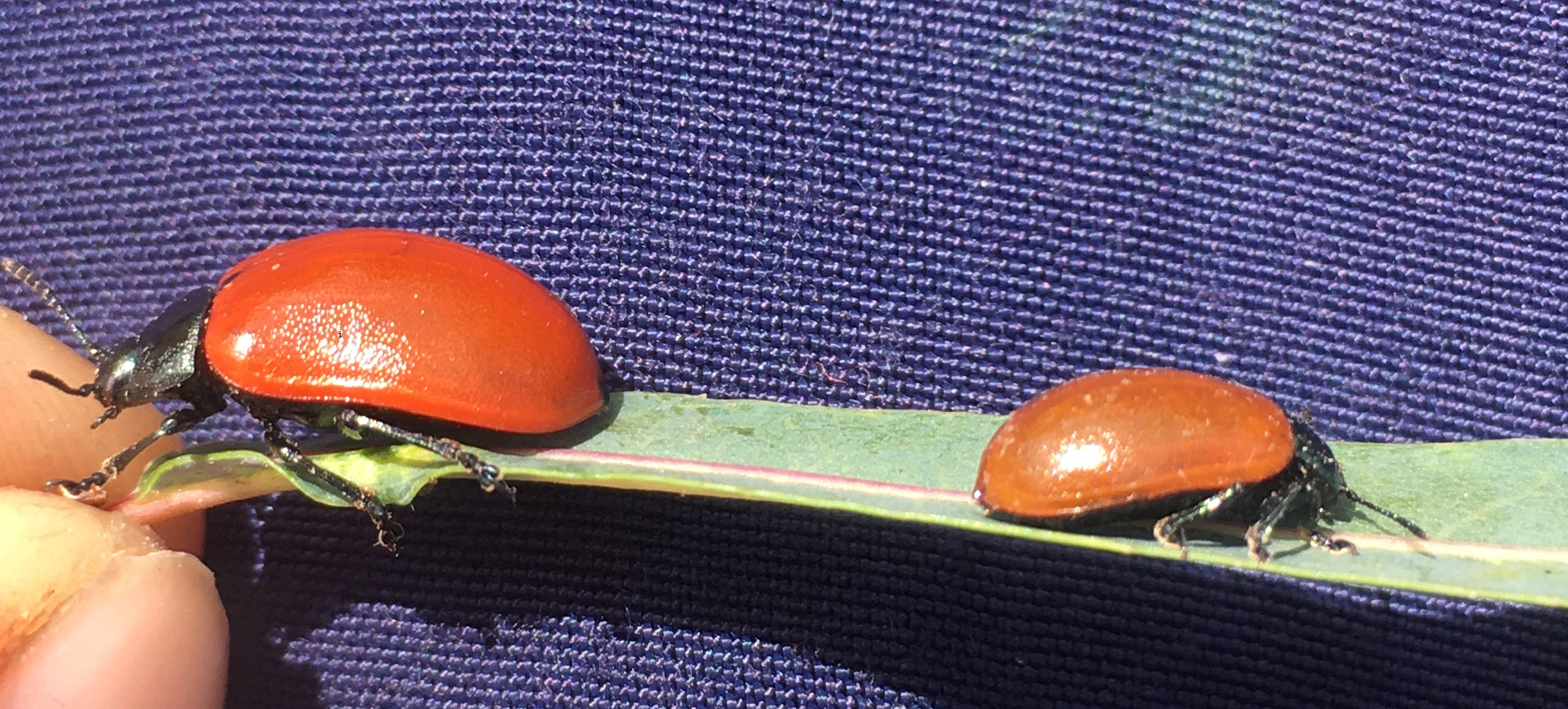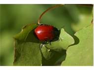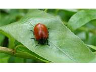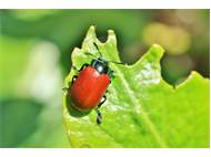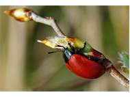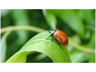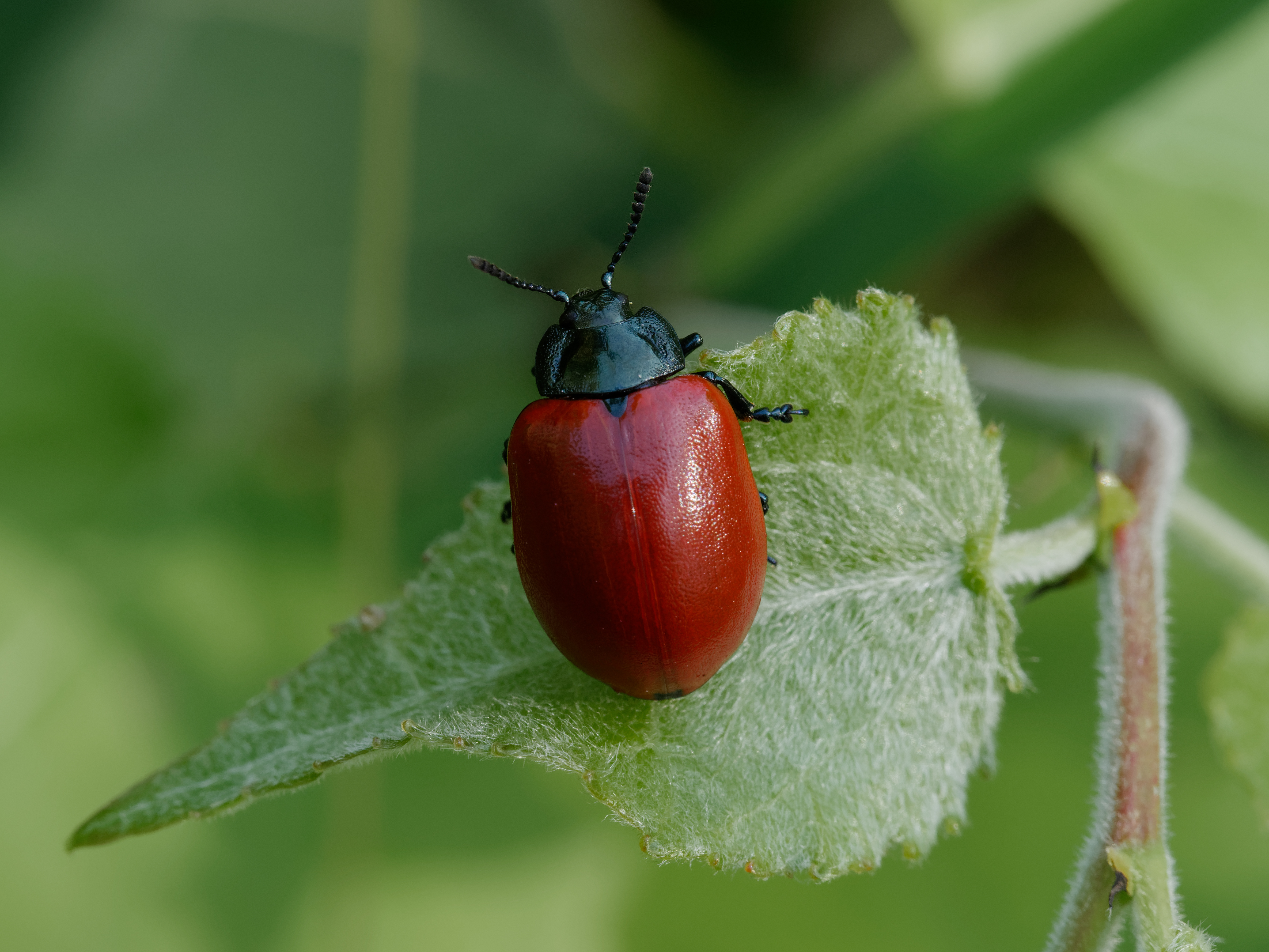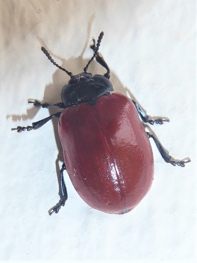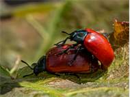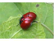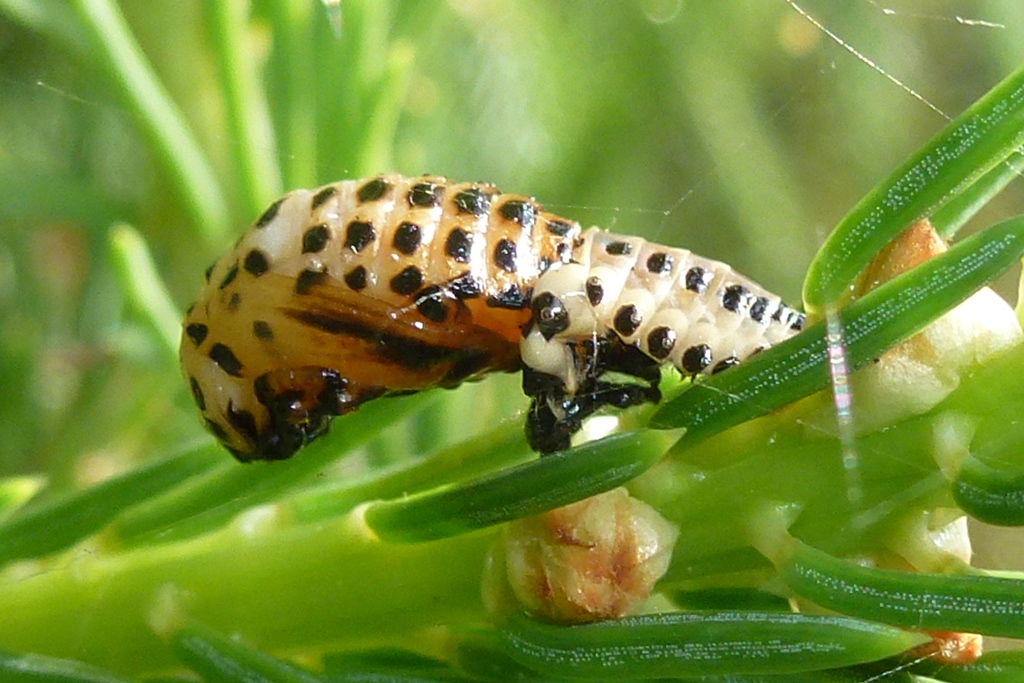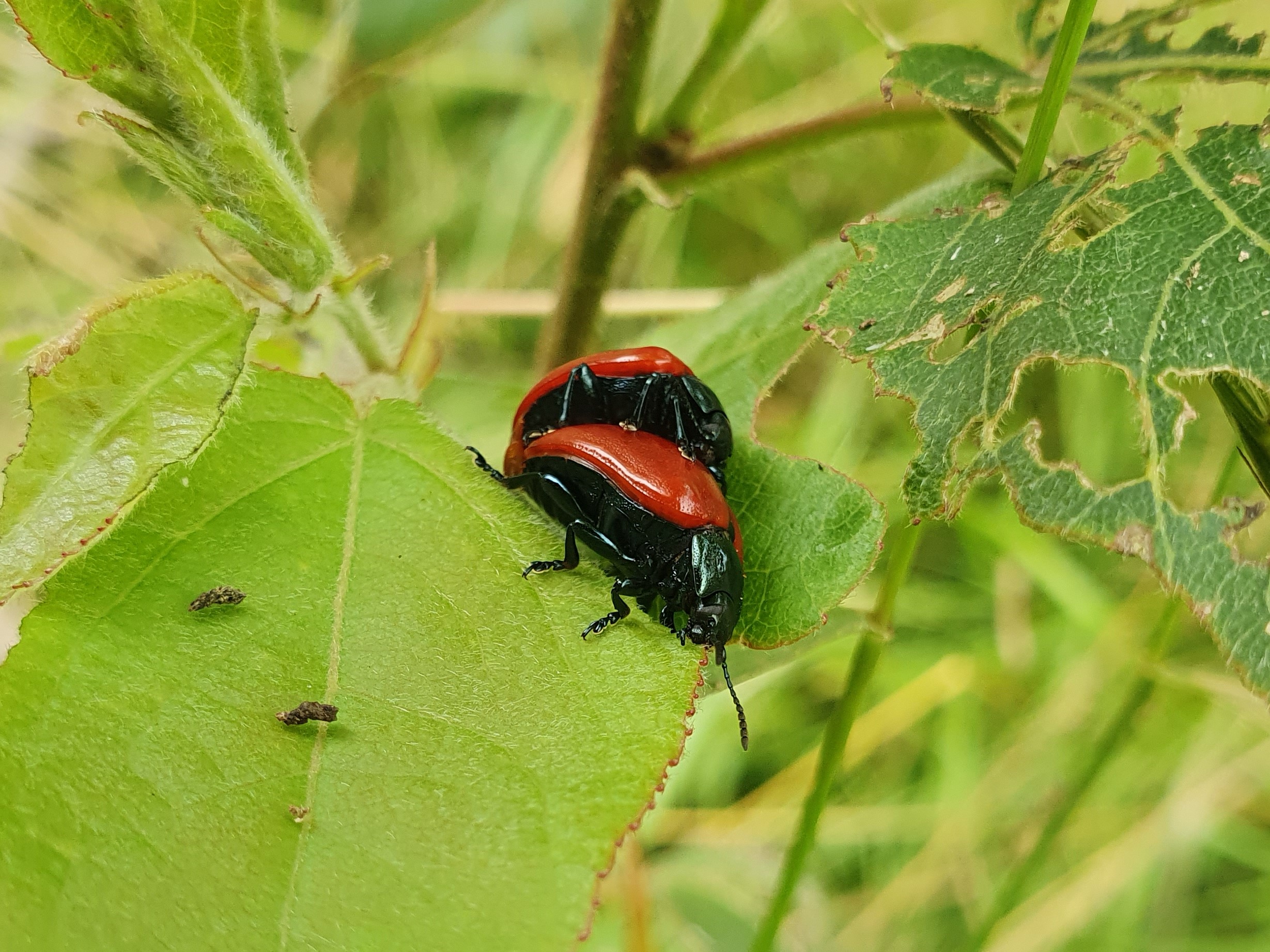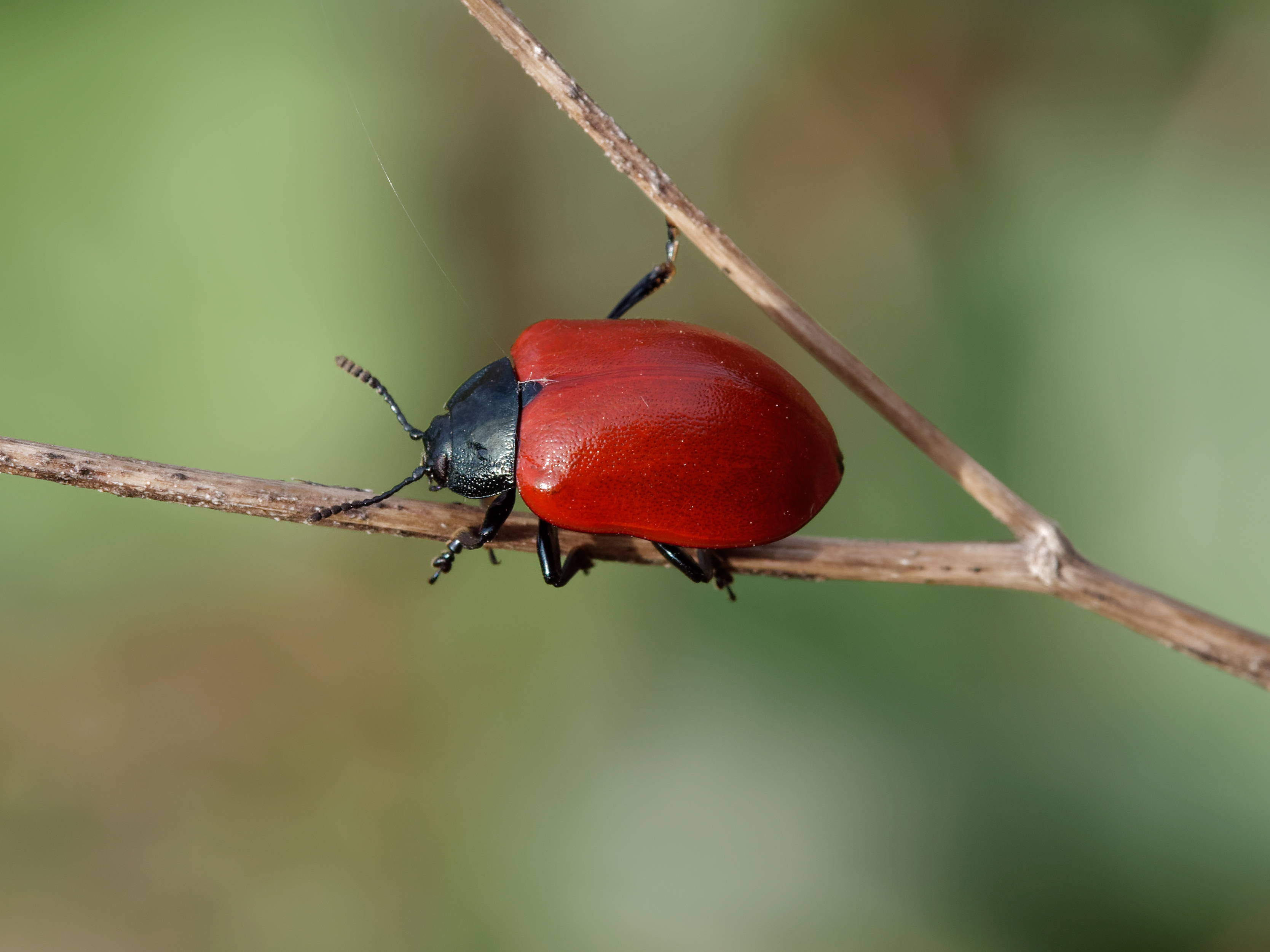 Pappelblattkäfer (Chrysomela populi) in der Gemarkung Hohenprießnitz, Sportplatz, nördlicher Waldrand, auf einer Espe (Populus tremula), April 2014 (© Michael Happ)( Bild vergrößern)