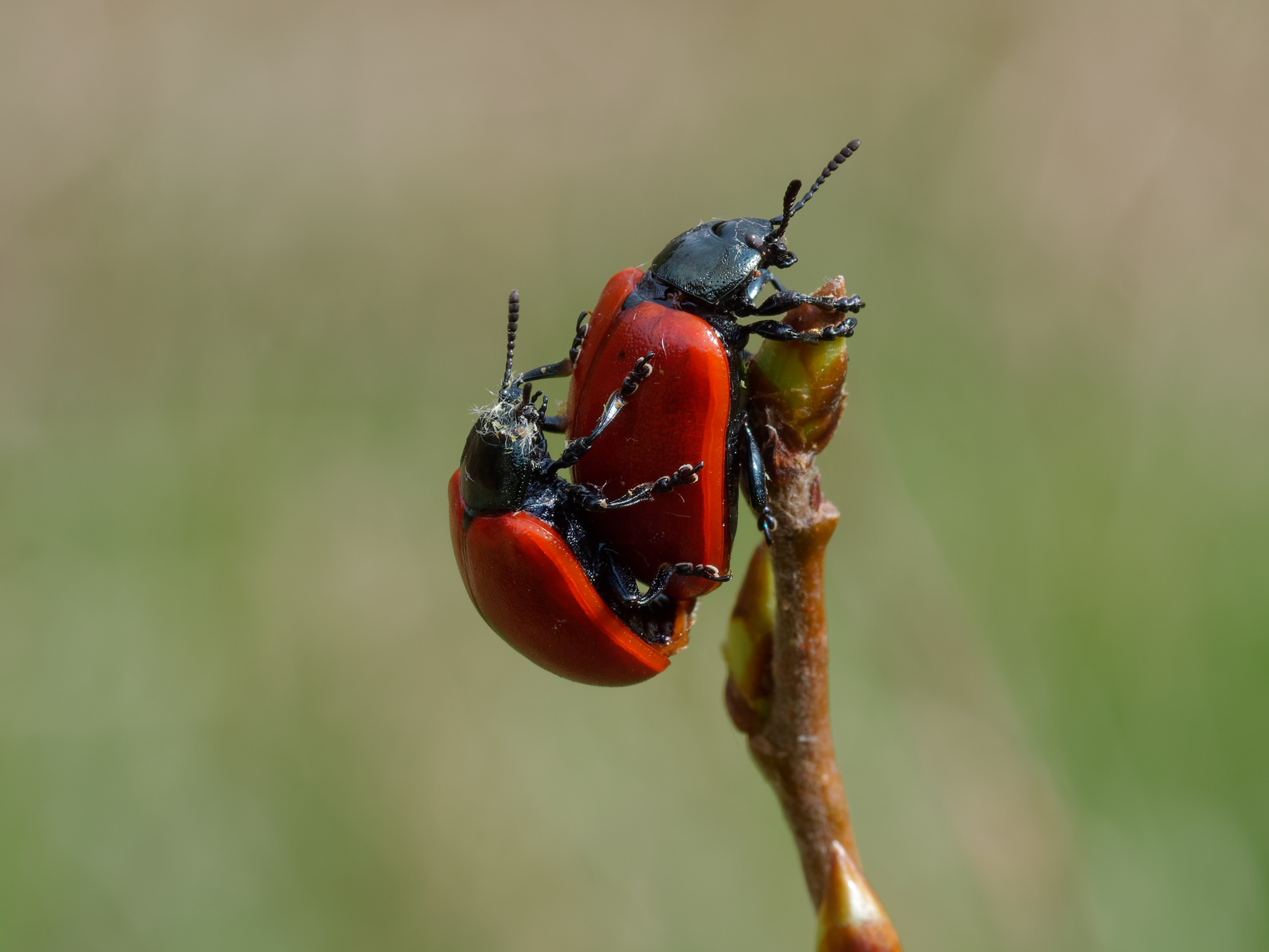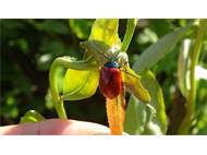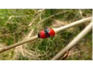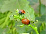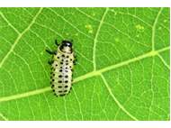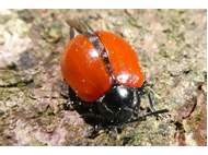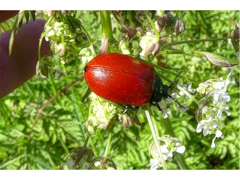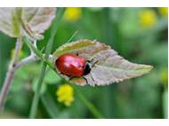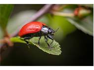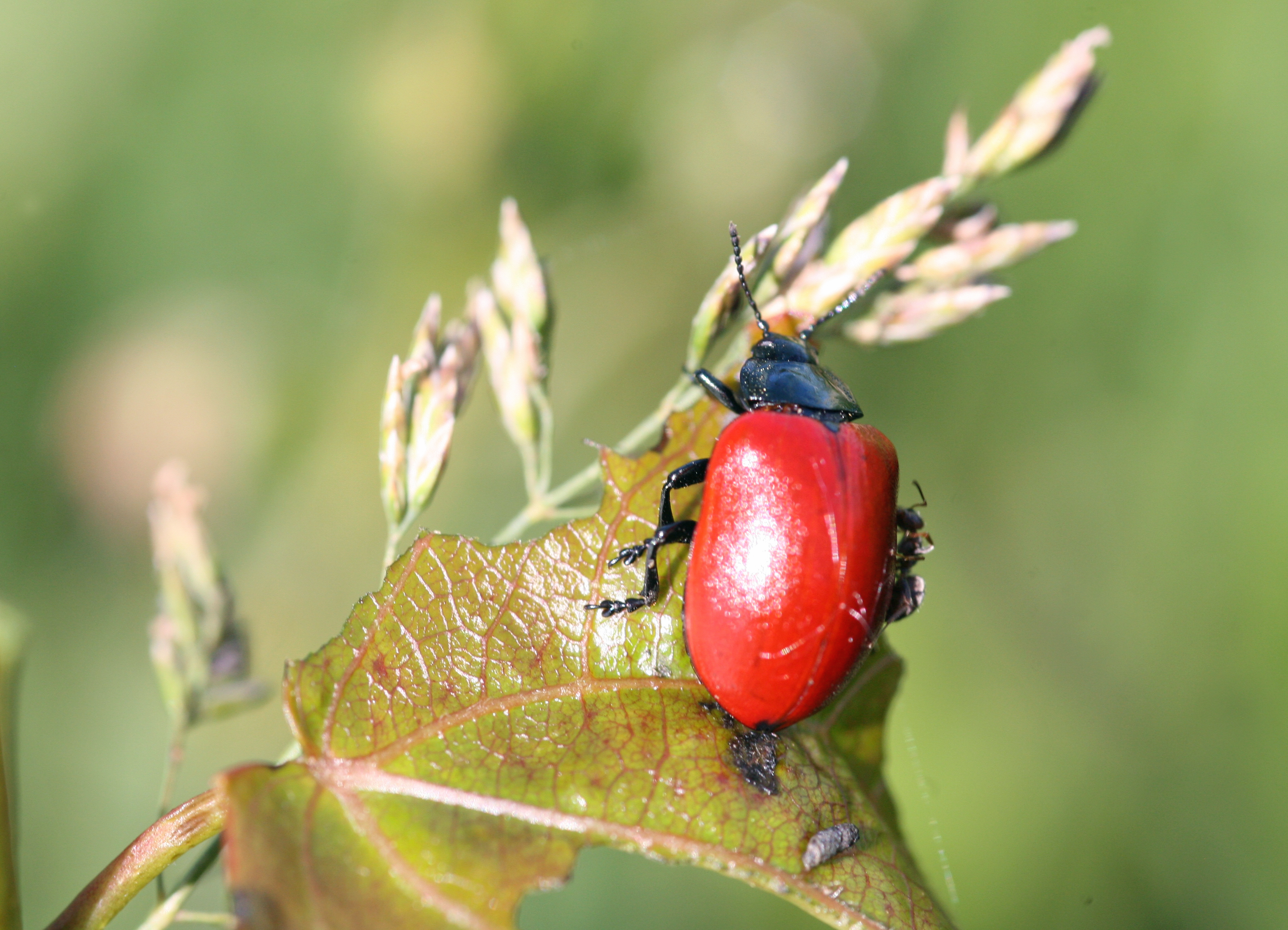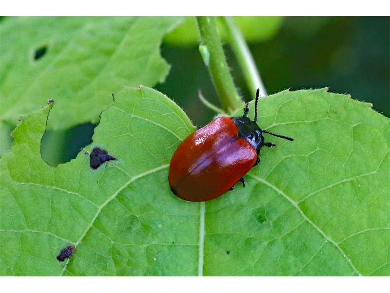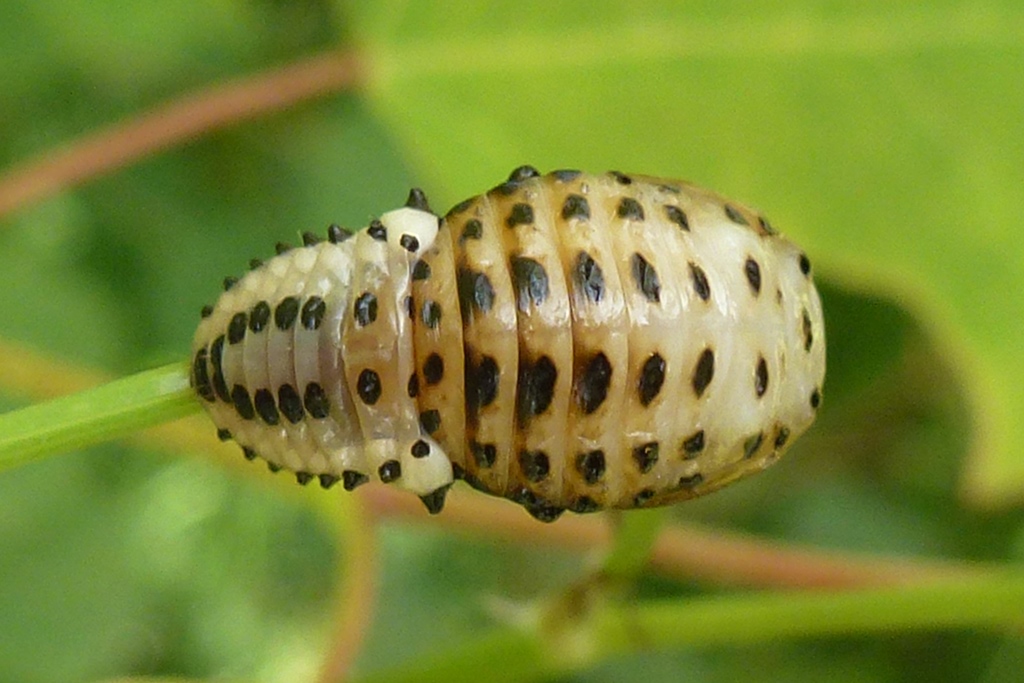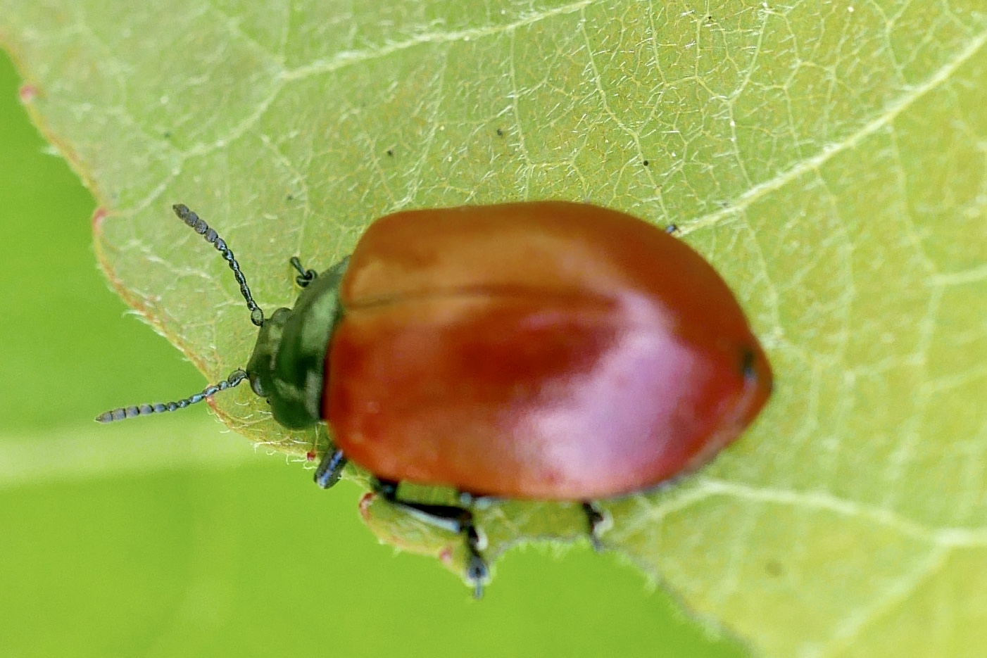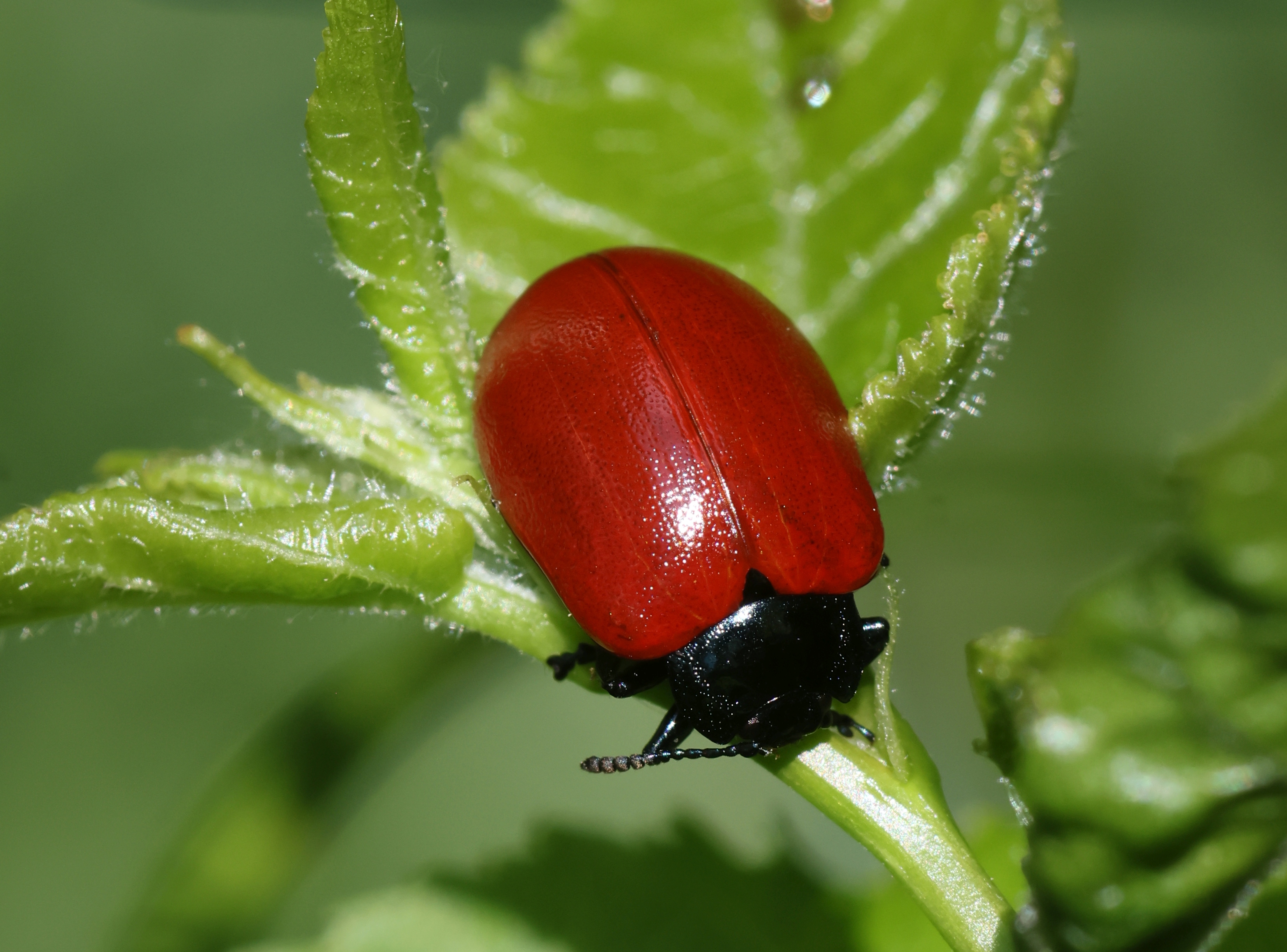 Pappelblattkäfer (Chrysomela populi) in der Gemarkung Hohenprießnitz, Sportplatz, nördlicher Waldrand, auf einer Espe (Populus tremula), April 2014 (© Michael Happ)( Bild vergrößern)