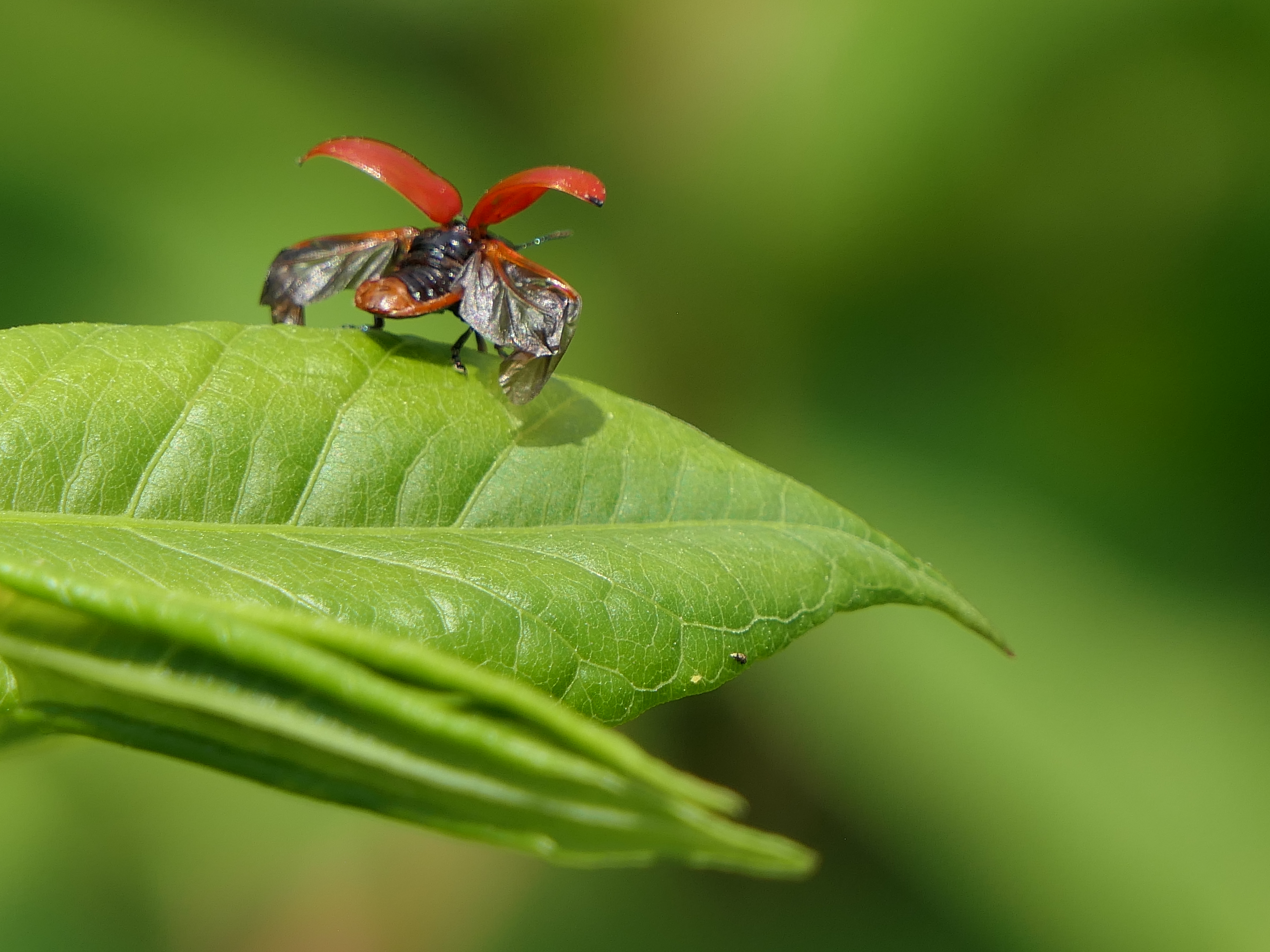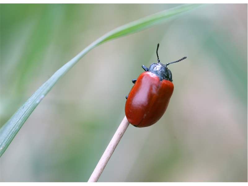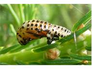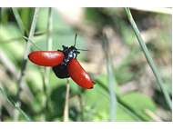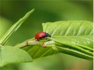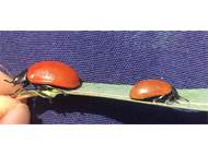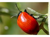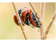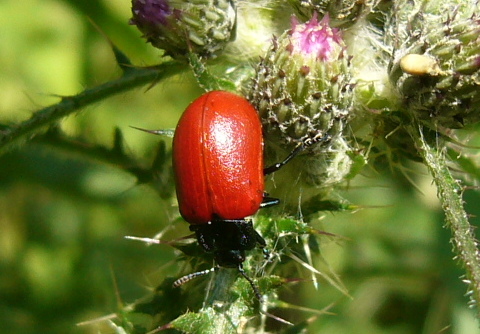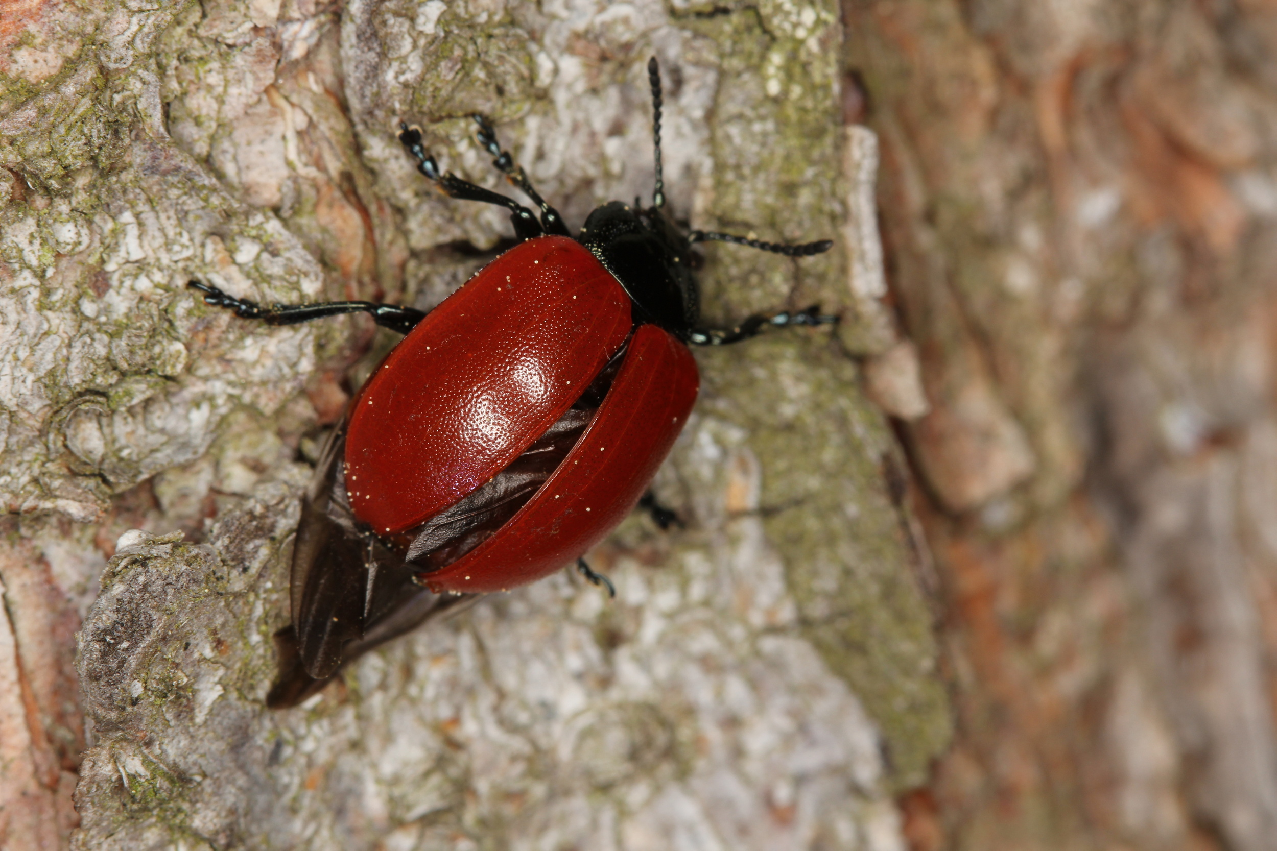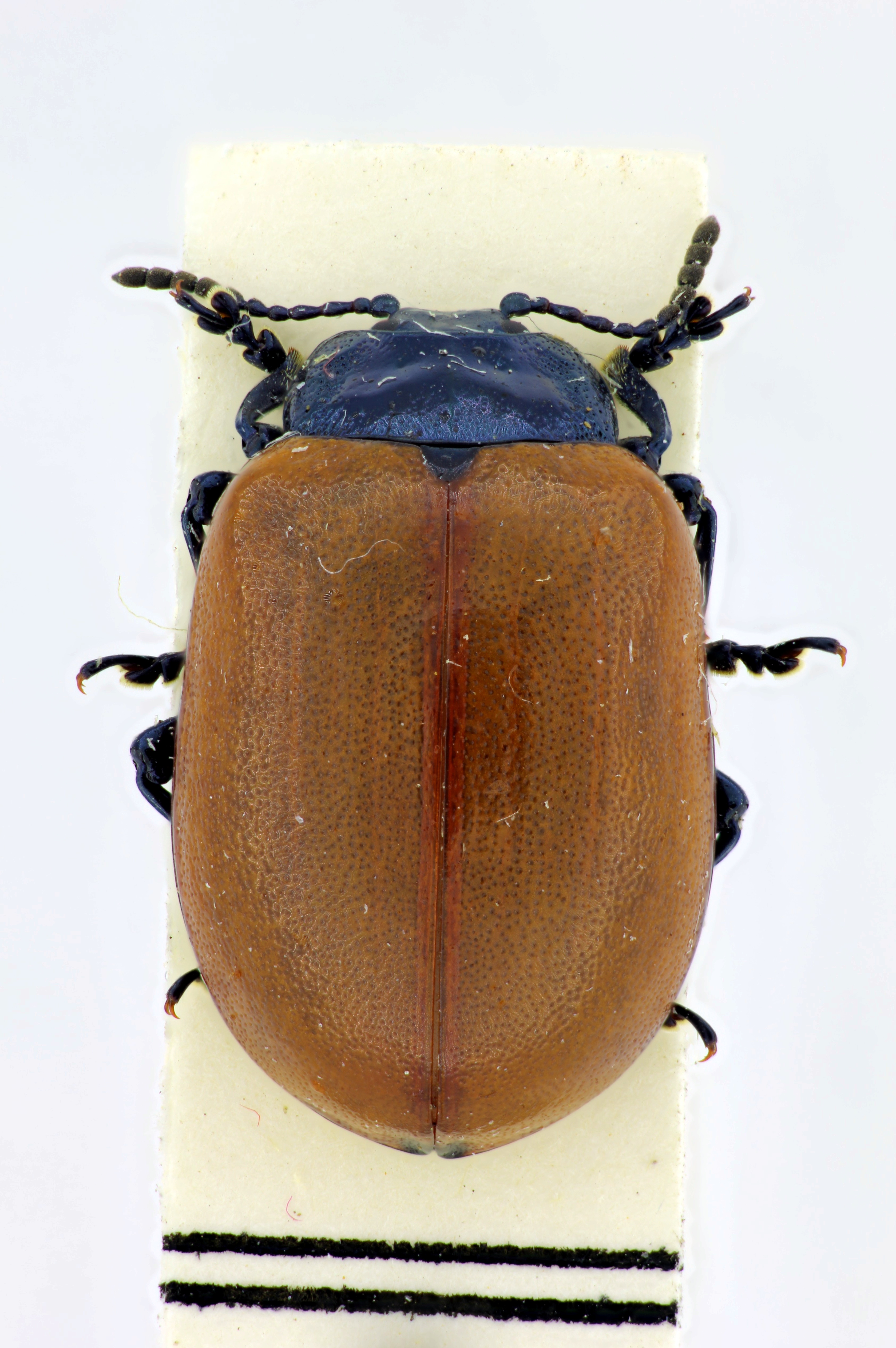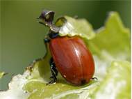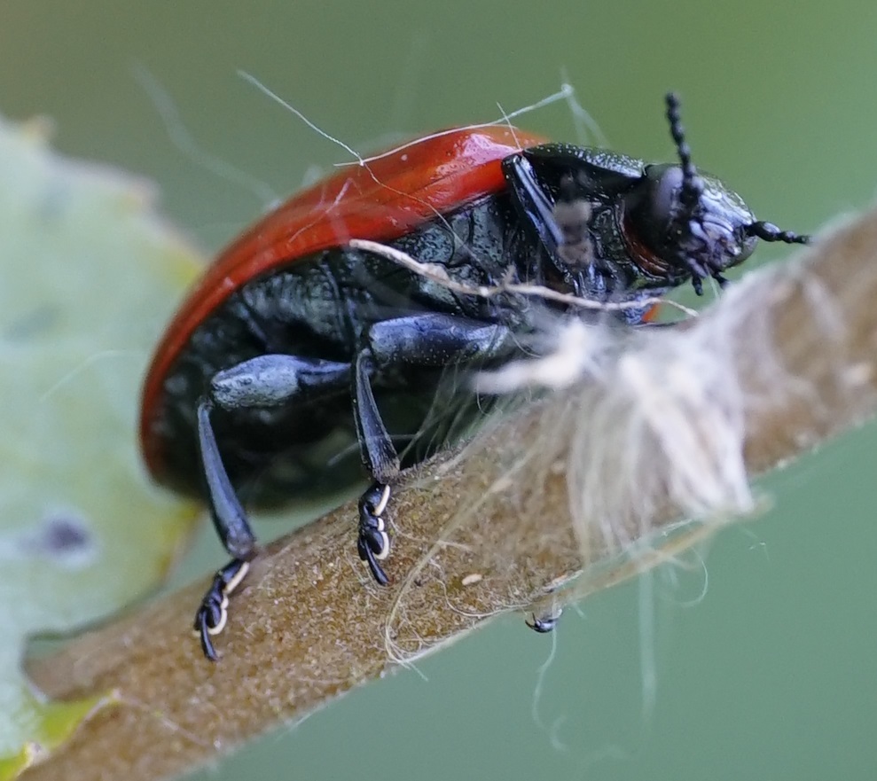 Pappelblattkäfer (Chrysomela populi) in der Gemarkung Hohenprießnitz, Sportplatz, nördlicher Waldrand, auf einer Espe (Populus tremula), April 2014 (© Michael Happ)( Bild vergrößern)