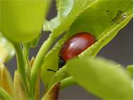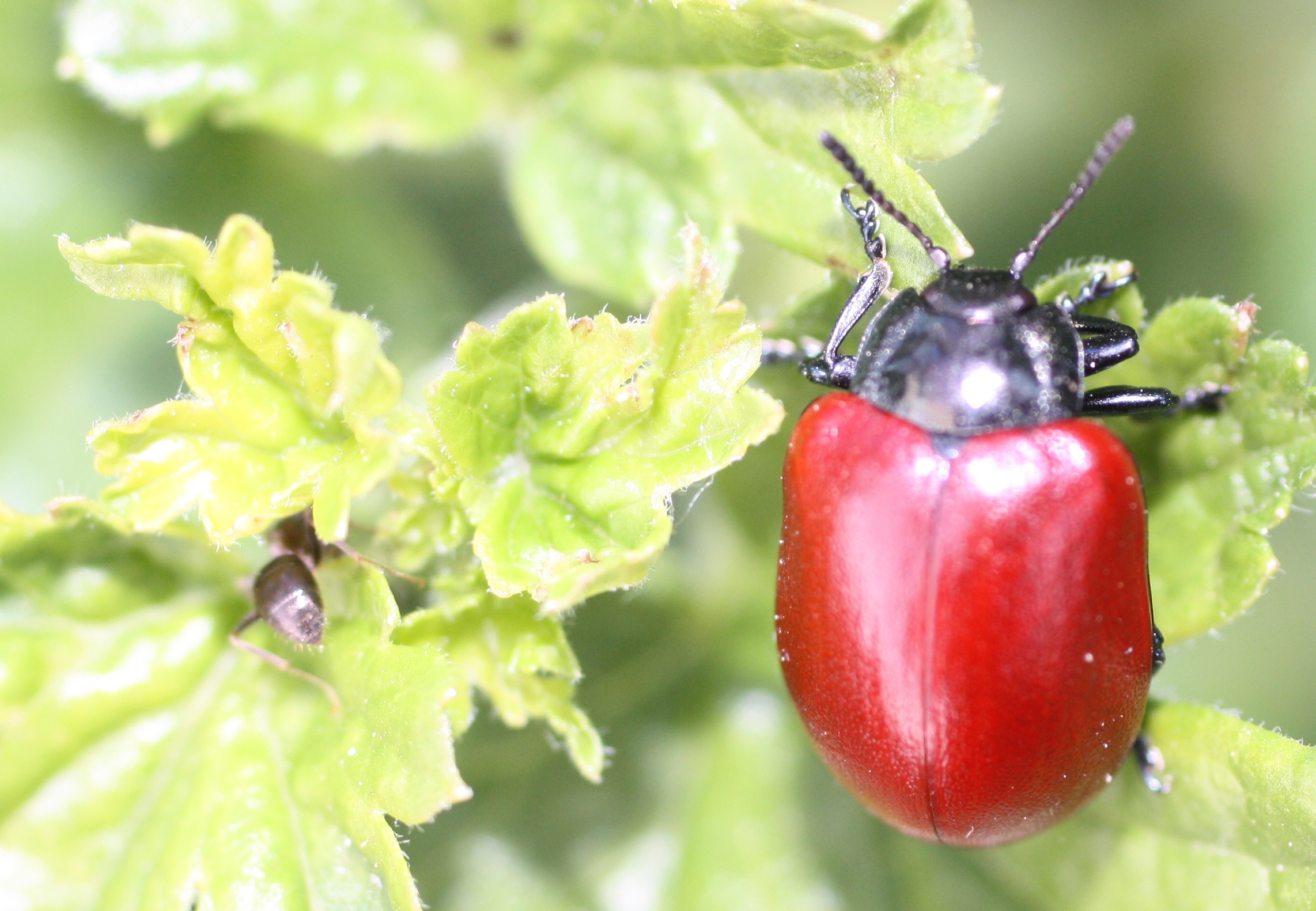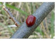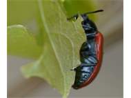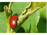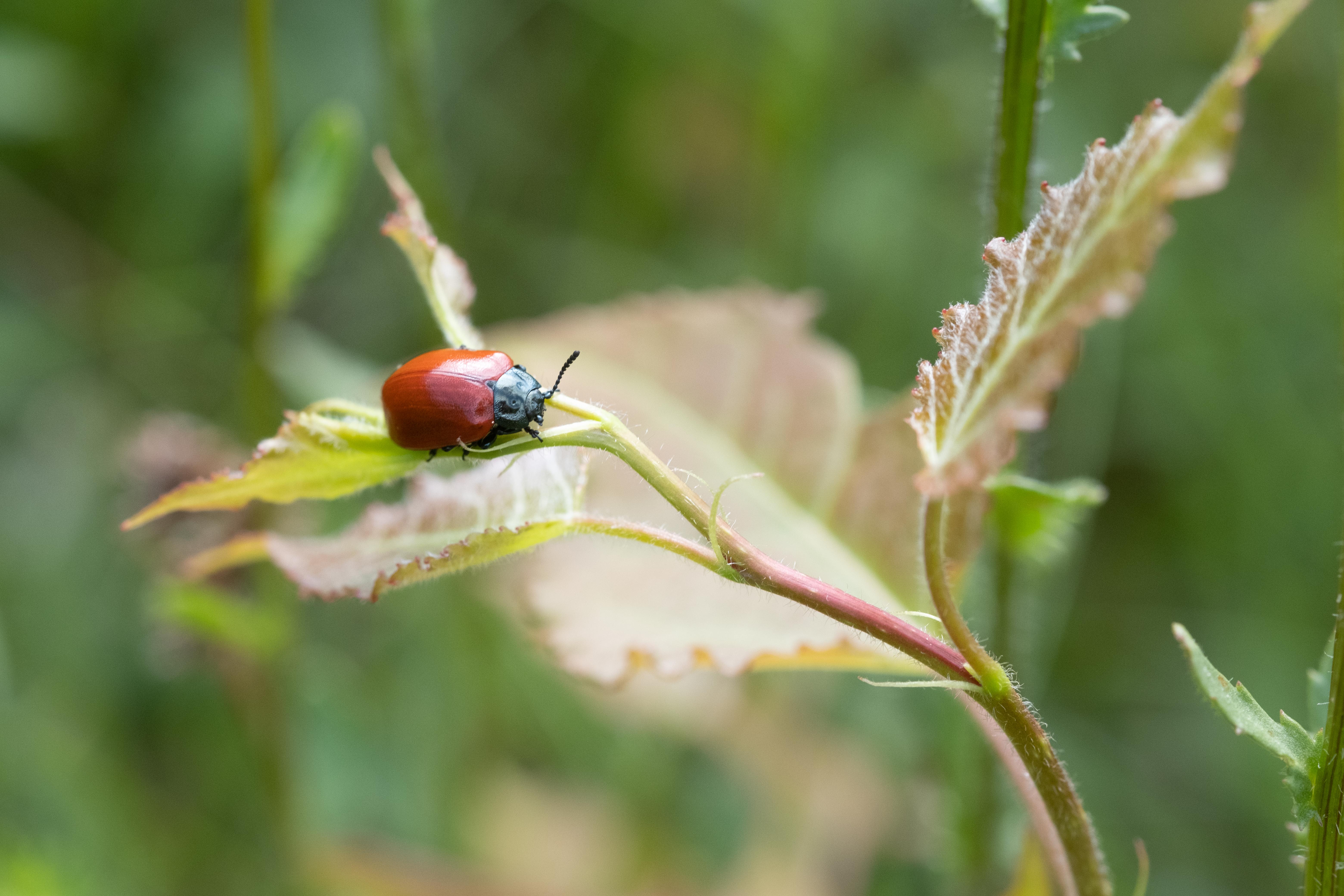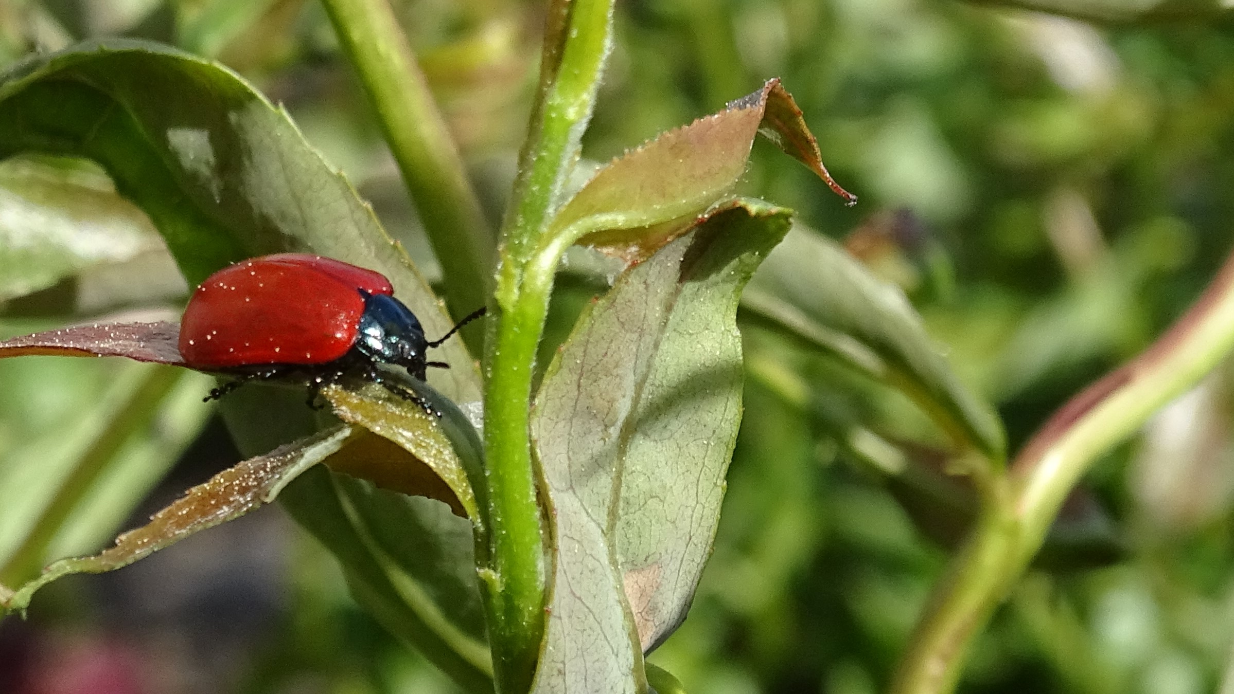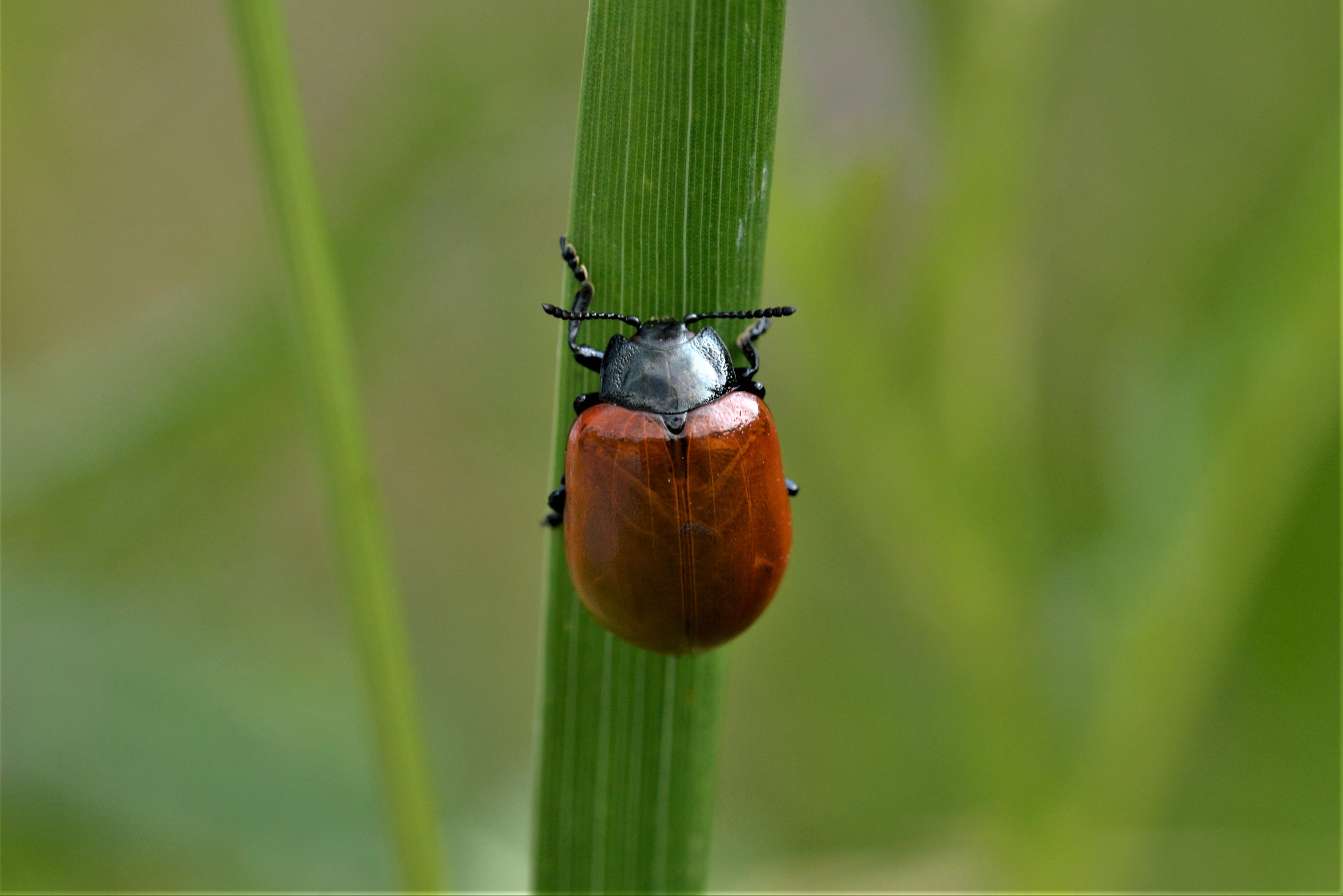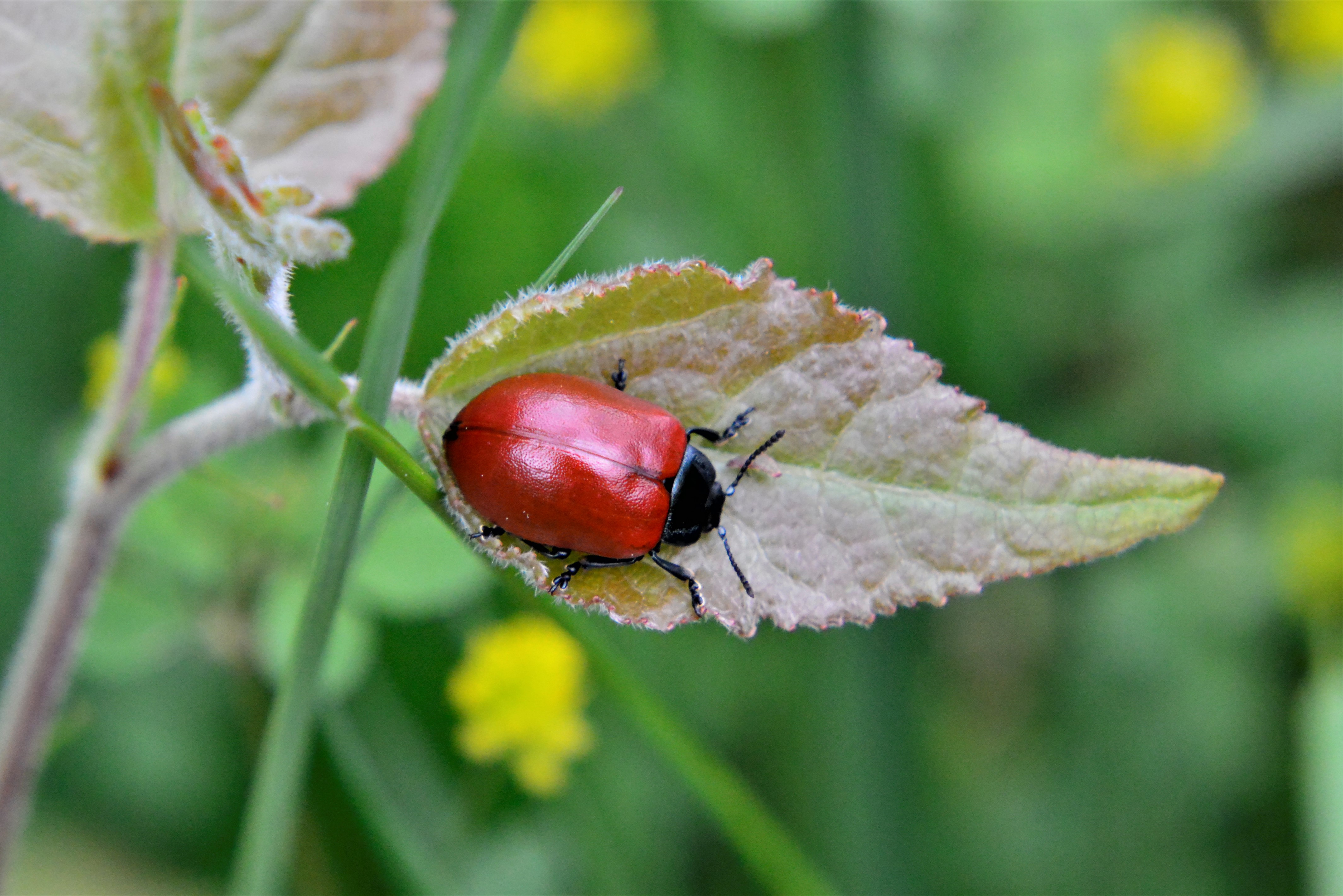Pappelblattkäfer (Chrysomela populi) in der Gemarkung Hohenprießnitz, Sportplatz, nördlicher Waldrand, auf einer Espe (Populus tremula), April 2014 (© Michael Happ)( Bild vergrößern)