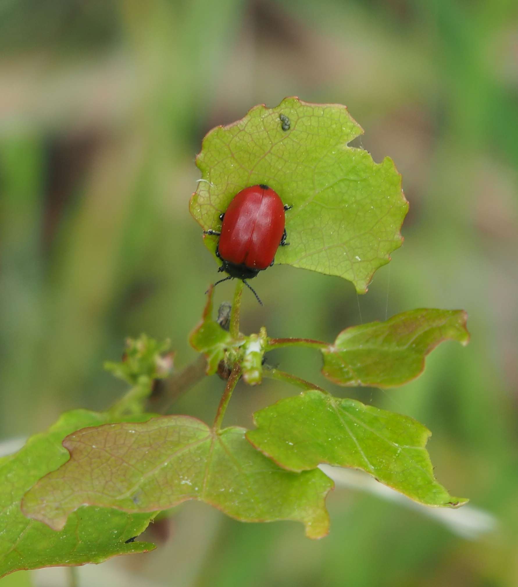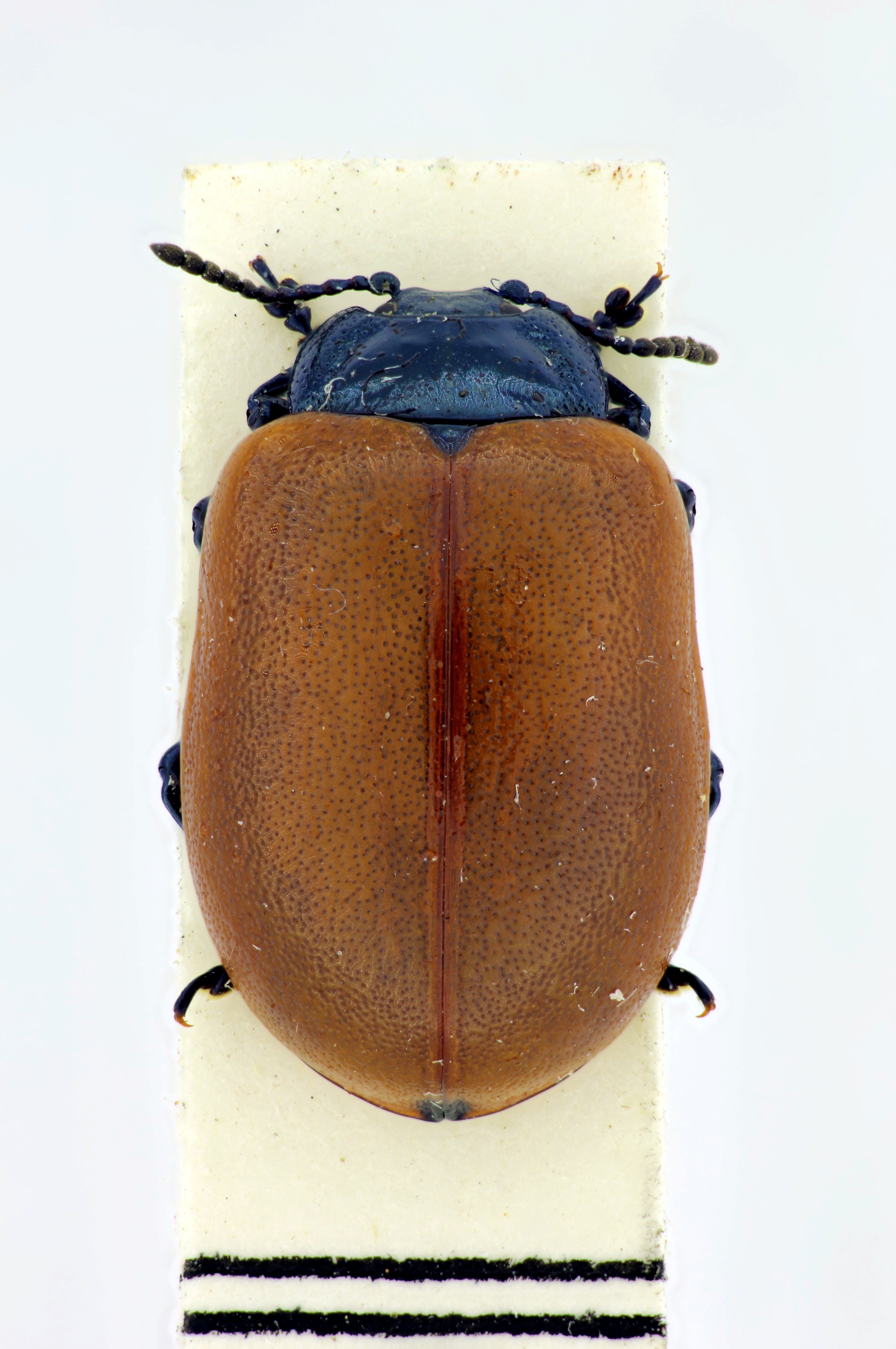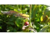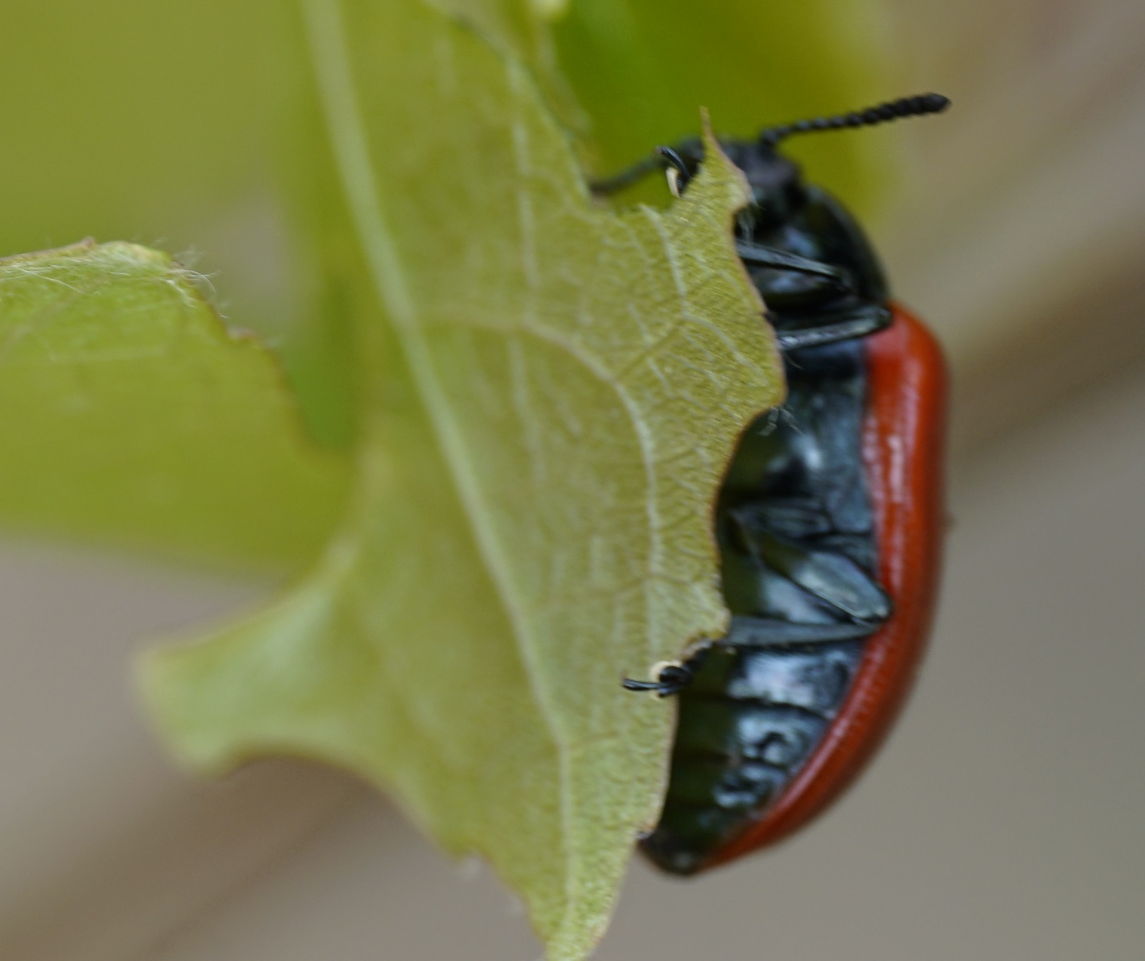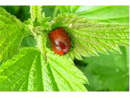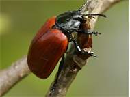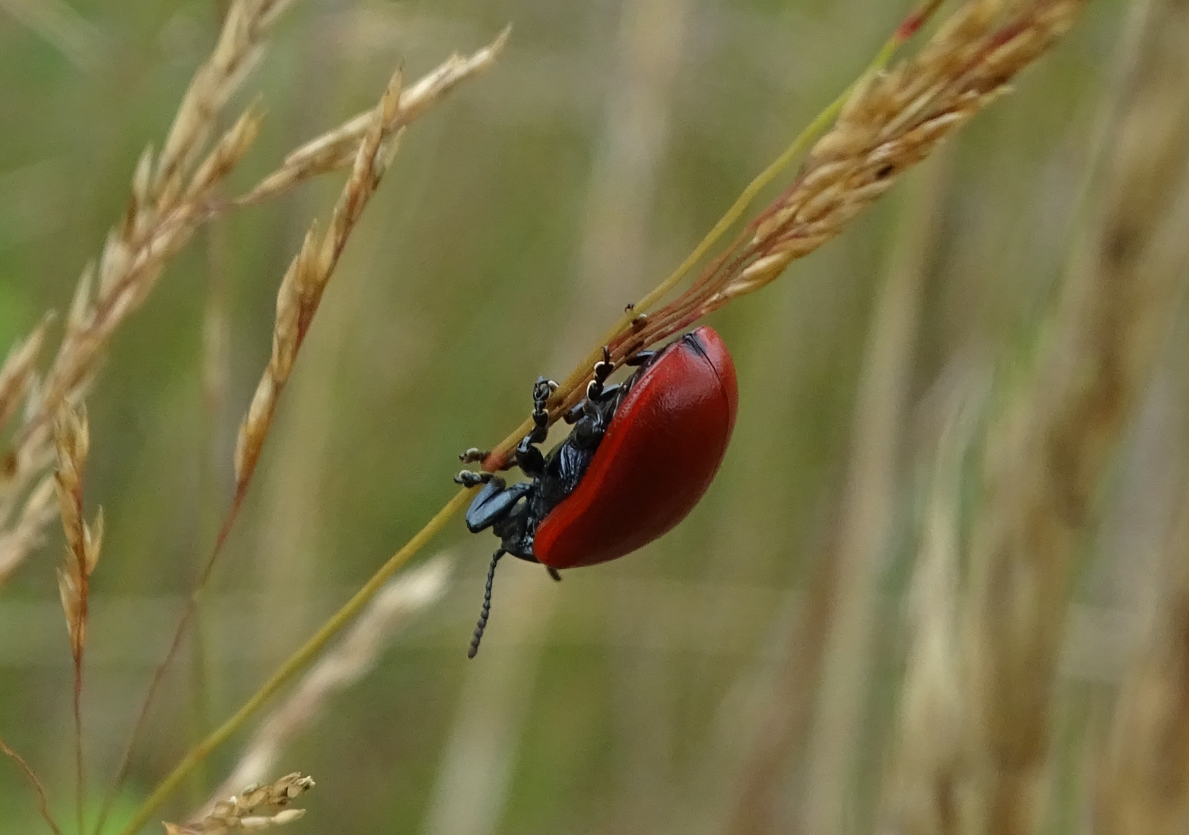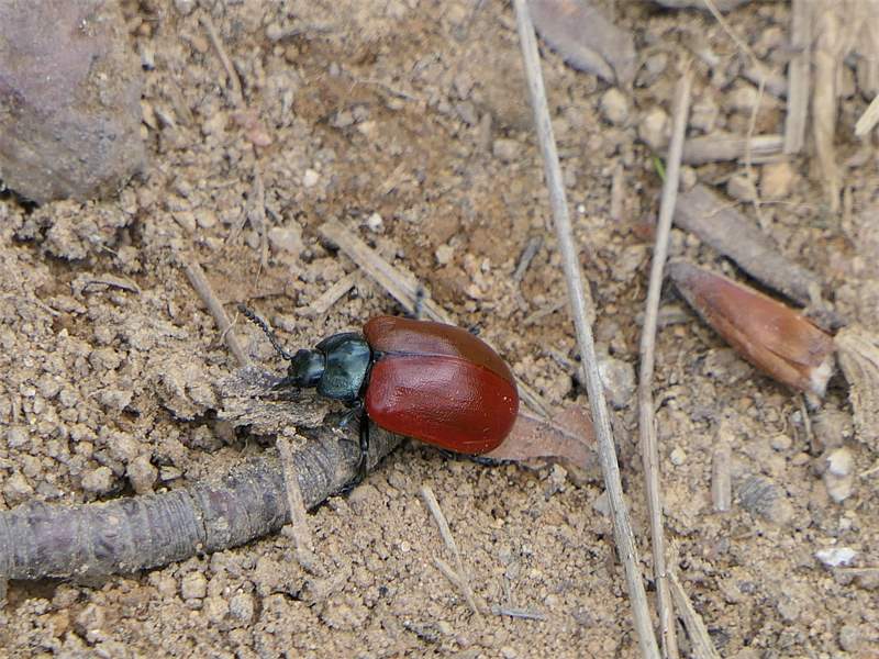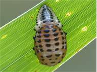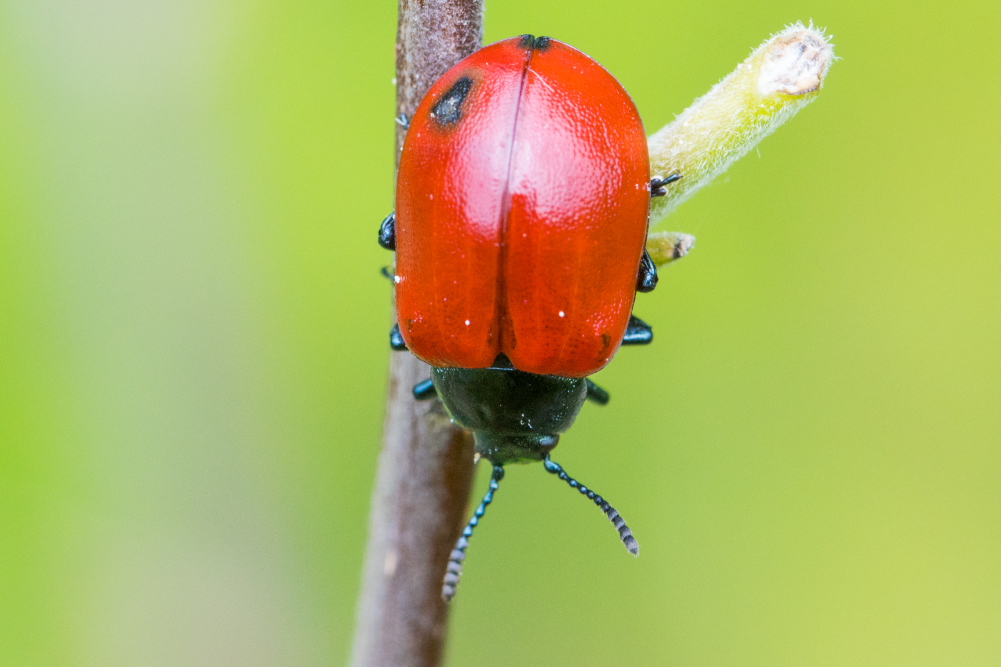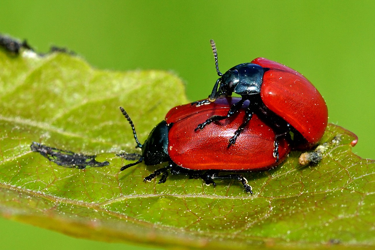 Pappelblattkäfer (Chrysomela populi) in der Gemarkung Hohenprießnitz, Sportplatz, nördlicher Waldrand, auf einer Espe (Populus tremula), April 2014 (© Michael Happ)( Bild vergrößern)