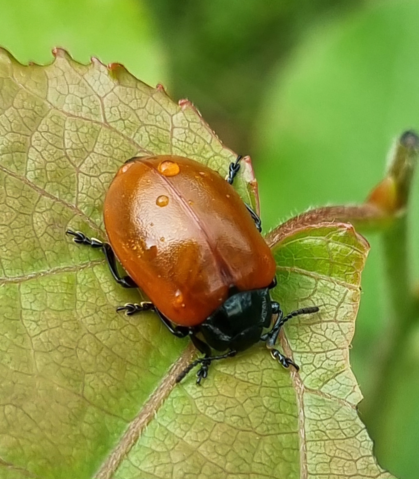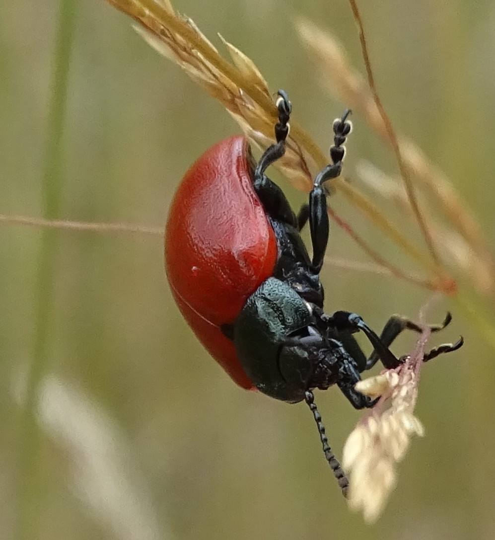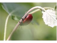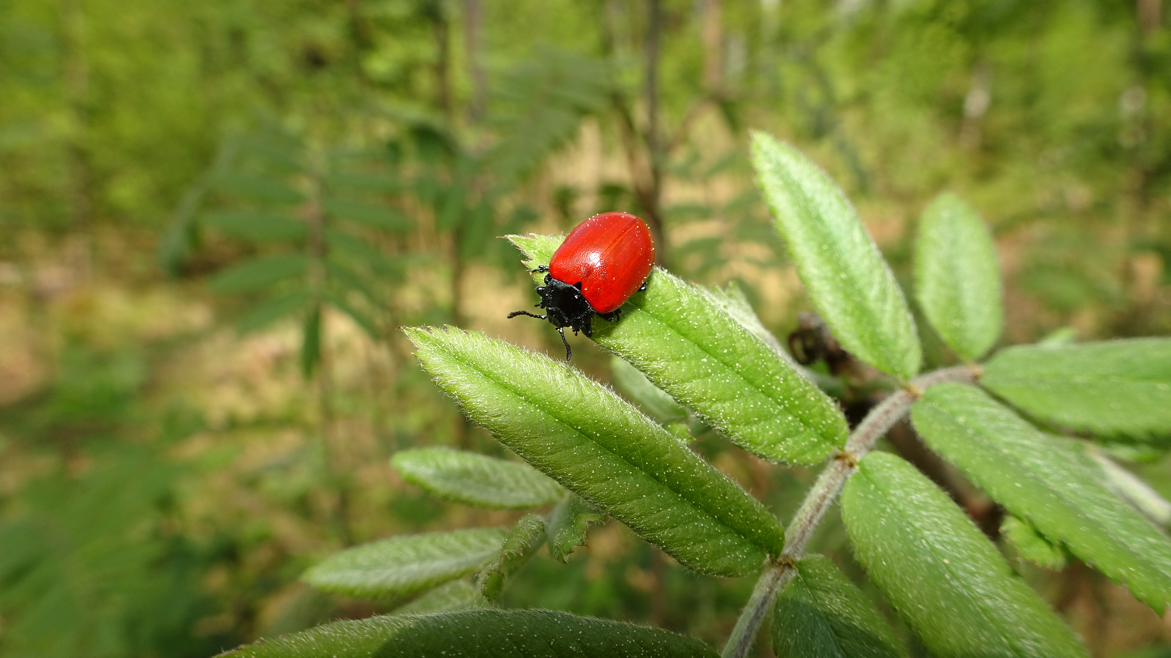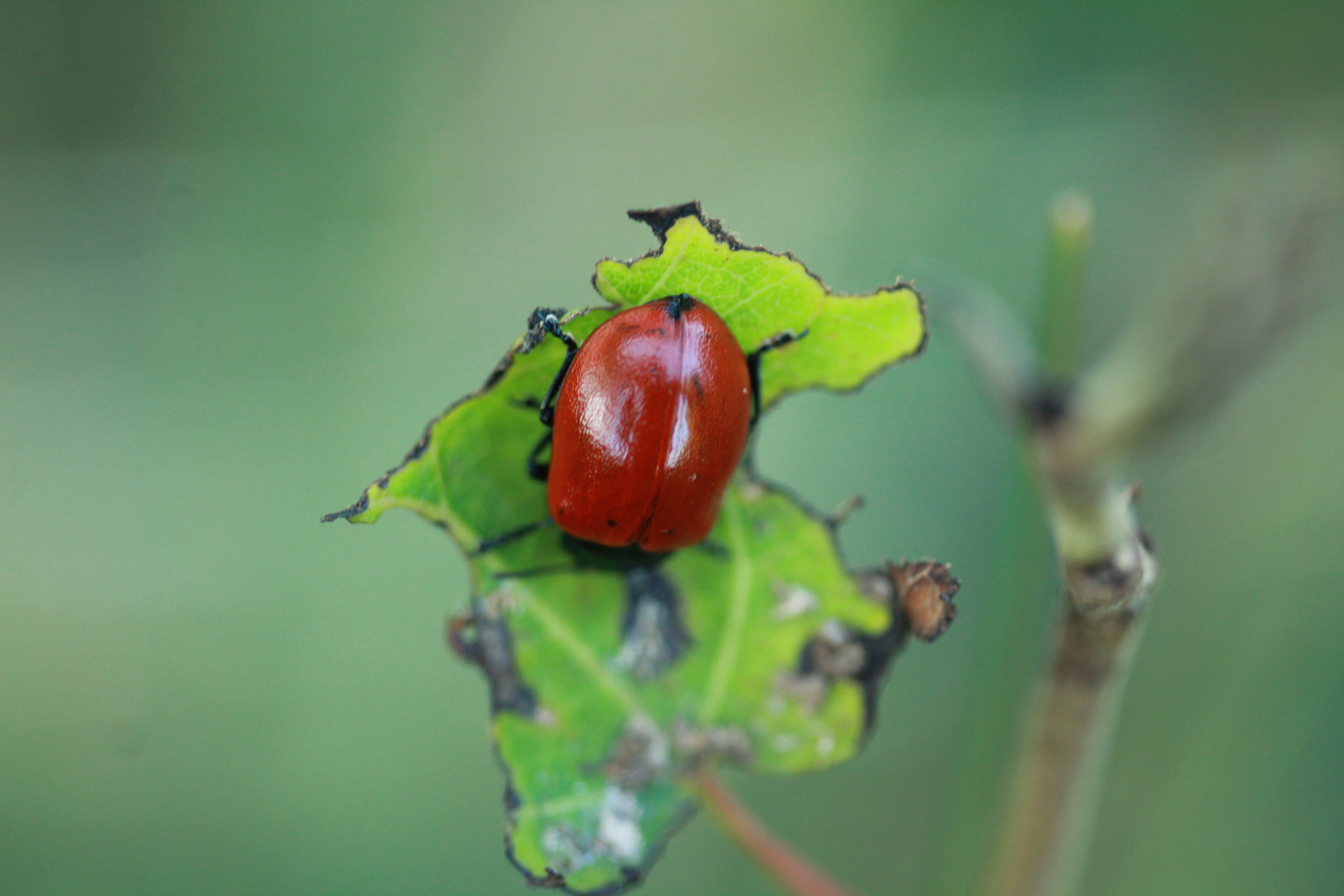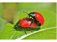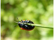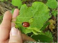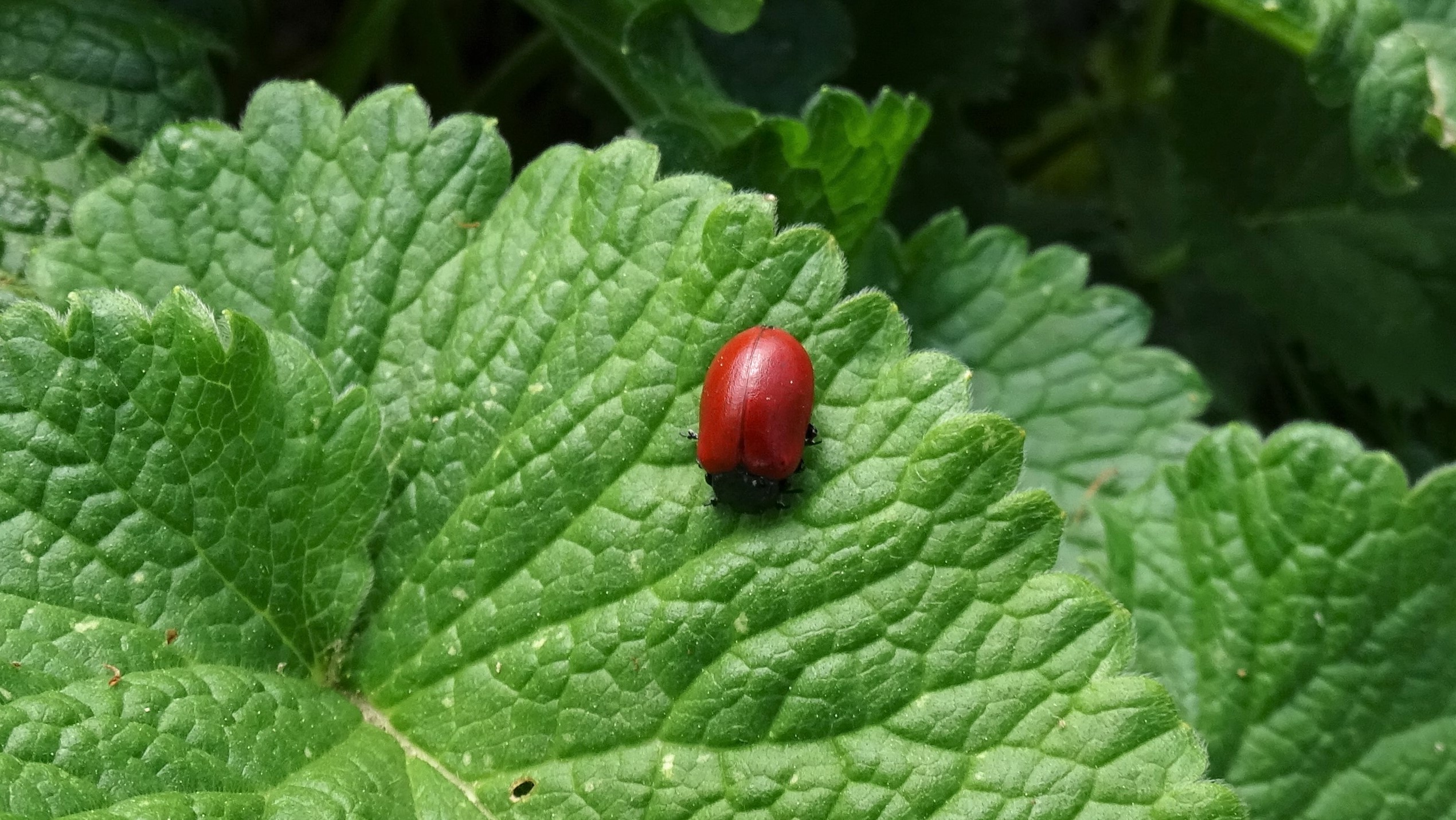 Pappelblattkäfer (Chrysomela populi) in der Gemarkung Hohenprießnitz, Sportplatz, nördlicher Waldrand, auf einer Espe (Populus tremula), April 2014 (© Michael Happ)( Bild vergrößern)