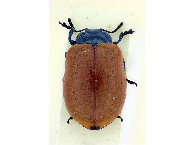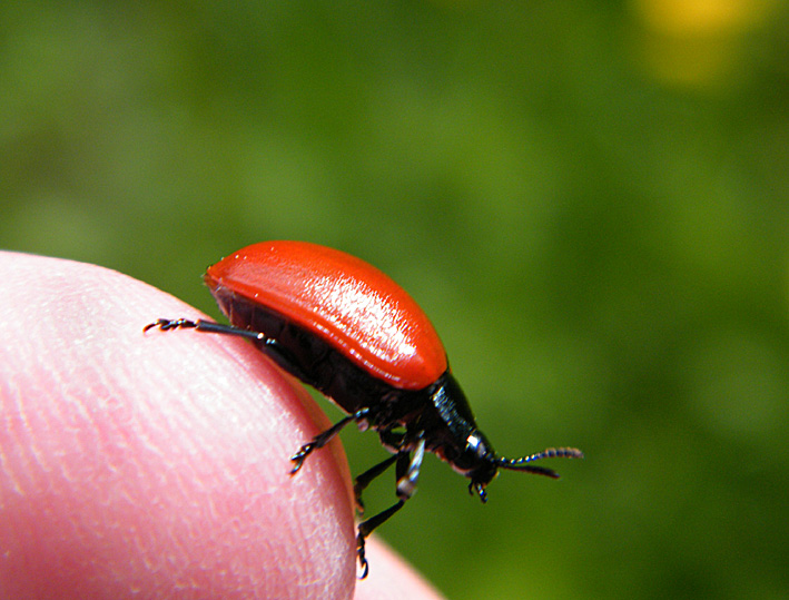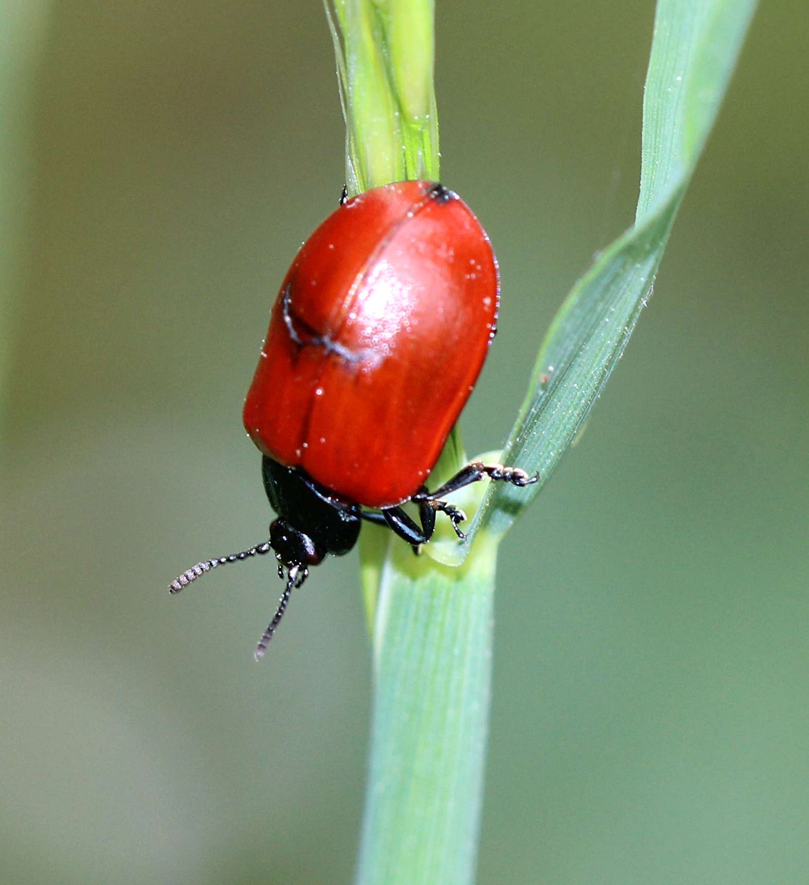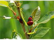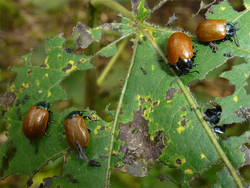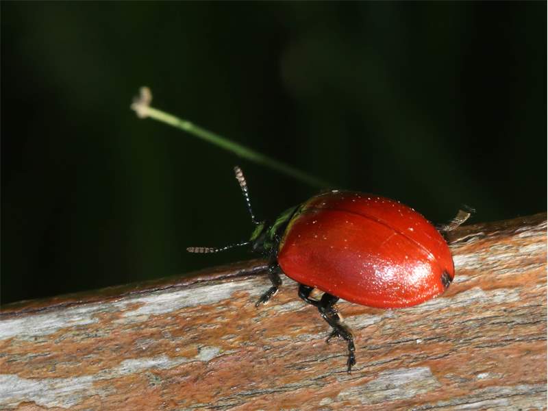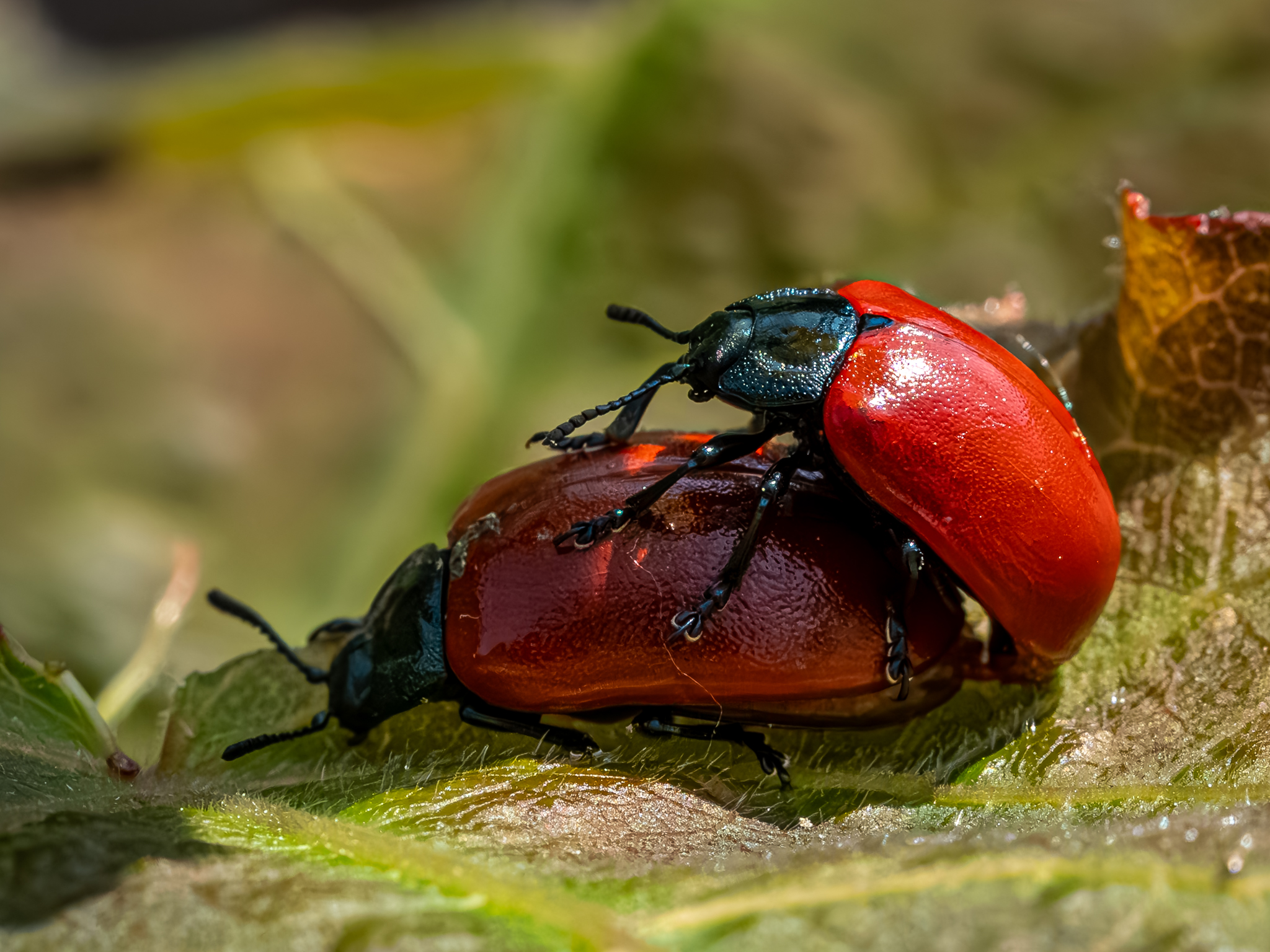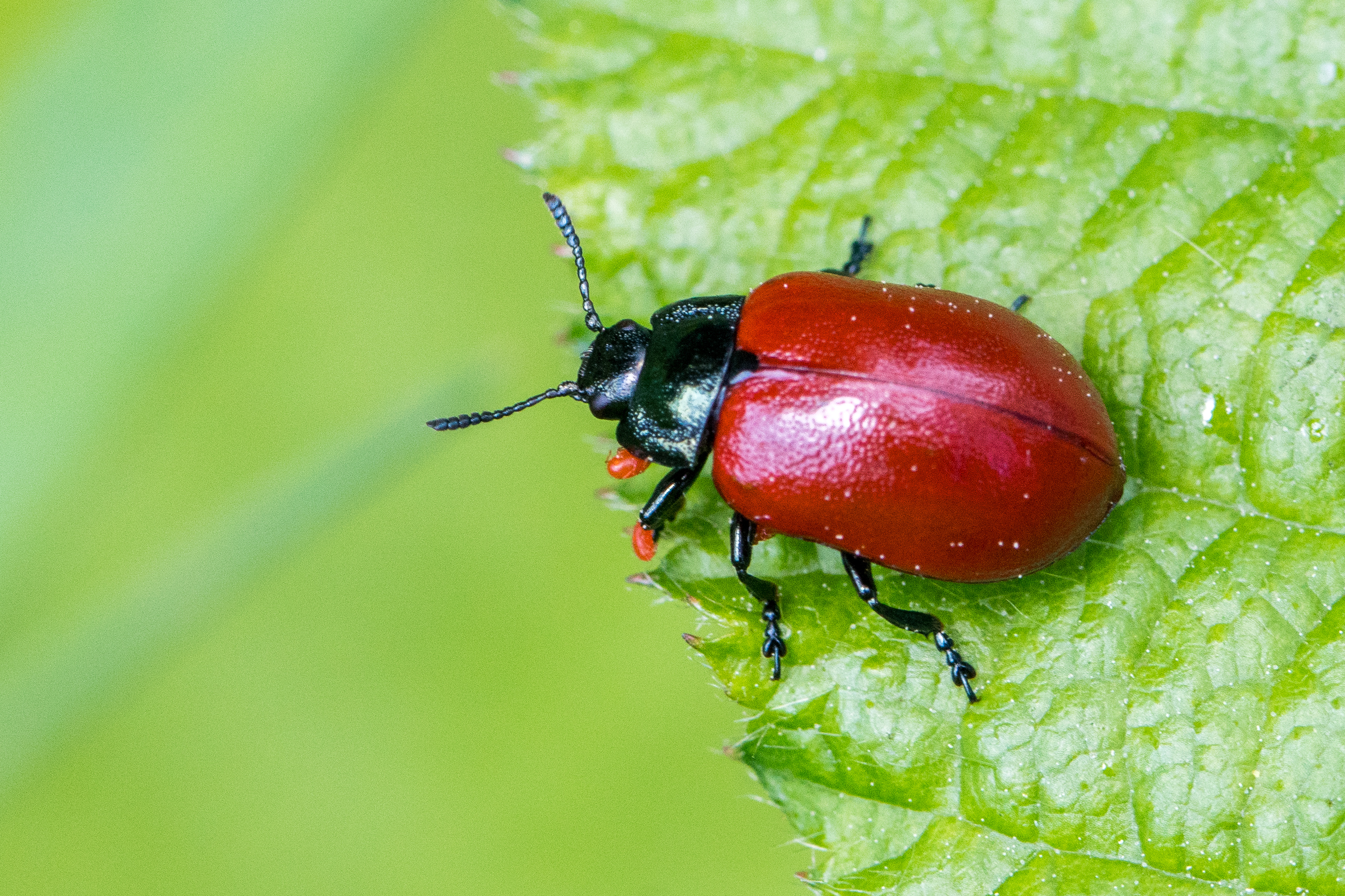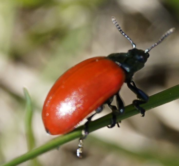 Pappelblattkäfer (Chrysomela populi) in der Gemarkung Hohenprießnitz, Sportplatz, nördlicher Waldrand, auf einer Espe (Populus tremula), April 2014 (© Michael Happ)( Bild vergrößern)