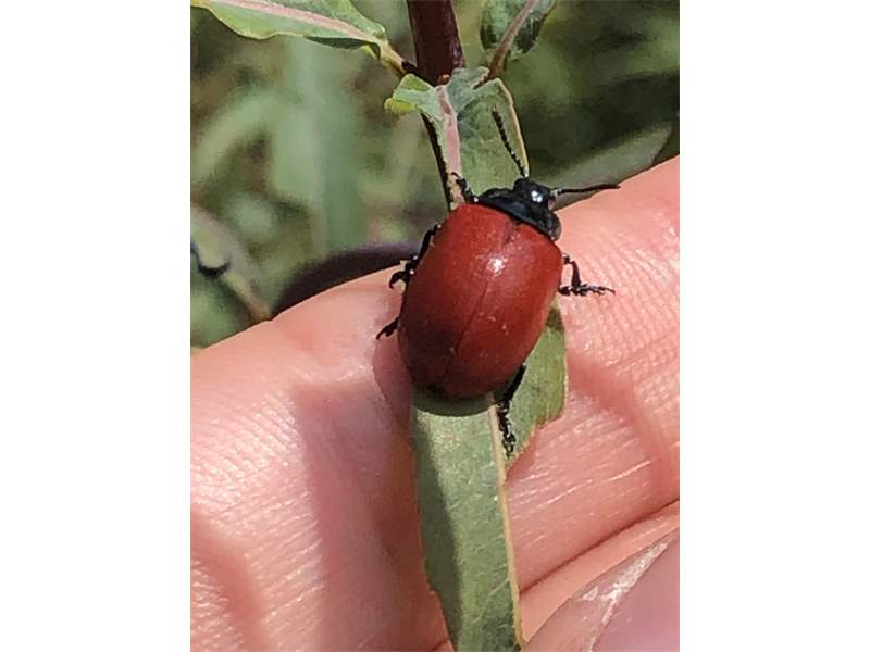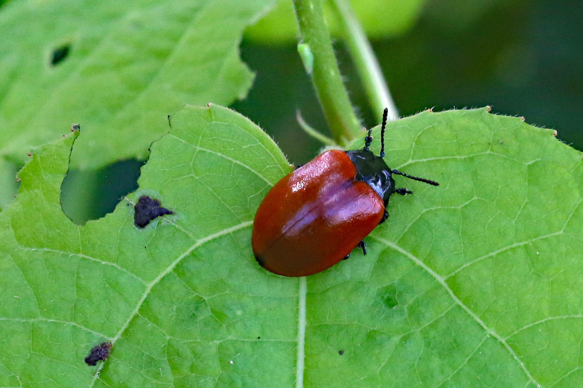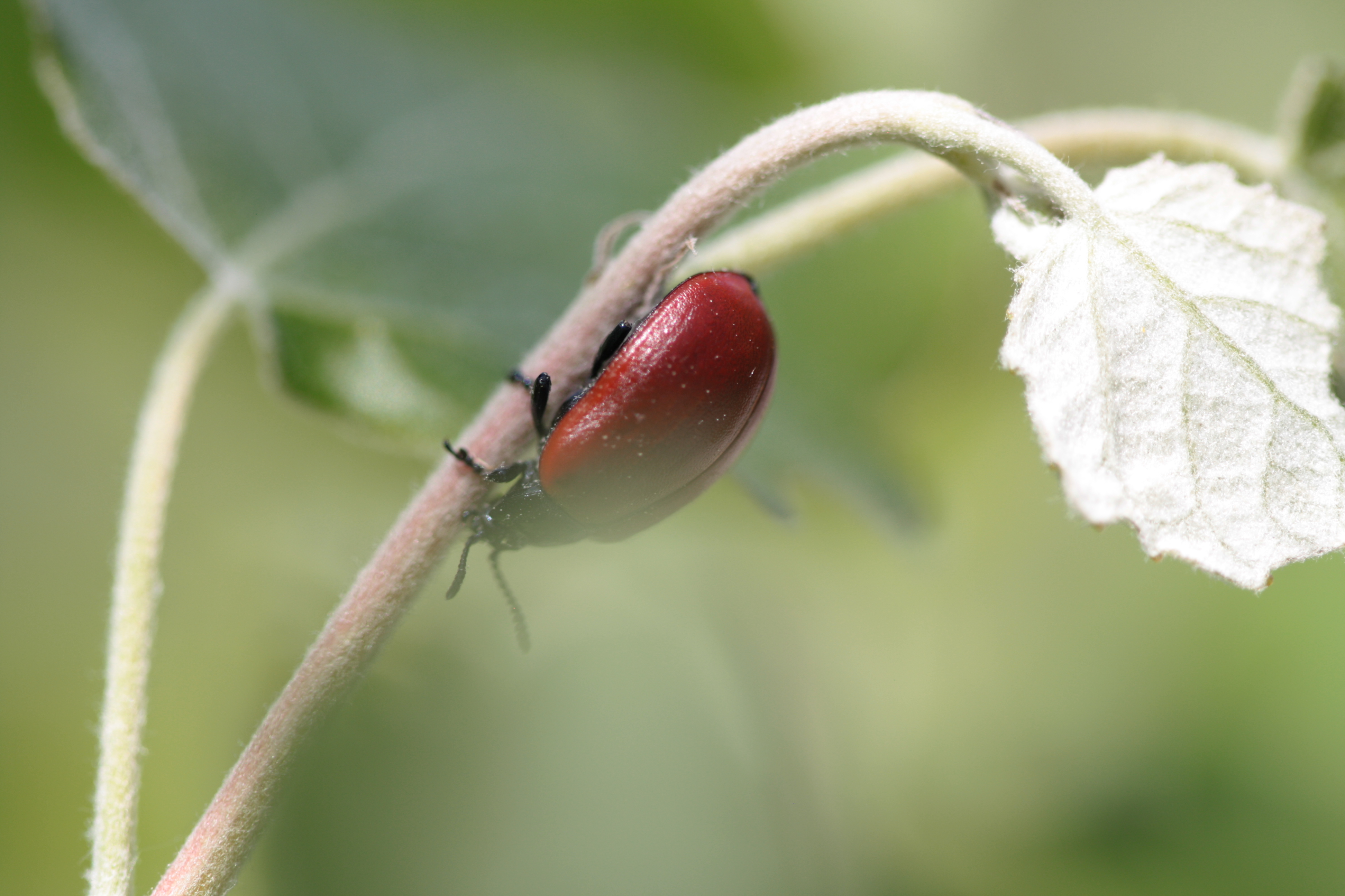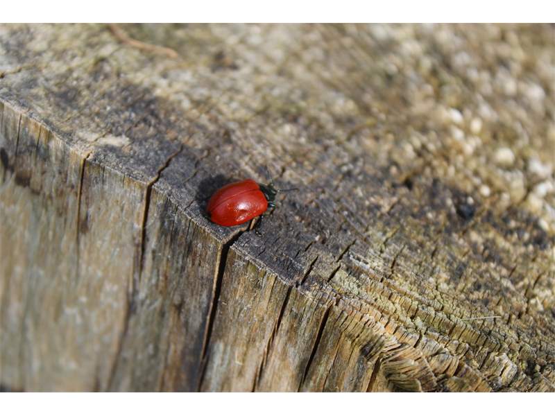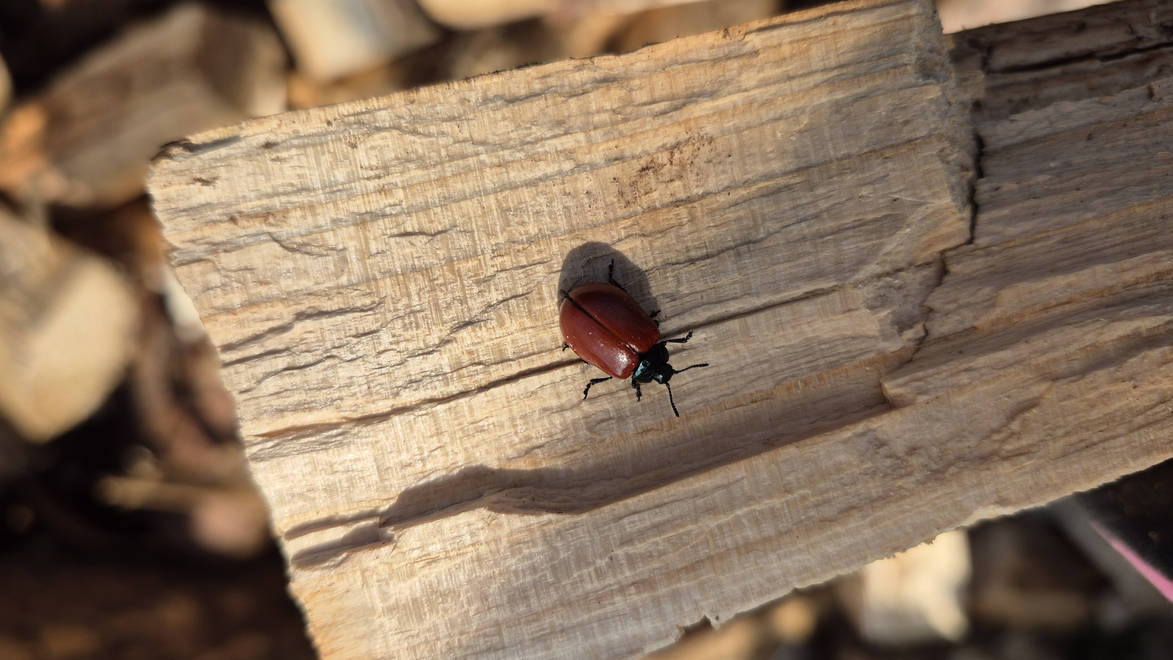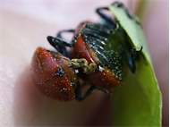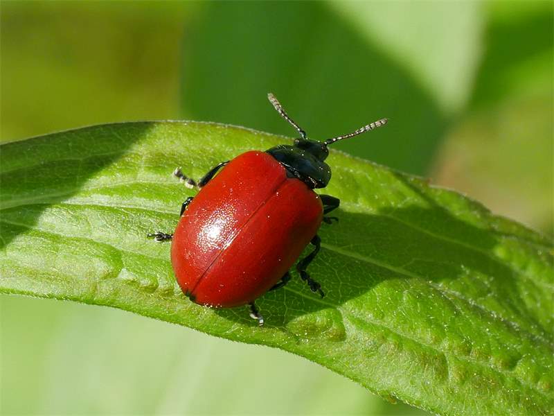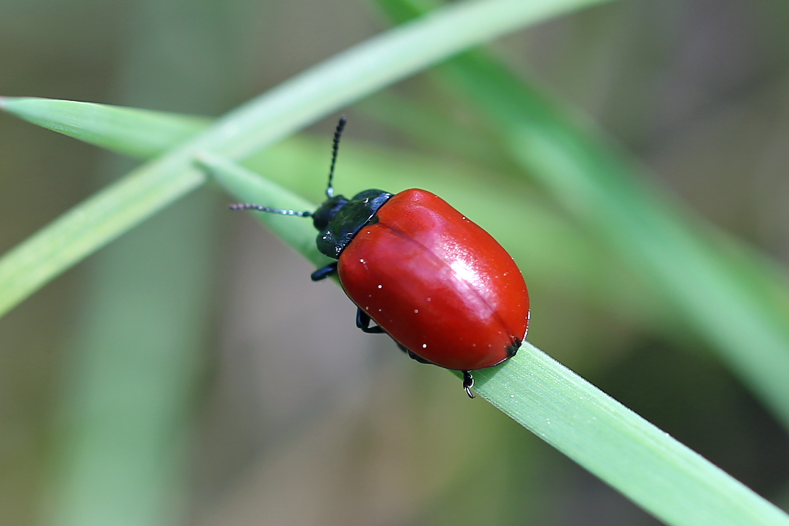 Pappelblattkäfer (Chrysomela populi) in der Gemarkung Hohenprießnitz, Sportplatz, nördlicher Waldrand, auf einer Espe (Populus tremula), April 2014 (© Michael Happ)( Bild vergrößern)
