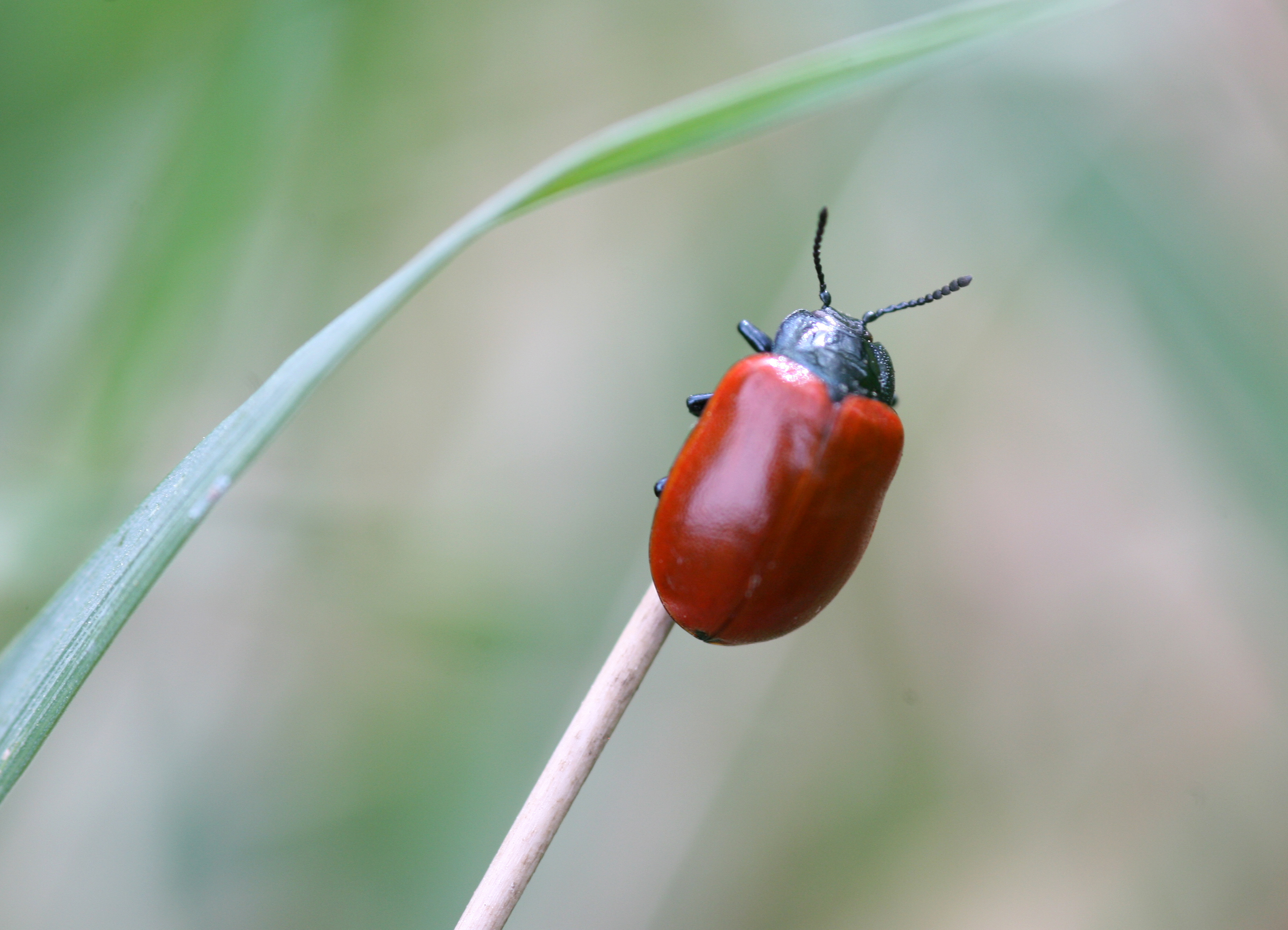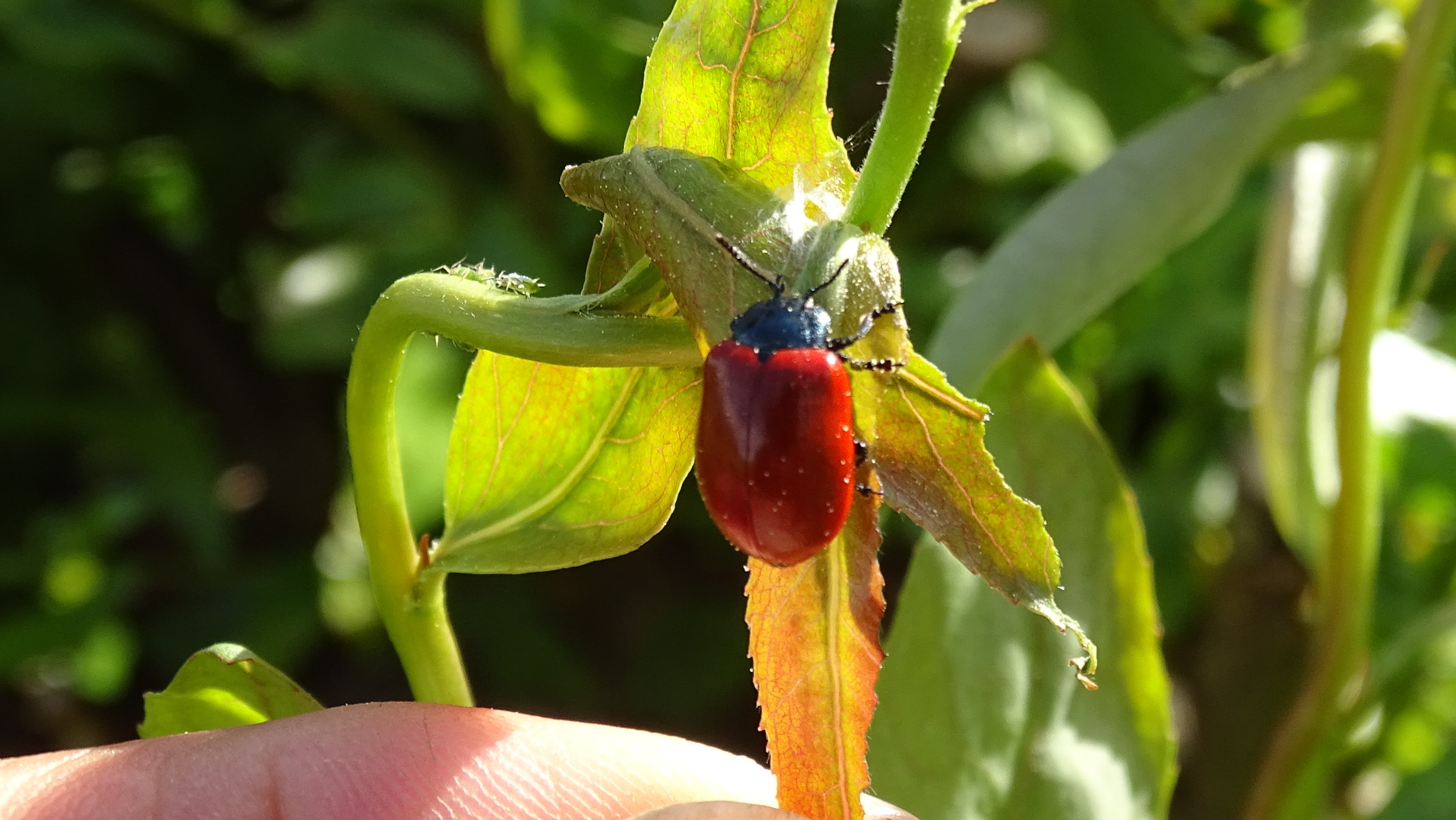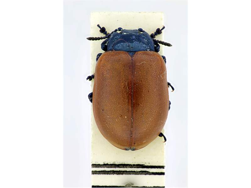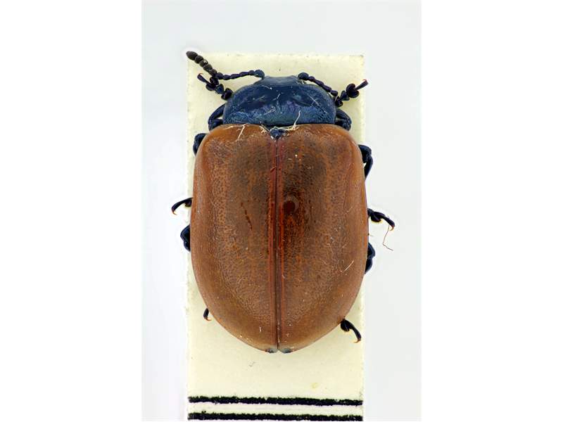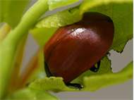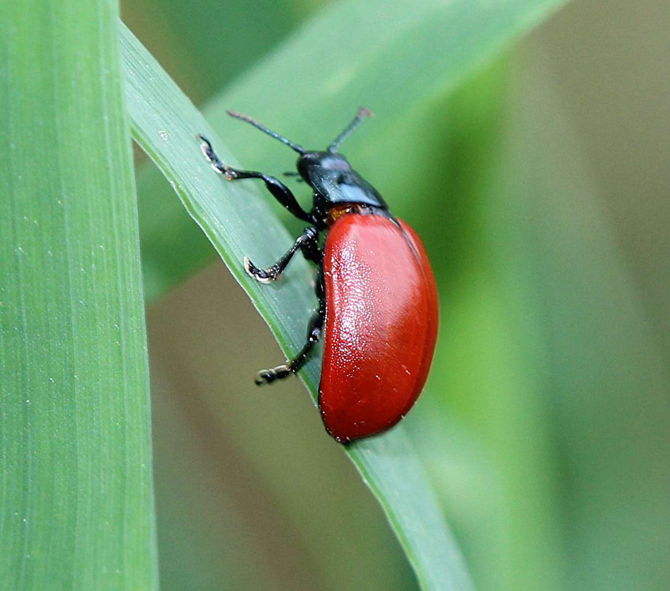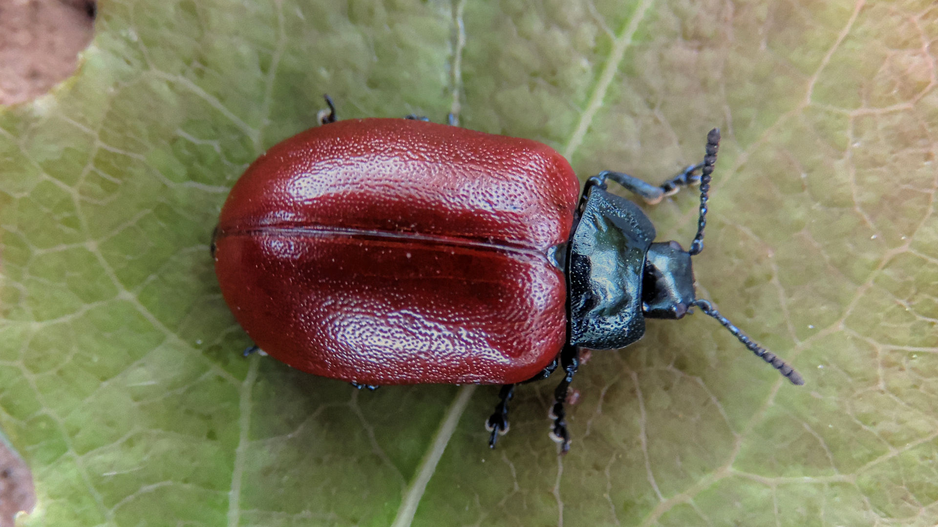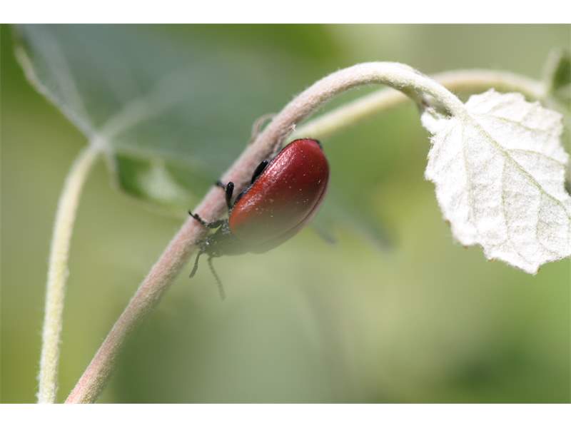 Pappelblattkäfer (Chrysomela populi) in der Gemarkung Hohenprießnitz, Sportplatz, nördlicher Waldrand, auf einer Espe (Populus tremula), April 2014 (© Michael Happ)( Bild vergrößern)