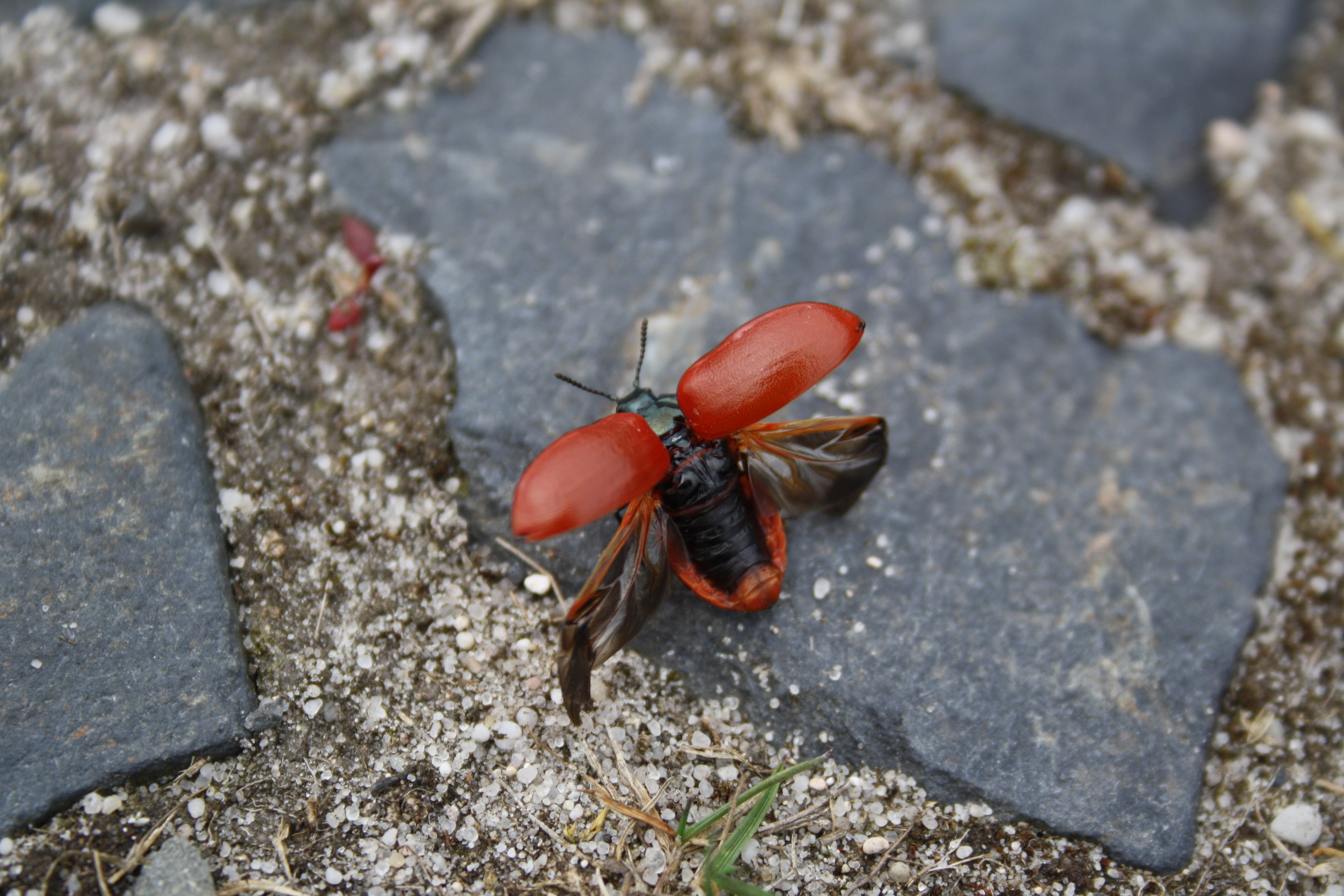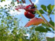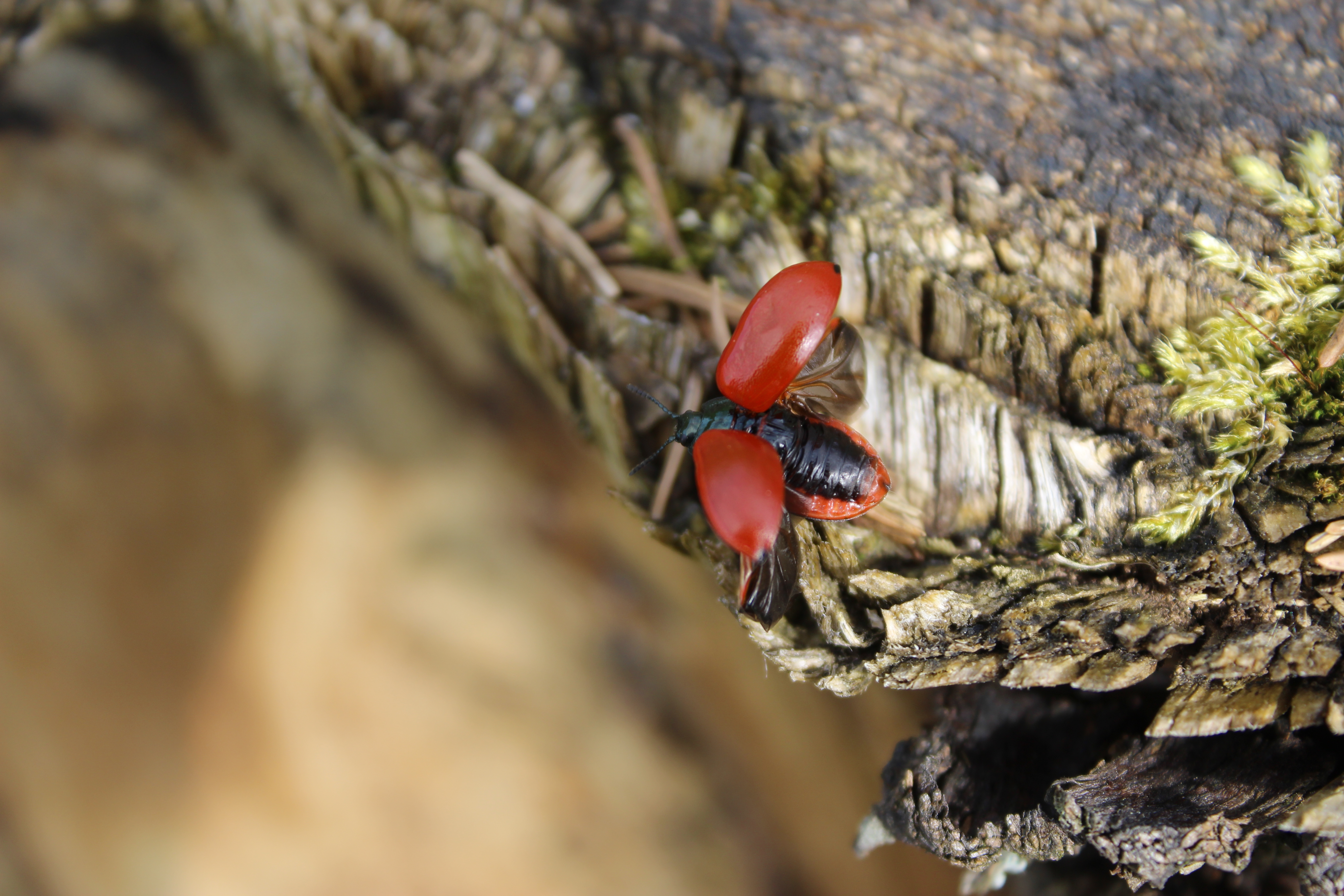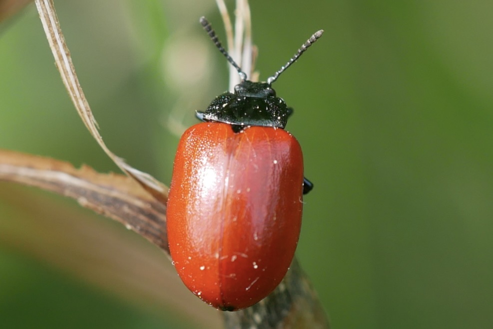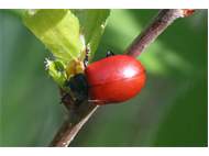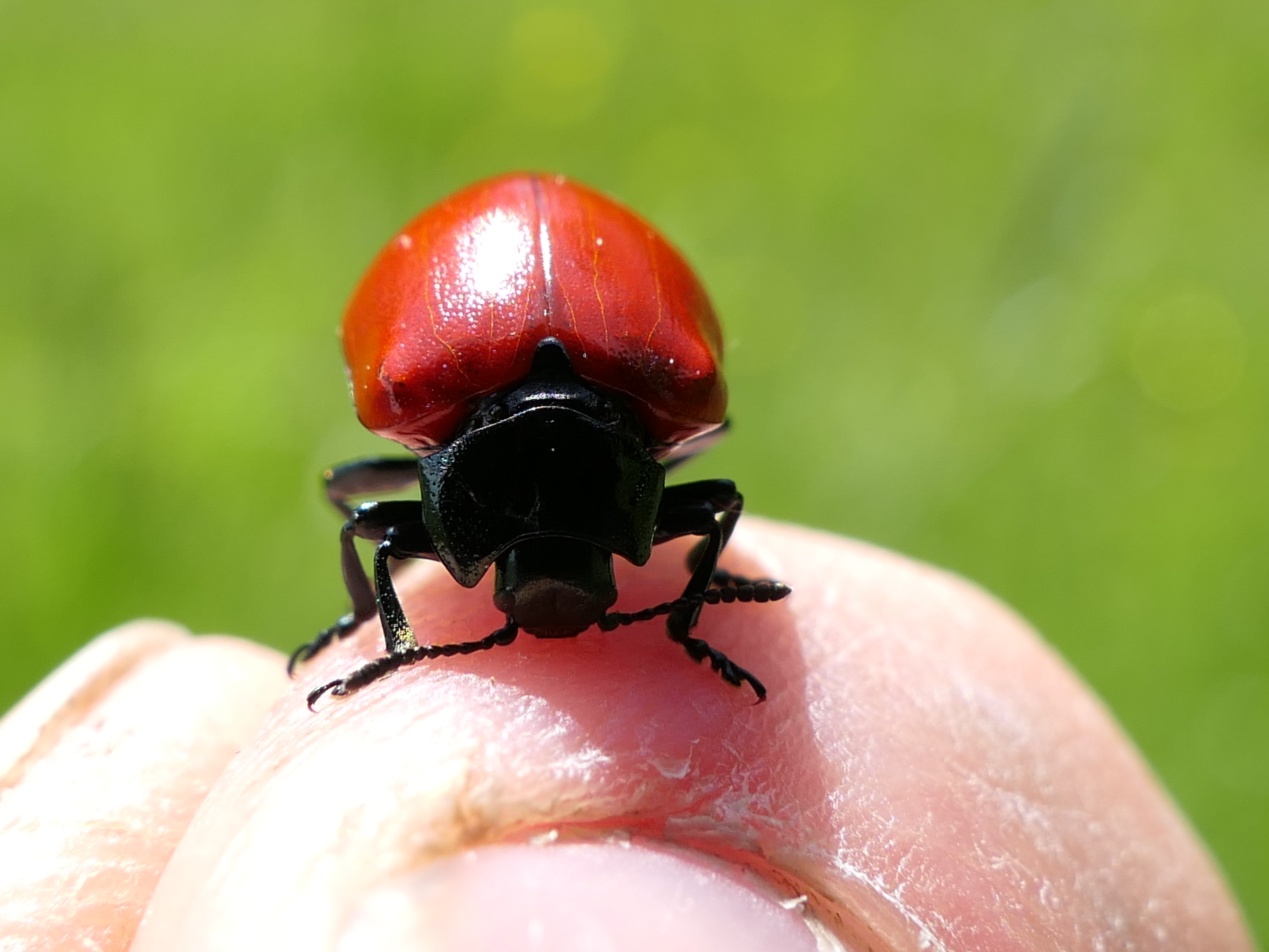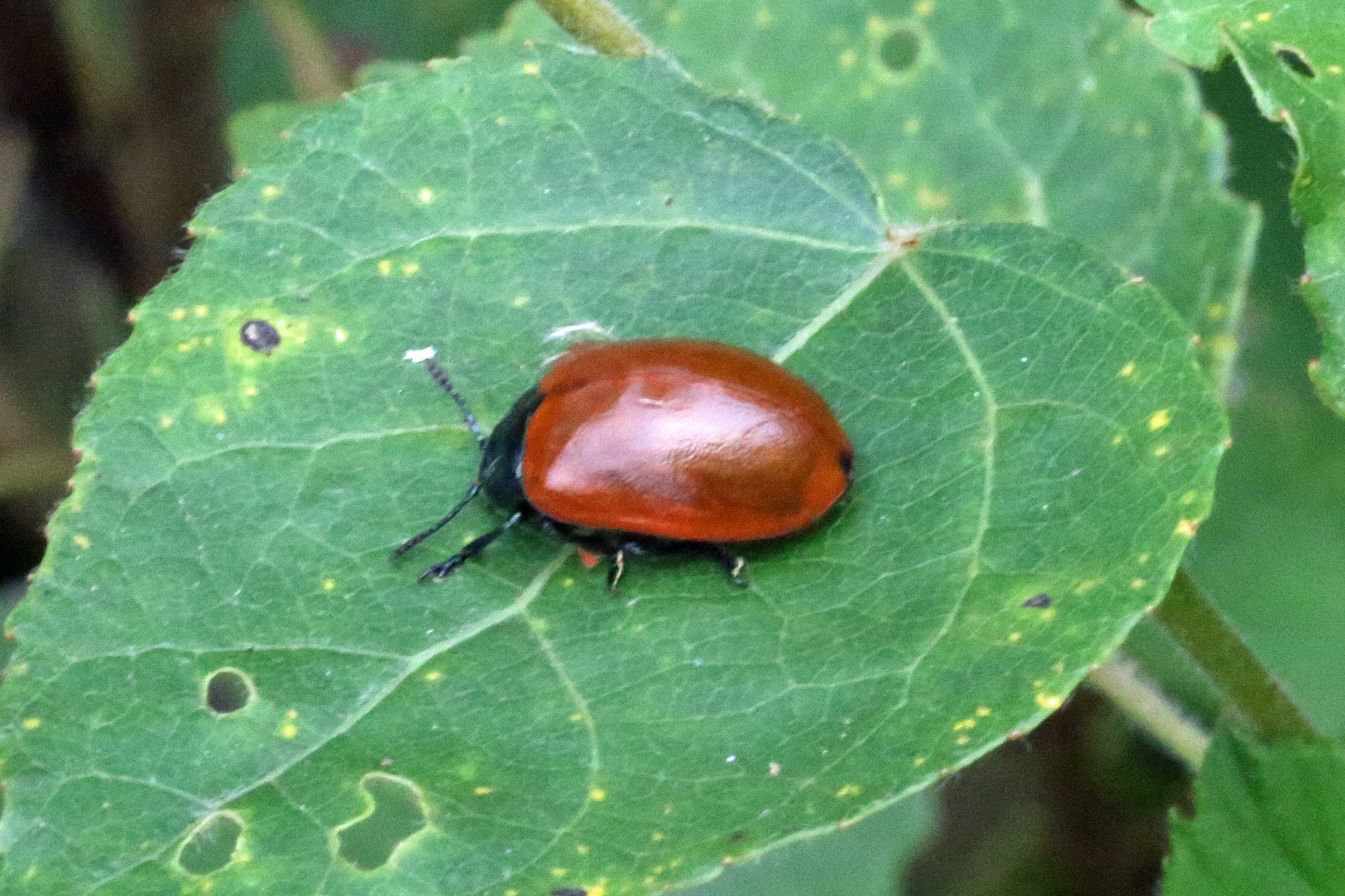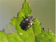 Pappelblattkäfer (Chrysomela populi) in der Gemarkung Hohenprießnitz, Sportplatz, nördlicher Waldrand, auf einer Espe (Populus tremula), April 2014 (© Michael Happ)( Bild vergrößern)
