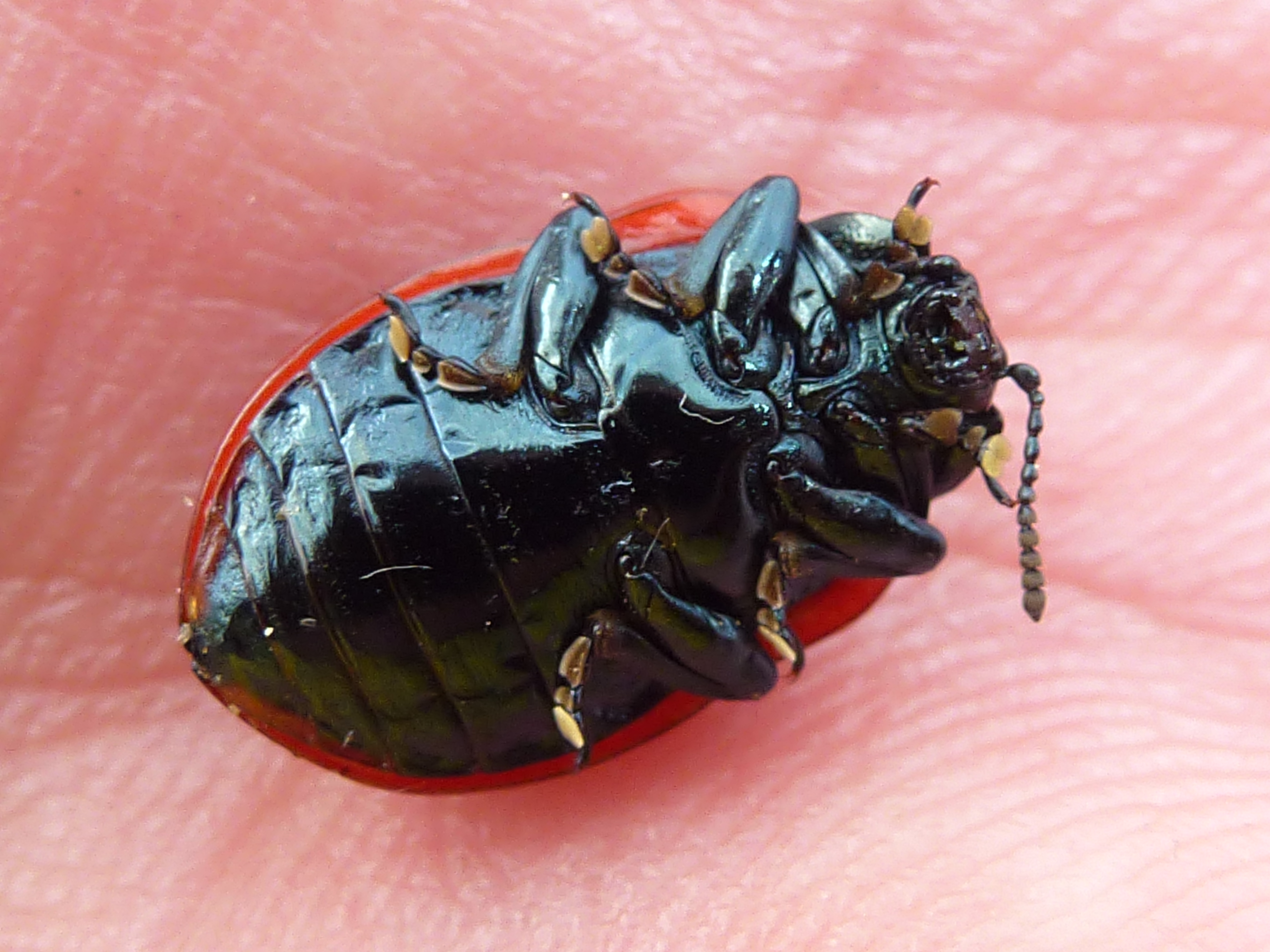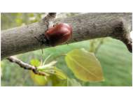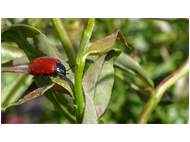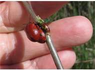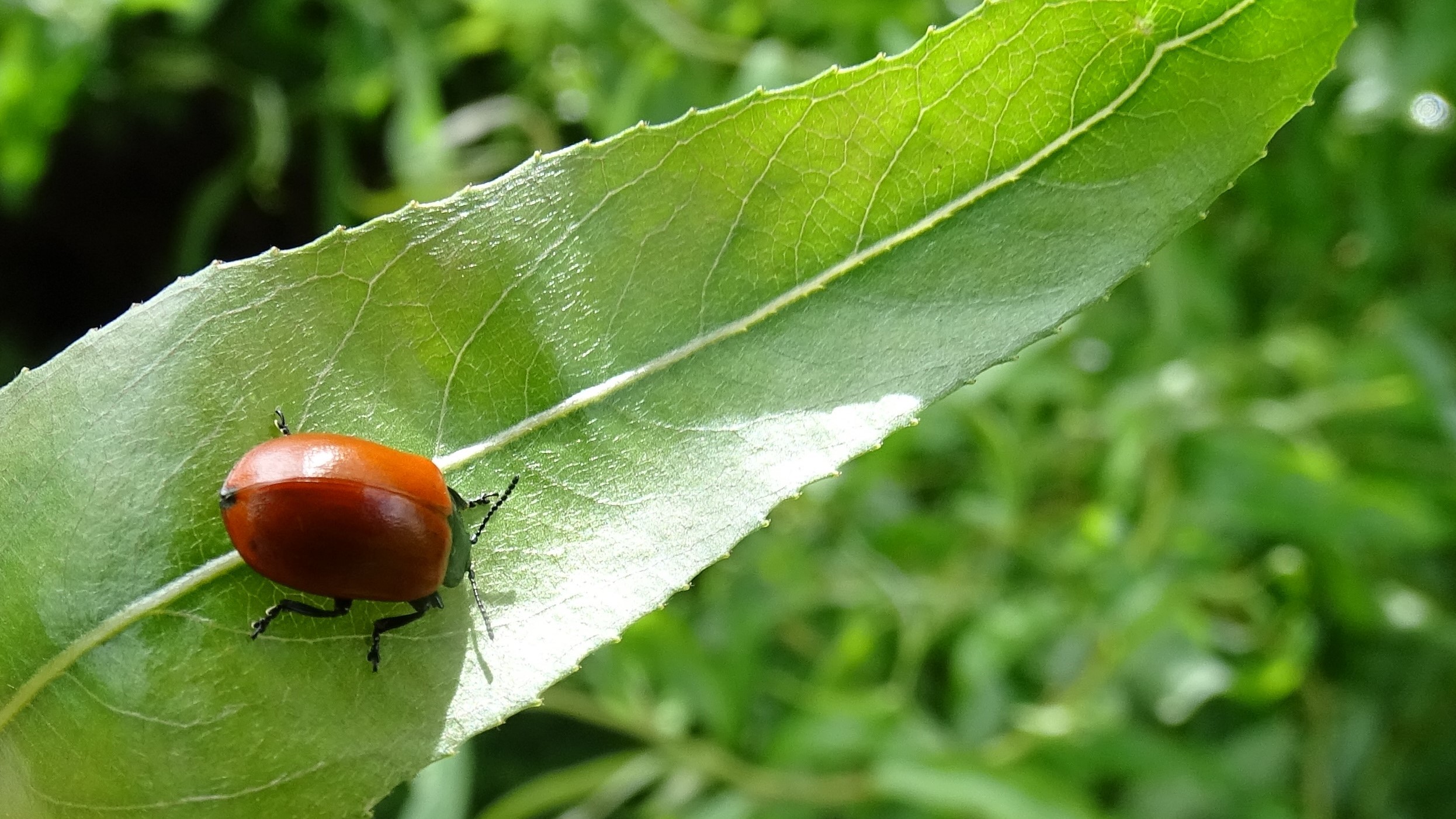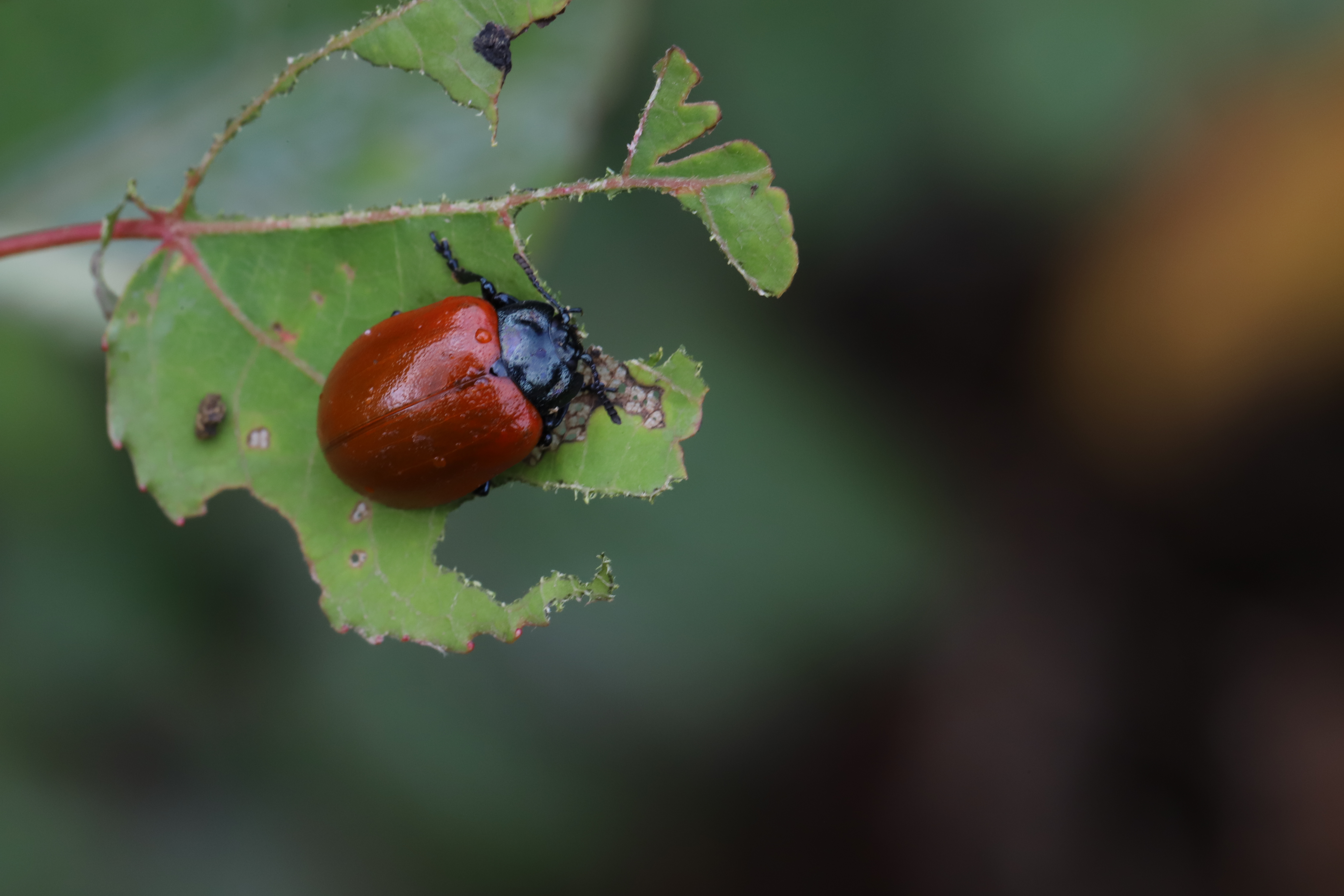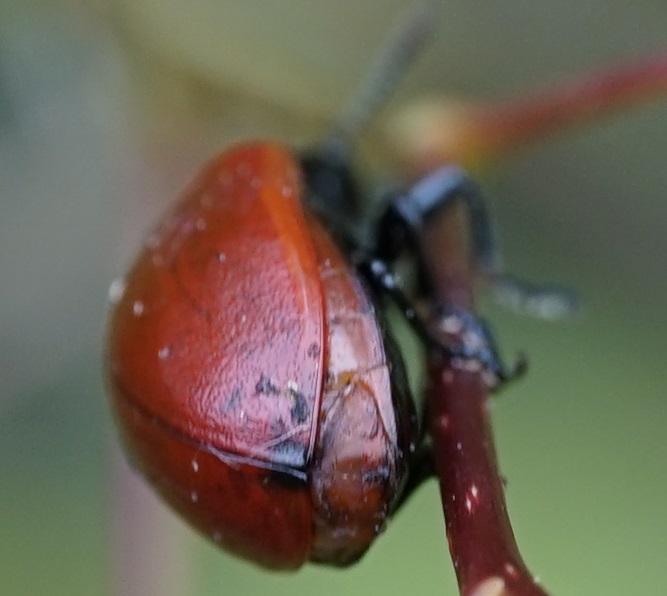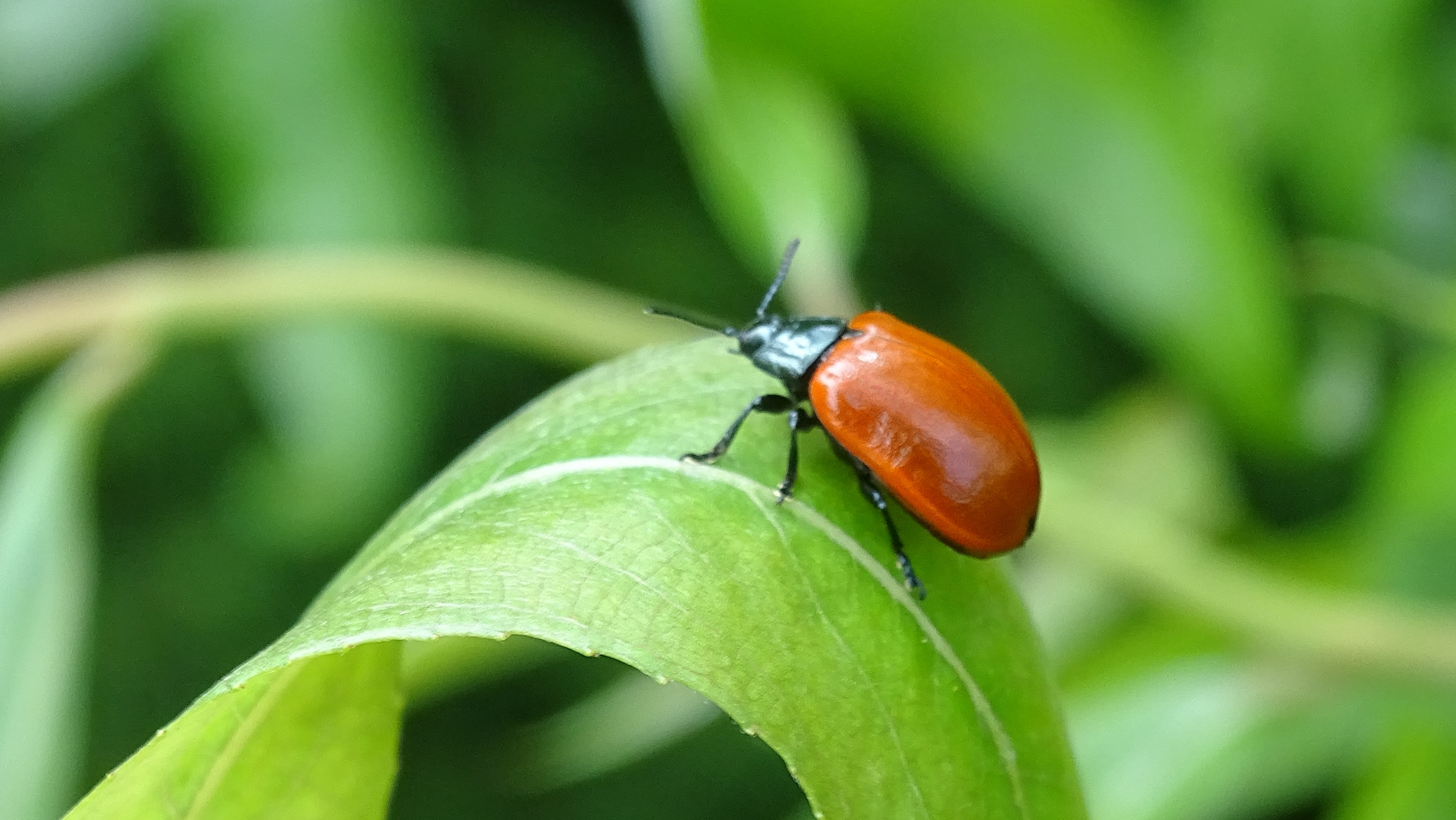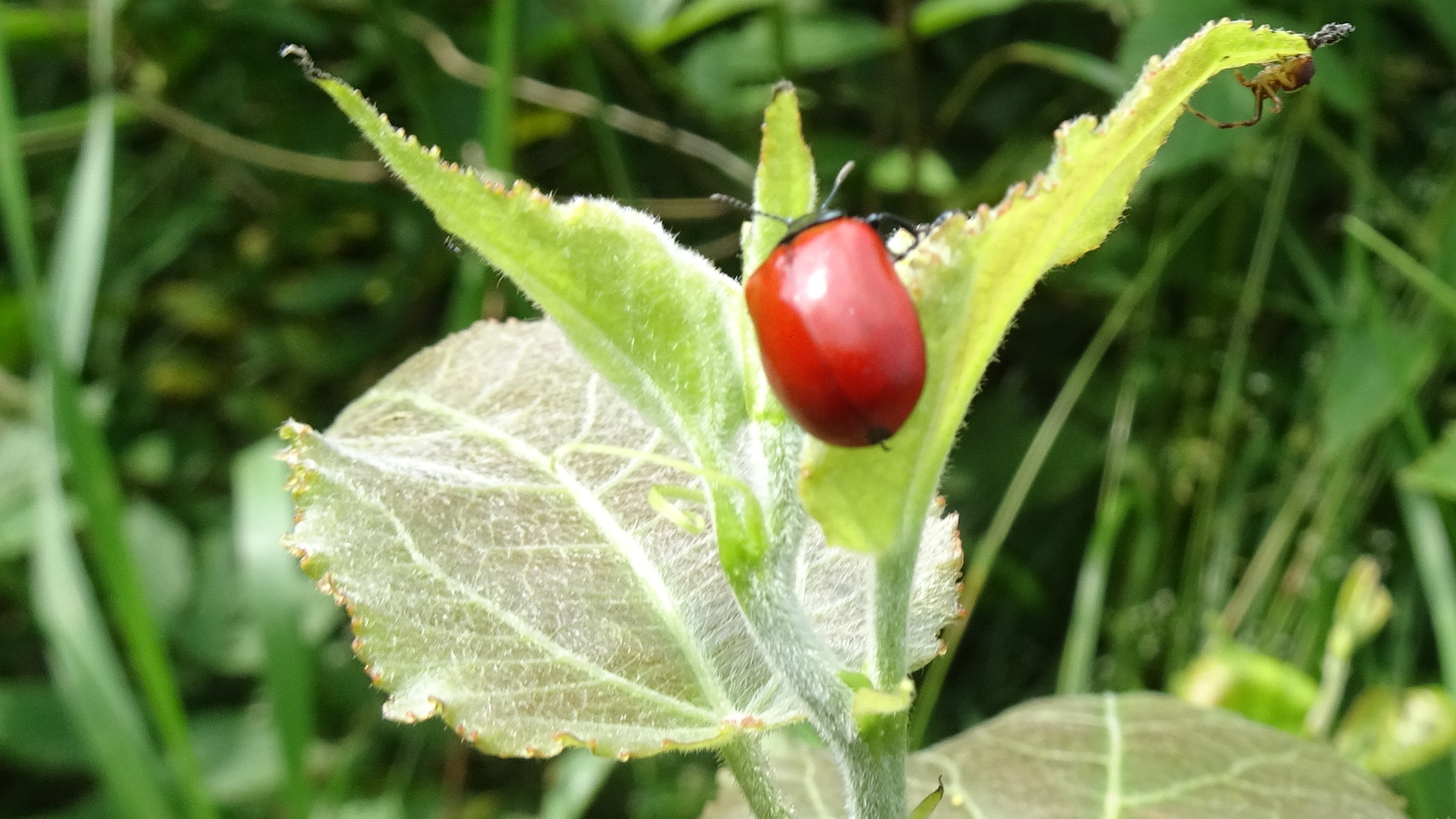 Pappelblattkäfer (Chrysomela populi) in der Gemarkung Hohenprießnitz, Sportplatz, nördlicher Waldrand, auf einer Espe (Populus tremula), April 2014 (© Michael Happ)( Bild vergrößern)
