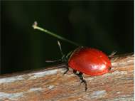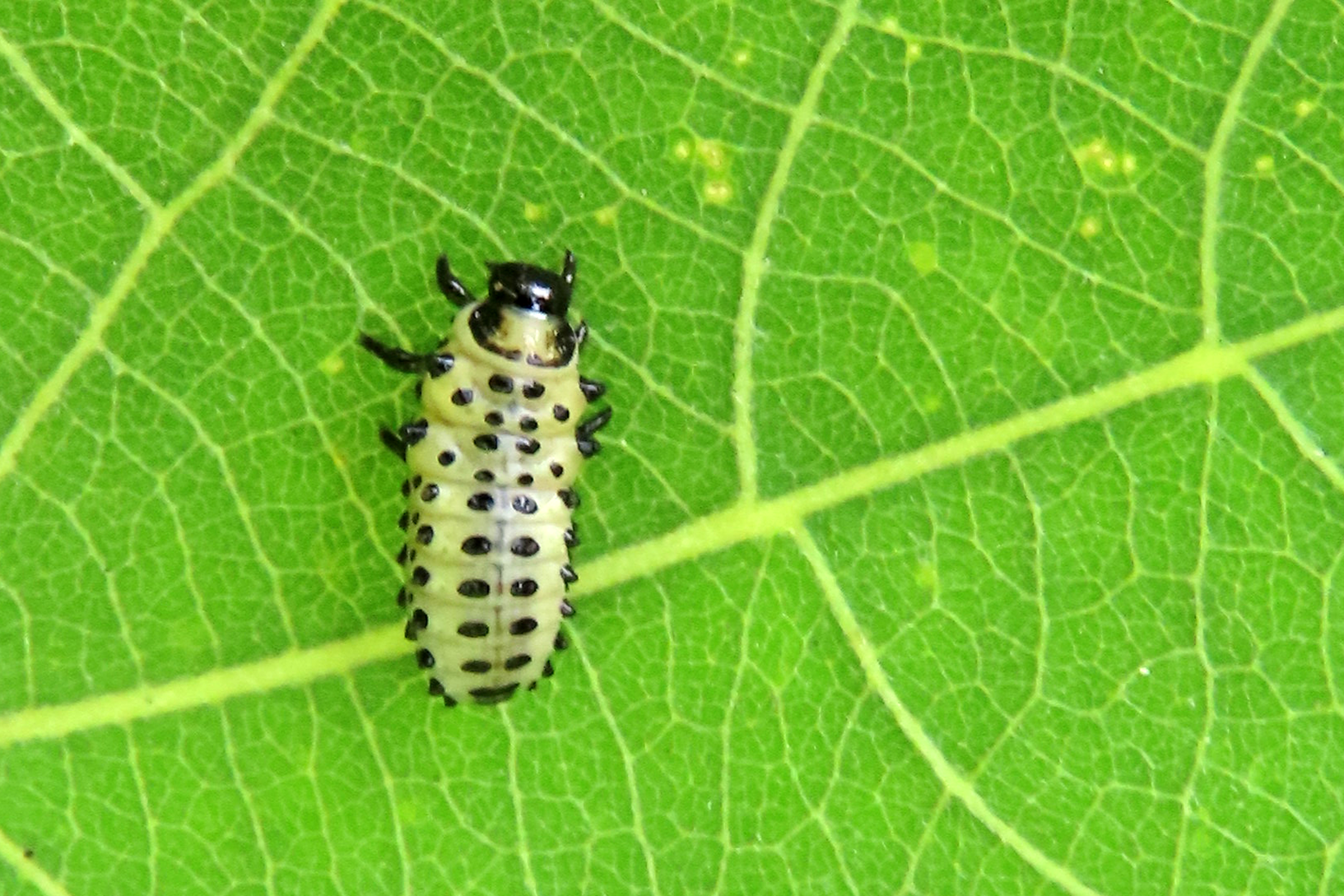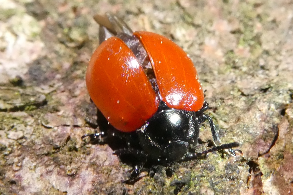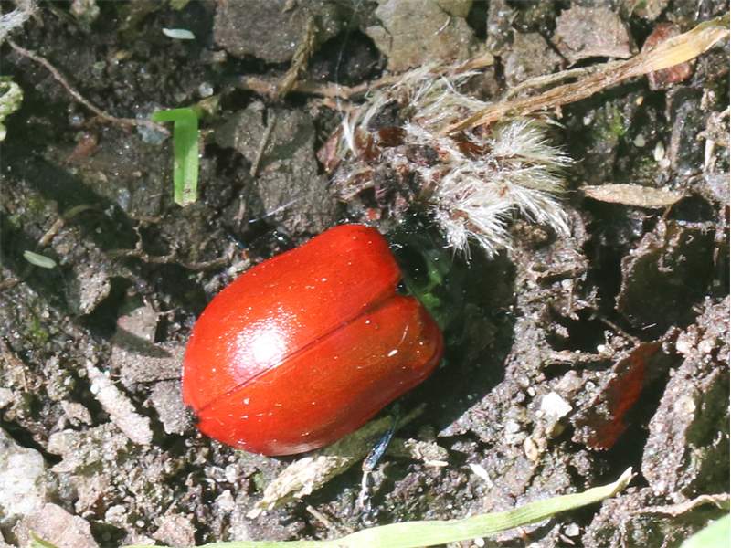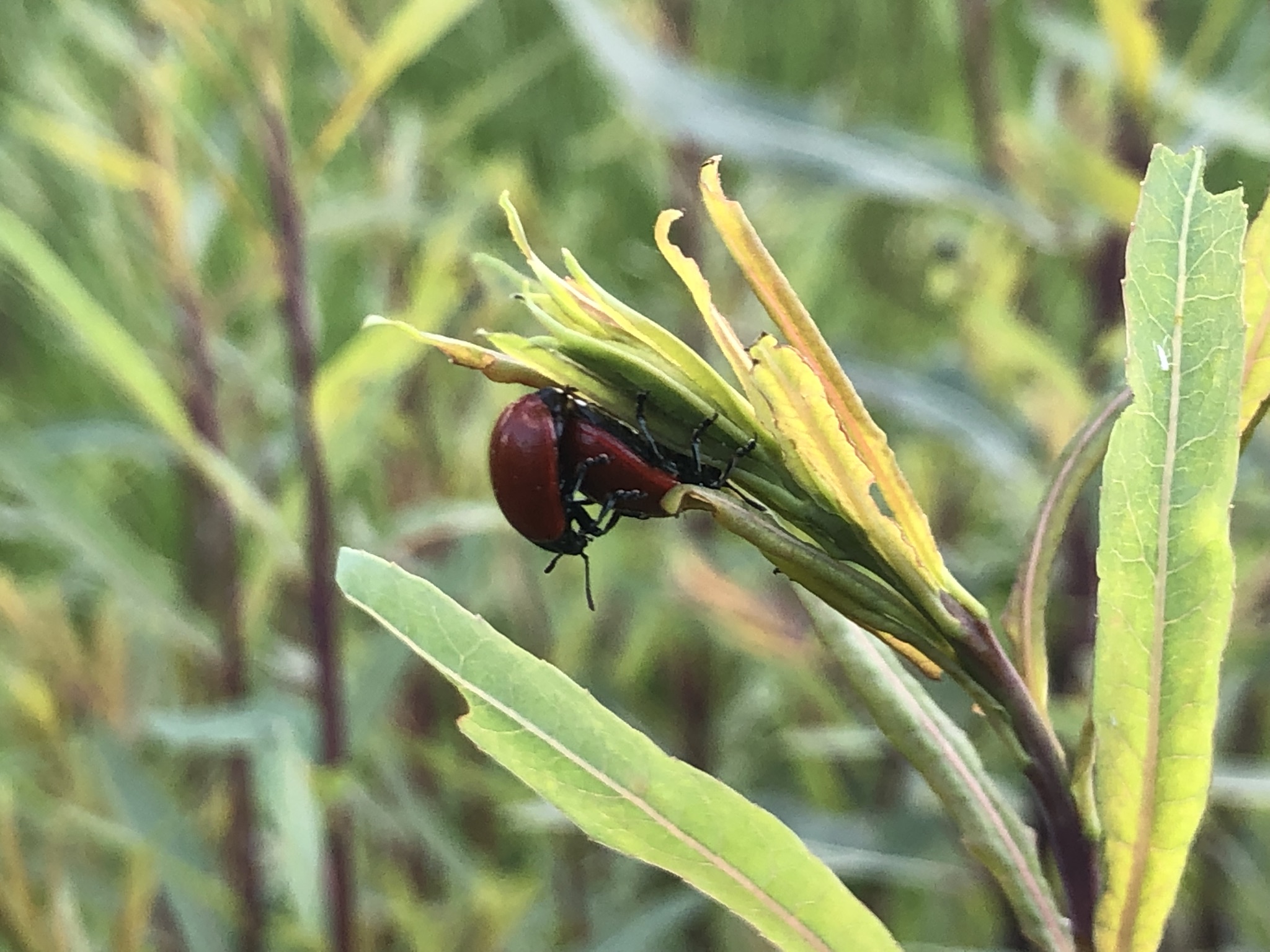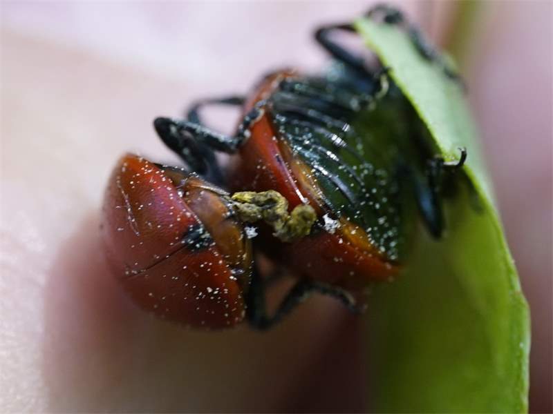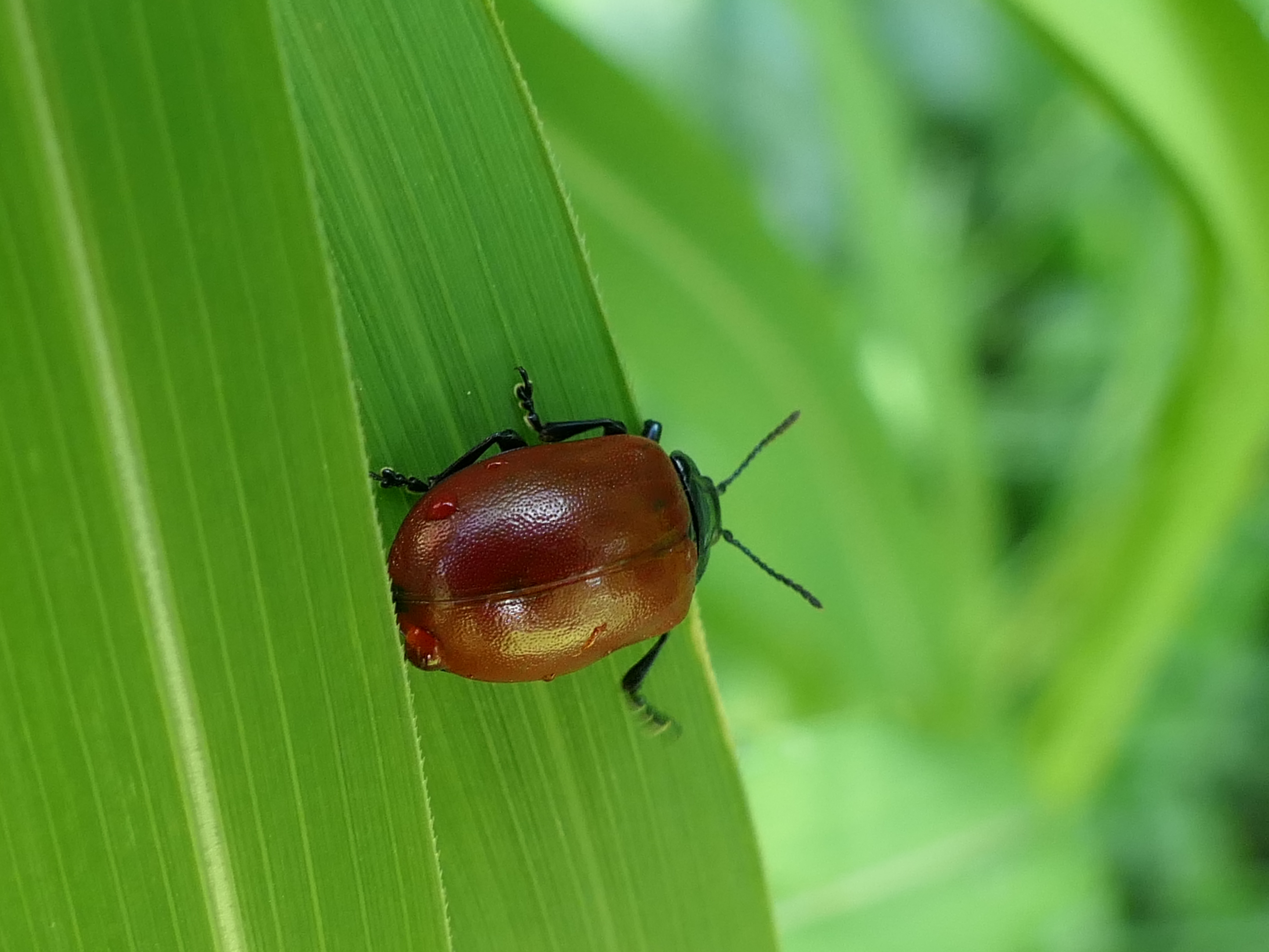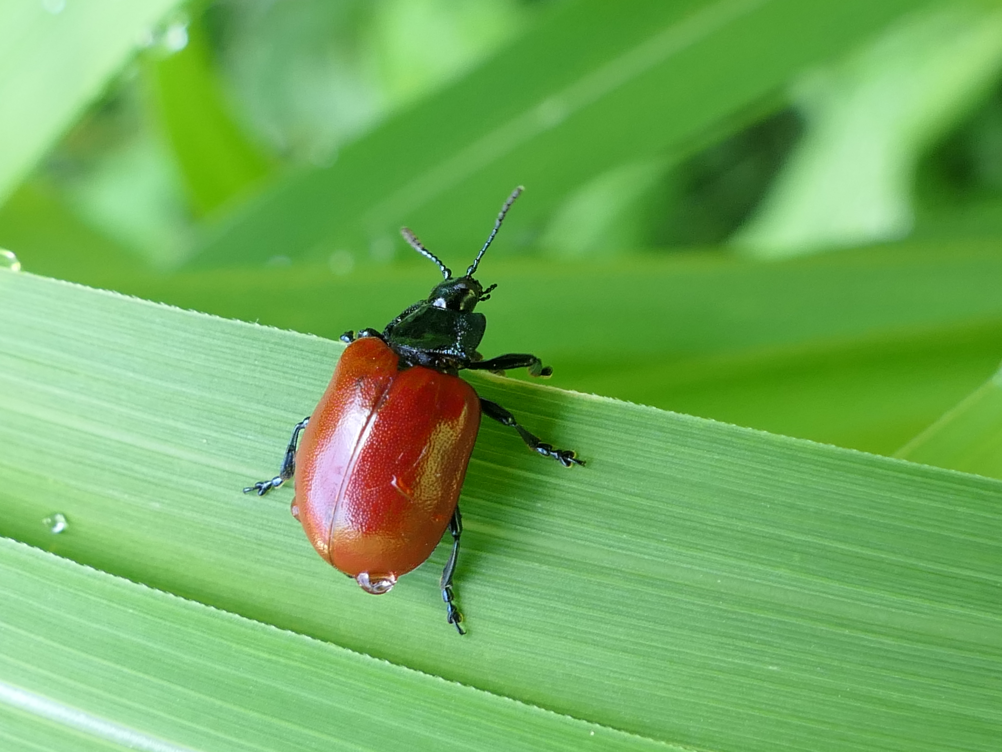 Pappelblattkäfer (Chrysomela populi) in der Gemarkung Hohenprießnitz, Sportplatz, nördlicher Waldrand, auf einer Espe (Populus tremula), April 2014 (© Michael Happ)( Bild vergrößern)