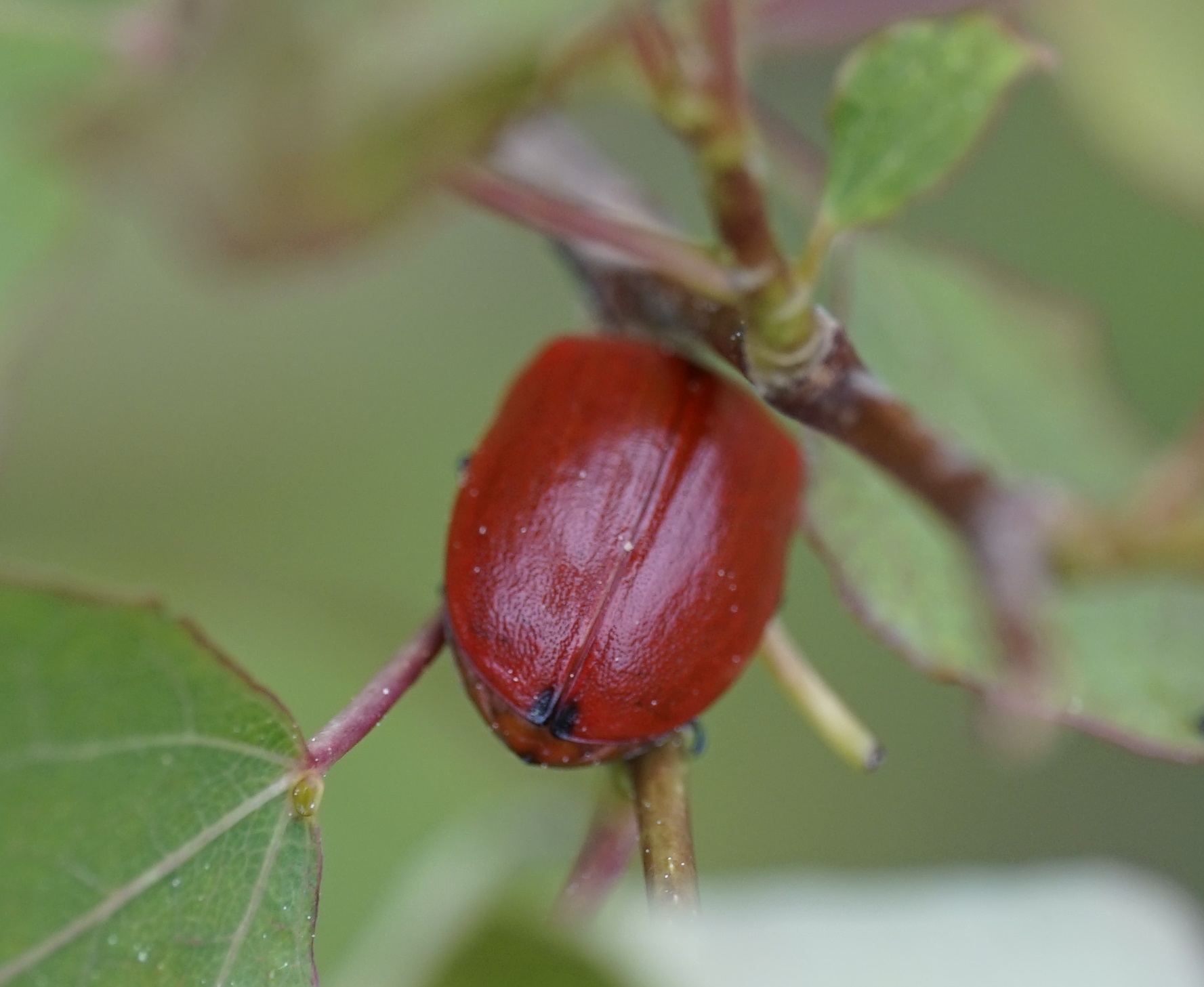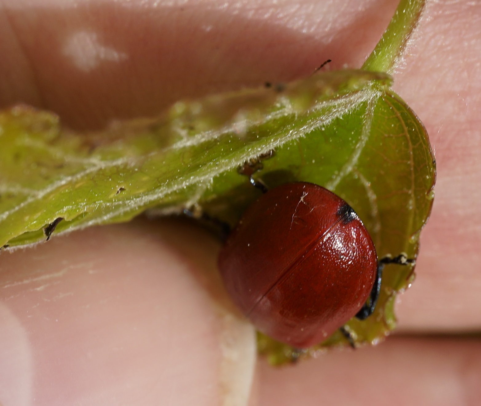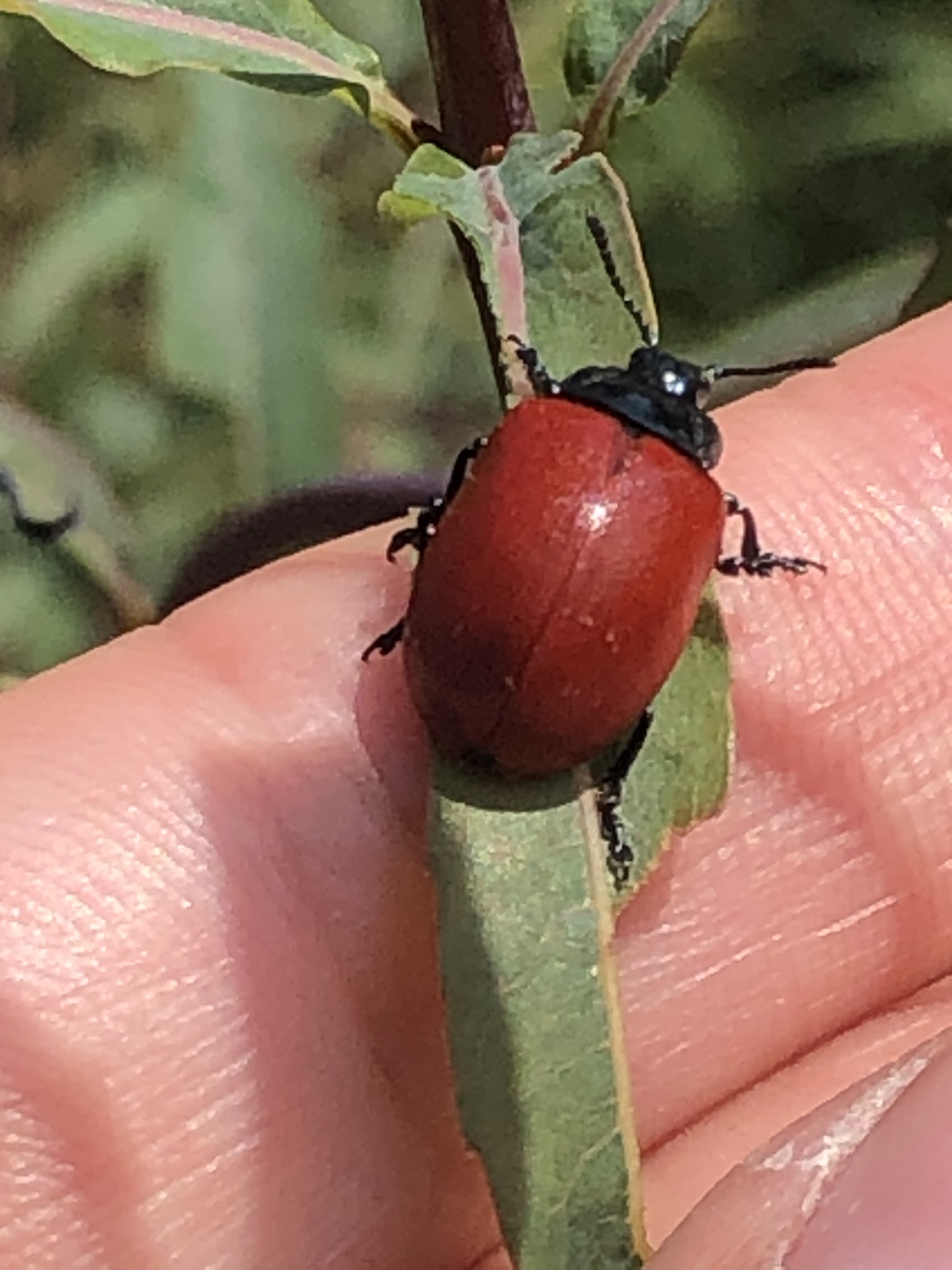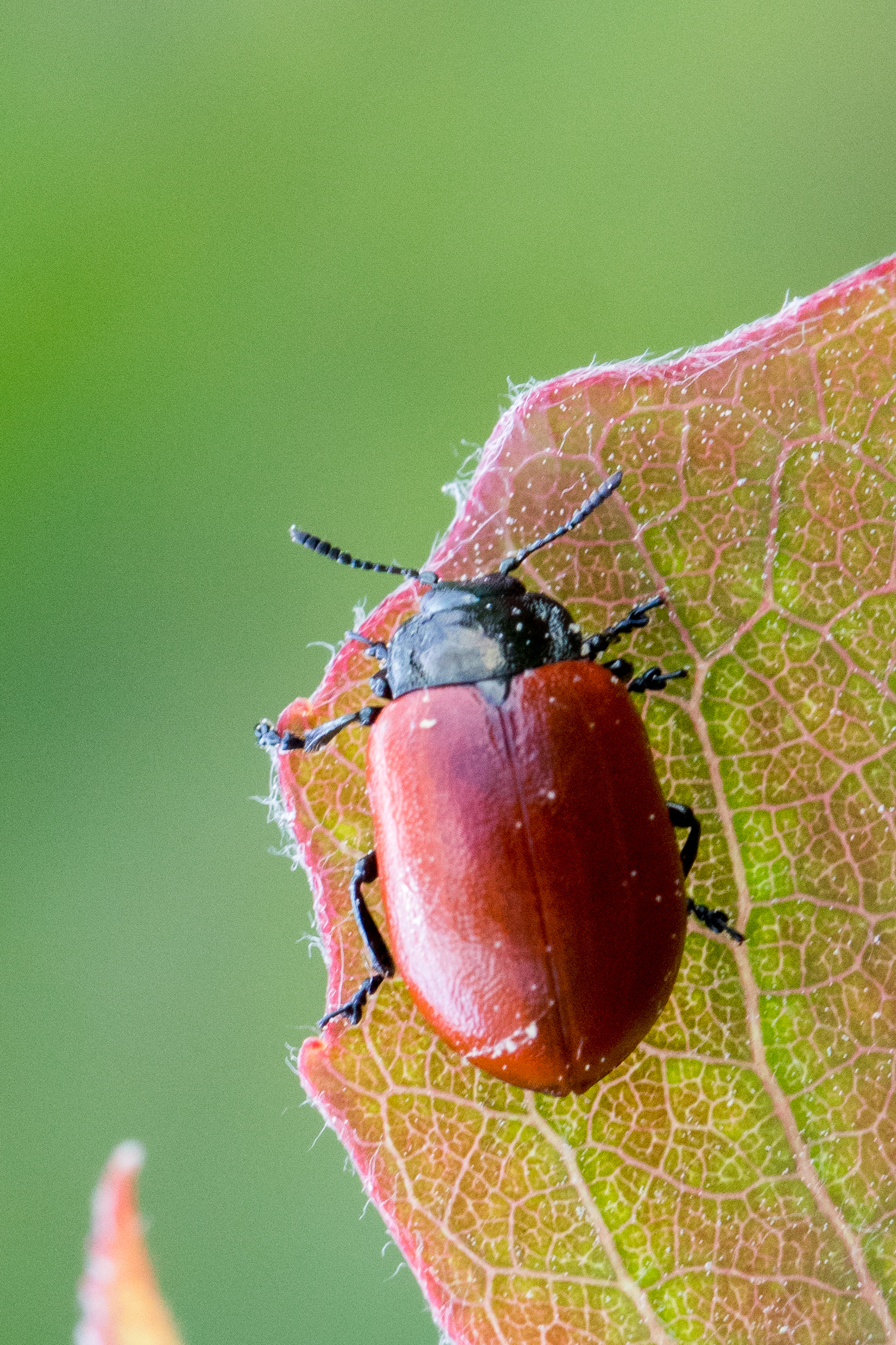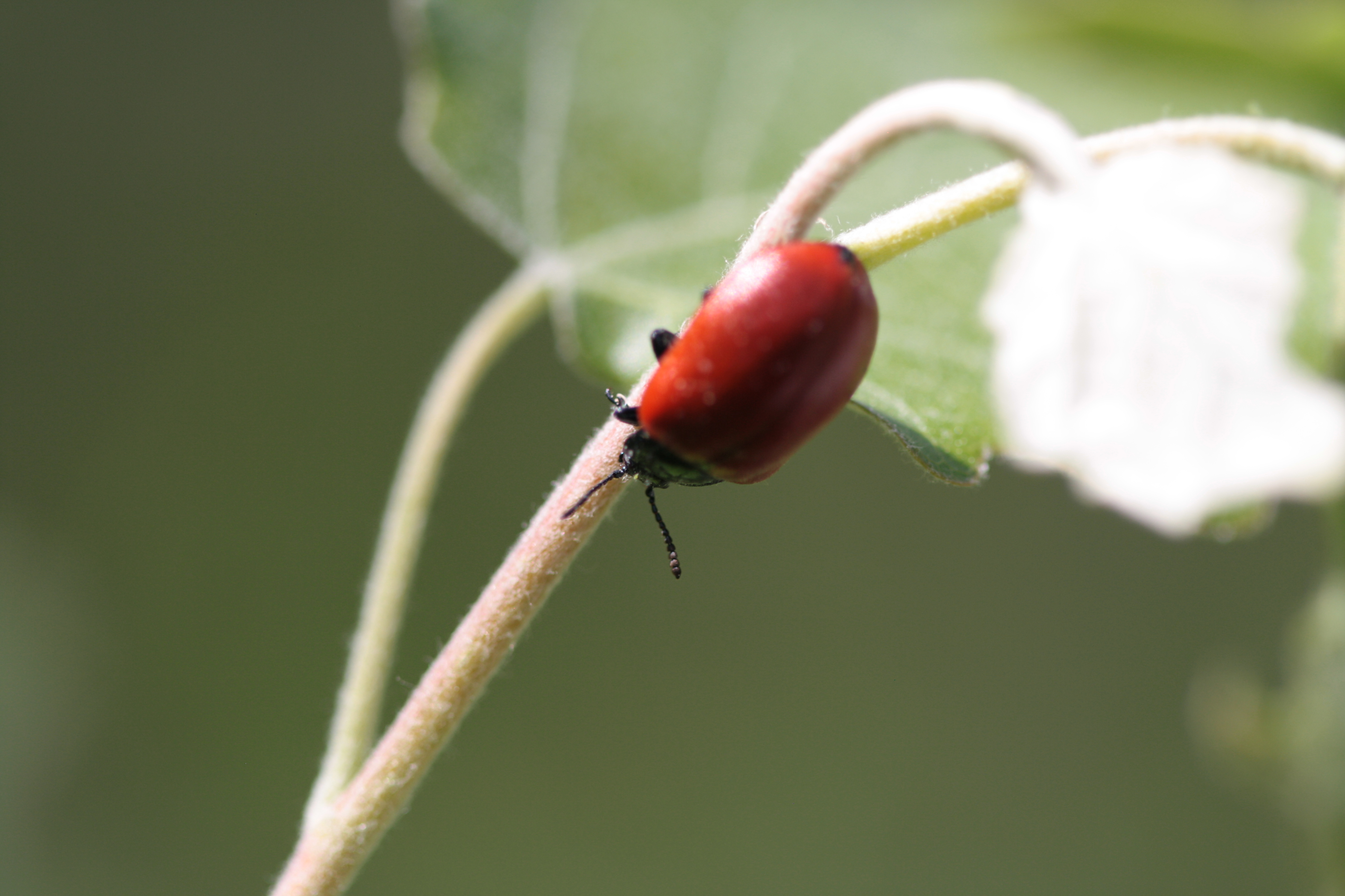 Pappelblattkäfer (Chrysomela populi) in der Gemarkung Hohenprießnitz, Sportplatz, nördlicher Waldrand, auf einer Espe (Populus tremula), April 2014