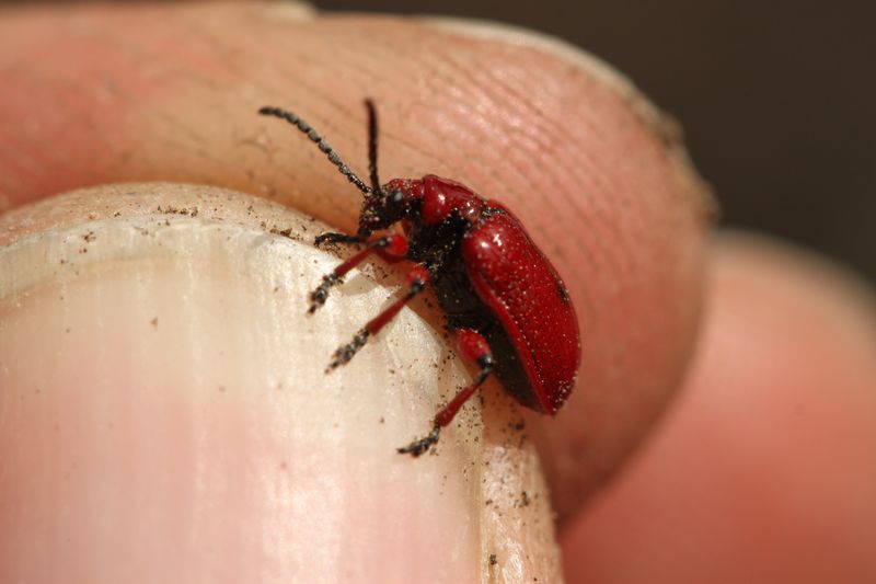 Bei dem von Fabre (1900: 194 ff.; dt. Übersetzung 2015: 174 ff.) behandelten "Lilienhähnchen ... Crioceris merdigera" handelt es sich um das Lilienhähnchen (Lilioceris lilii), denn er schreibt: "es ist herrlich korallenrot, Kopf und Beine sind tiefschwarz."