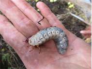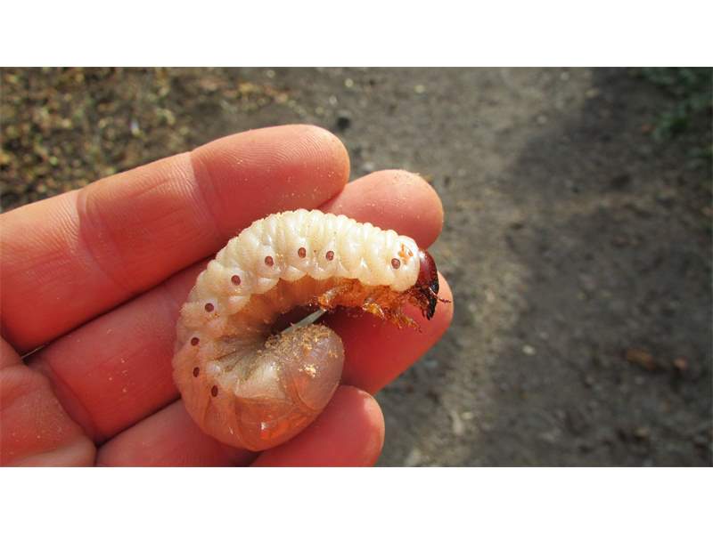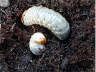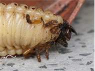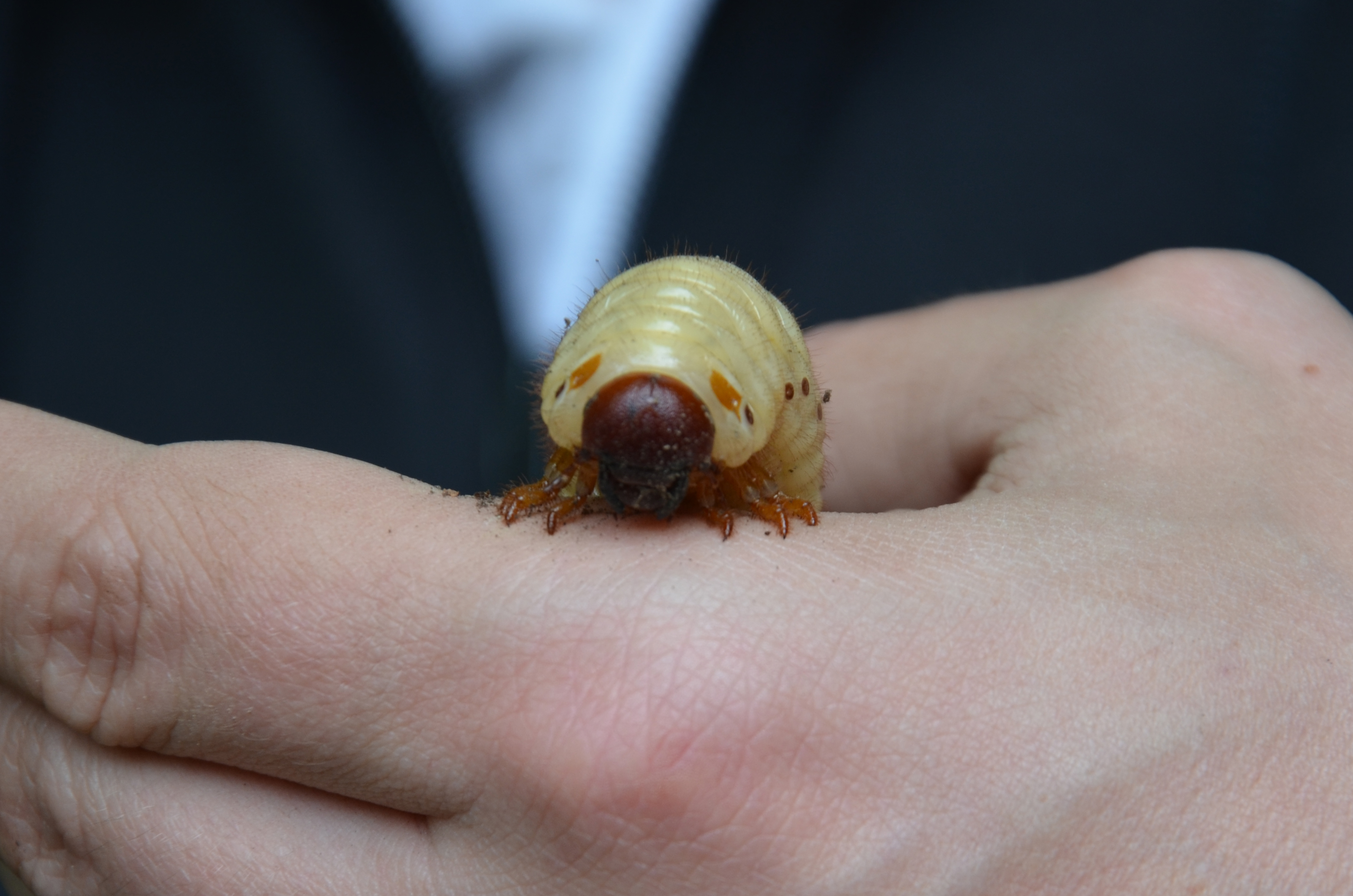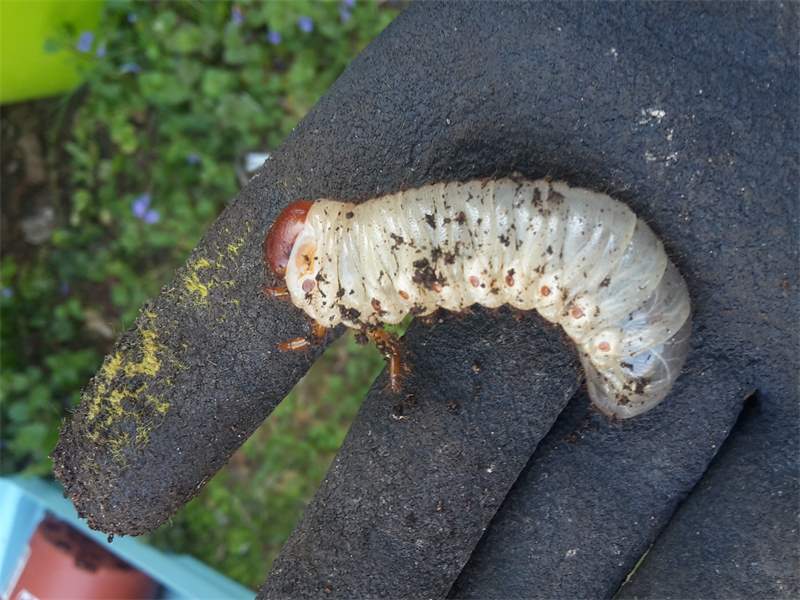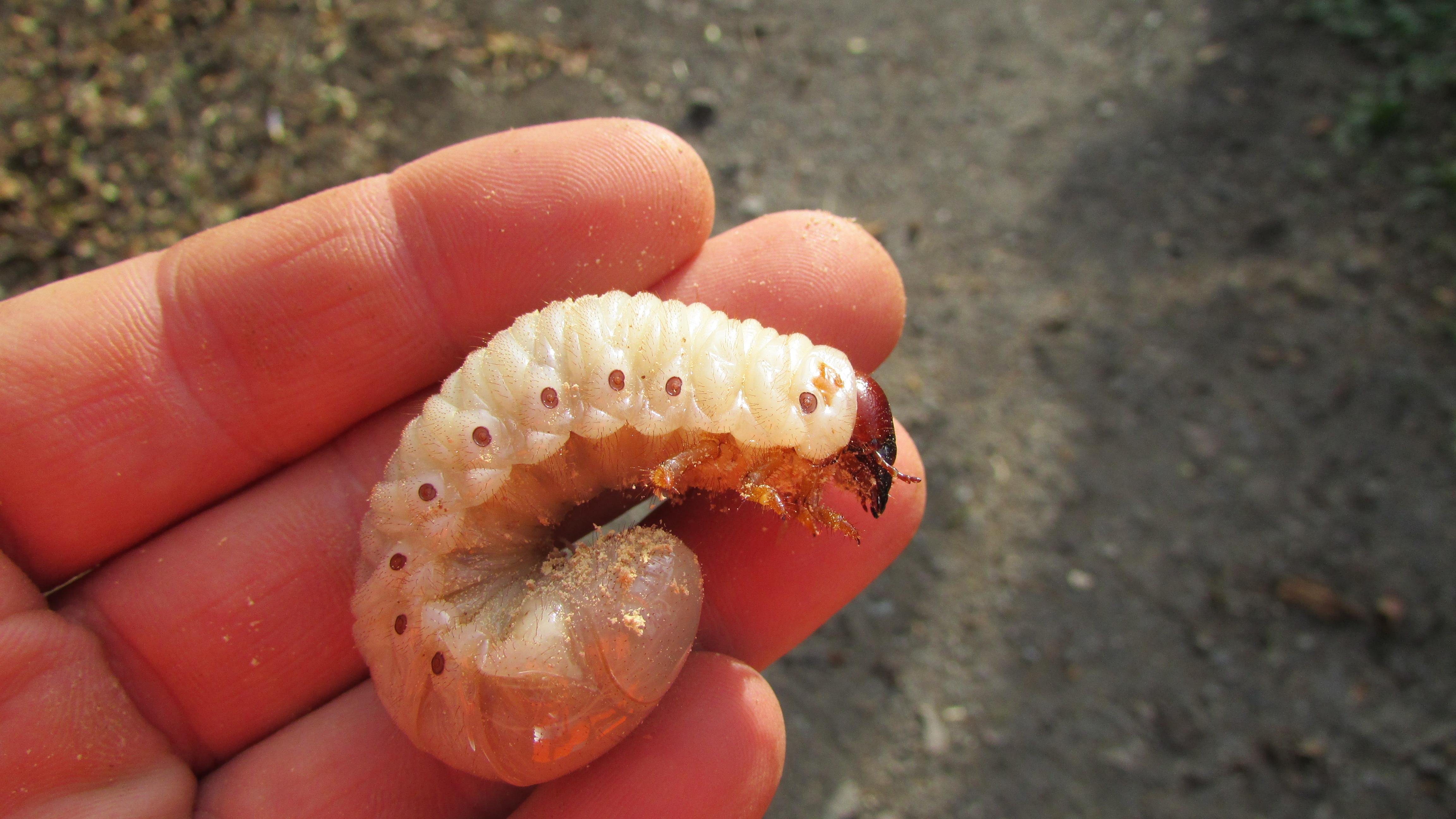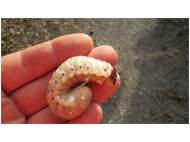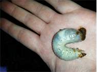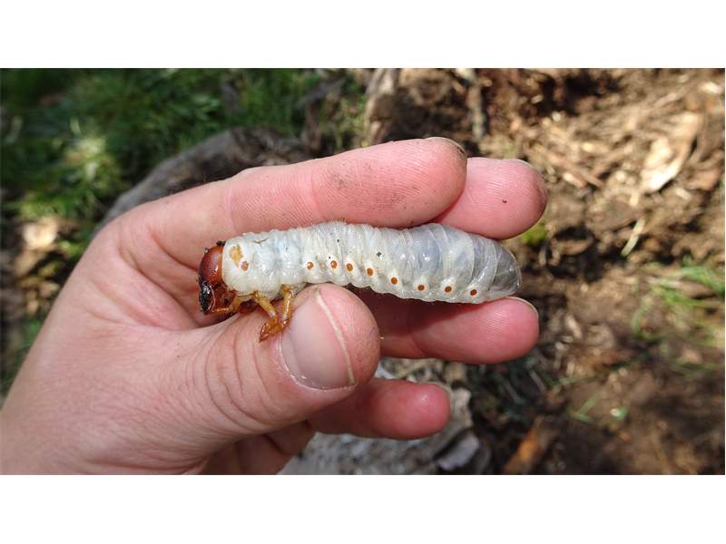 Beim Umsetzen eines Komposthaufens in einem Kleingarten in Dohna/Pirna 2011 wurden 9 Larven, 5 Puppen und 6 Adulte des Nashornkäfers gefunden. Hier im Bild eine Larve.