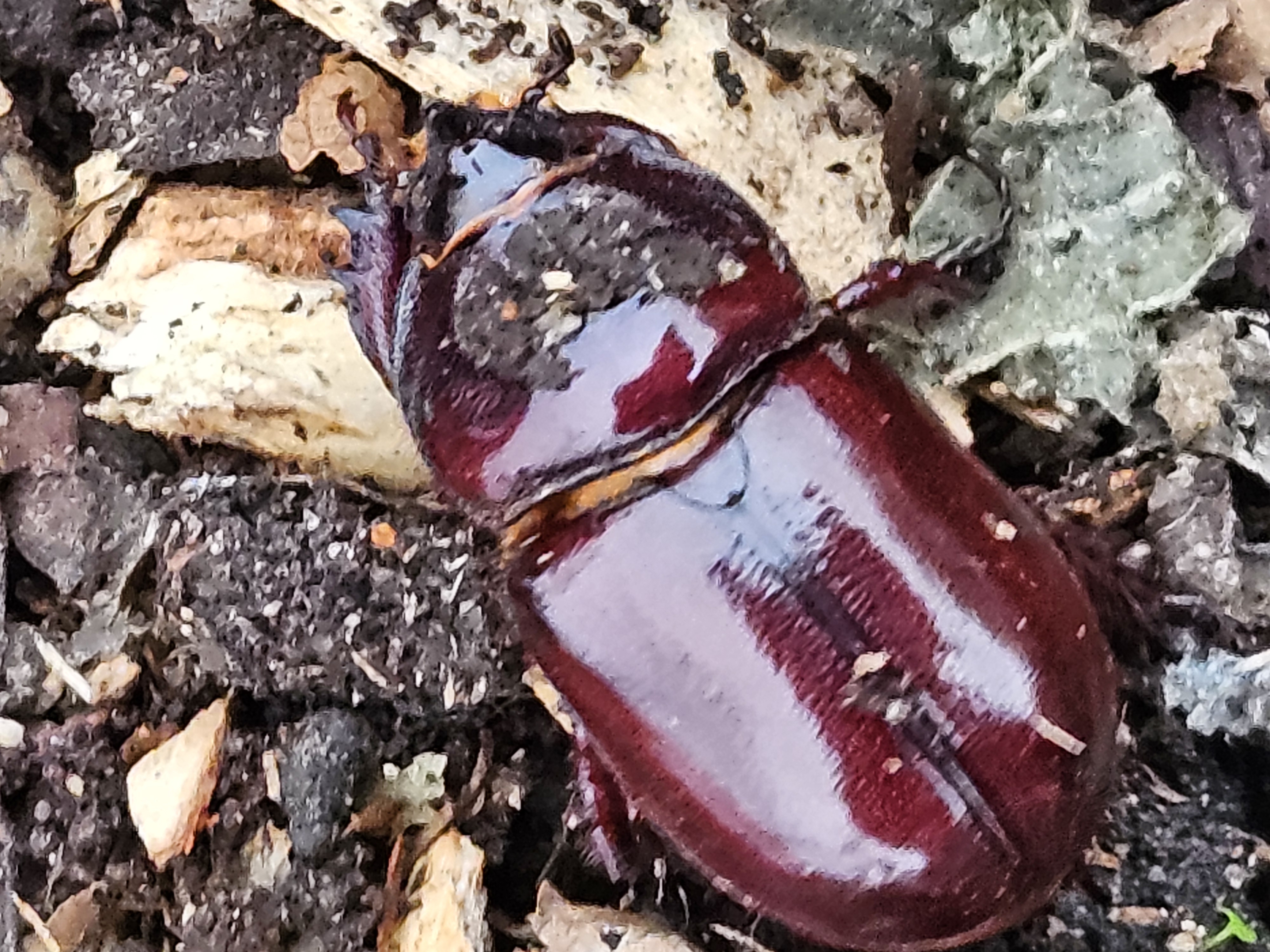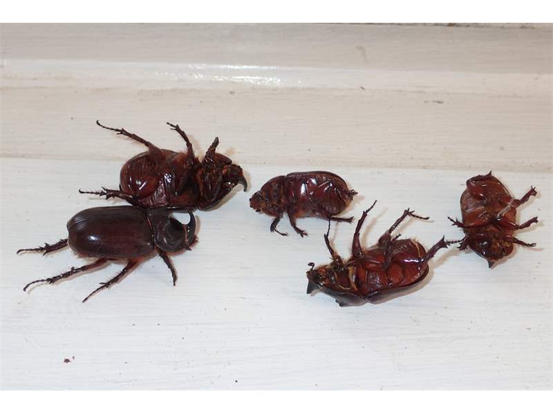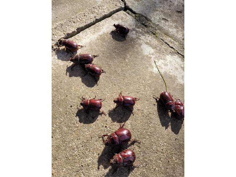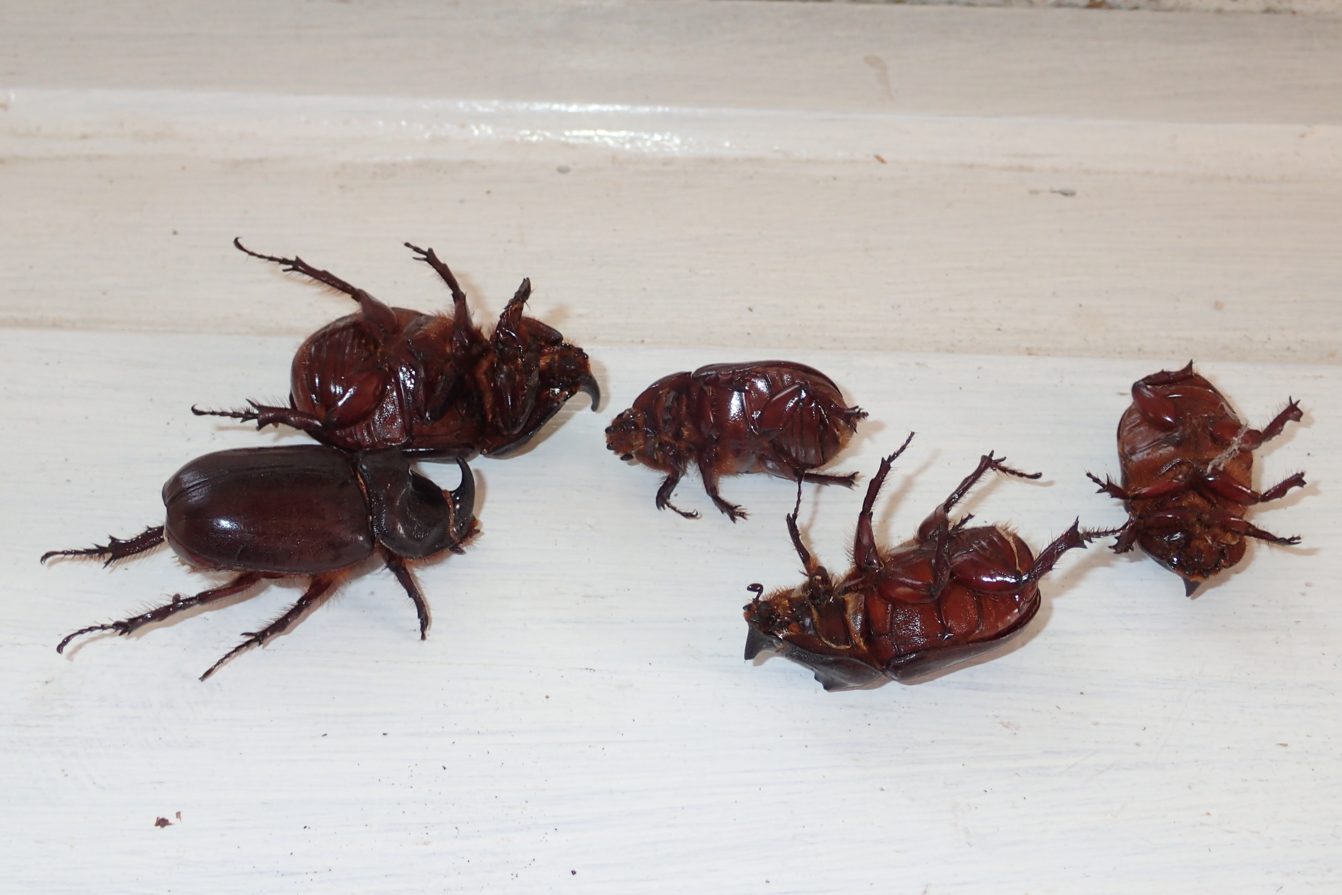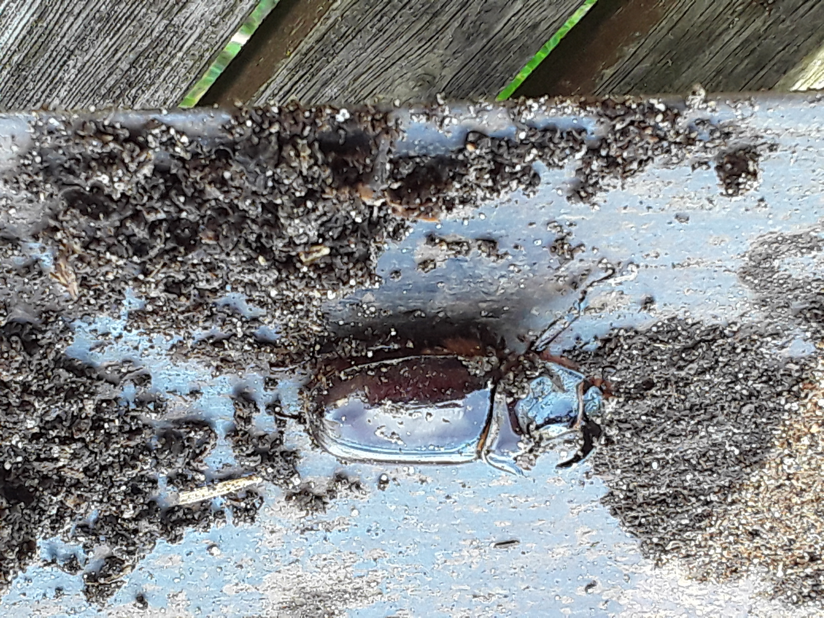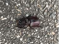 2,4 ad. Nashornkäfer frischtot am Komposthaufen liegend (davon 1 Weibchen noch lebend) Radebeul, Landkreis Meißen, Juli 2025