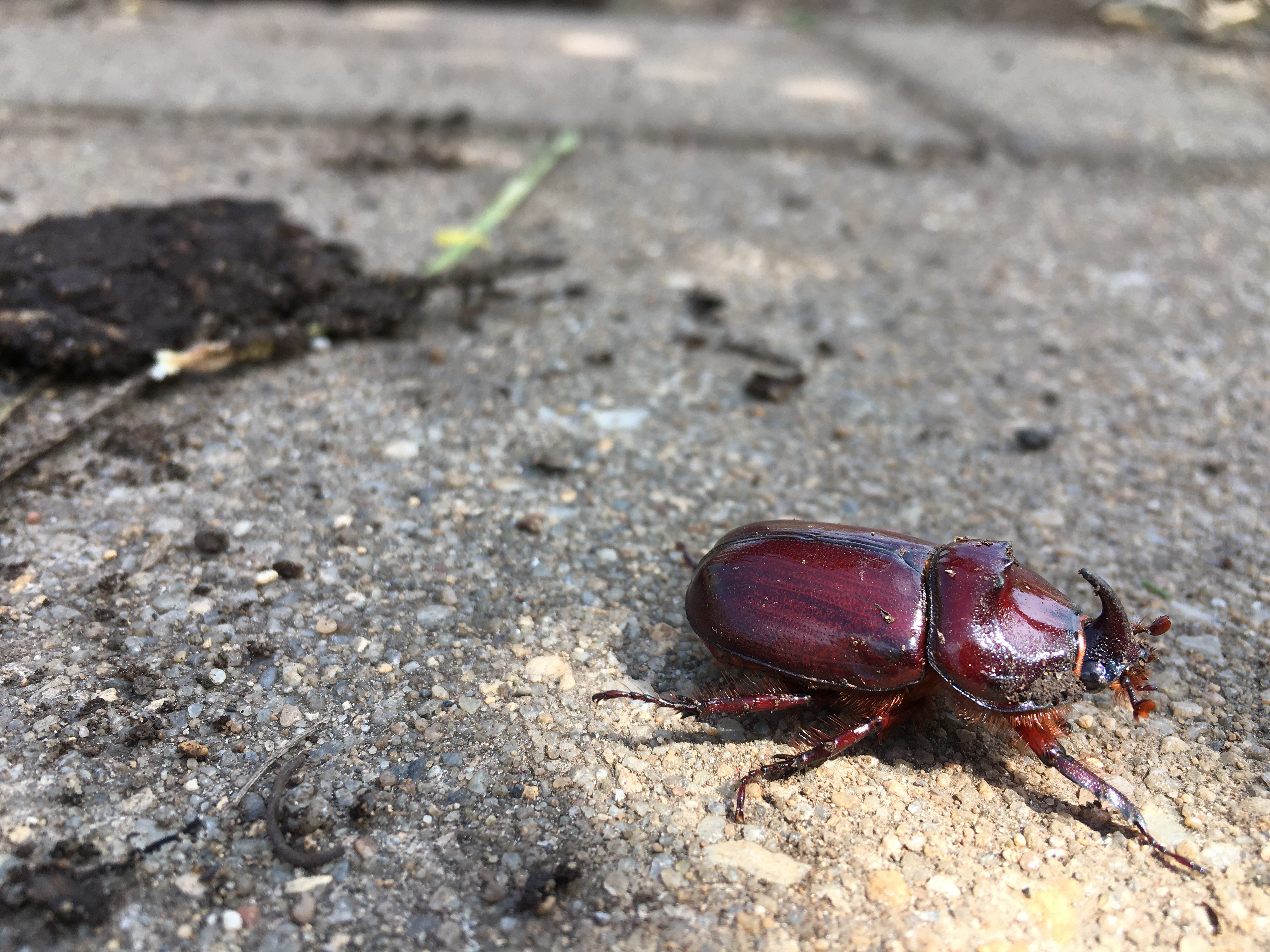 Nashornkäfer in Leipzig Eutritzsch am 02.06.2014, hier regelmäßig zu beobachten beim Schwärmen (3 und mehr Tiere) durch Hinterhöfe, Brachflächen und Straßen (auch 2012 schon gesichtet).