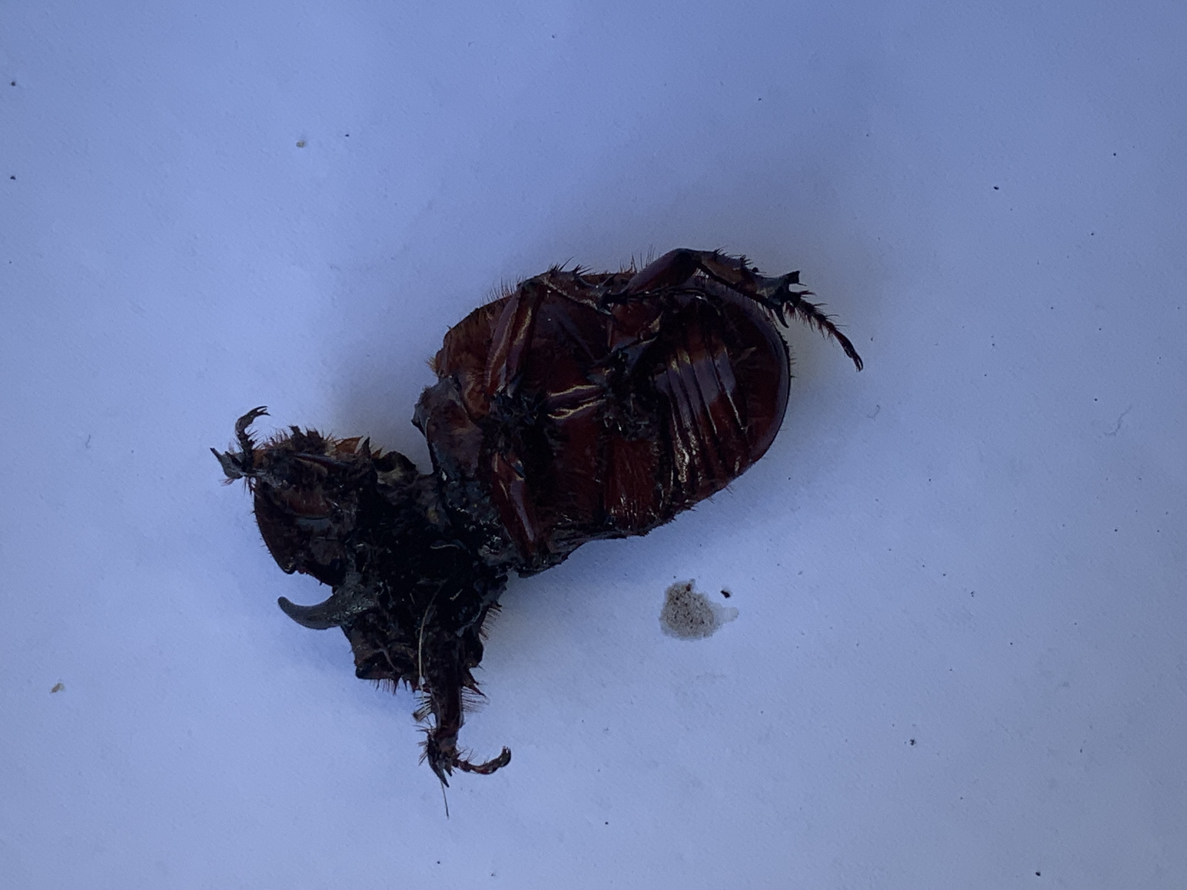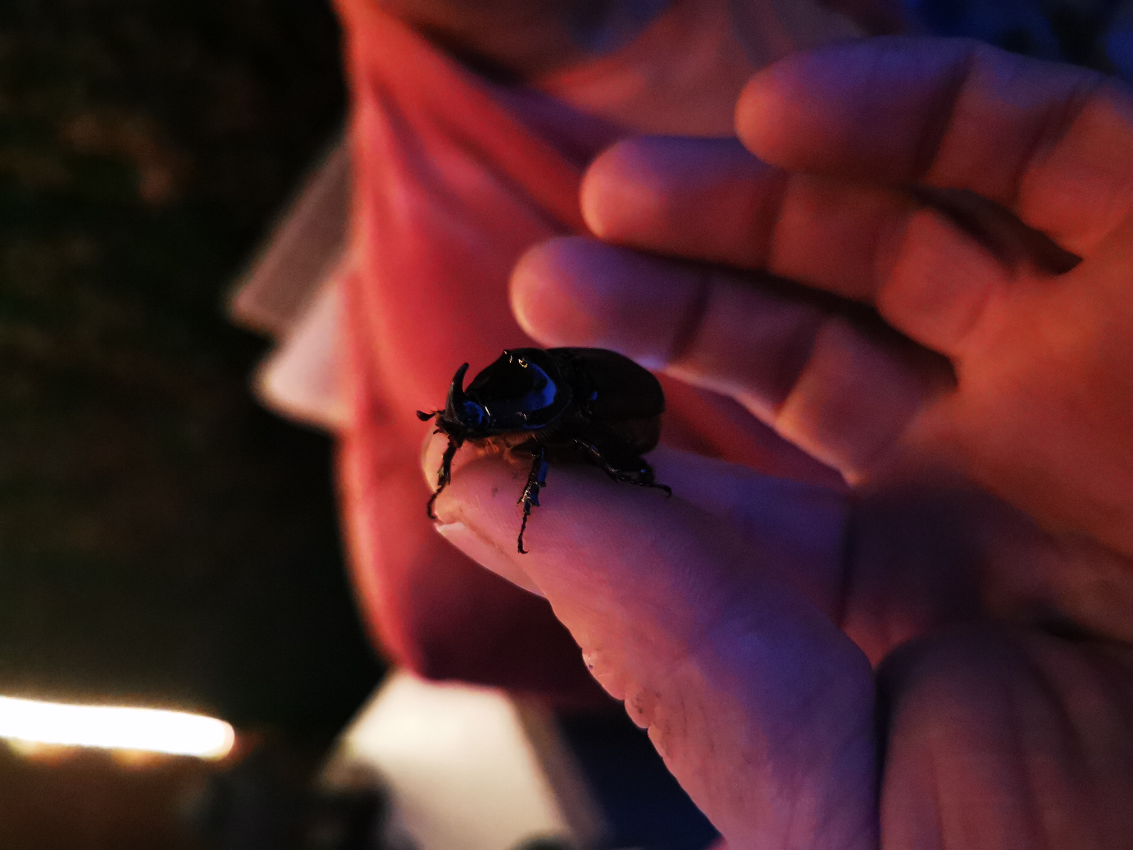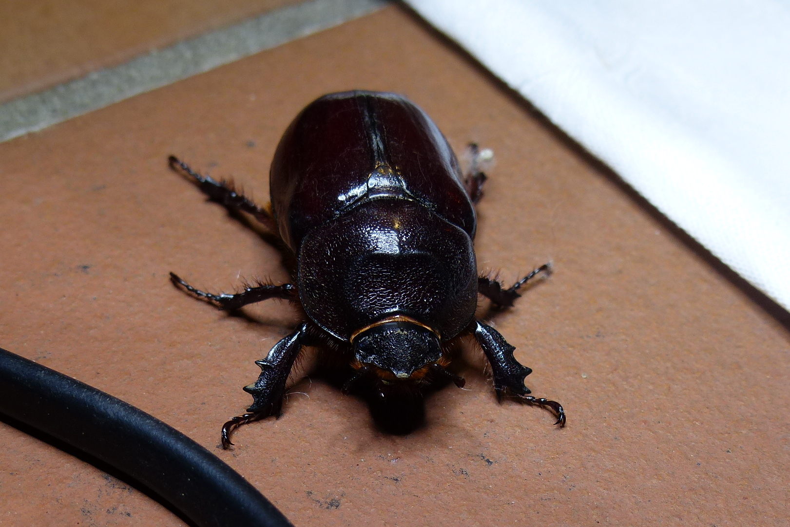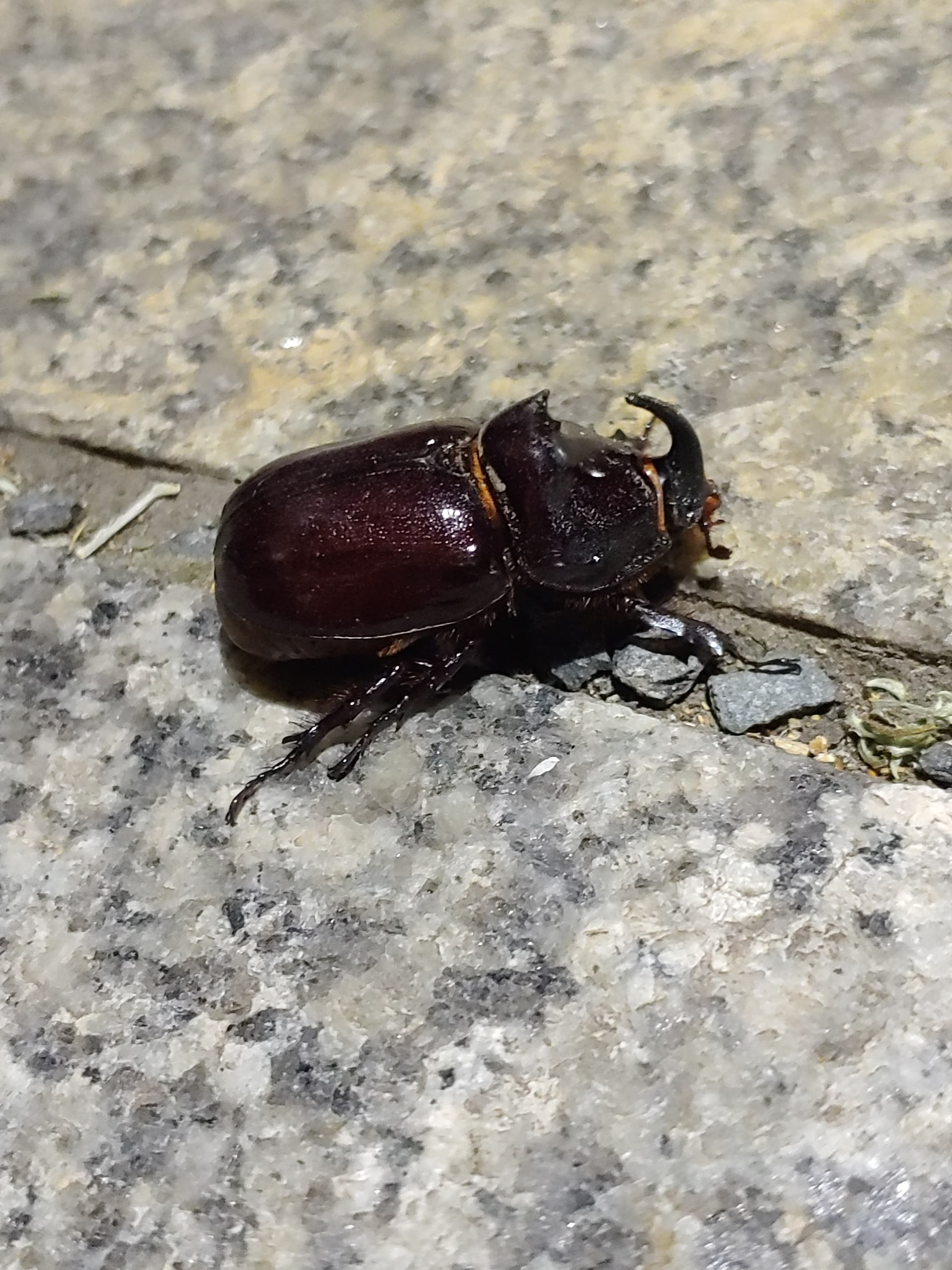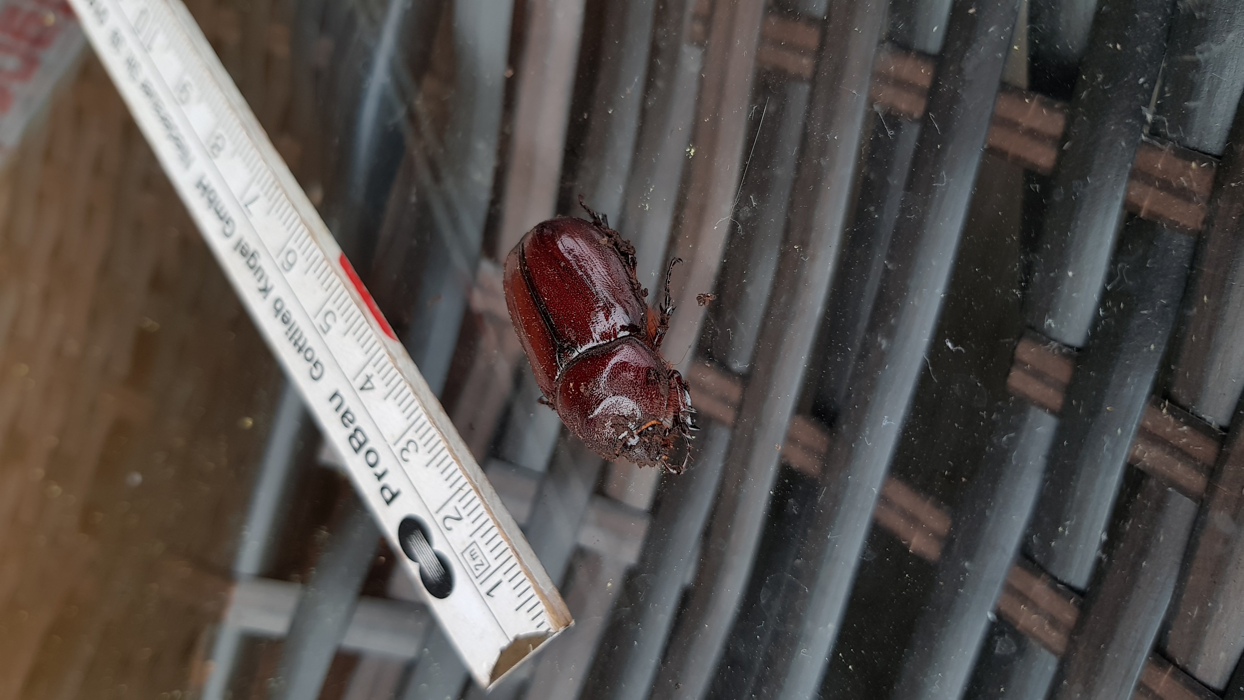 Nashornkäfer, Weibchen, Landungsort erleuchtete Hausterrasse, Leipzig-Gohlis-Mitte, 08. Juni 2024