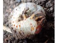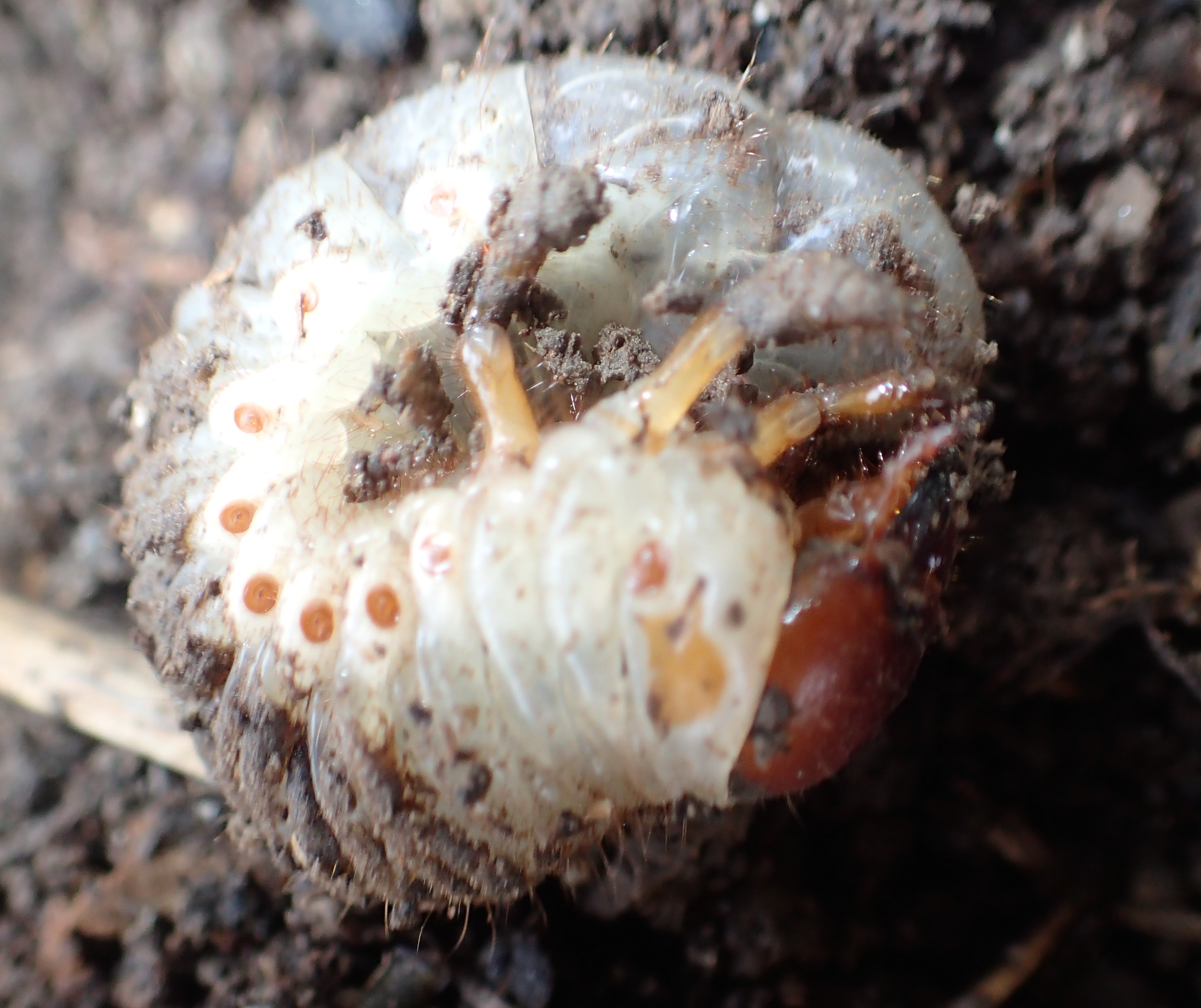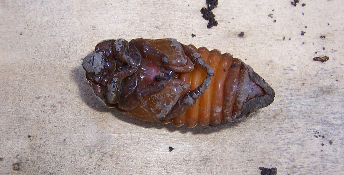 Beim Umsetzen eines Komposthaufens in einem Kleingarten in Dohna/Pirna 2011 wurden 9 Larven, 5 Puppen und 6 Adulte des Nashornkäfers gefunden. Hier im Bild eine Puppe in Ventralansicht.