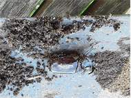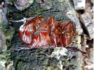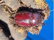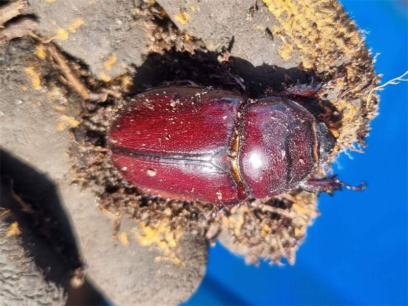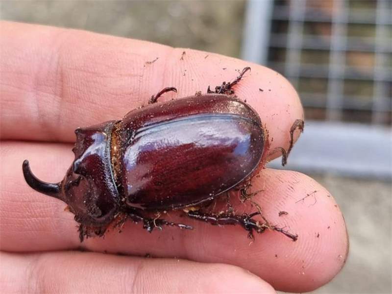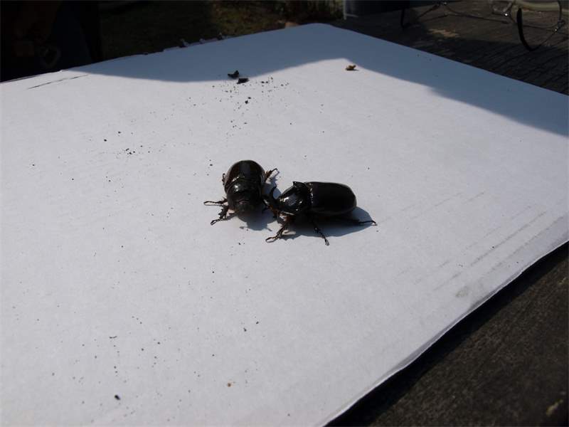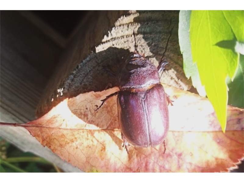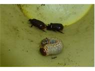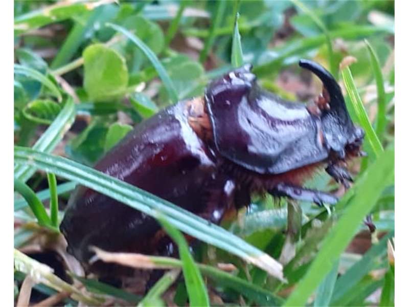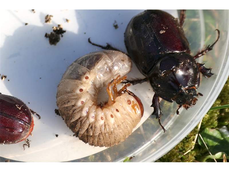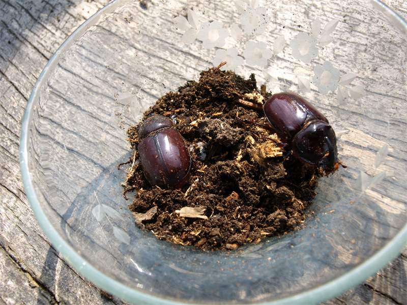 Beim Umsetzen eines Komposthaufens in einem Kleingarten in Dohna/Pirna 2011 wurden 9 Larven, 5 Puppen und 6 Adulte des Nashornkäfers gefunden. Hier im Bild ein adulter Käfer.