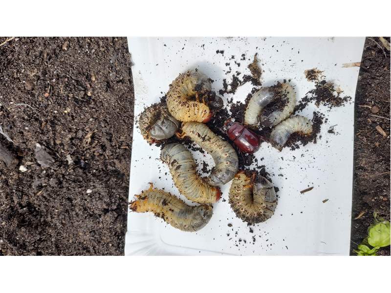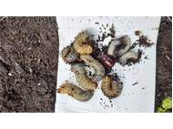 Lauta, Torno-Siedlung, 12. März 2026, viele Larven und einige Käfer beim Grashaufenumsetzen gefunden