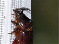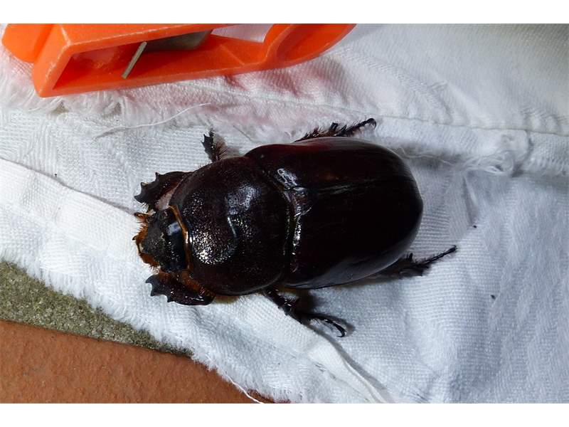 Mittels Lichtfang gefundener Nashornkäfer im Kammeyergarten der Hochschule für Technik und Wirtschaft in Dresden-Pillnitz am 05.06.2010.