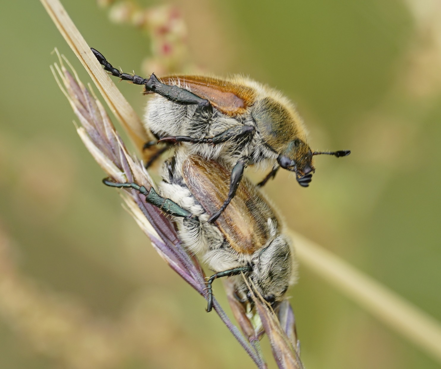 Neuwiese, 21.06.2021, mehrere Käfer auf blühenden Gräsern