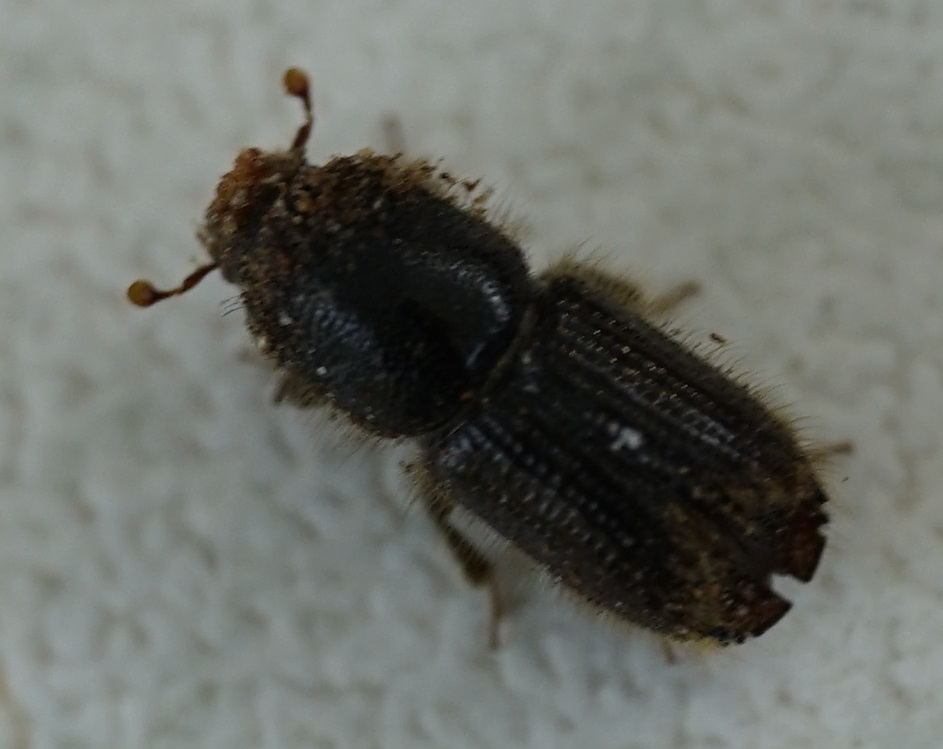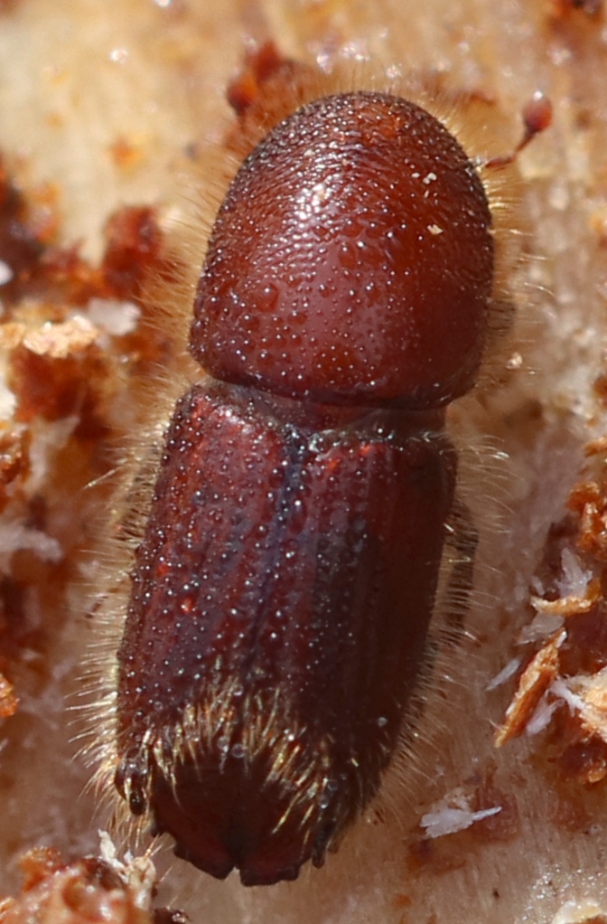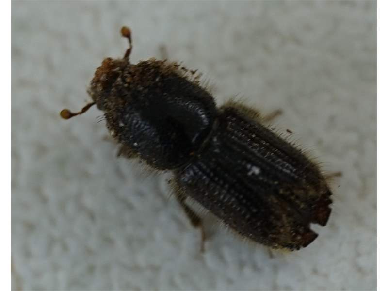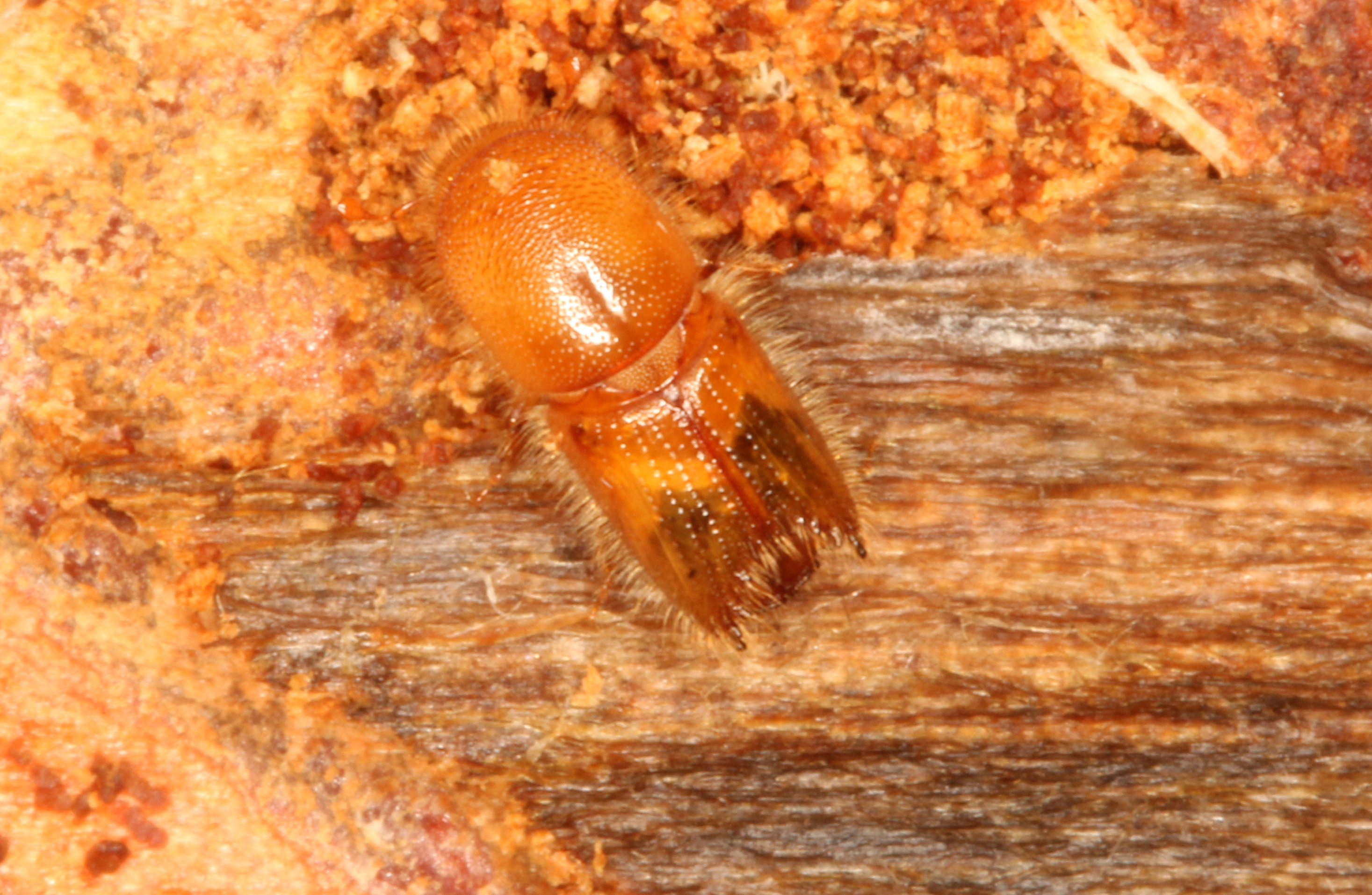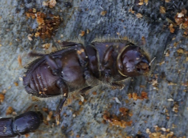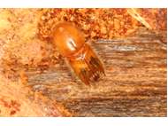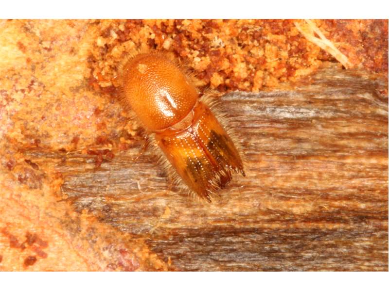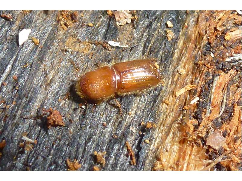 Imagines unter Borke von gestapelten Kiefernstämmen, Exuvien tw. noch in Puppenwiegen