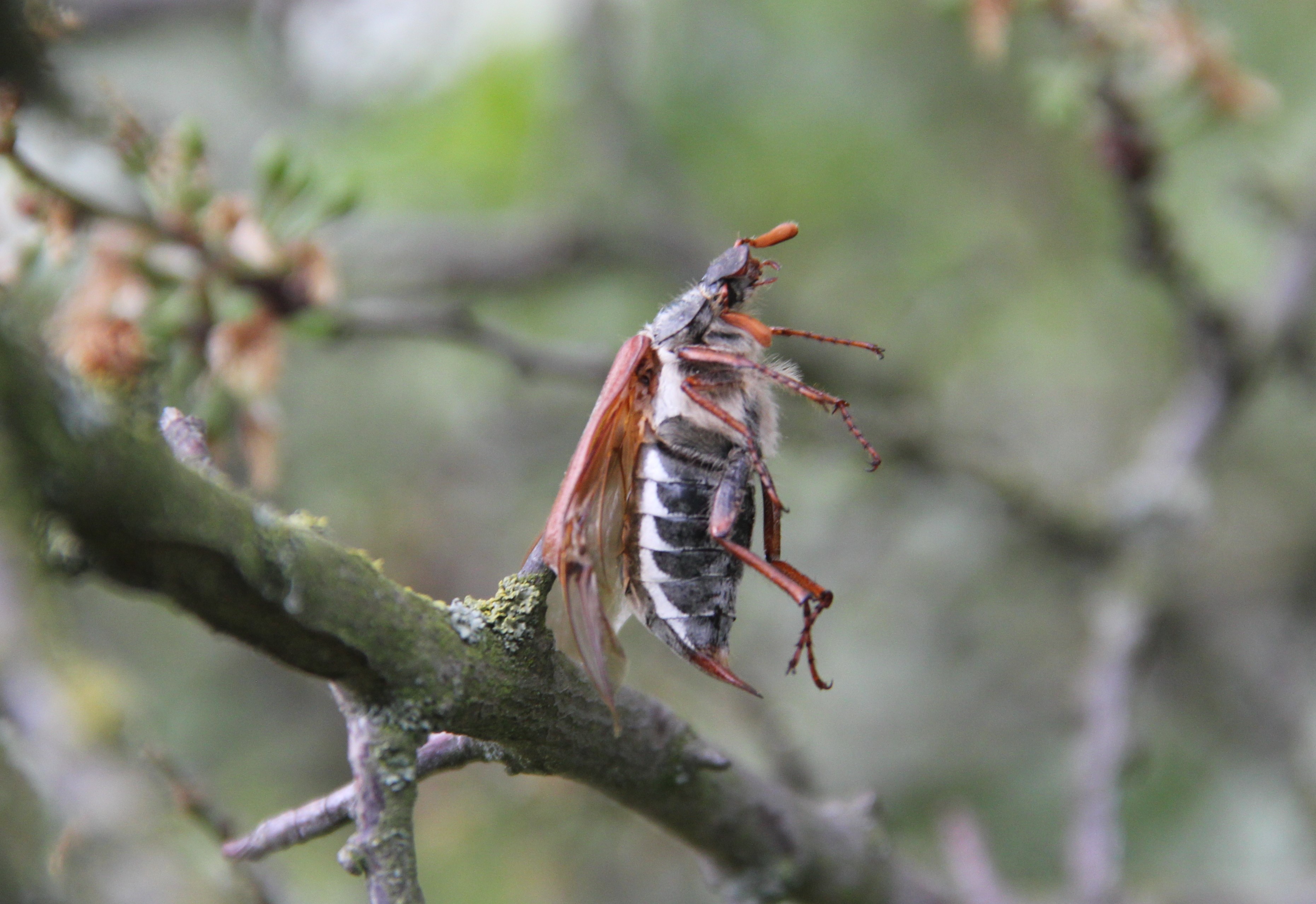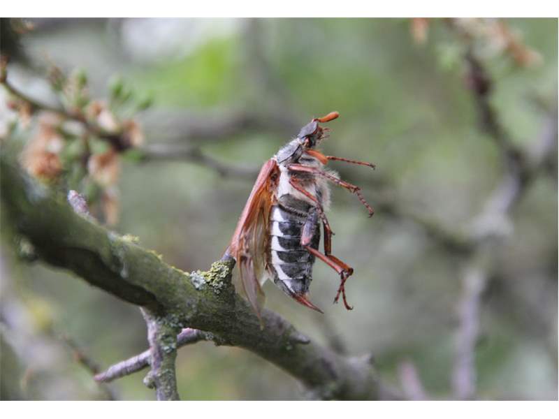 Vom Neuntöter aufgespießter Feldmaikäfer. Großdrebnitz, 16.05.2020