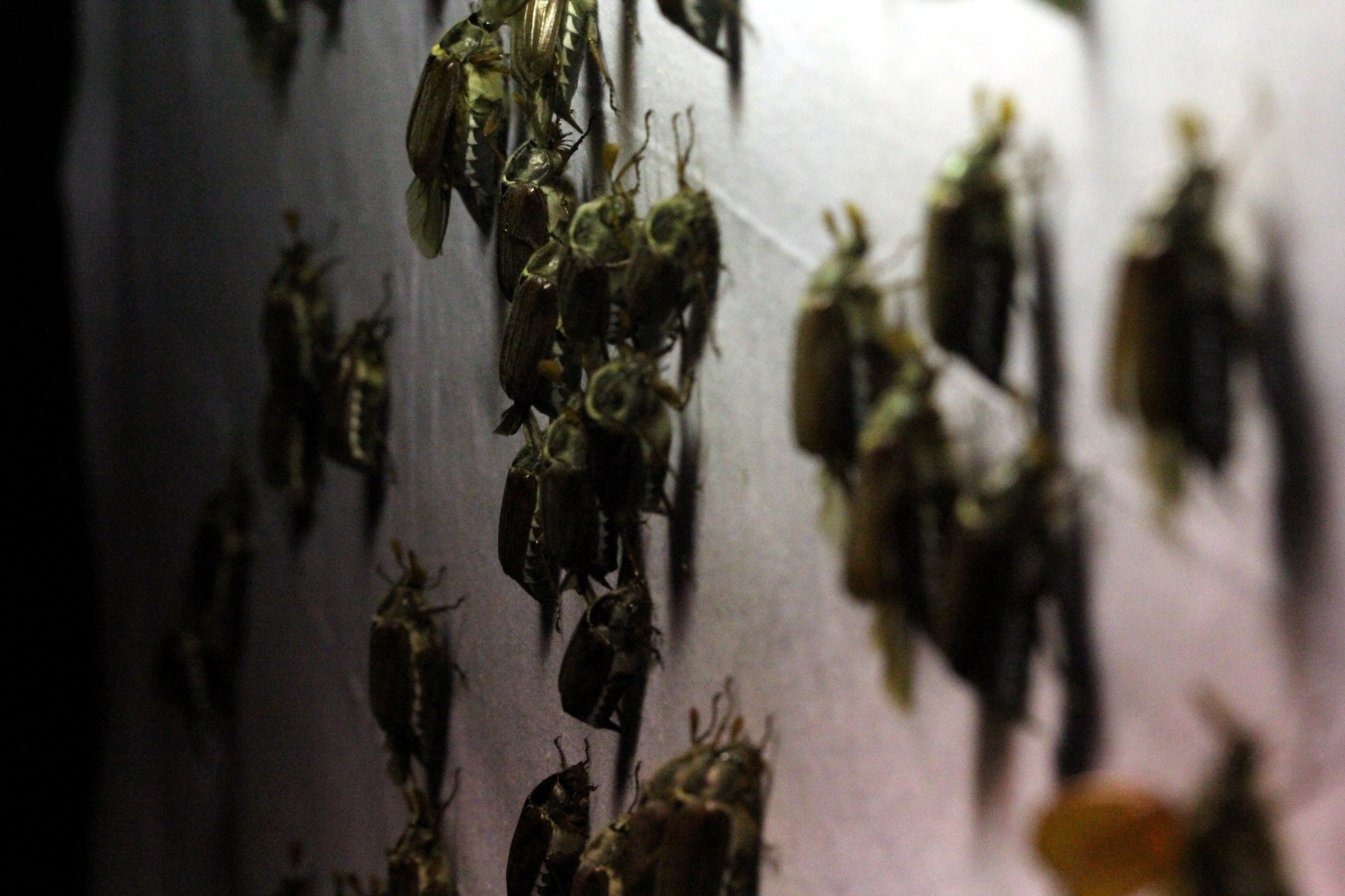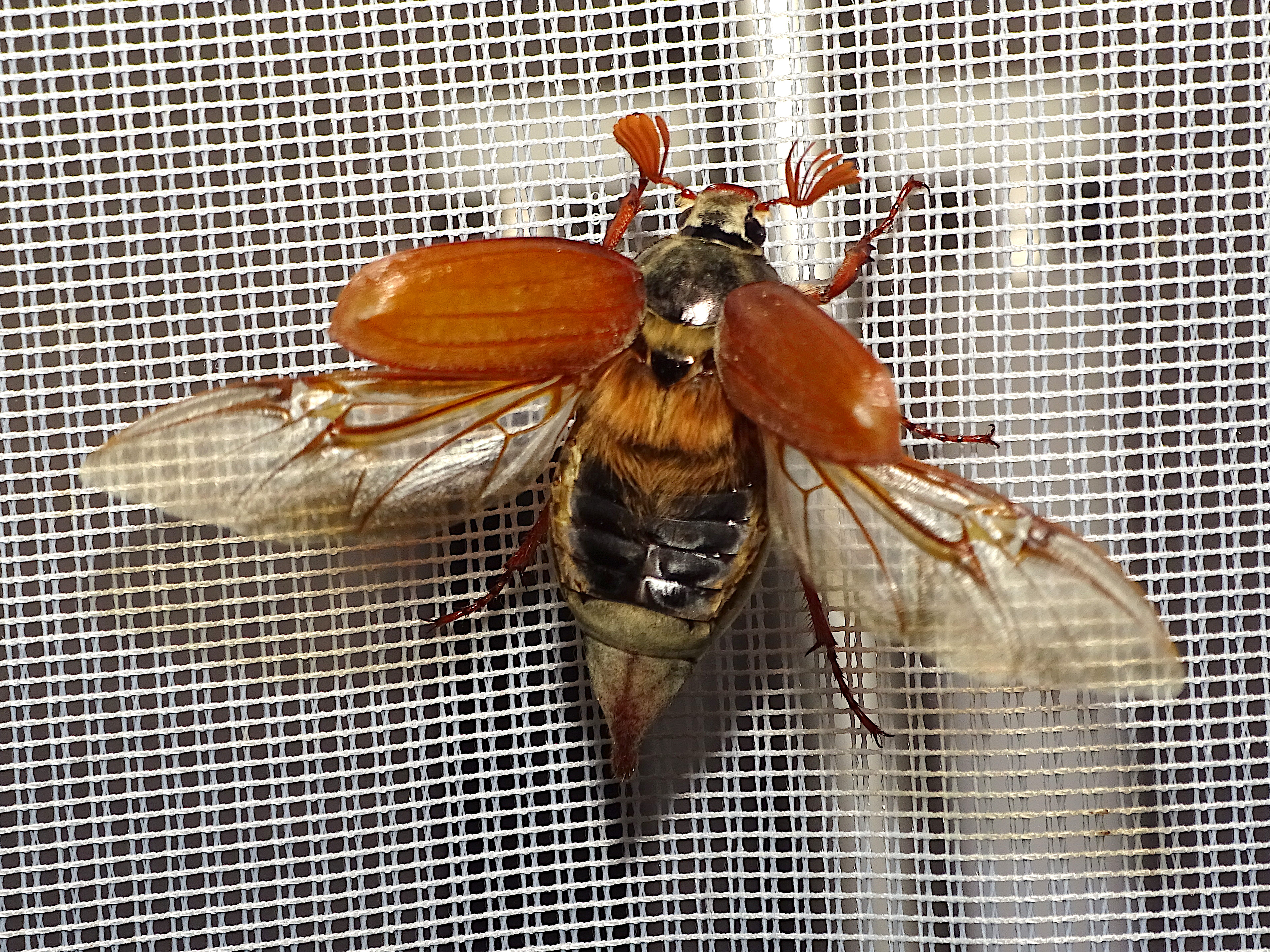 Etwa 100 Feldmaikäfer wurden nachts vom Kunstlicht angelockt. Eichert nördlich Pulsnitz, 31. Mai 2021